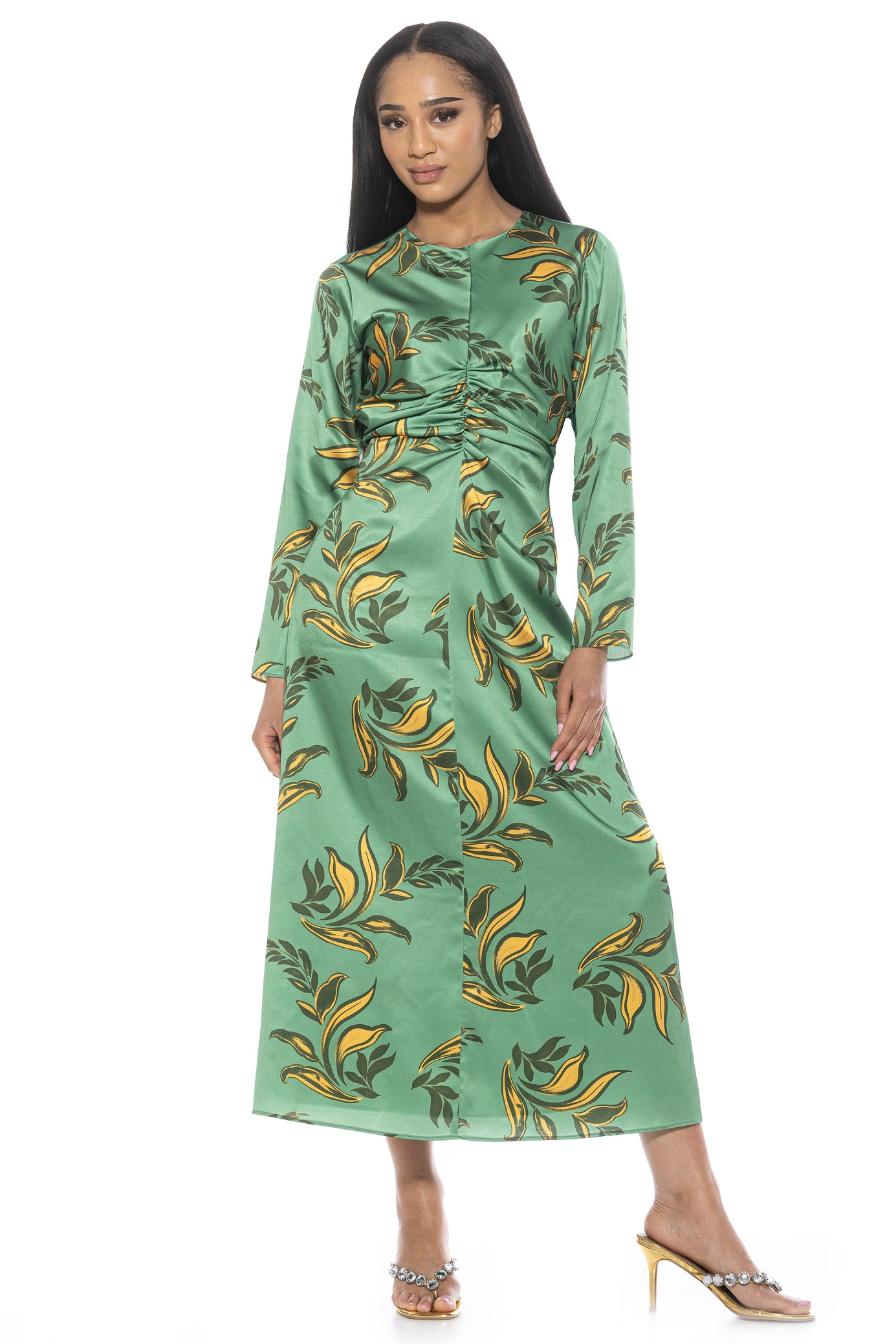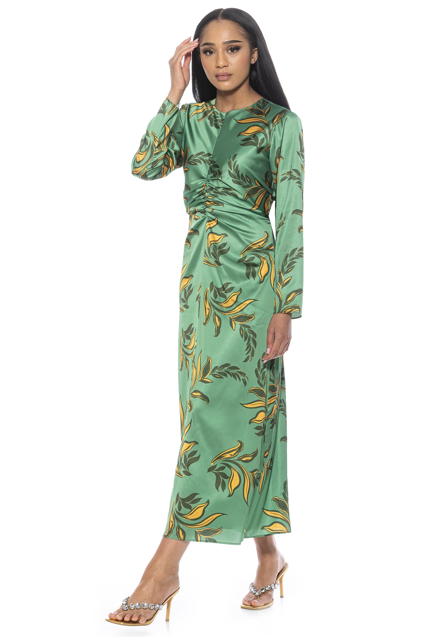 Indulge in luxury with our Eira Dress. This elegant dress features a flattering ruched front, long sleeves, and a crew neck design. The perfect addition to your wardrobe, it effortlessly combines sophistication and style.