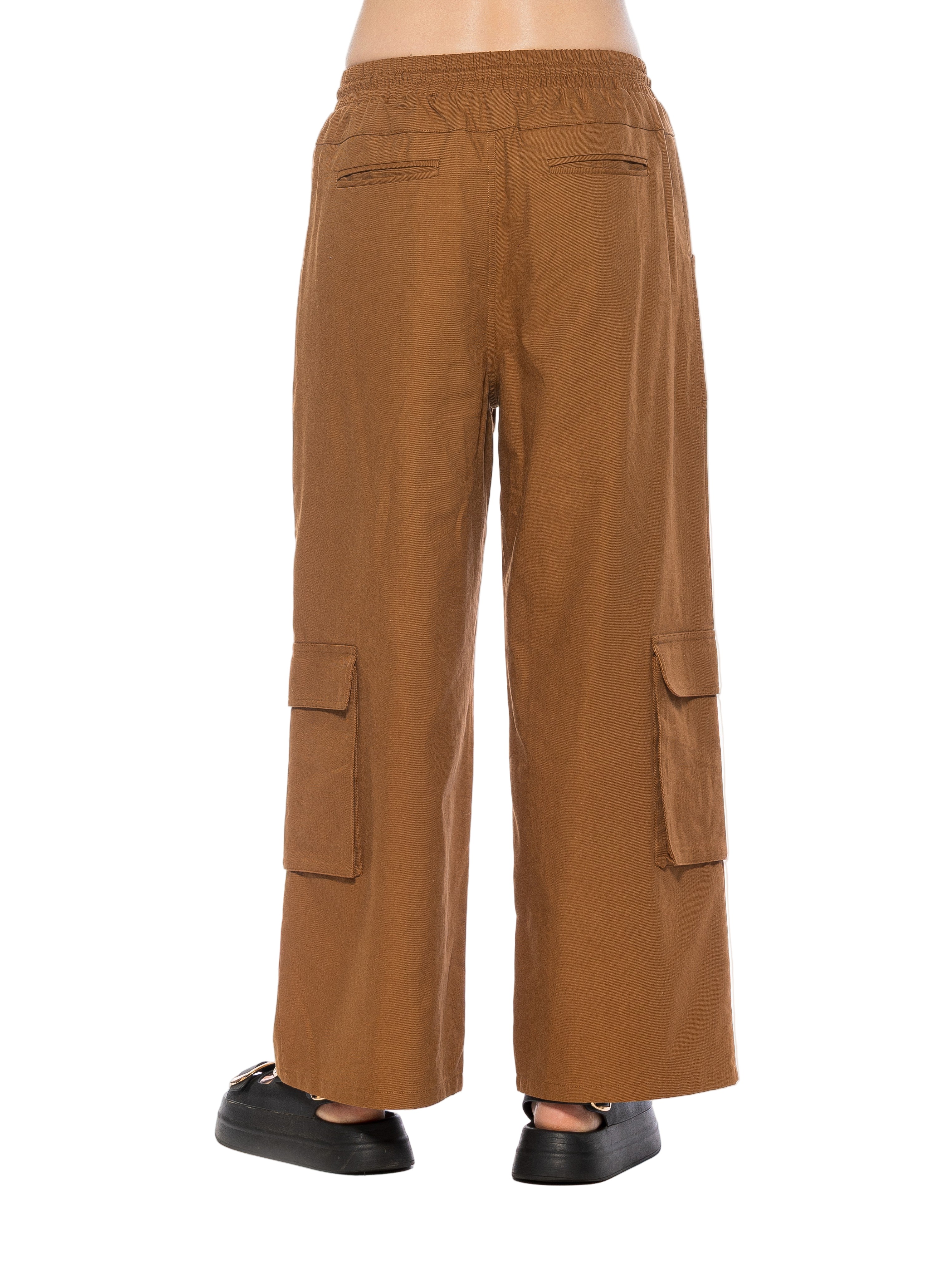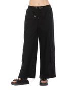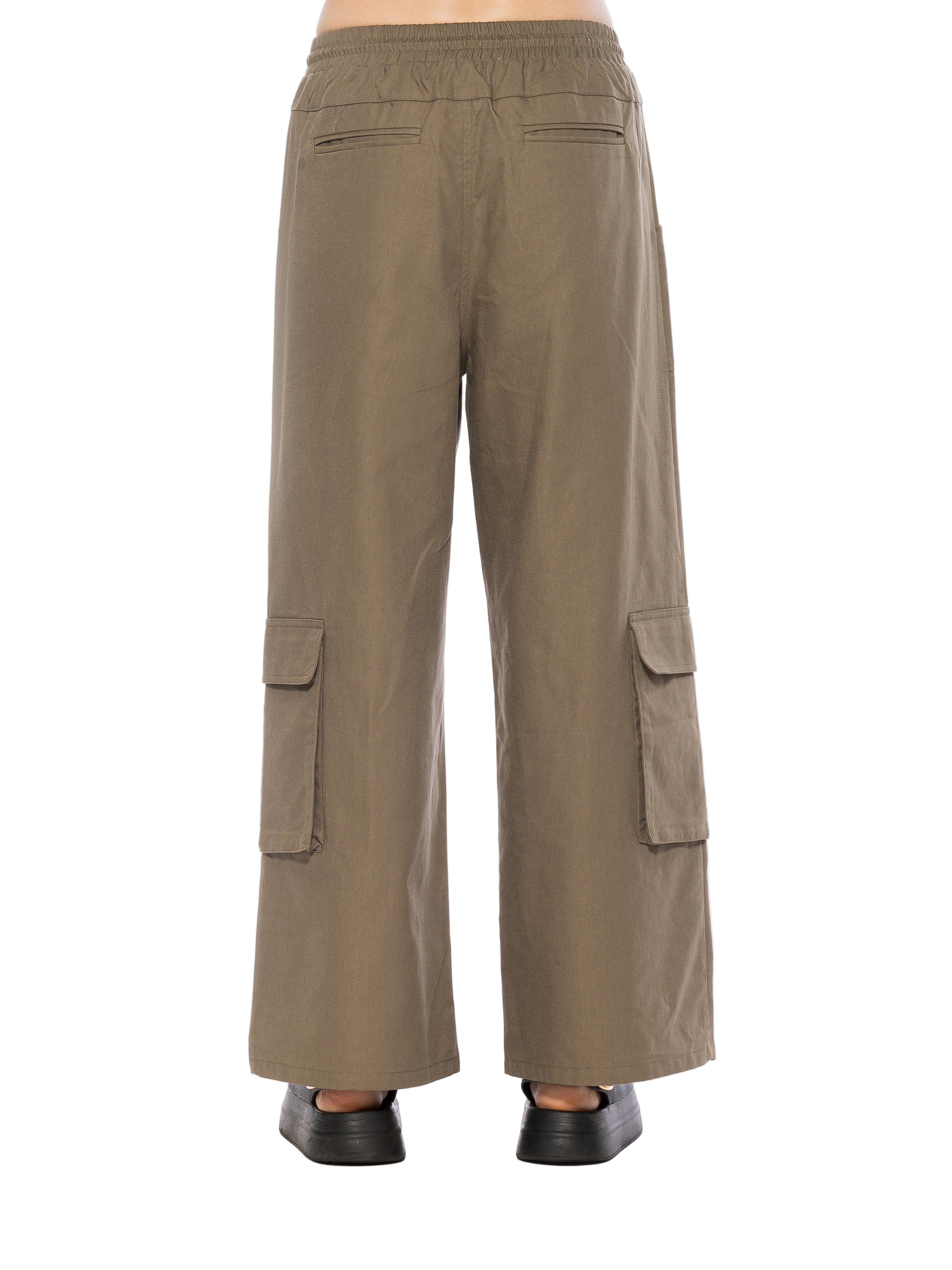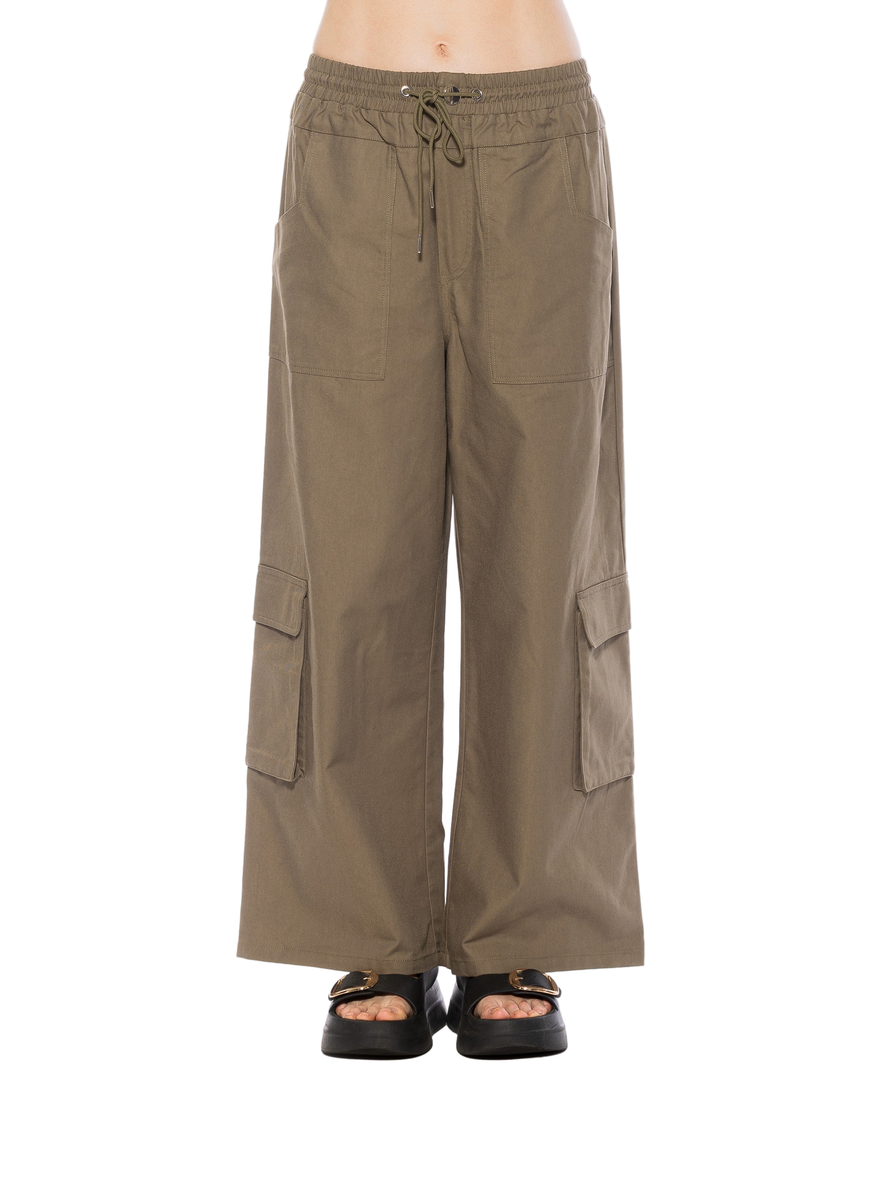 • Wide-leg cut with utility cargo pockets at sides and welt pockets at back
