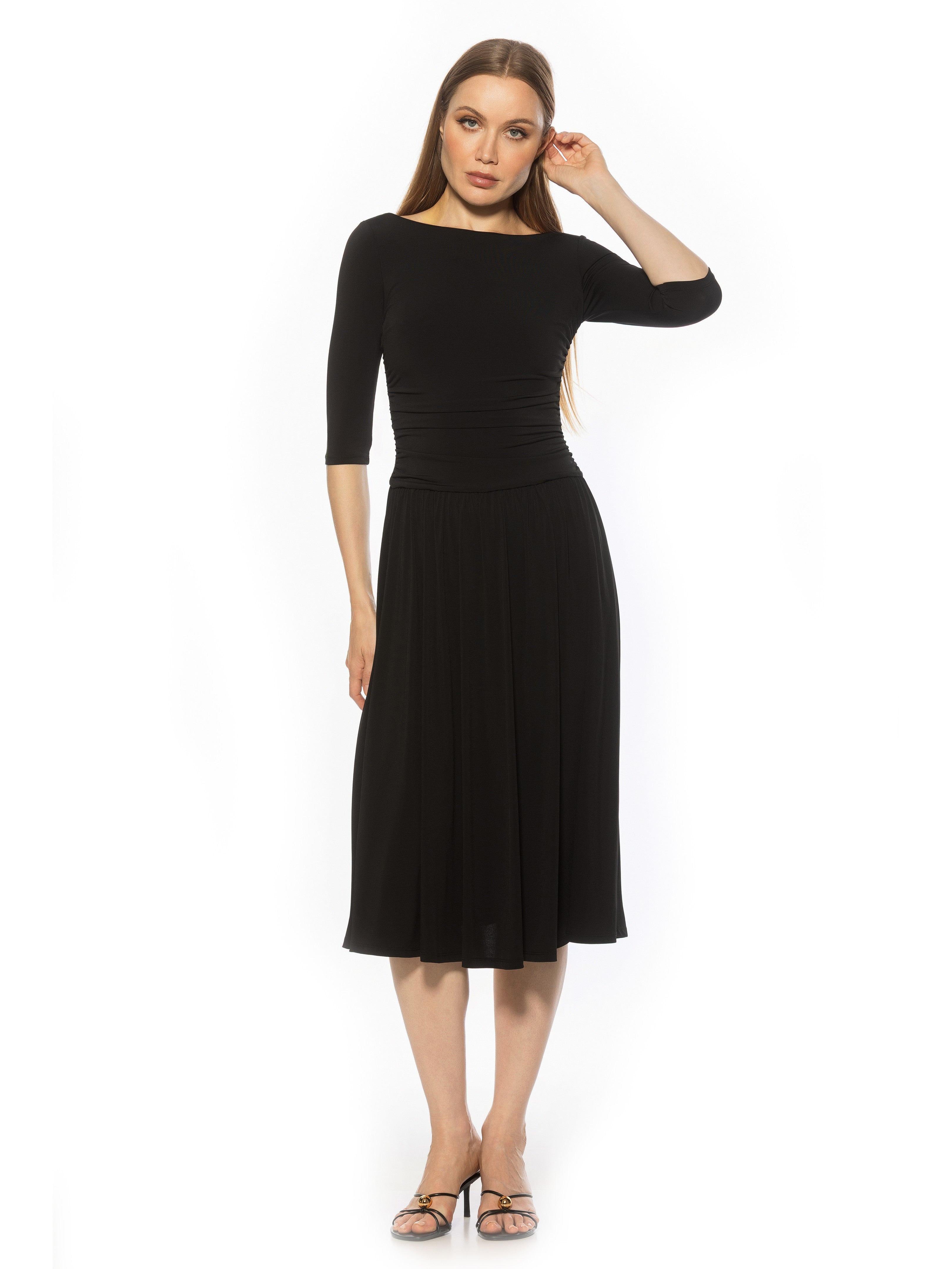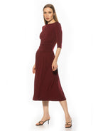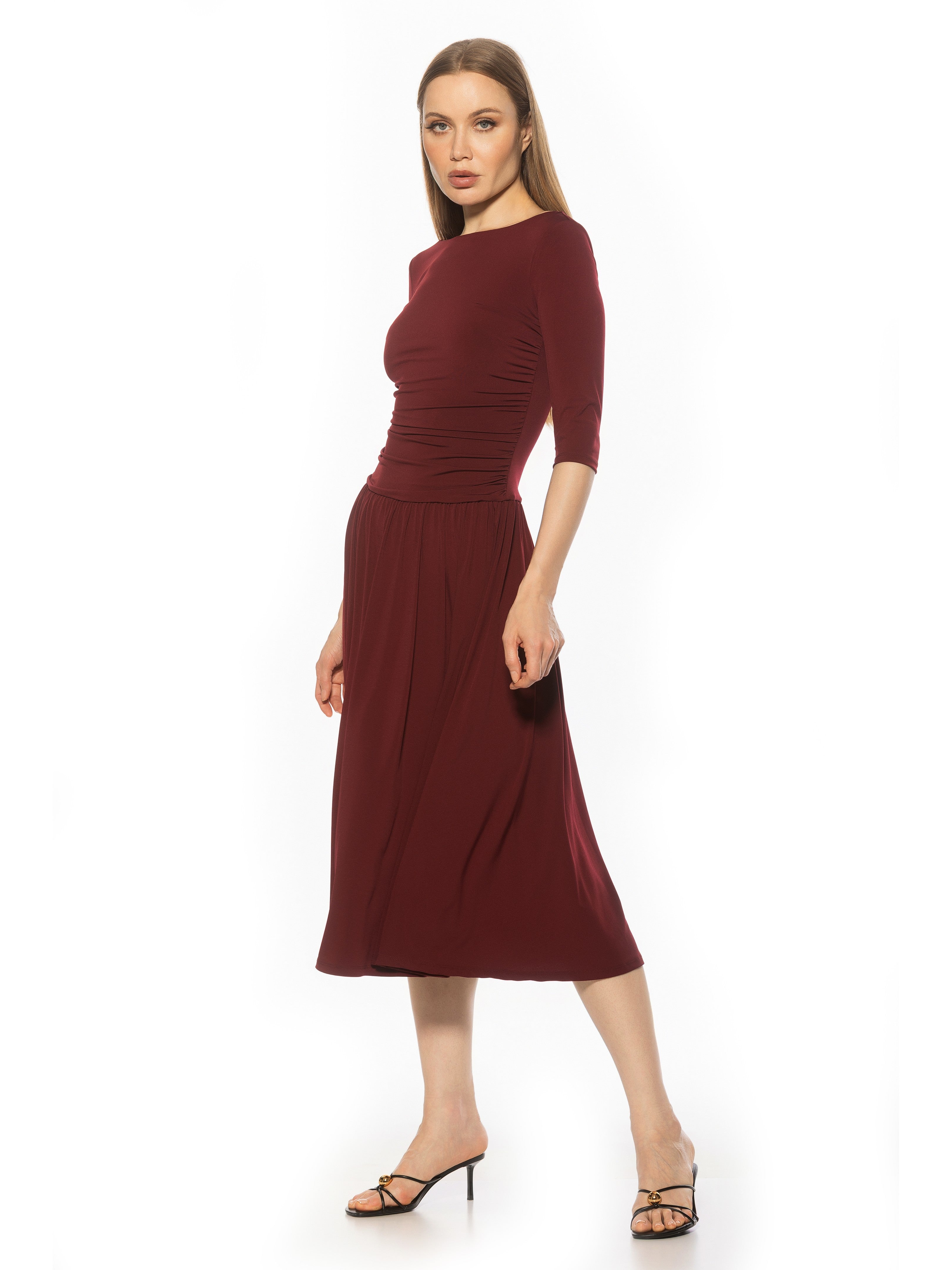 The Jada Boat Neck Ruched Dropped Waist Maxi Dress Is A Must Have Piece. This Dress Features Short Sleeves, Dropped Waist, And Long Skirt. This Item Fits True To Size.