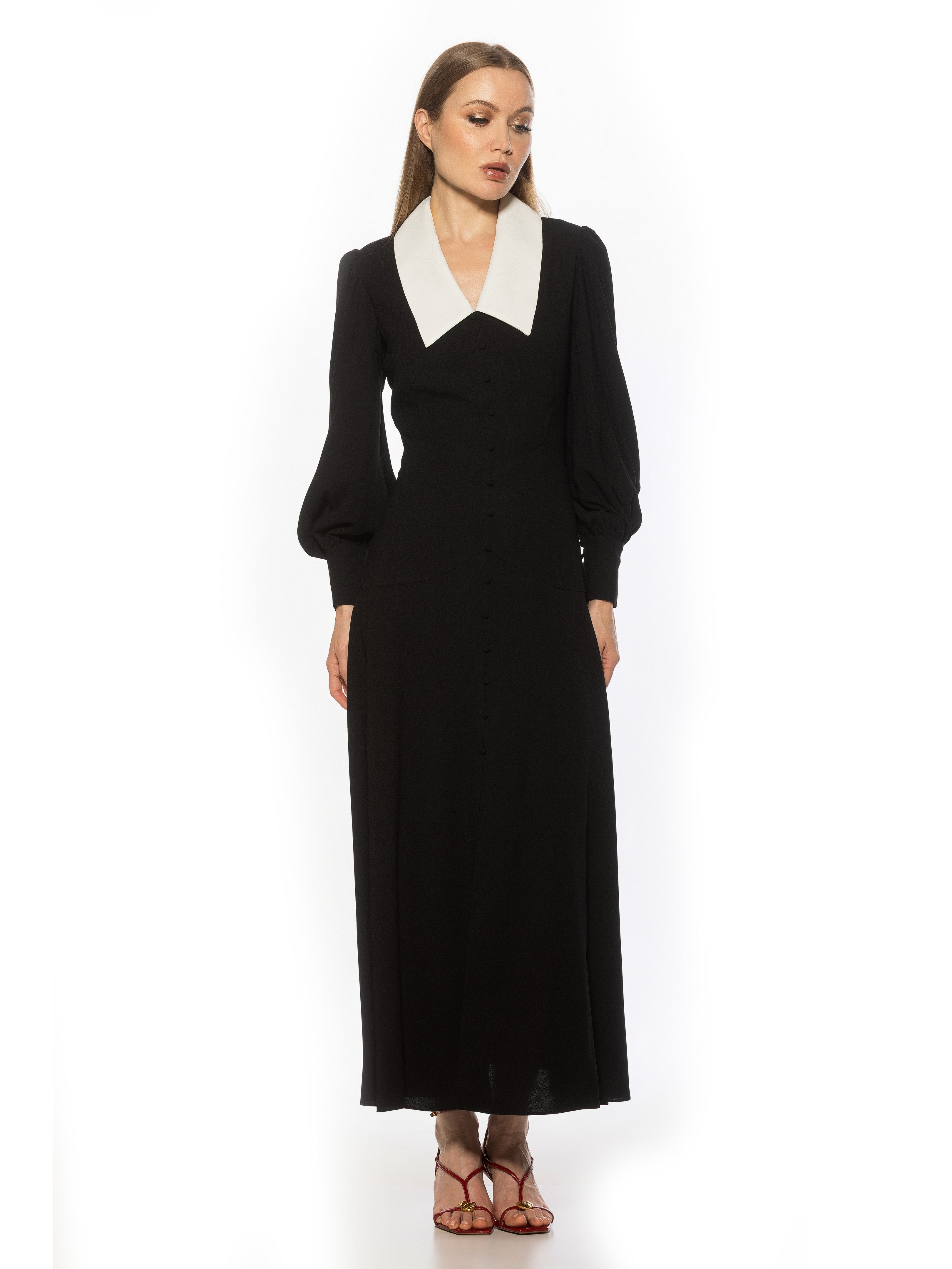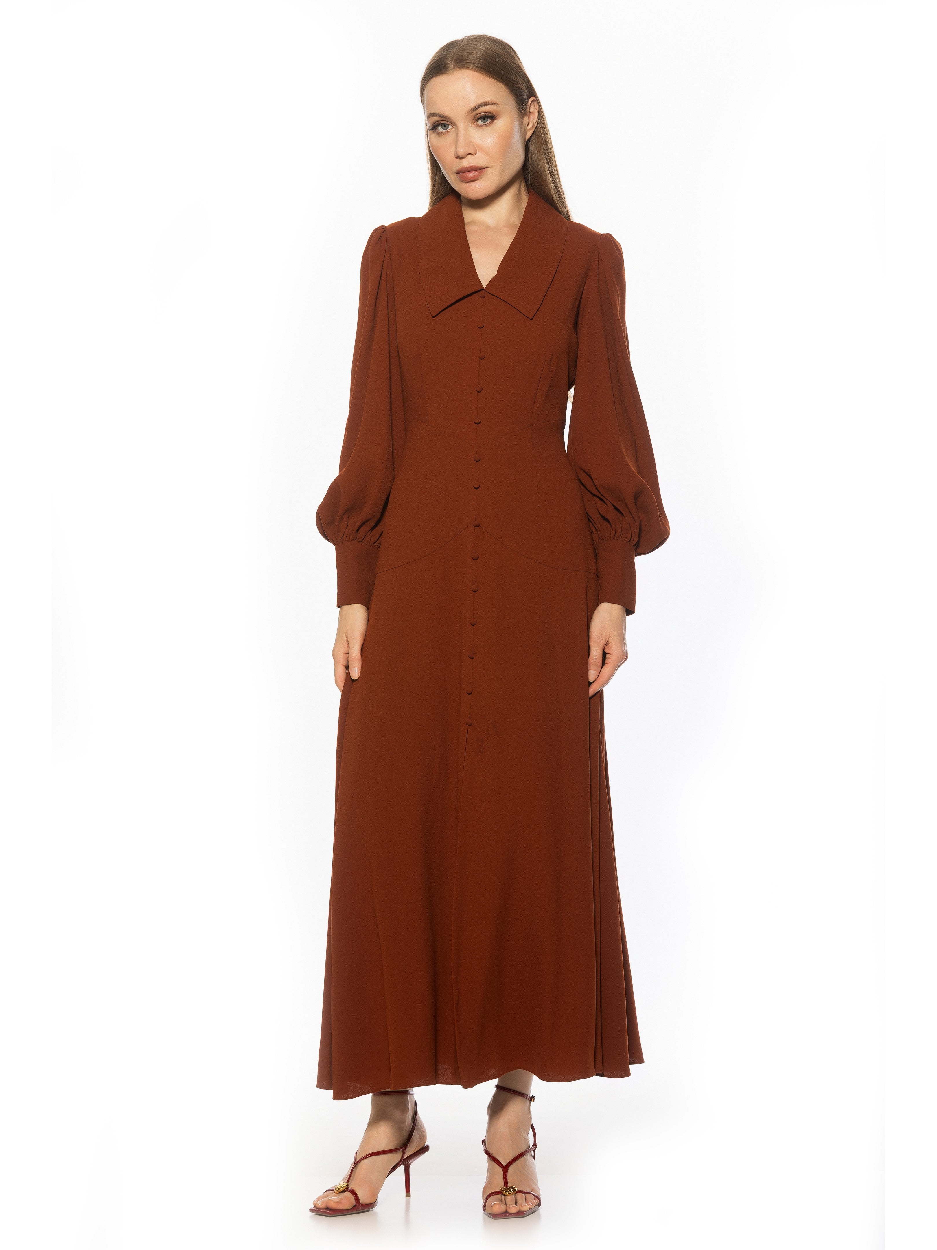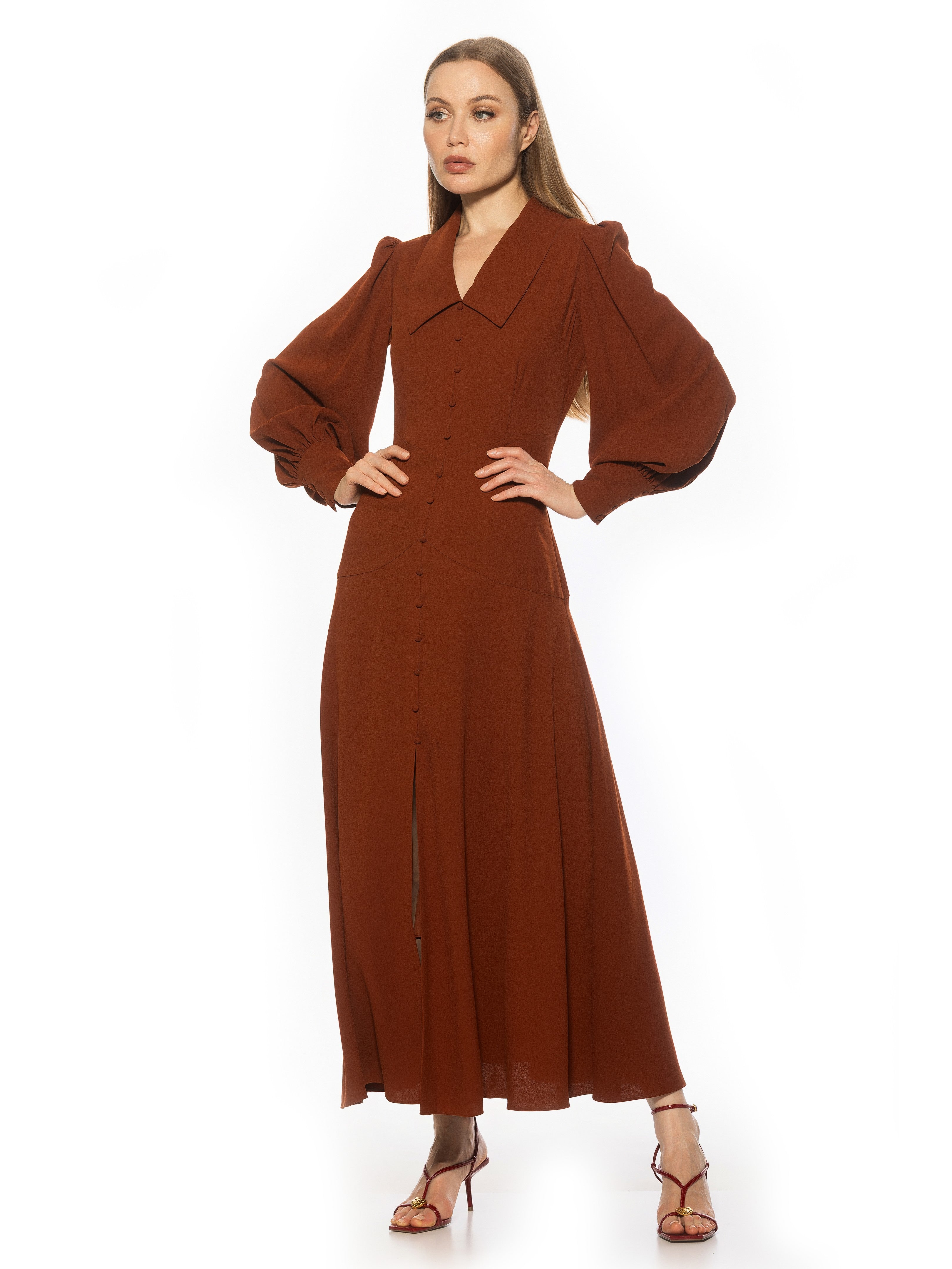 The Kate Blouson Sleeve Collared Button Down Dress Is A Must Have For Your Wardrobe. This Dress Features Large Collar, Front Buttons, And Blouson Sleeves. This Dress Fits True To Size.