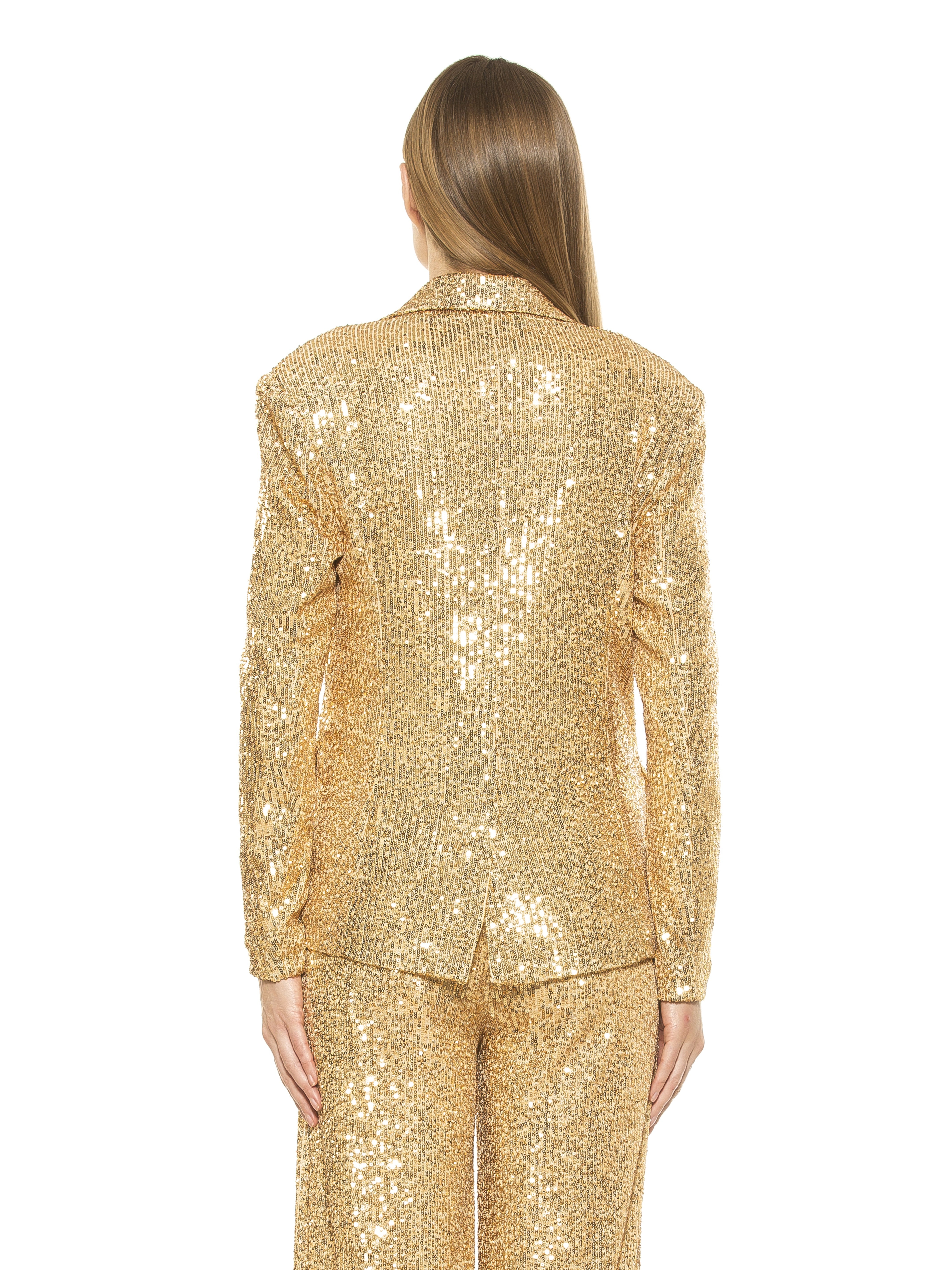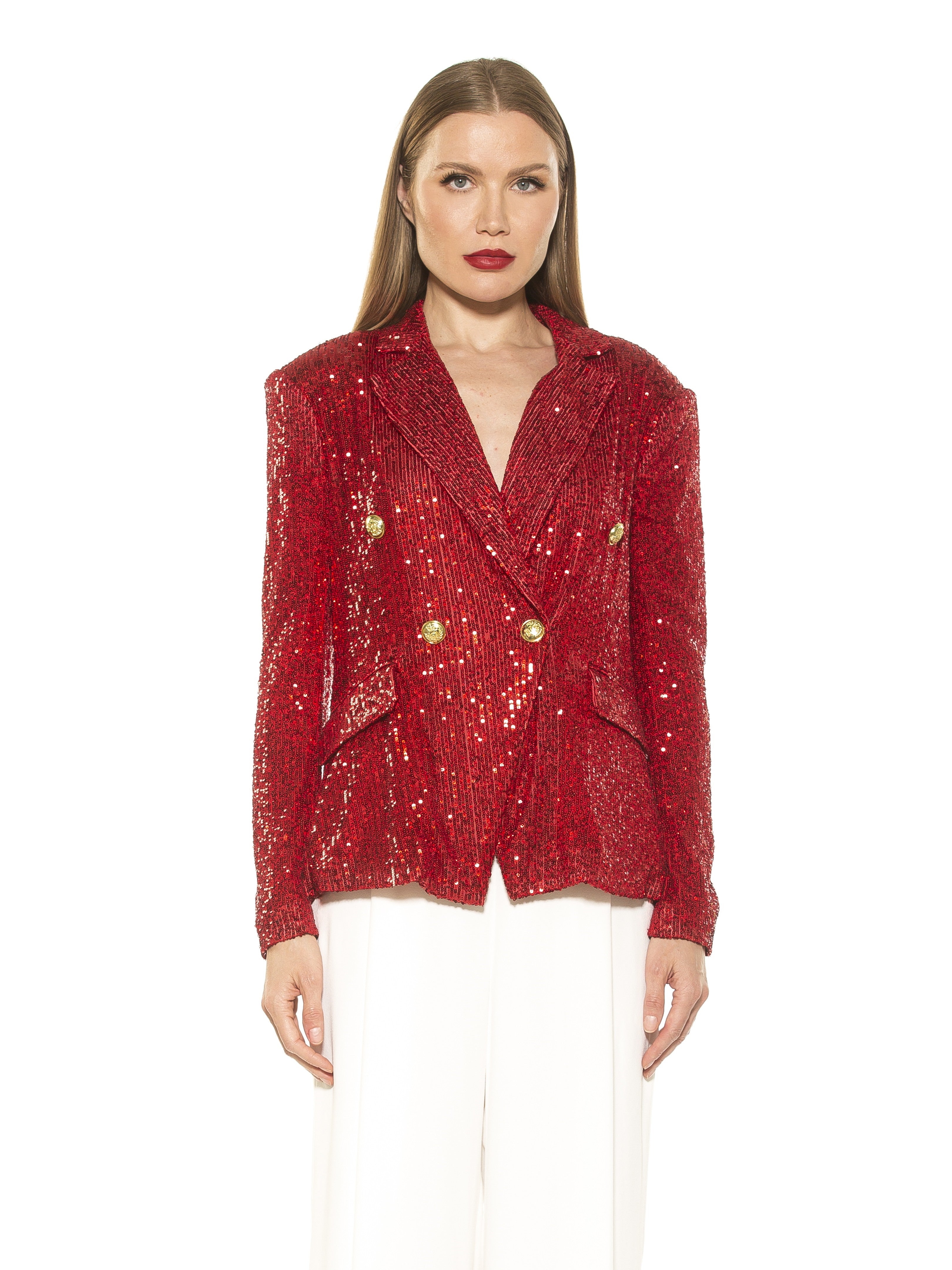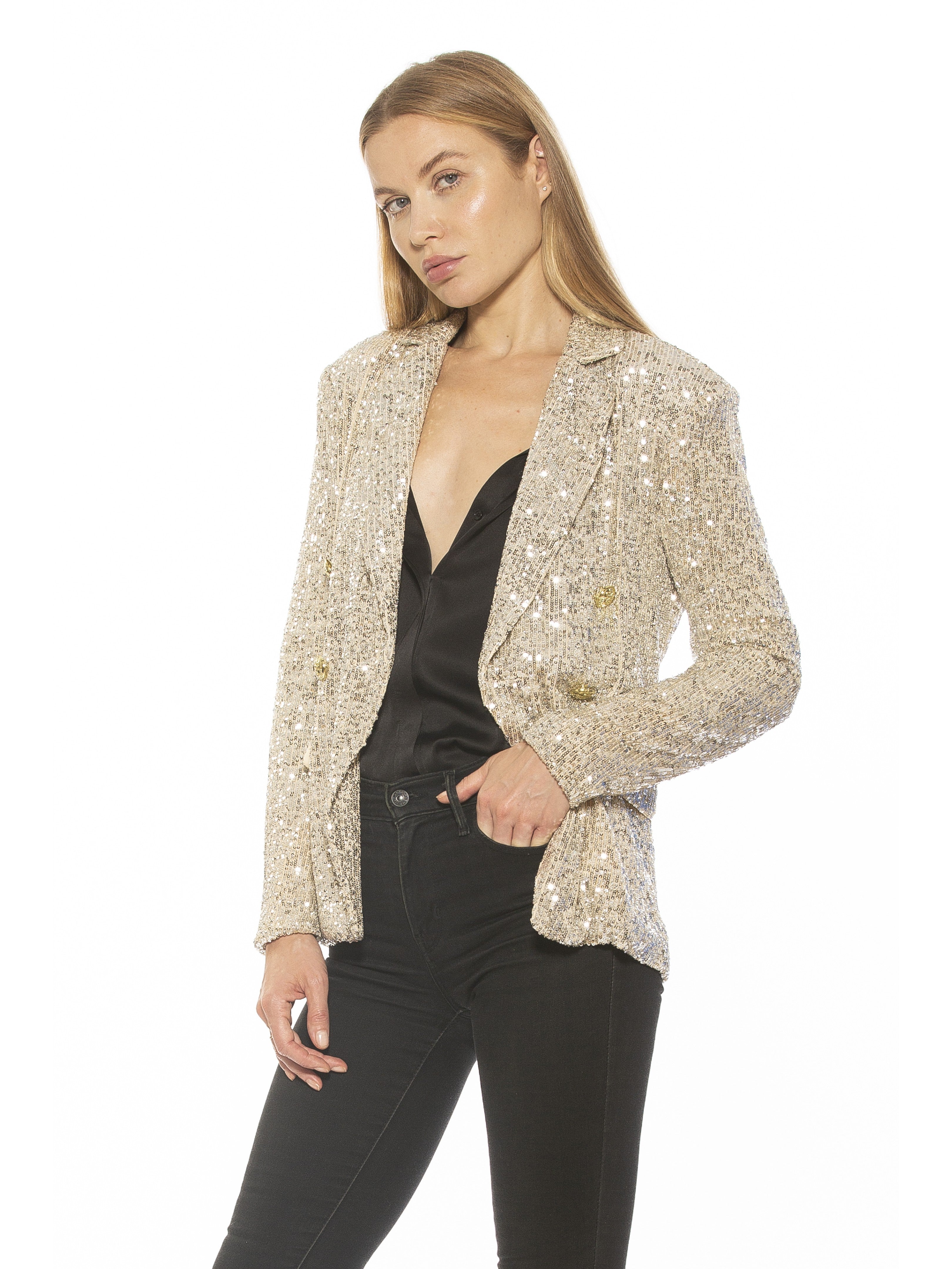 The Abbi Blazer is an alluring choice for any special occasion. Adorned with shimmering sequins and golden hardware, this statement blazer adds an extra touch of luxury to your look.