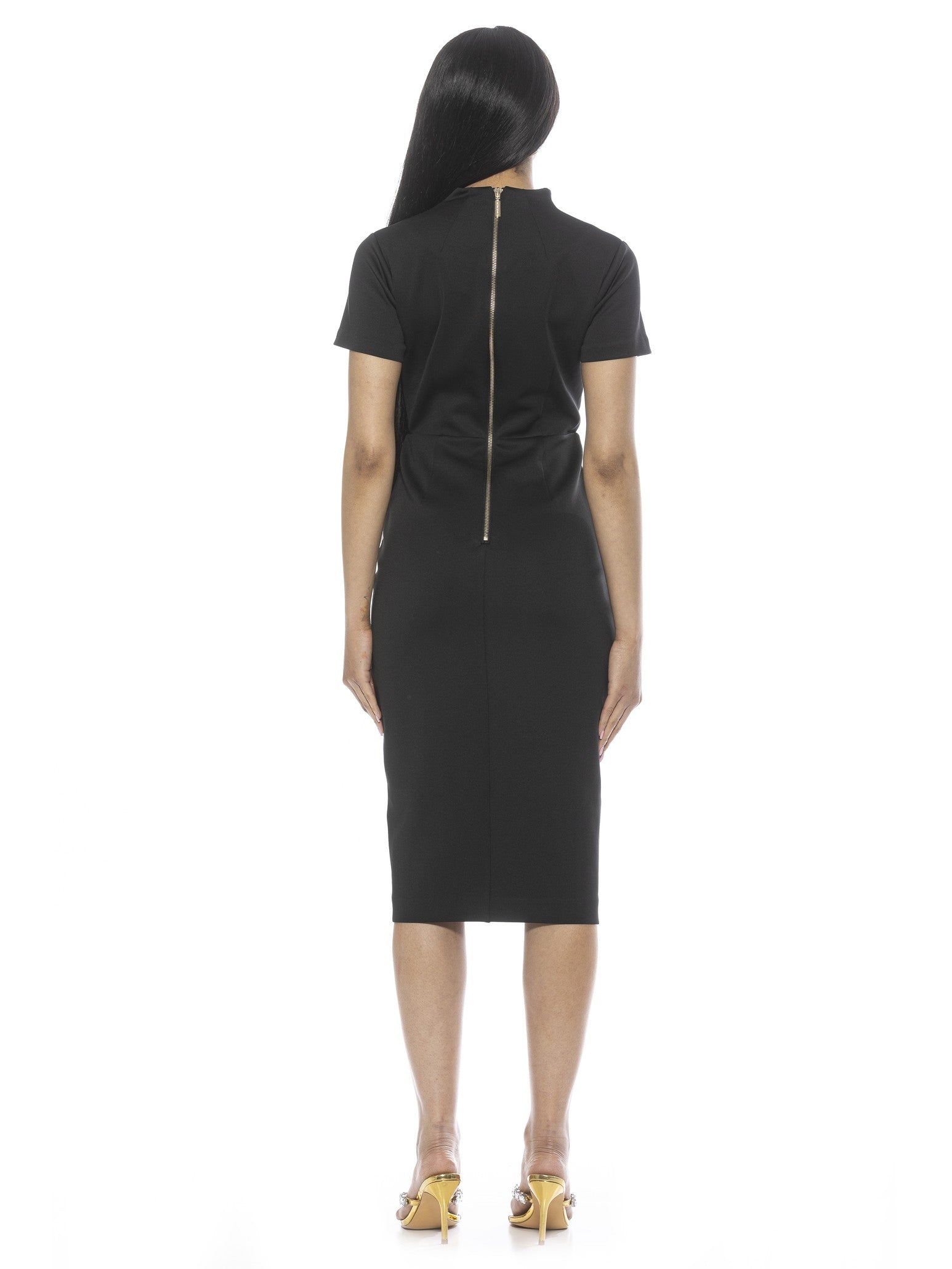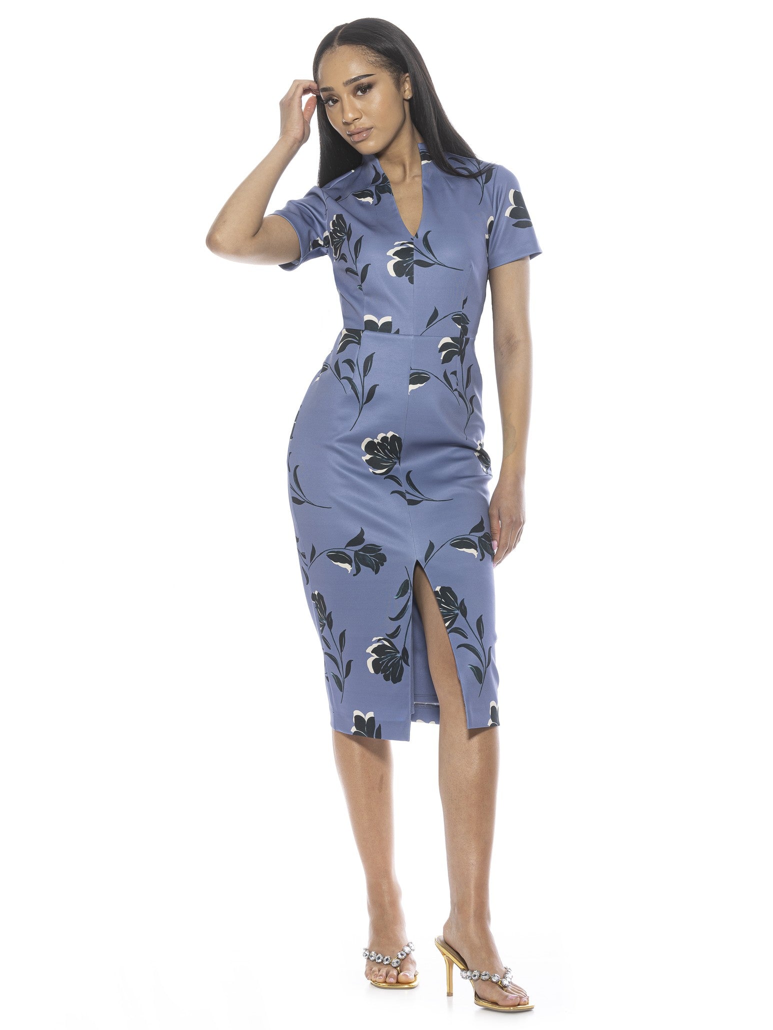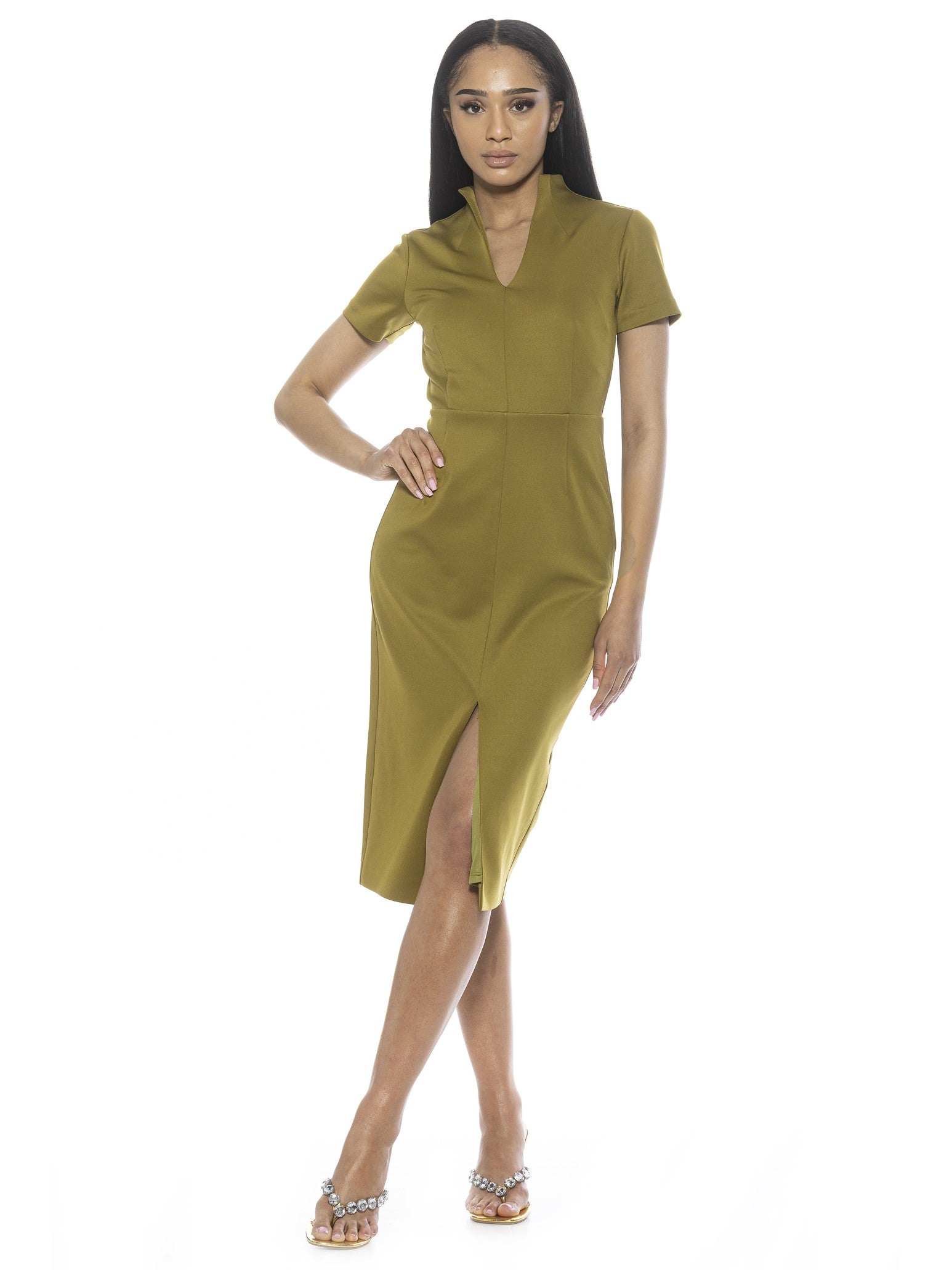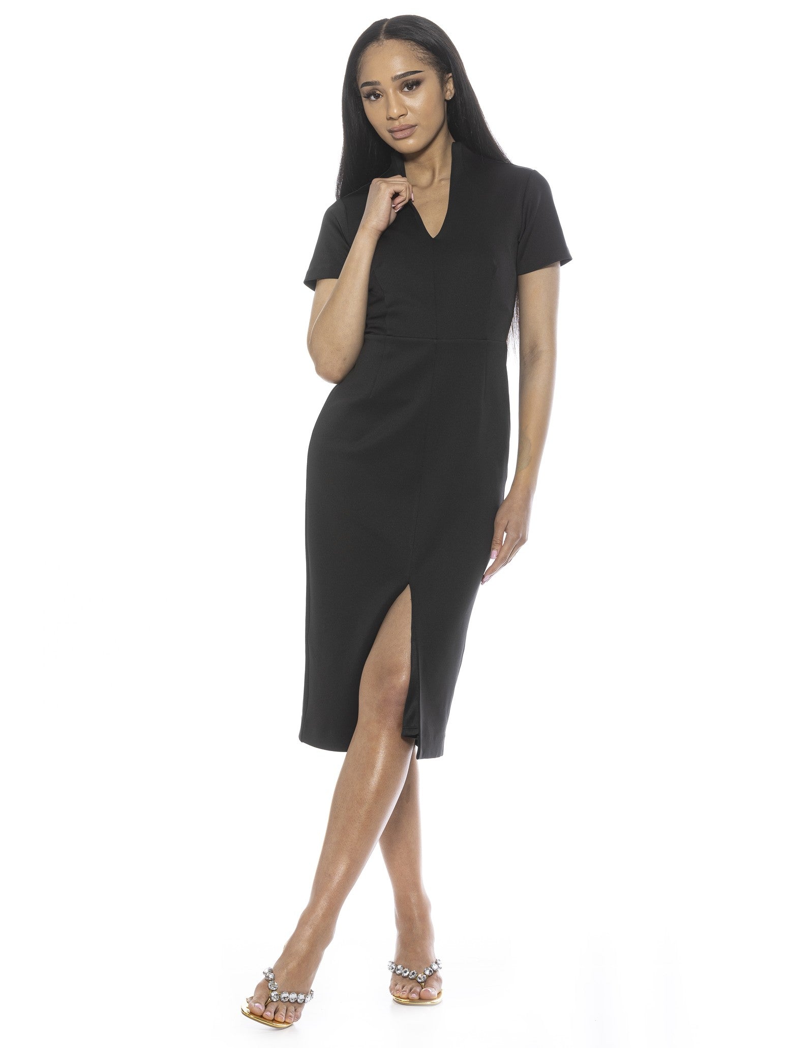 Elevate your style with our Acadia Dress. The flattering U Neck and Short Sleeve design add timeless sophistication, while the alluring Front Slit exudes confidence. This versatile Cocktail Dress is a must-have for any special occasion.