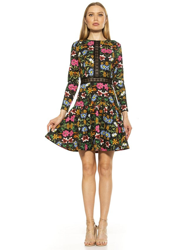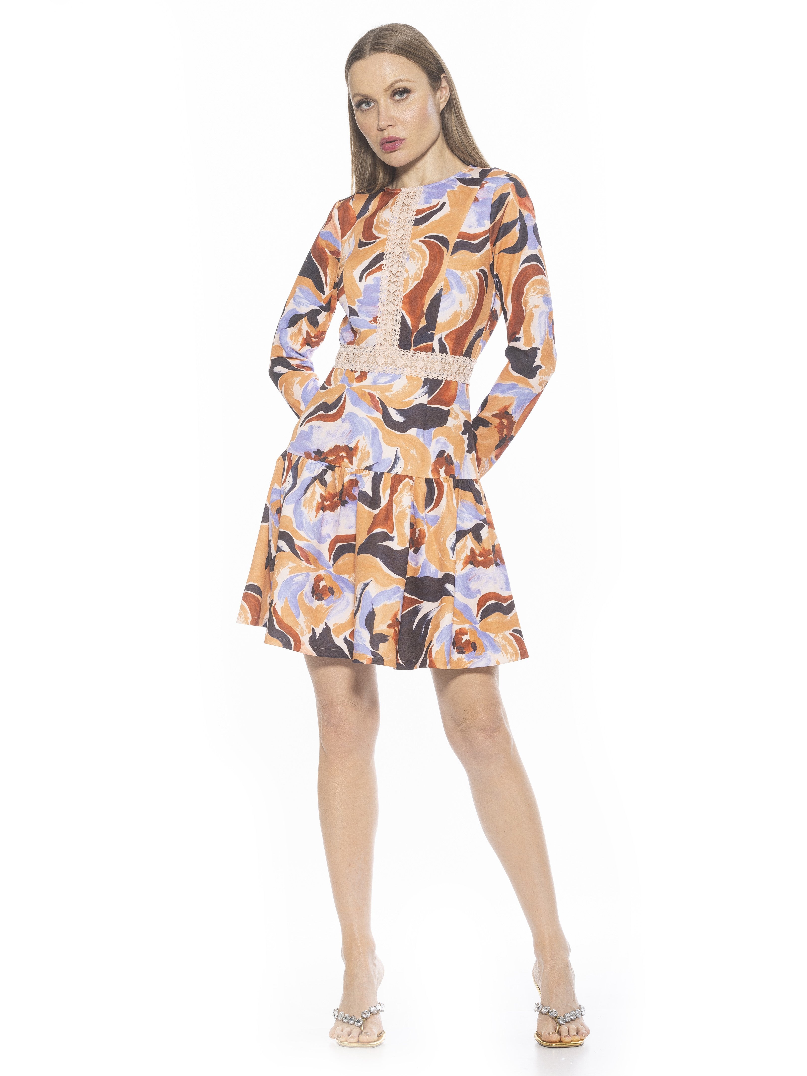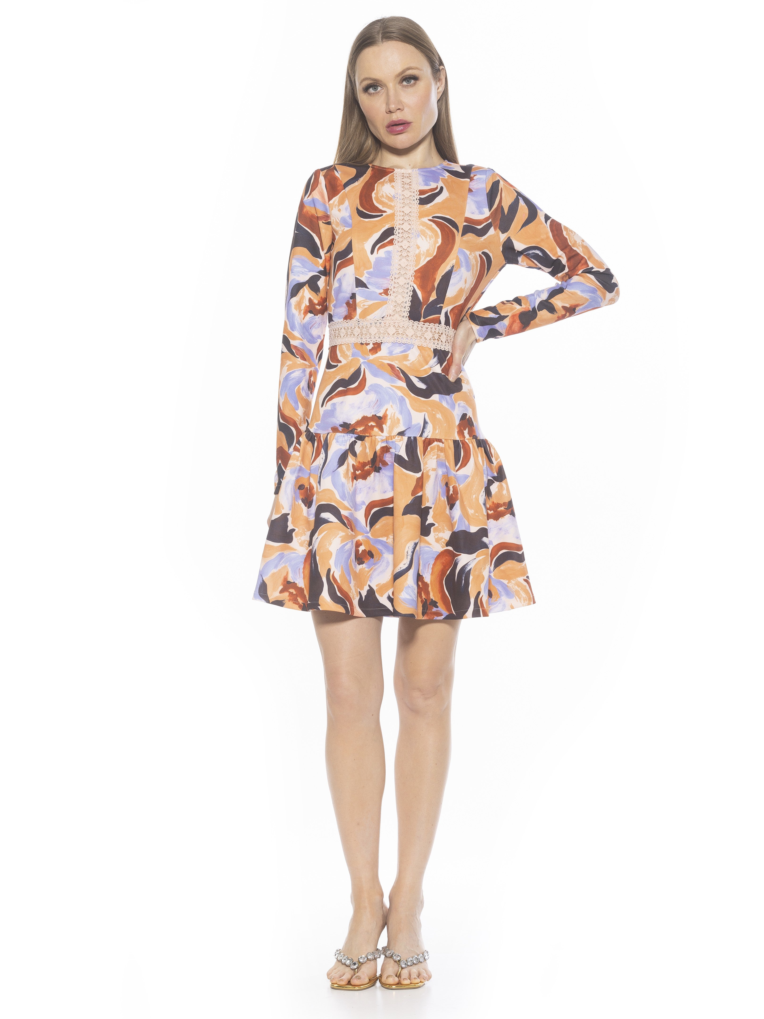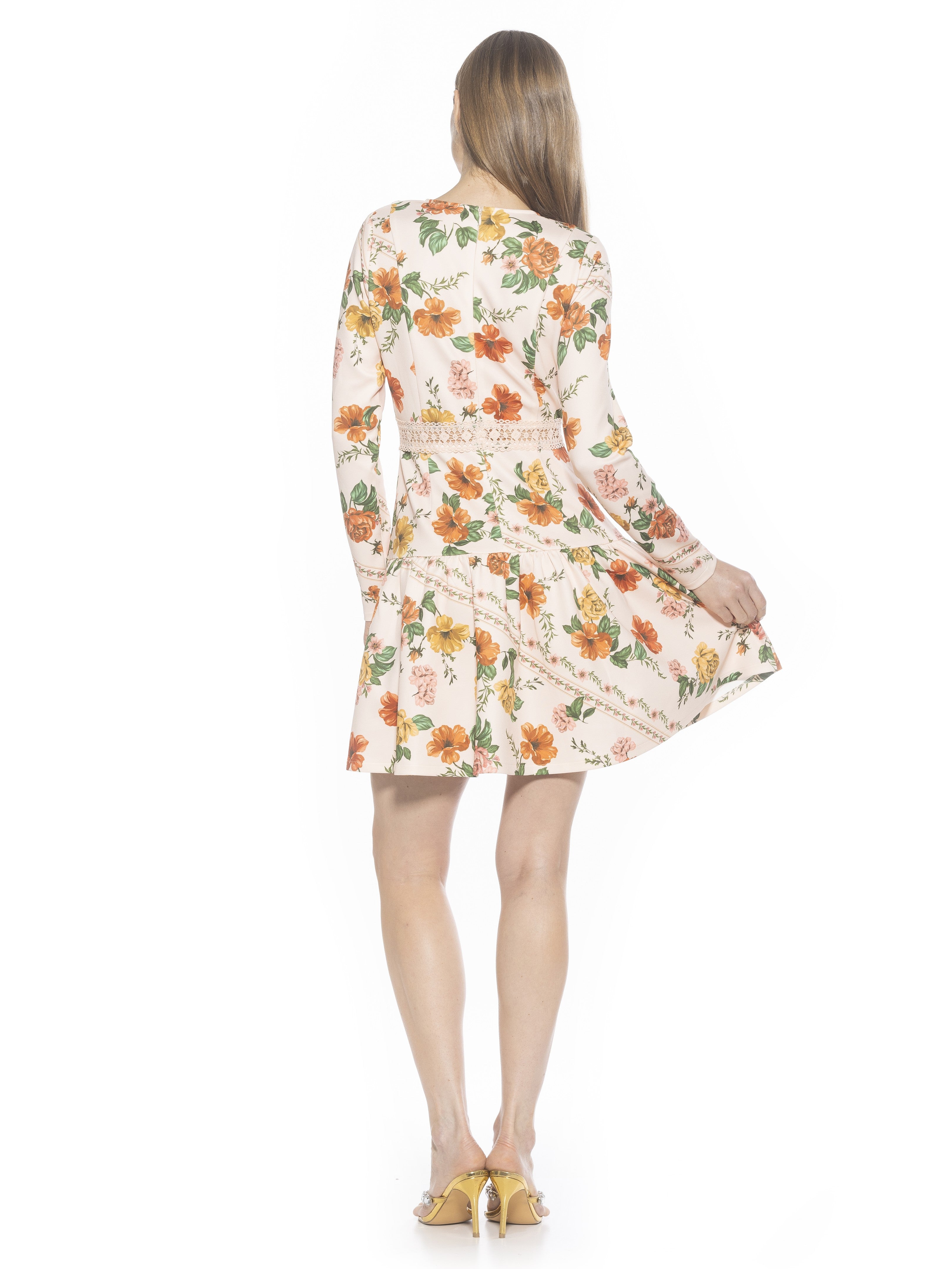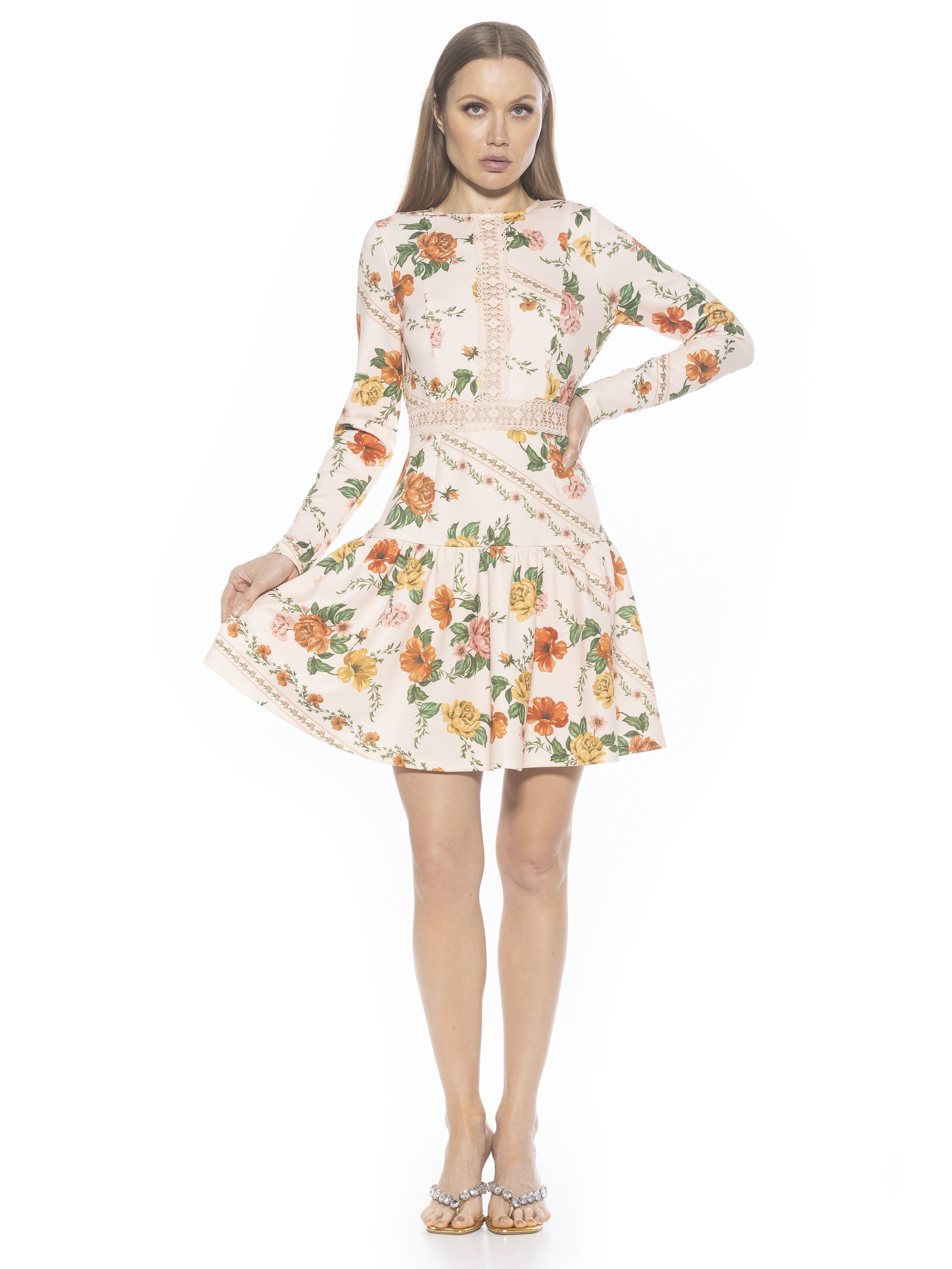 Indulge in luxury with our Alexa Lace Trim Floral Print Dress. This exquisite mini dress features elegant long sleeves and delicate lace trim, adding a touch of sophistication to the vibrant floral print. Elevate your style with this exclusive piece.