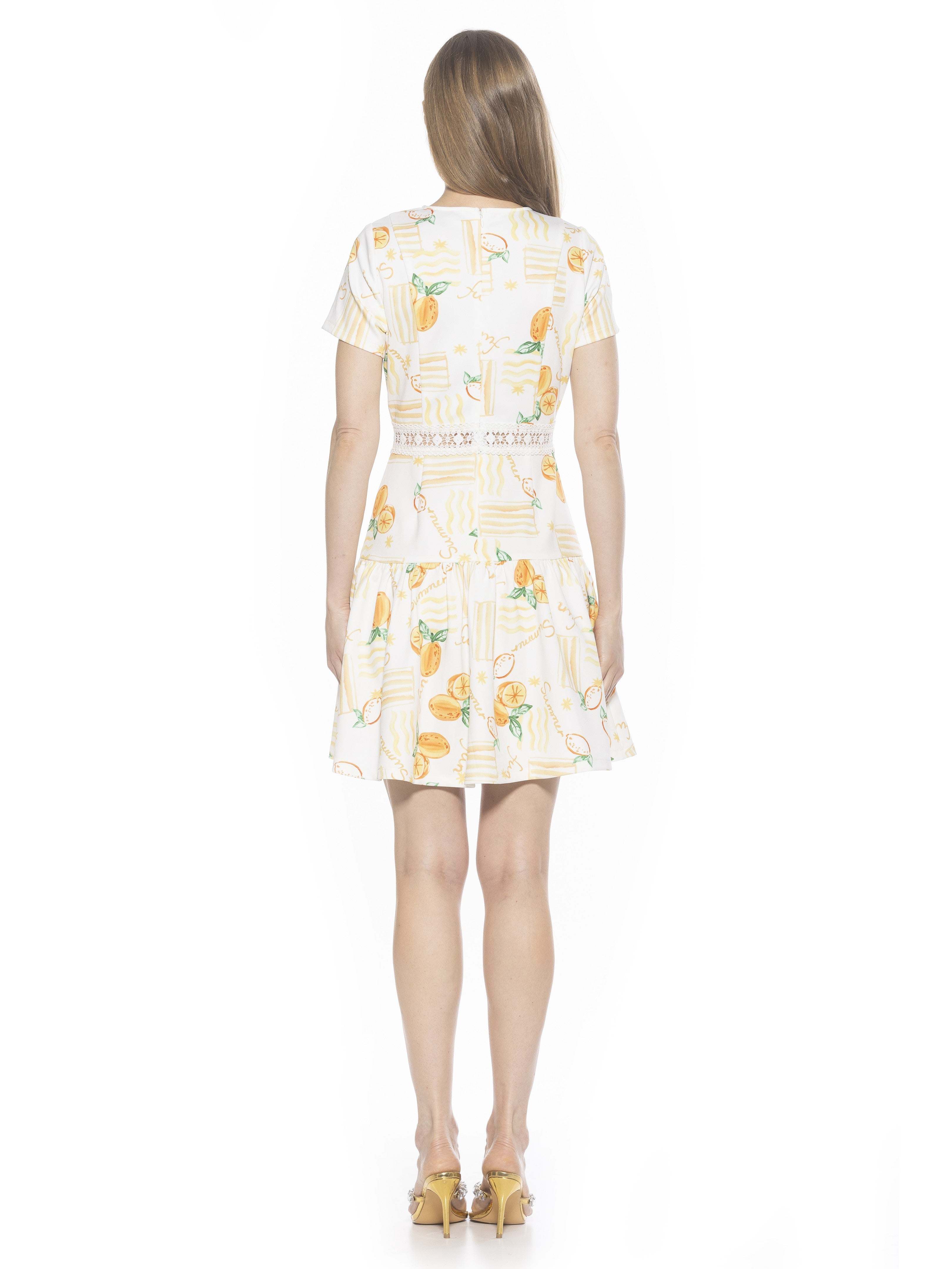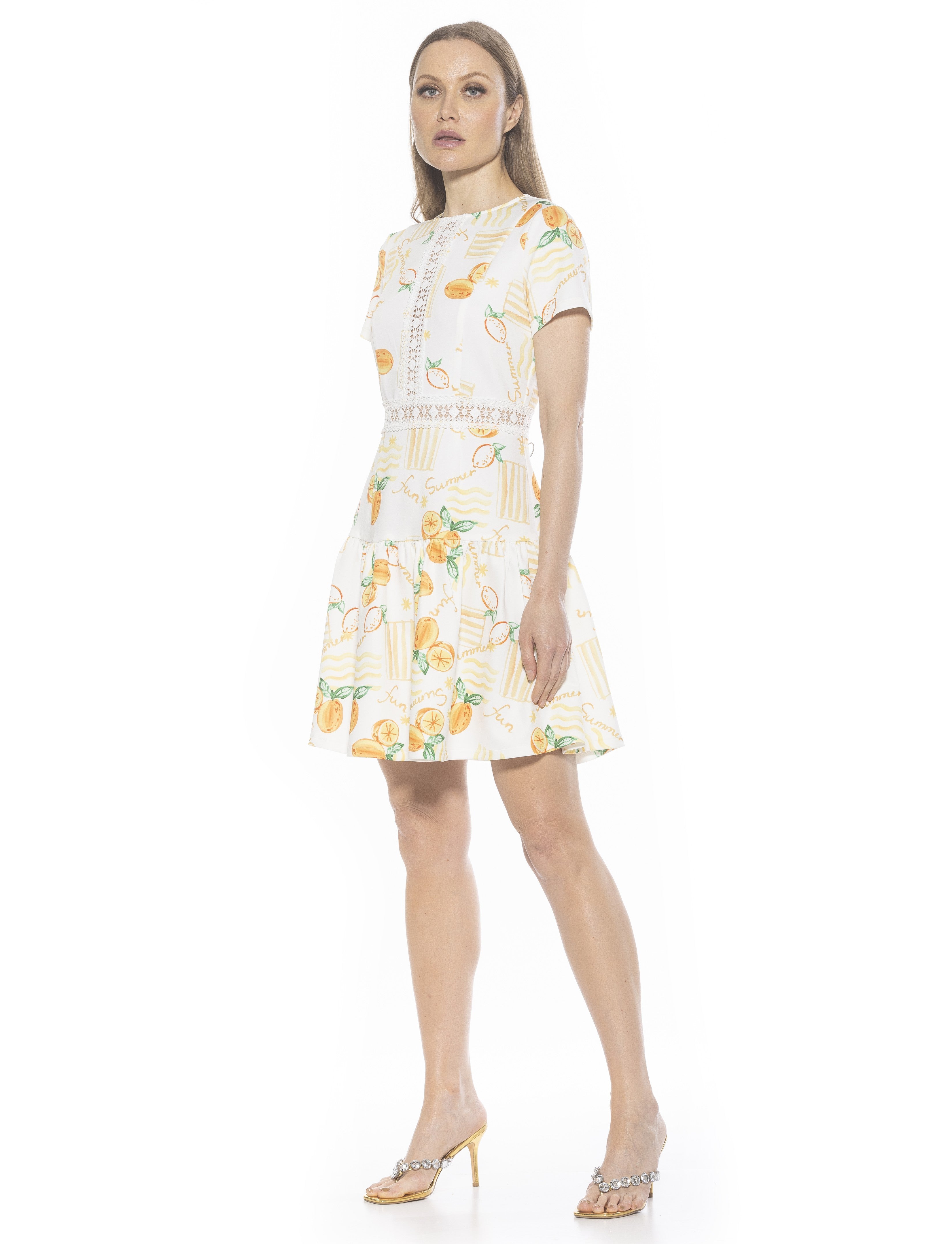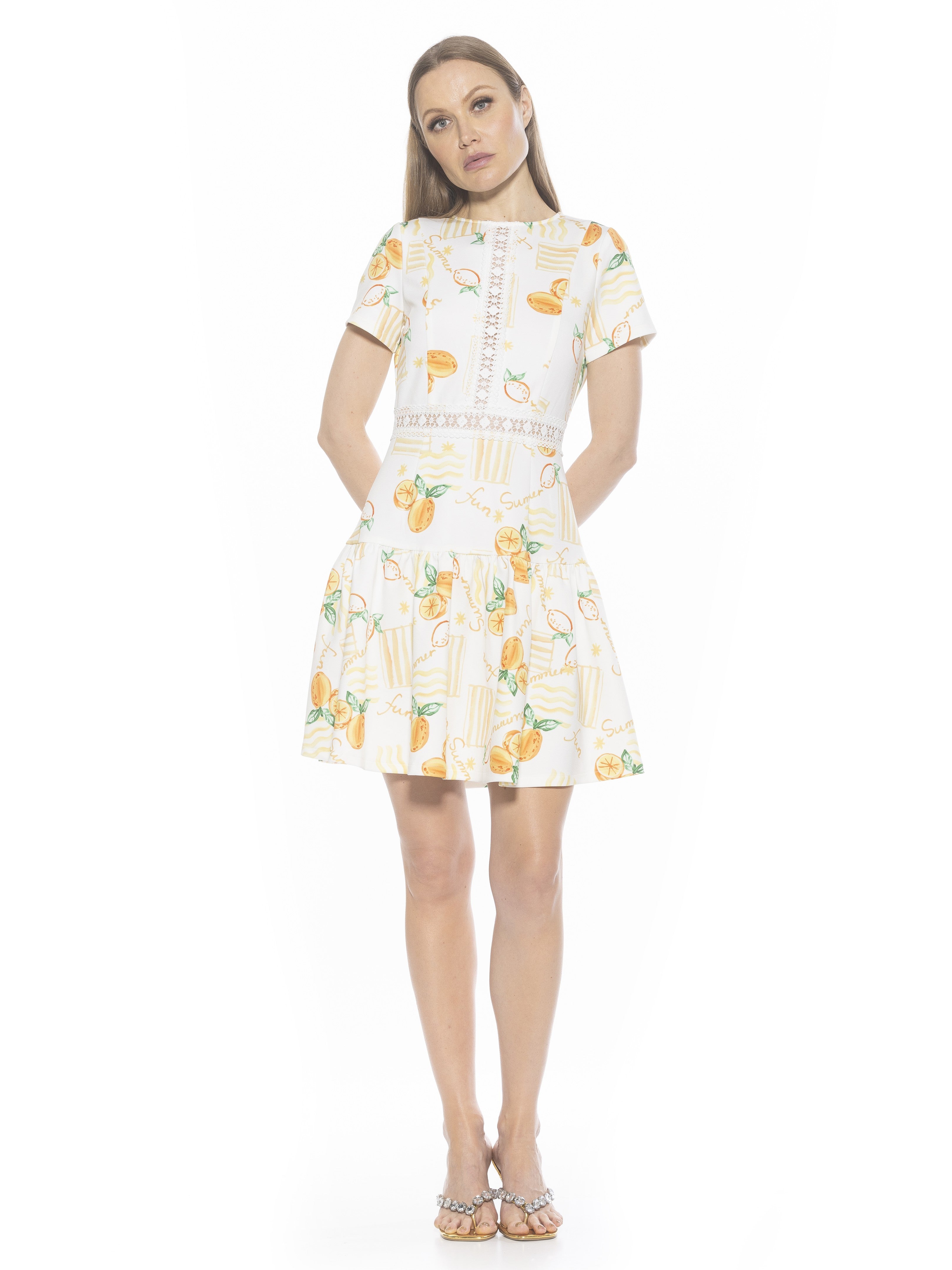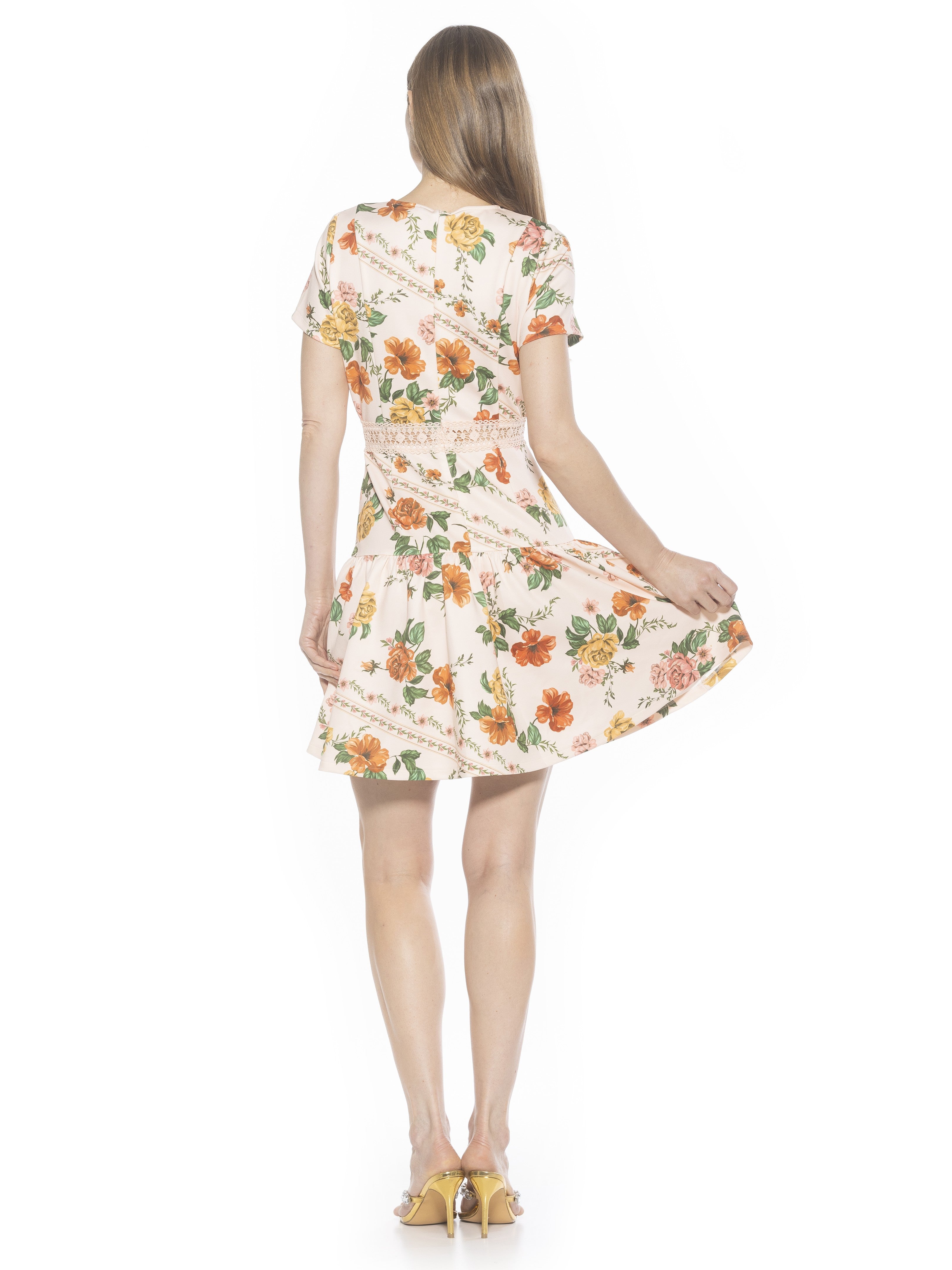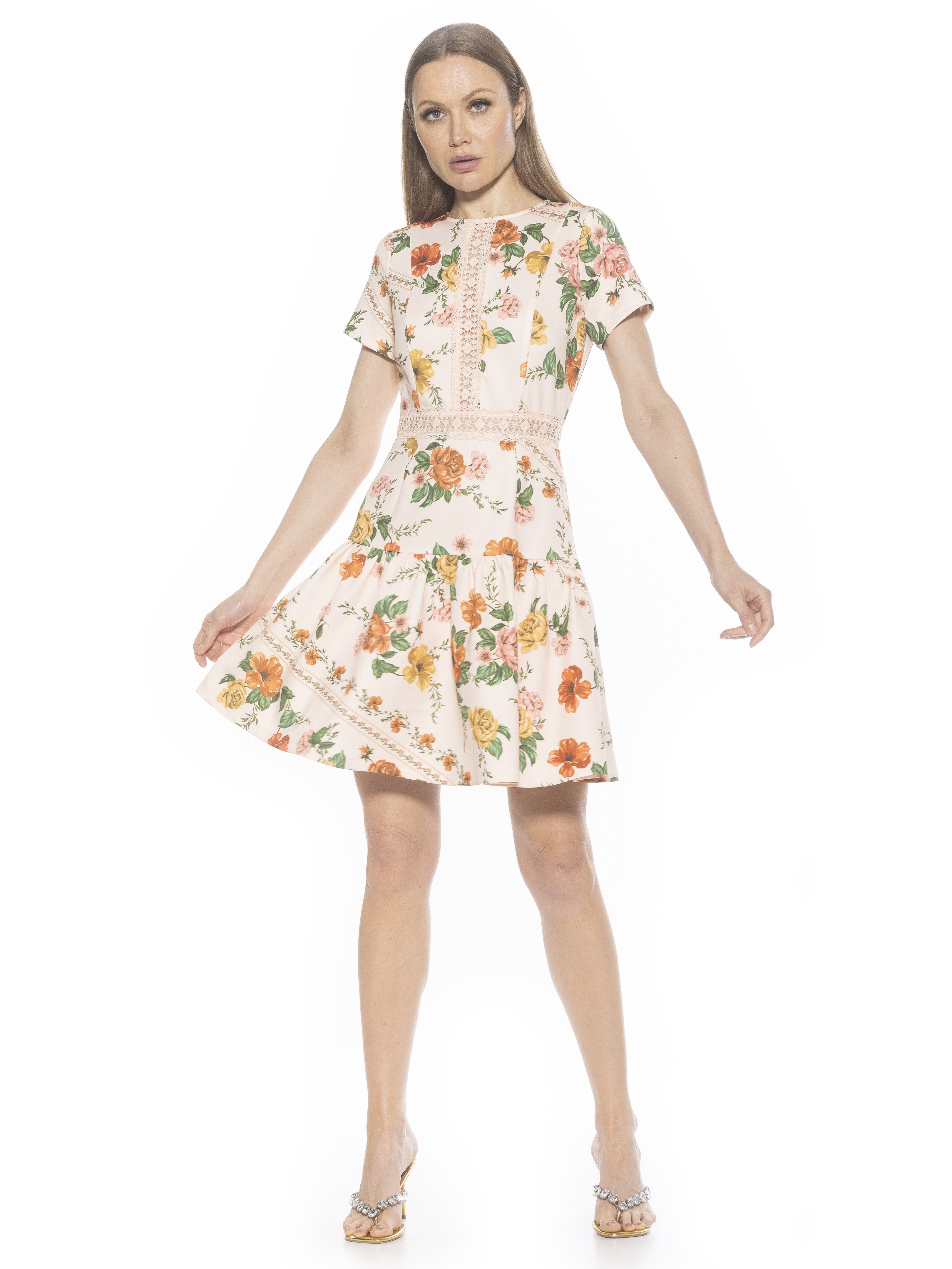 Indulge in the luxurious elegance of our Alexa dress. Featuring delicate lace trim and short sleeves, this floral print mini dress exudes sophistication and charm. The flattering fit and flare silhouette will have you feeling like a work of art. Elevate your wardrobe with this exclusive piece.