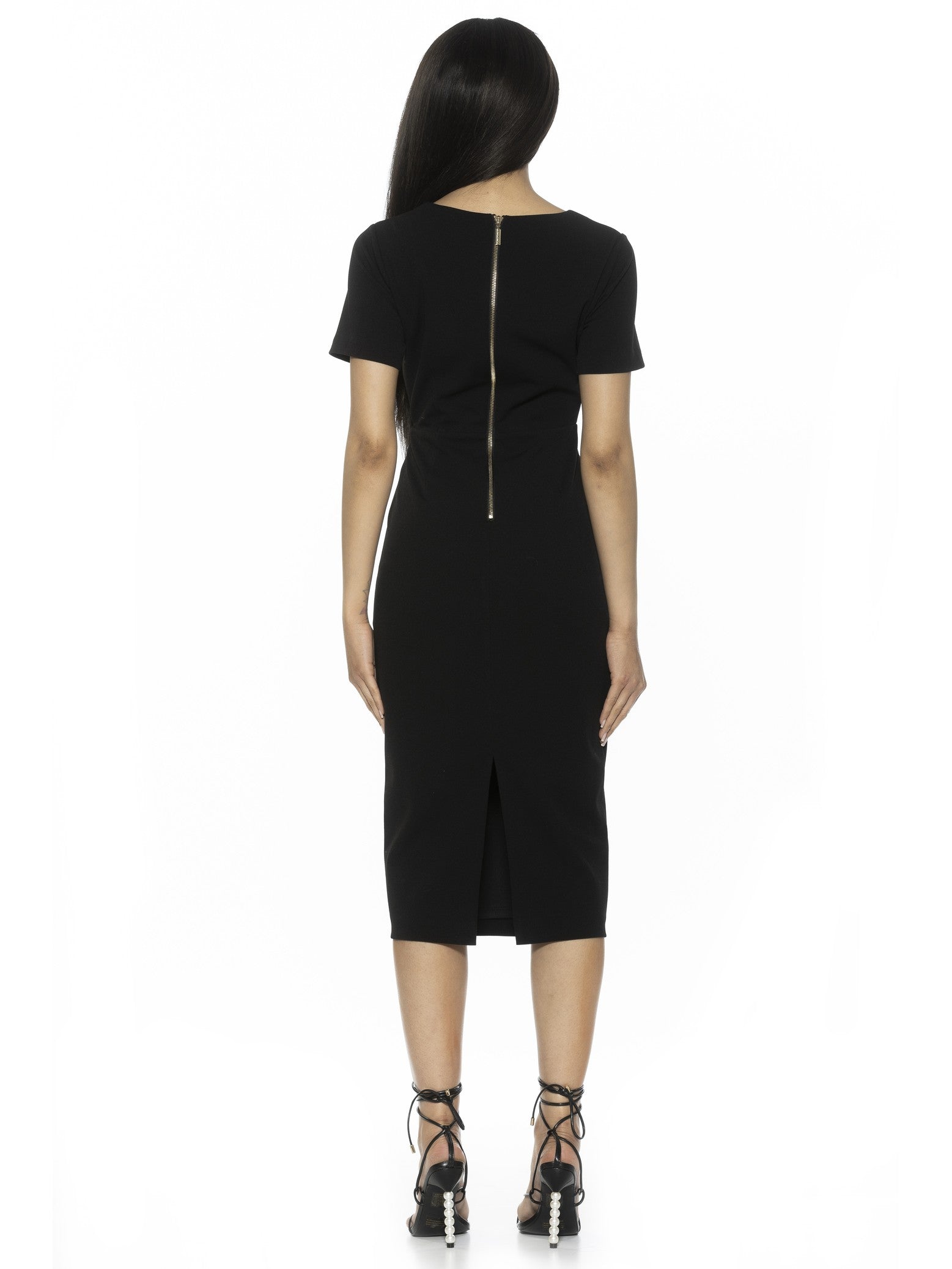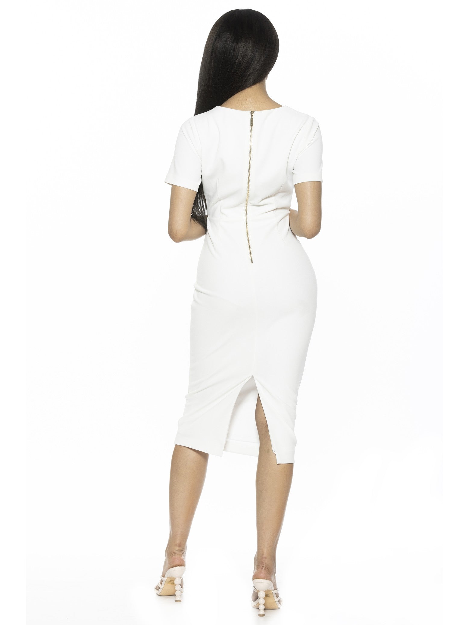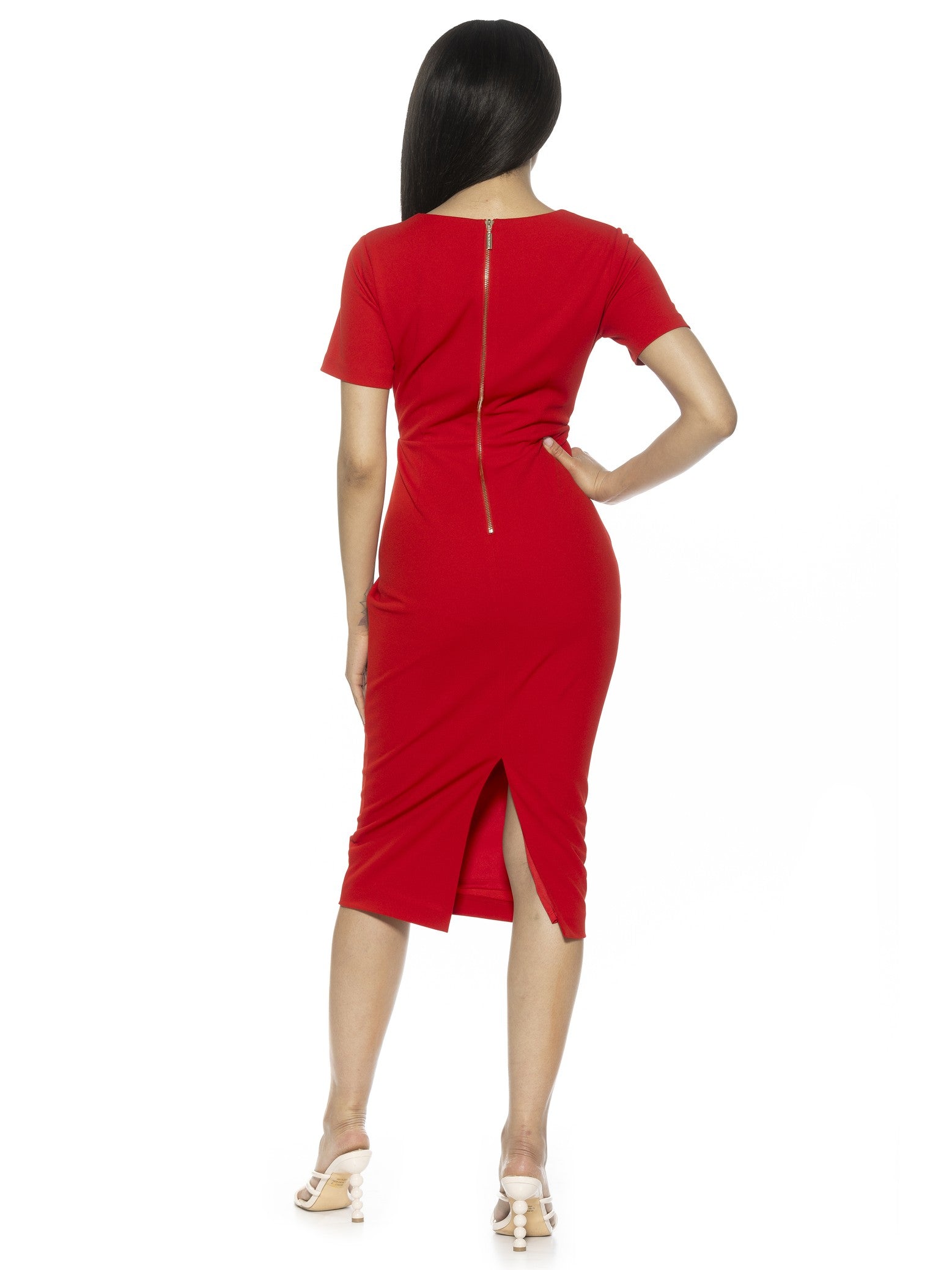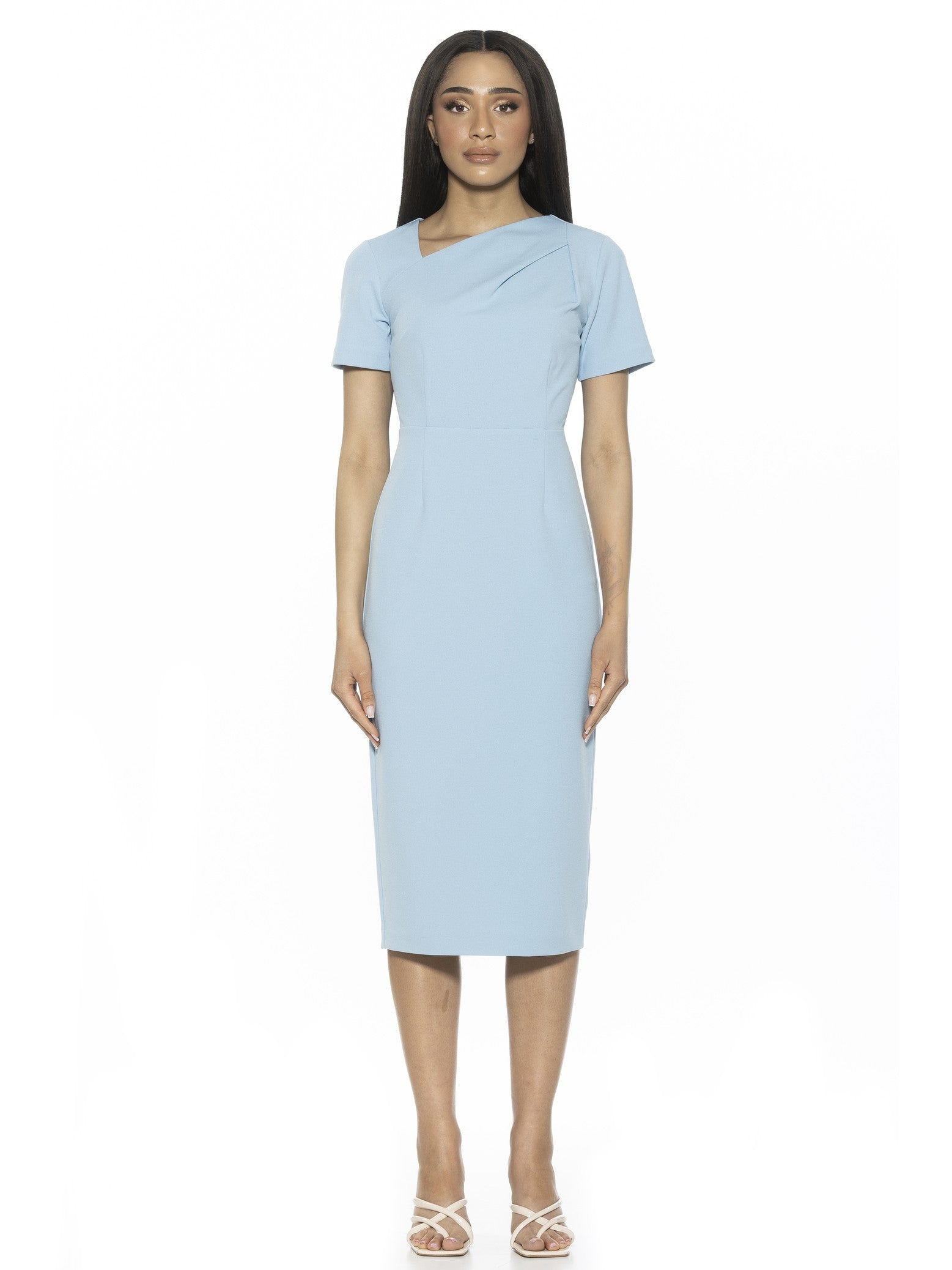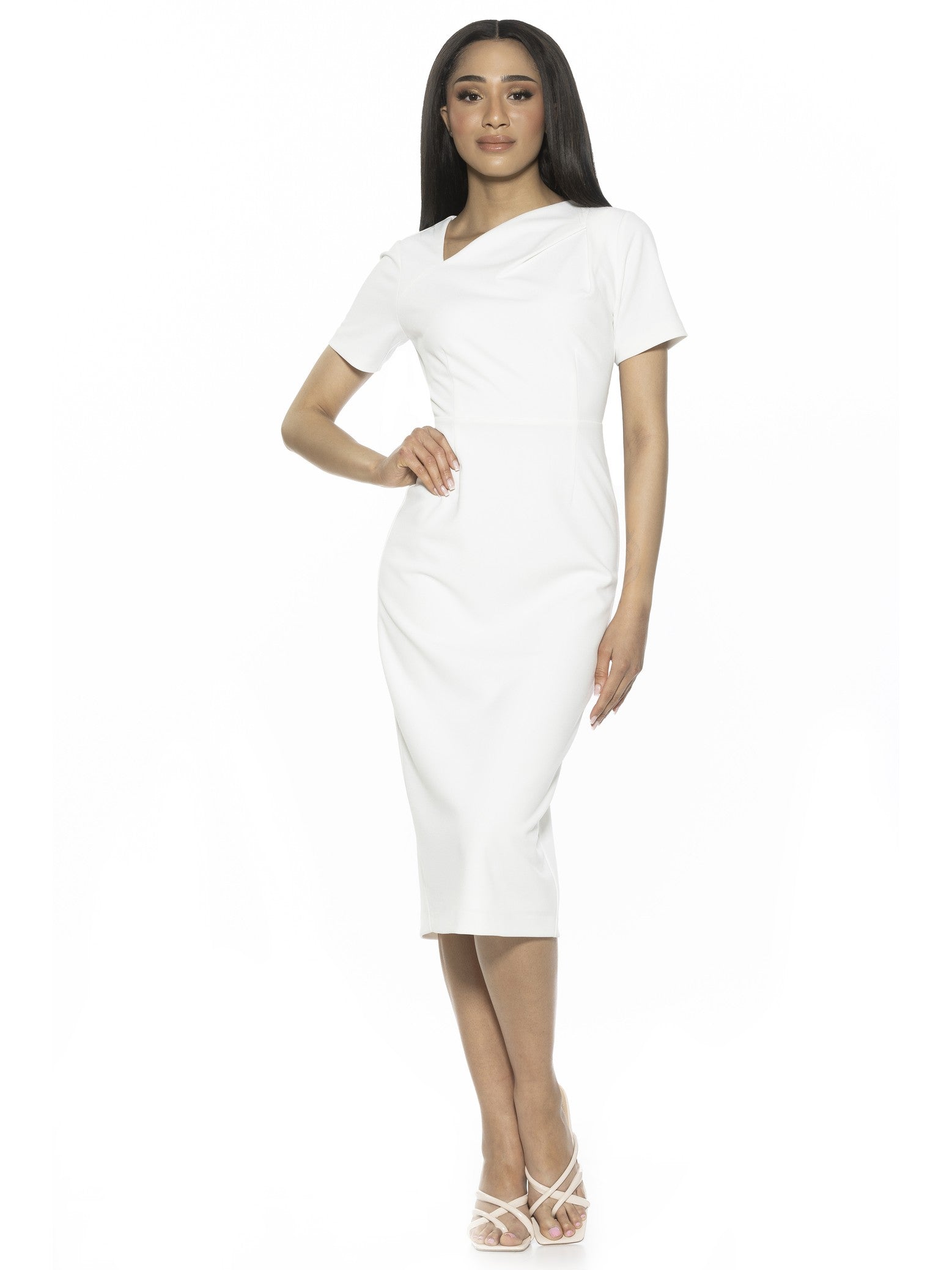 Indulge in elegance with the Angelica Dress. Boasting an asymmetrical neckline and short sleeves, this midi dress exudes sophistication and flair. Perfect for any occasion, it's a must-have for any wardrobe.