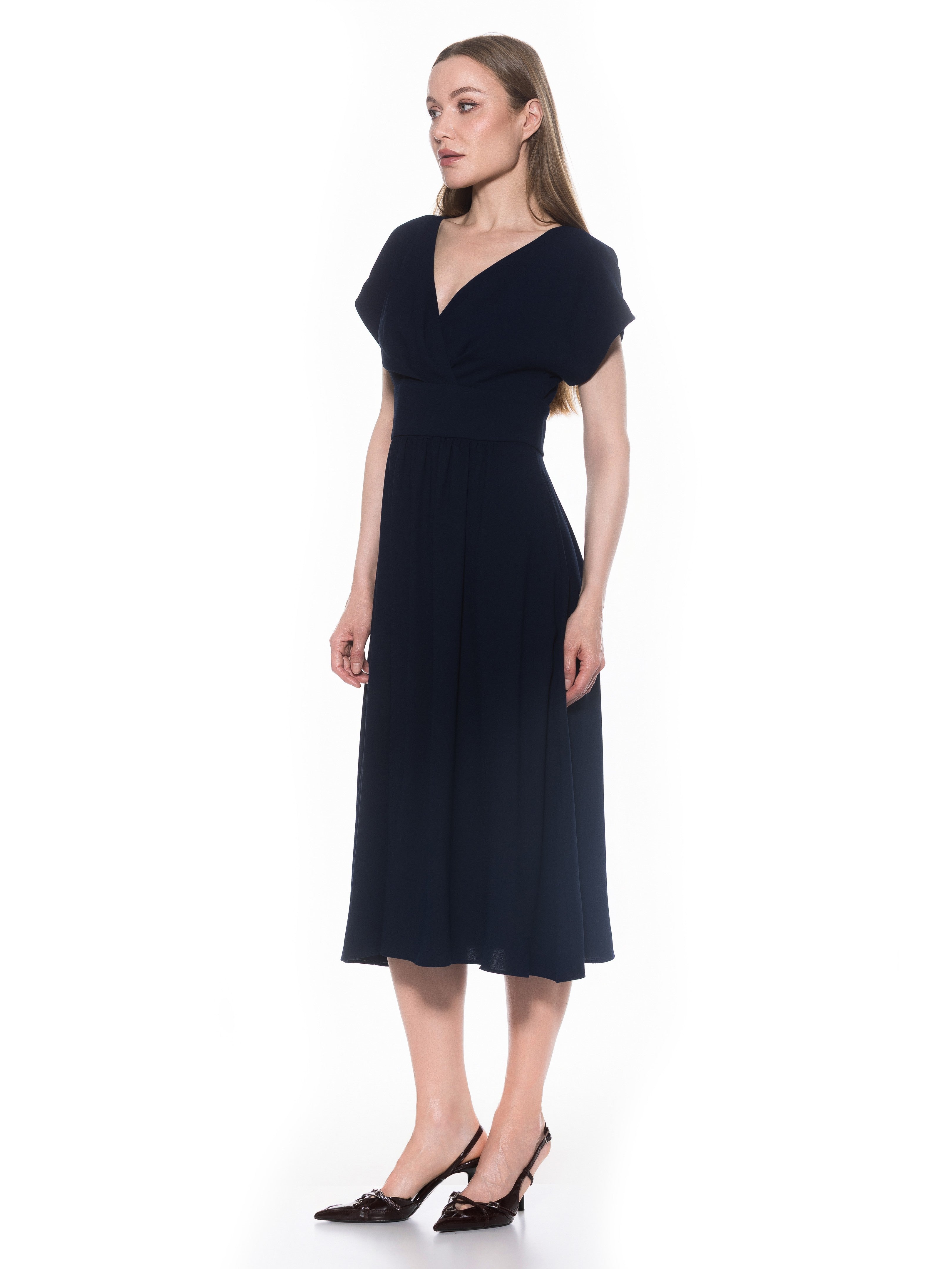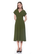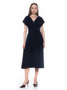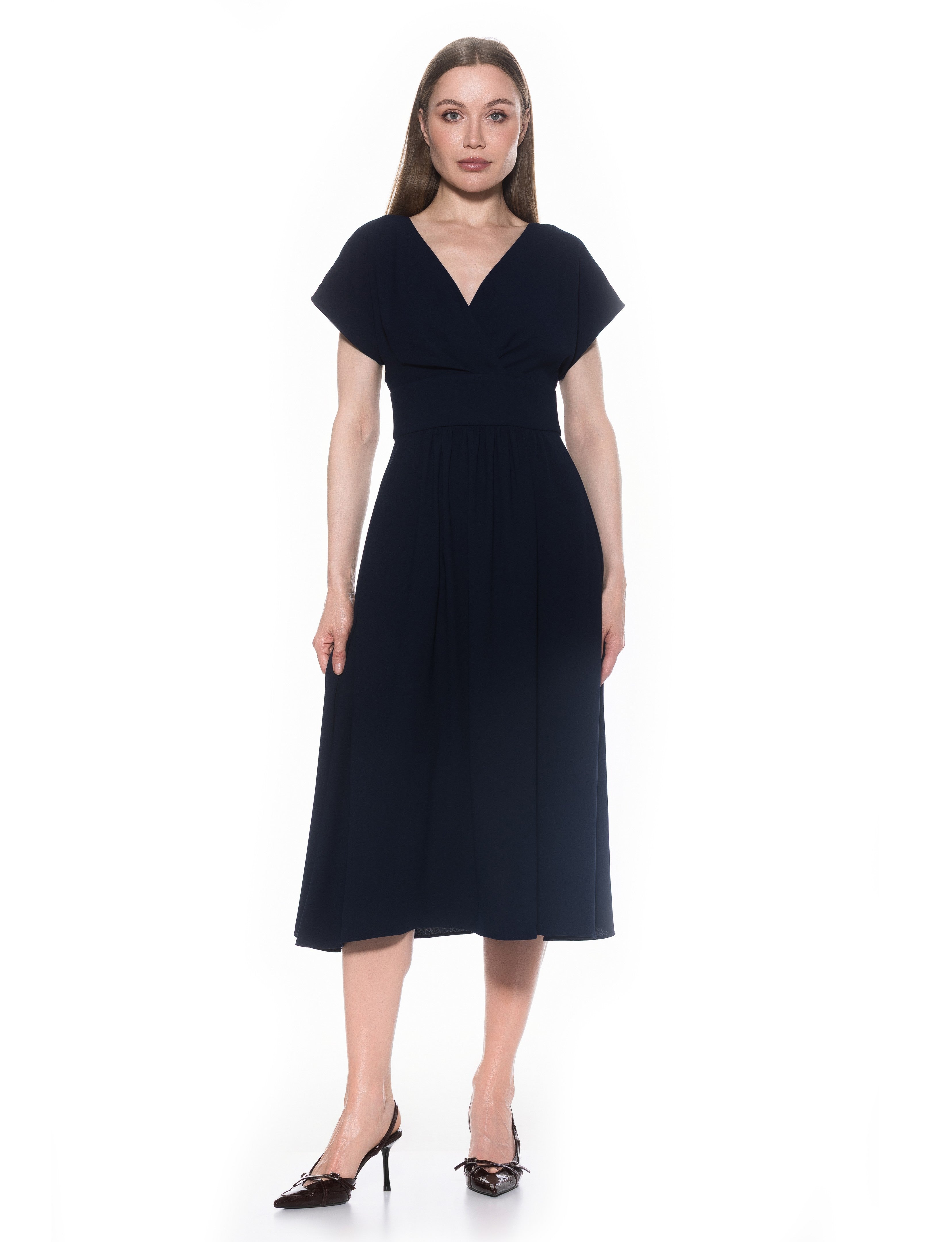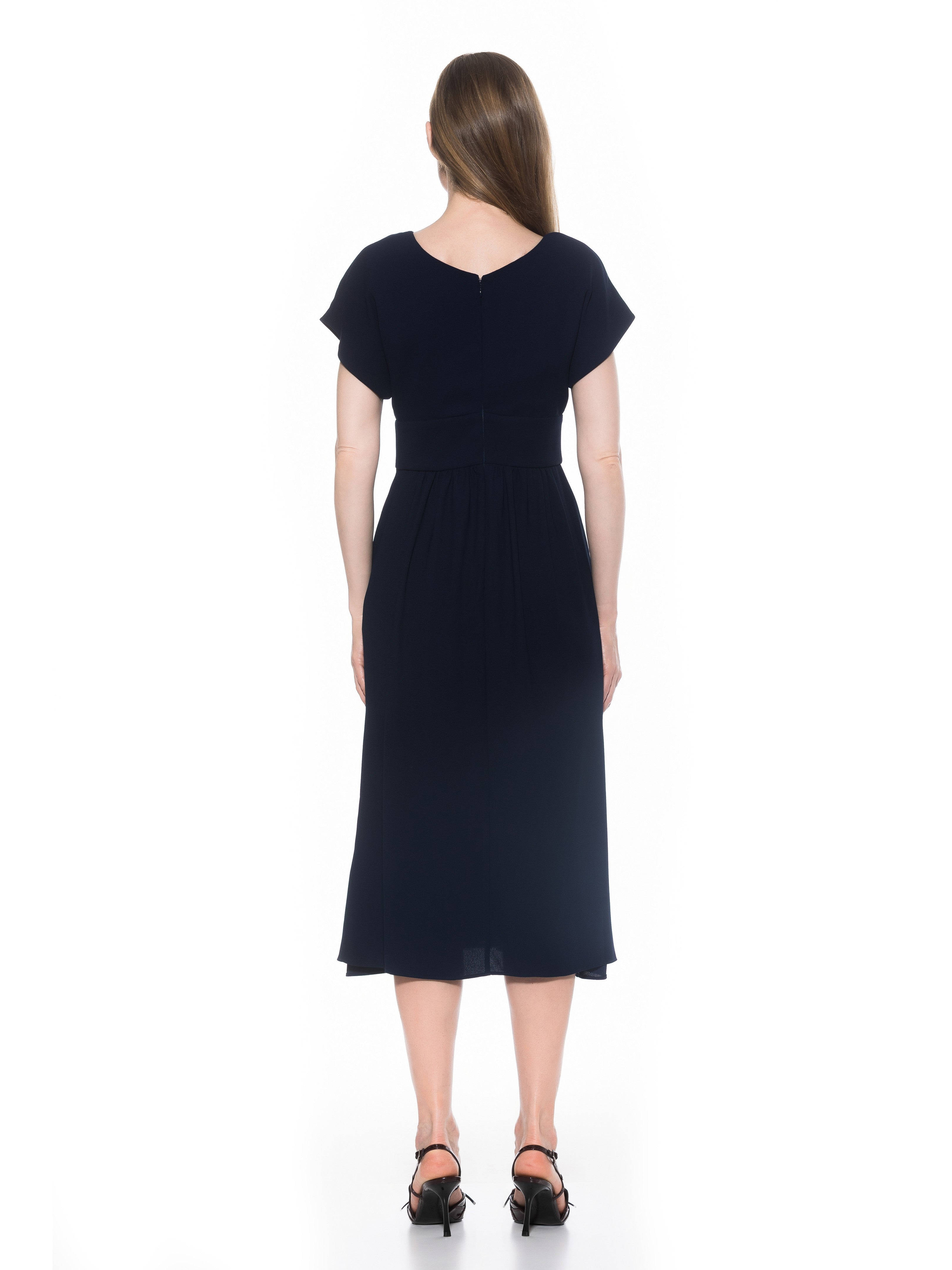 The Ava Draped Dolman Sleeve Fit And Flare Dress Is A Must Have Piece For Your Wardrobe. This Dress Features Dolman Top, Fitted Waist, And Flowy Midi Length Skirt. This Item Fits True To Size.
