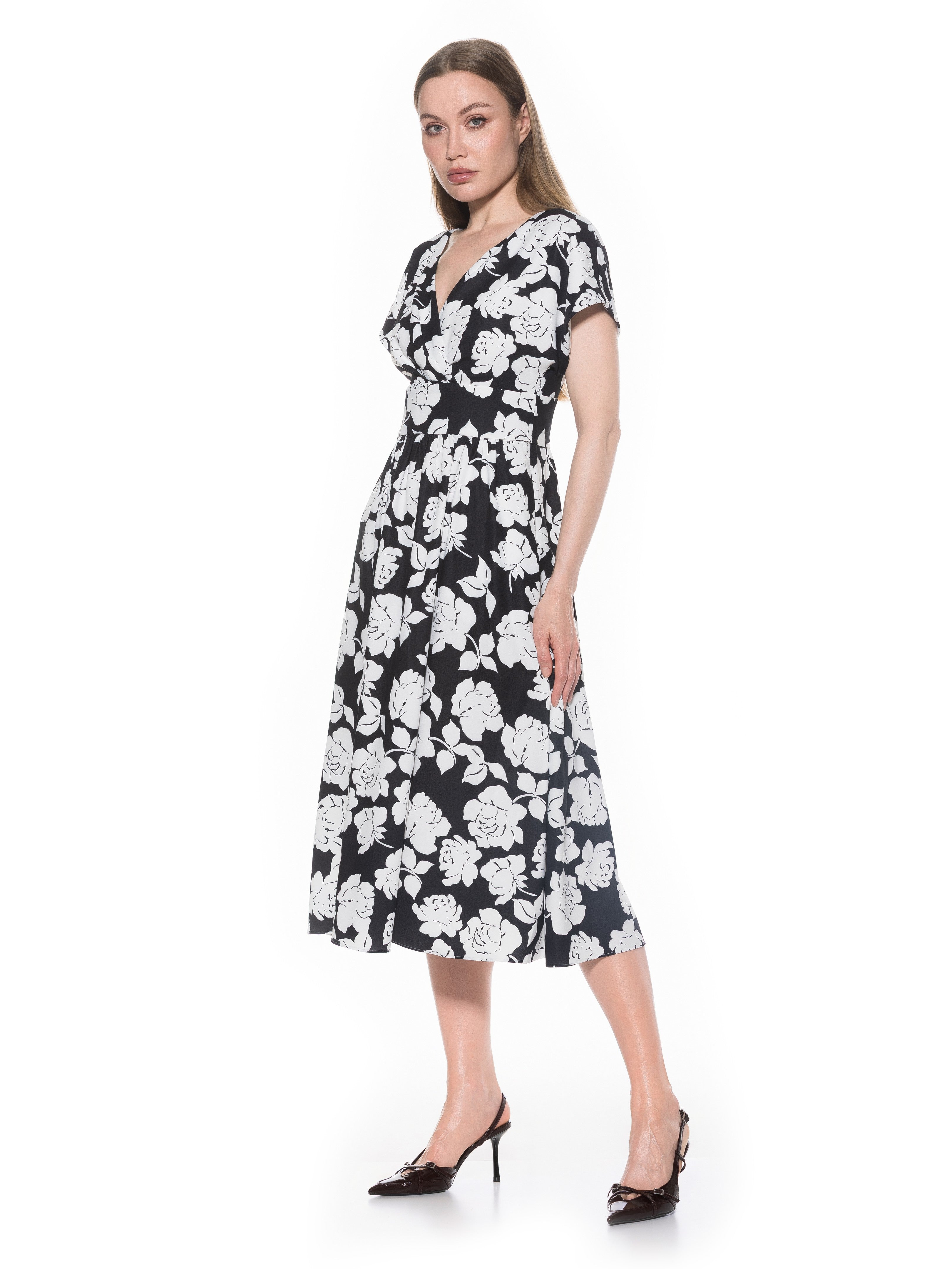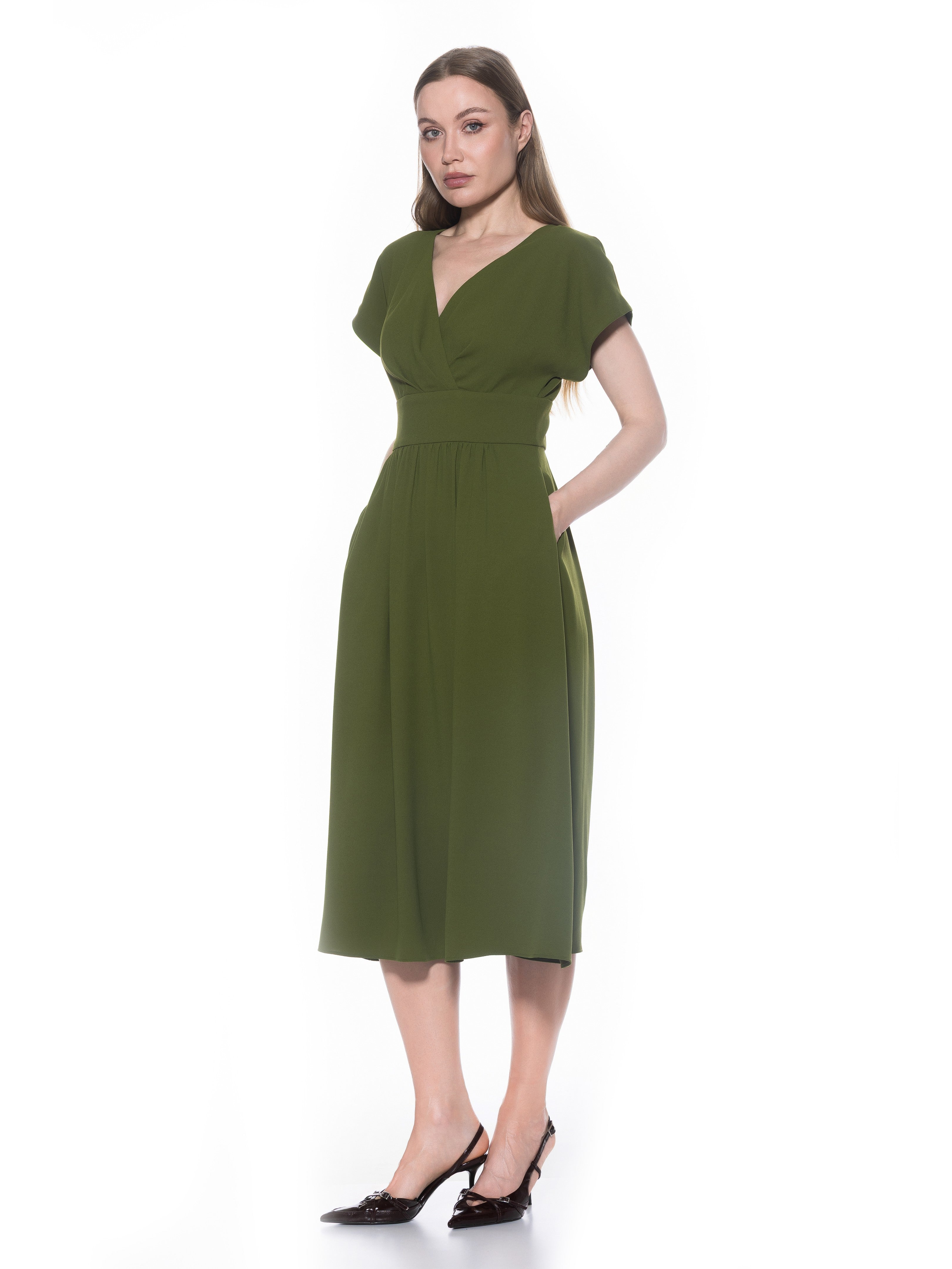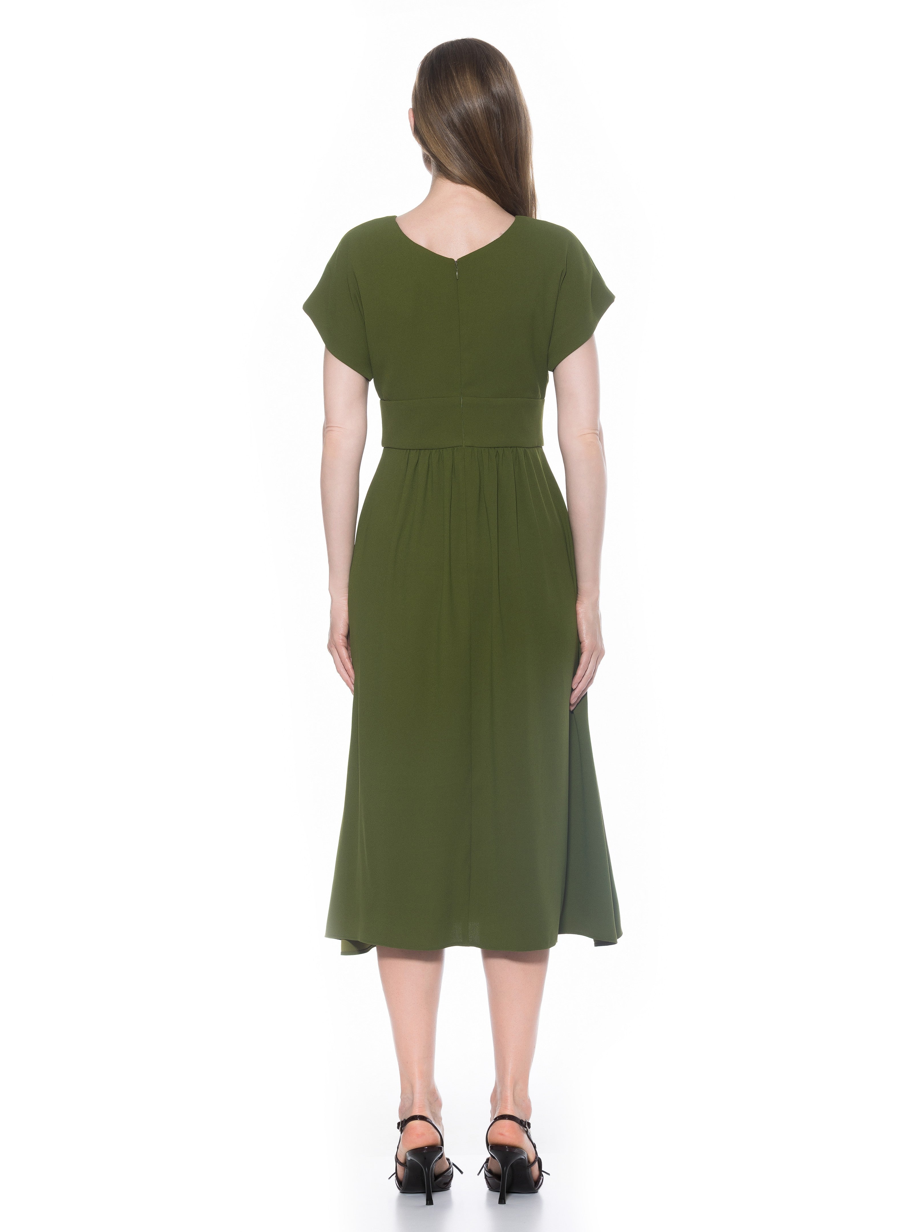 The Ava Draped Dolman Sleeve Fit And Flare Dress Is A Must Have Piece For Your Wardrobe. This Dress Features Dolman Top, Fitted Waist, And Flowy Midi Length Skirt. This Item Fits True To Size.