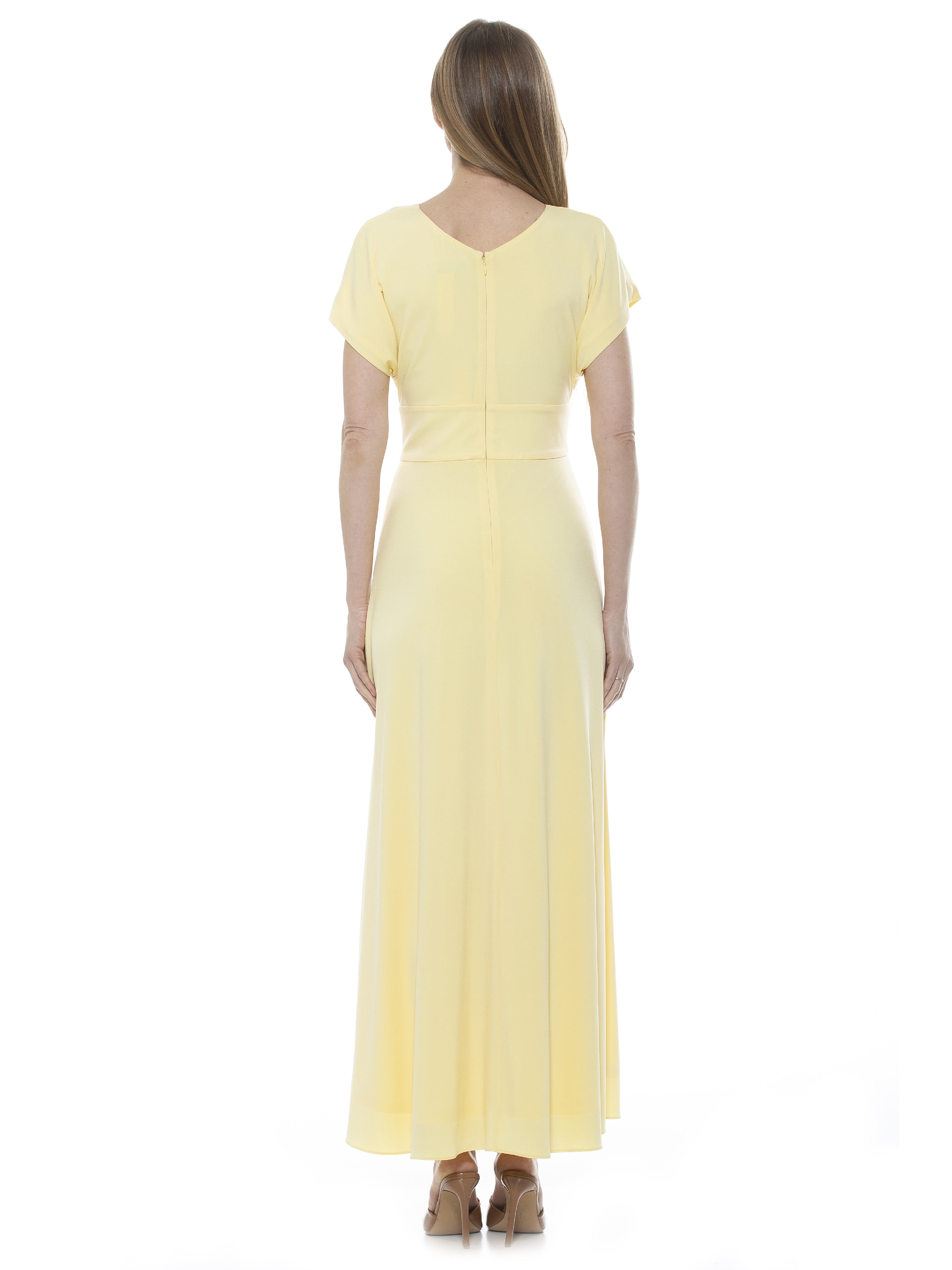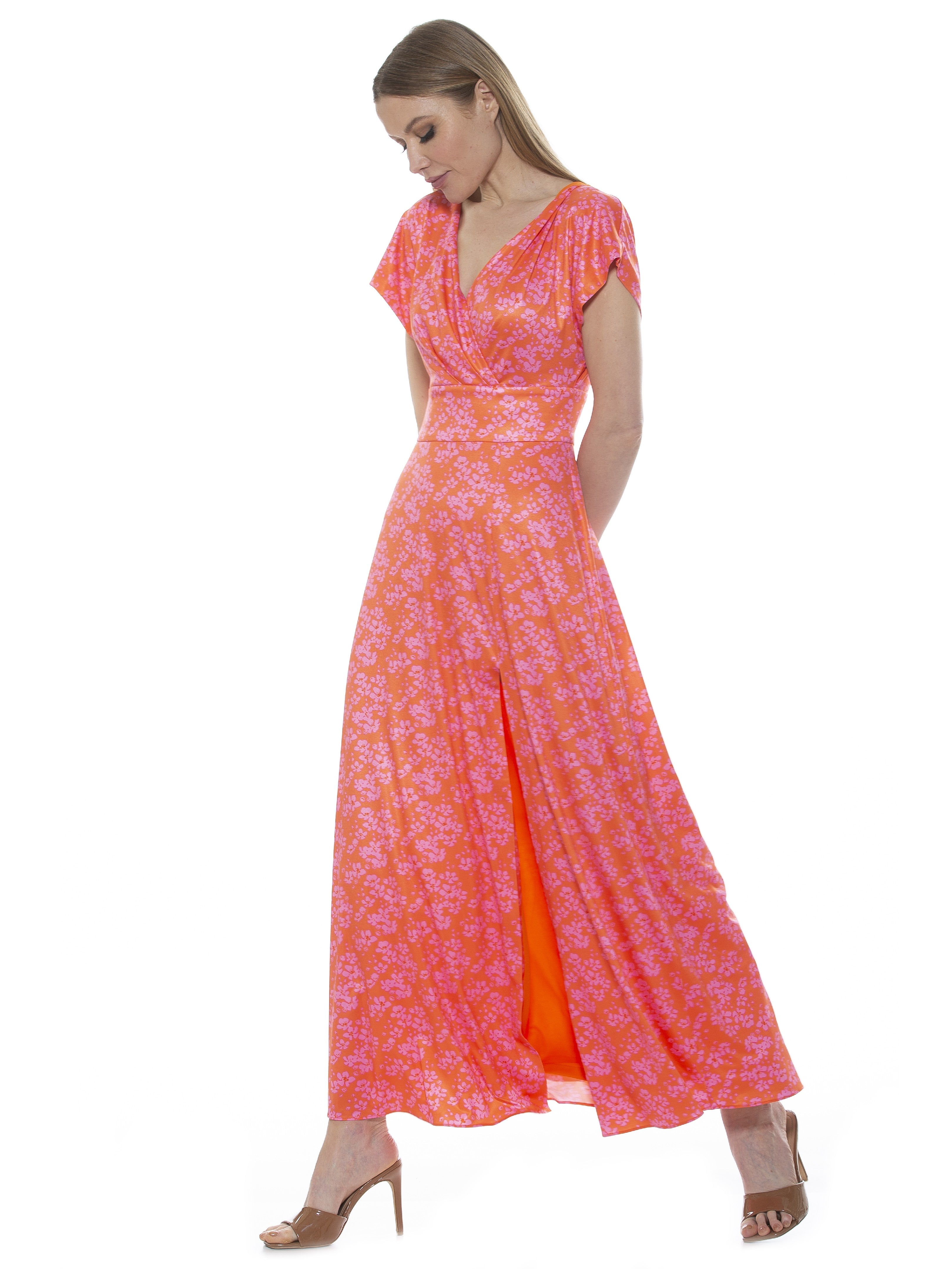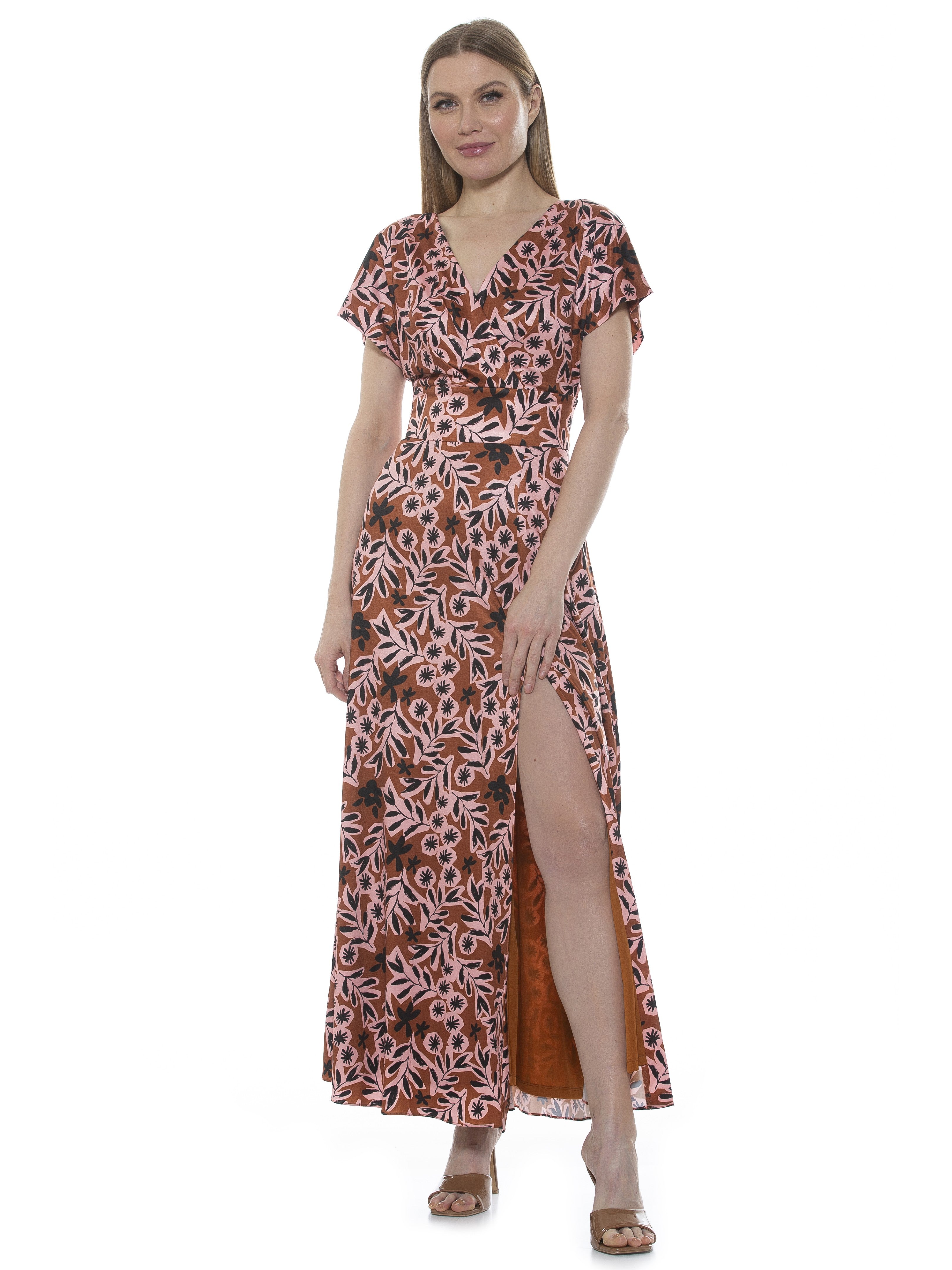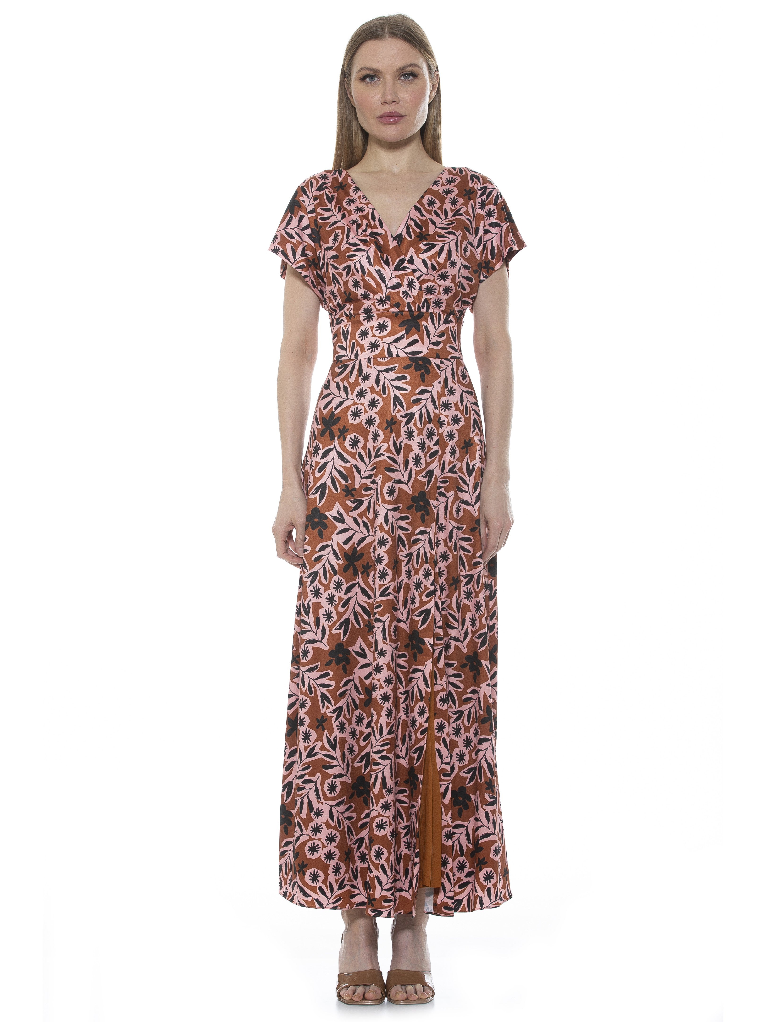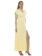 The Brielle is a Short Sleeve Maxi Dress. The dress has a fitted waist and a high leg slit. The Brielle is a great transitional piece, easy to dress up and down.