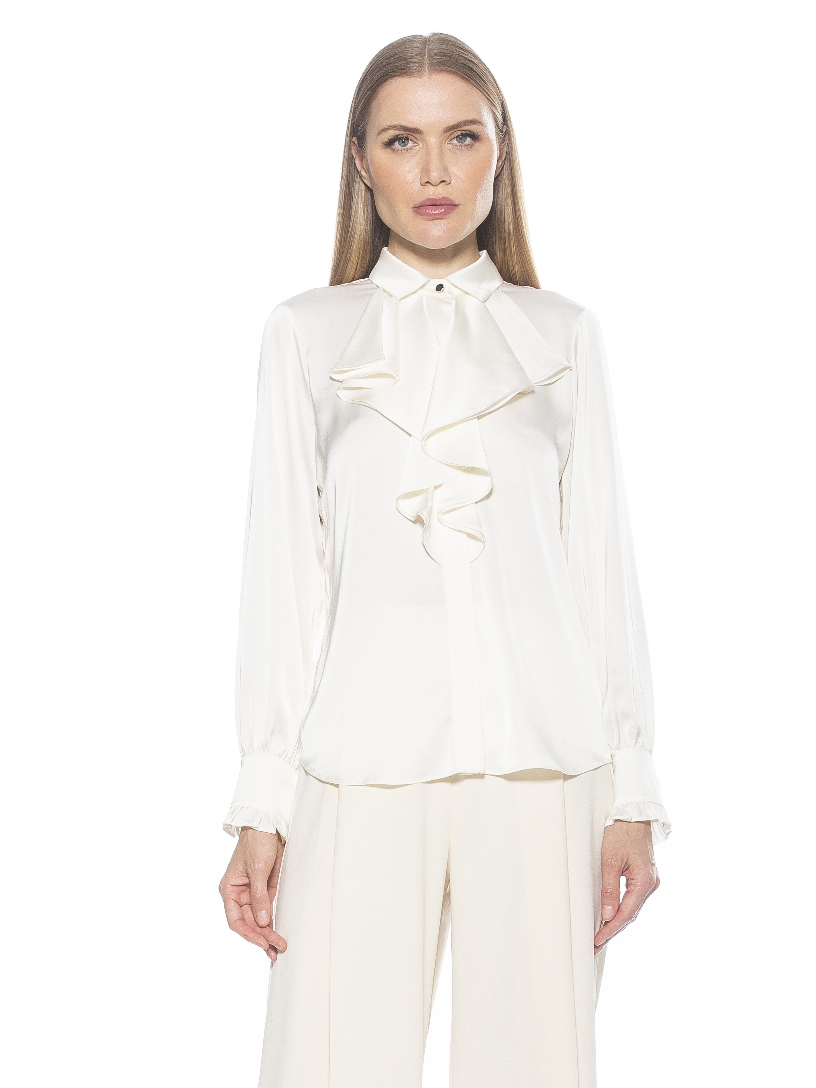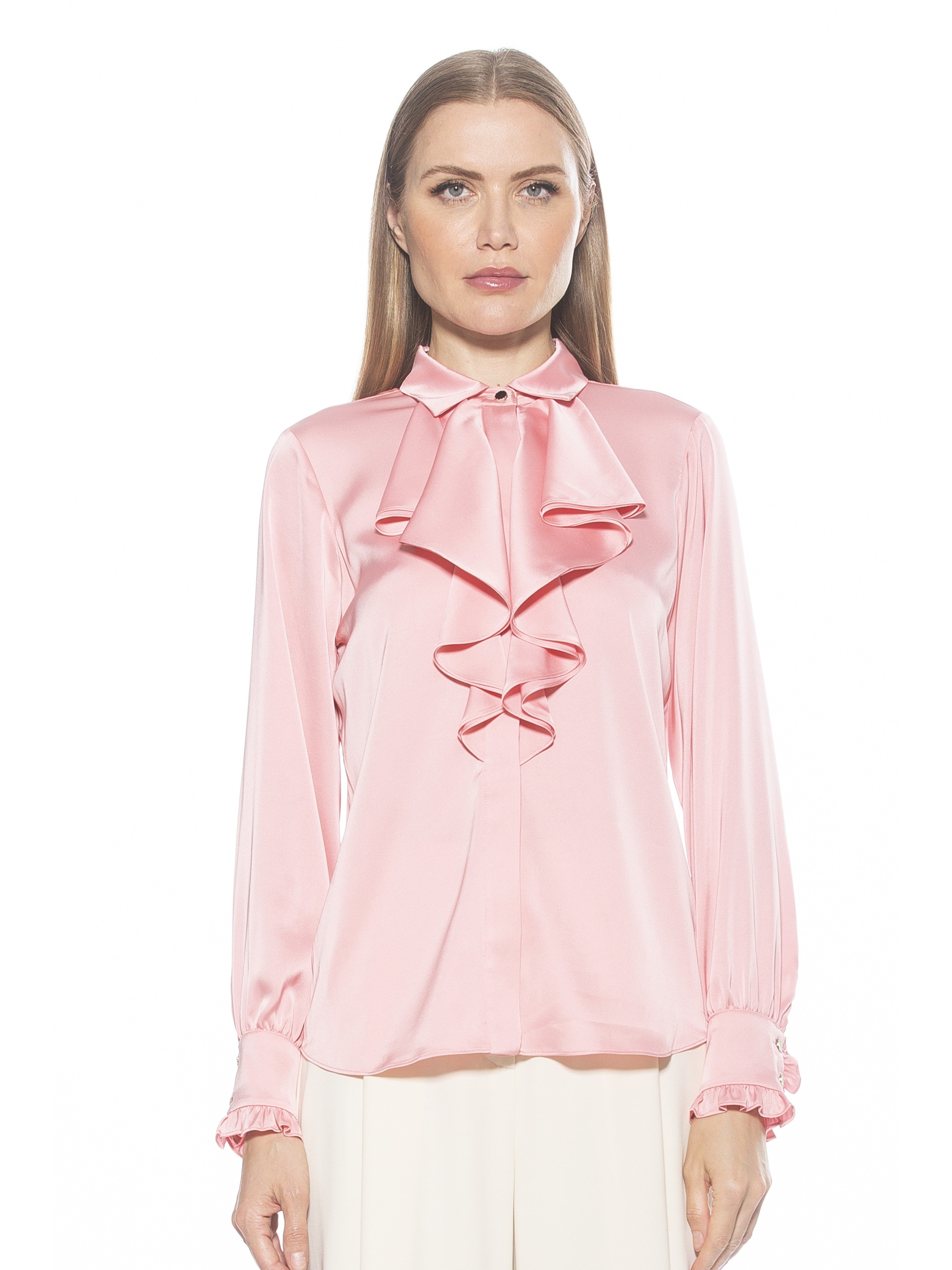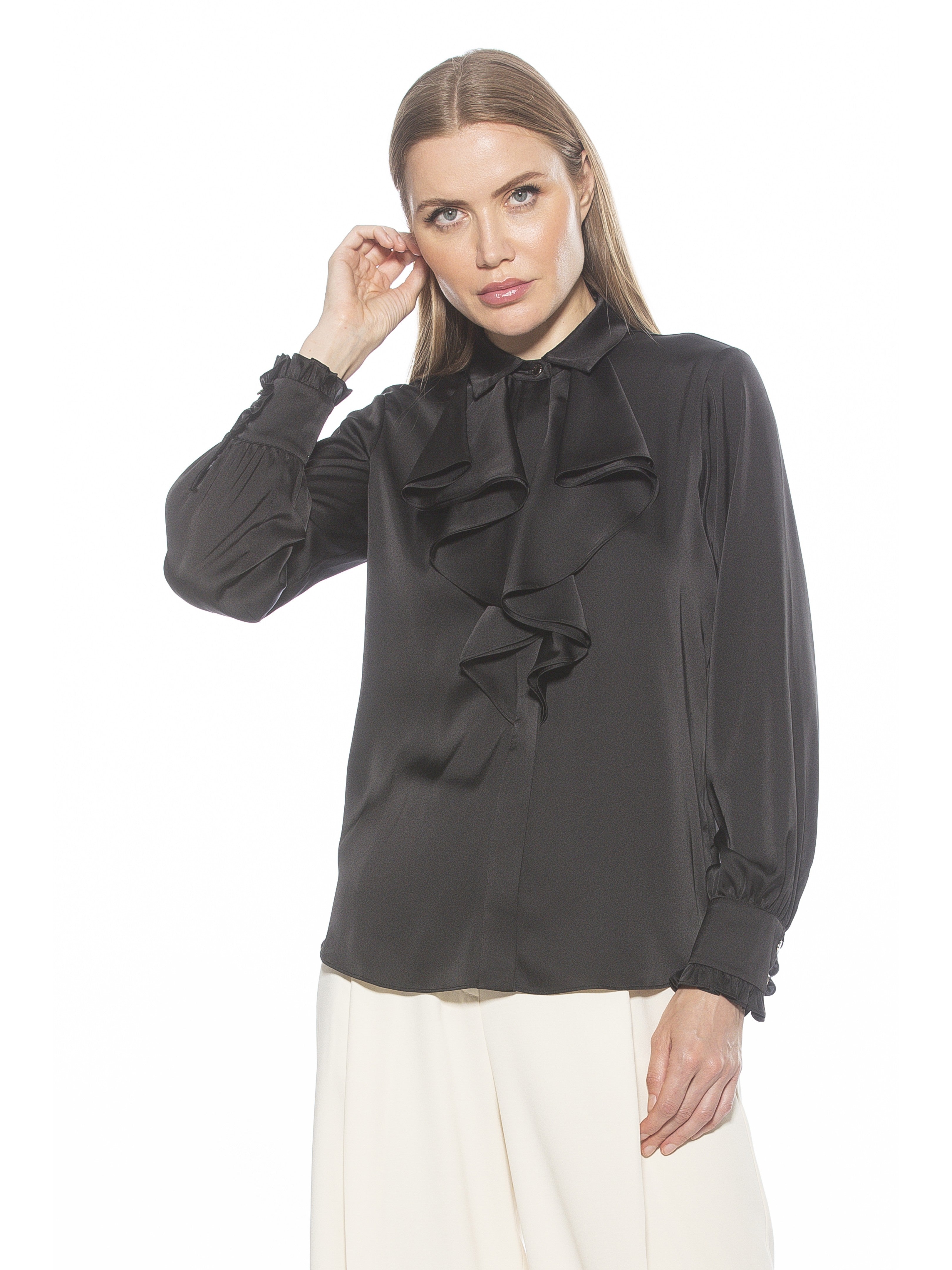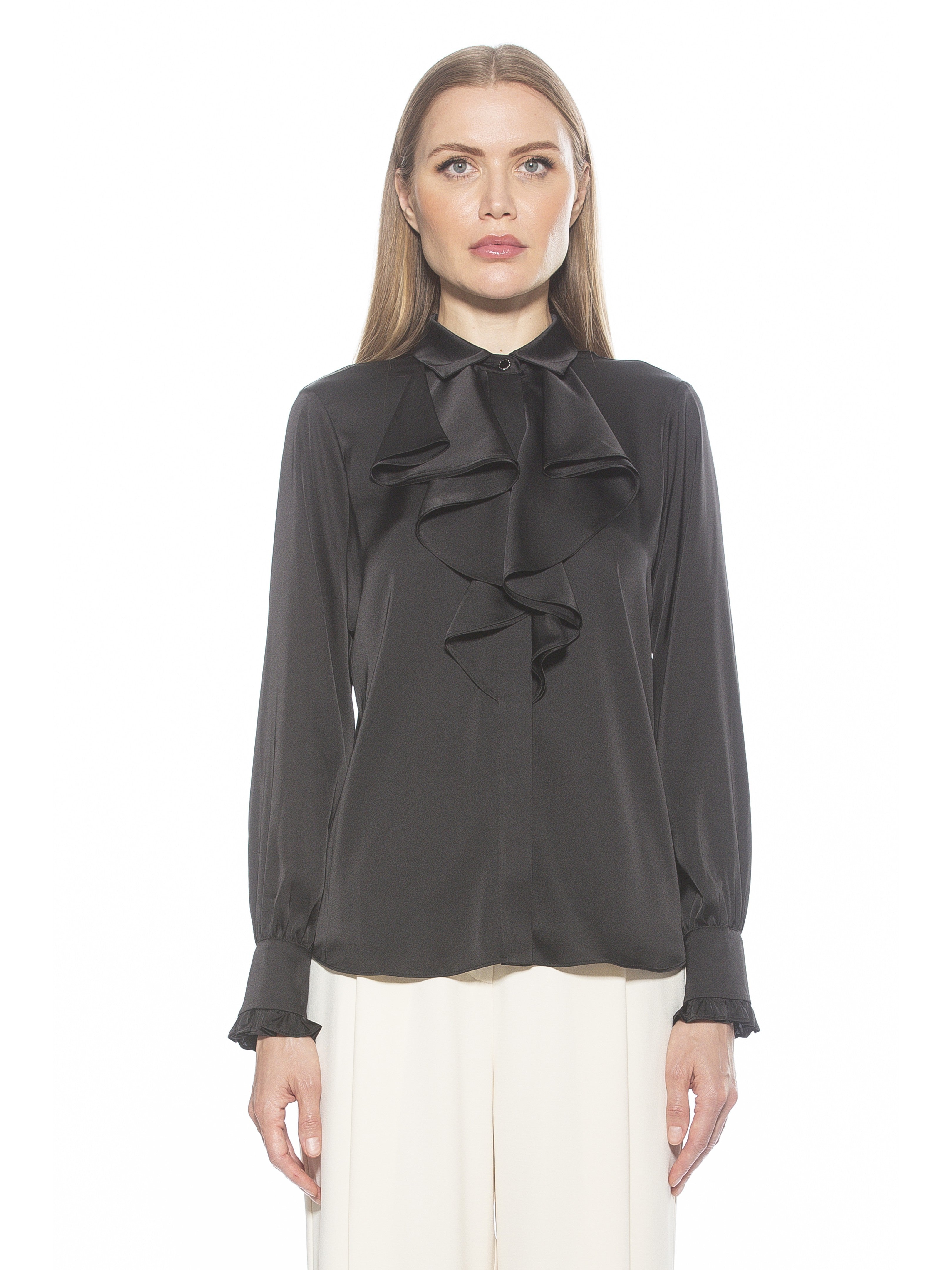 The Brooks Blouse is a chic and timeless wardrobe staple. Crafted from a luxurious, silky fabric, this blouse pairs a classic long-sleeve silhouette with subtle ruffled detailing for an elegant look. Perfect for special occasions or everyday wear, this piece will elevate any wardrobe.