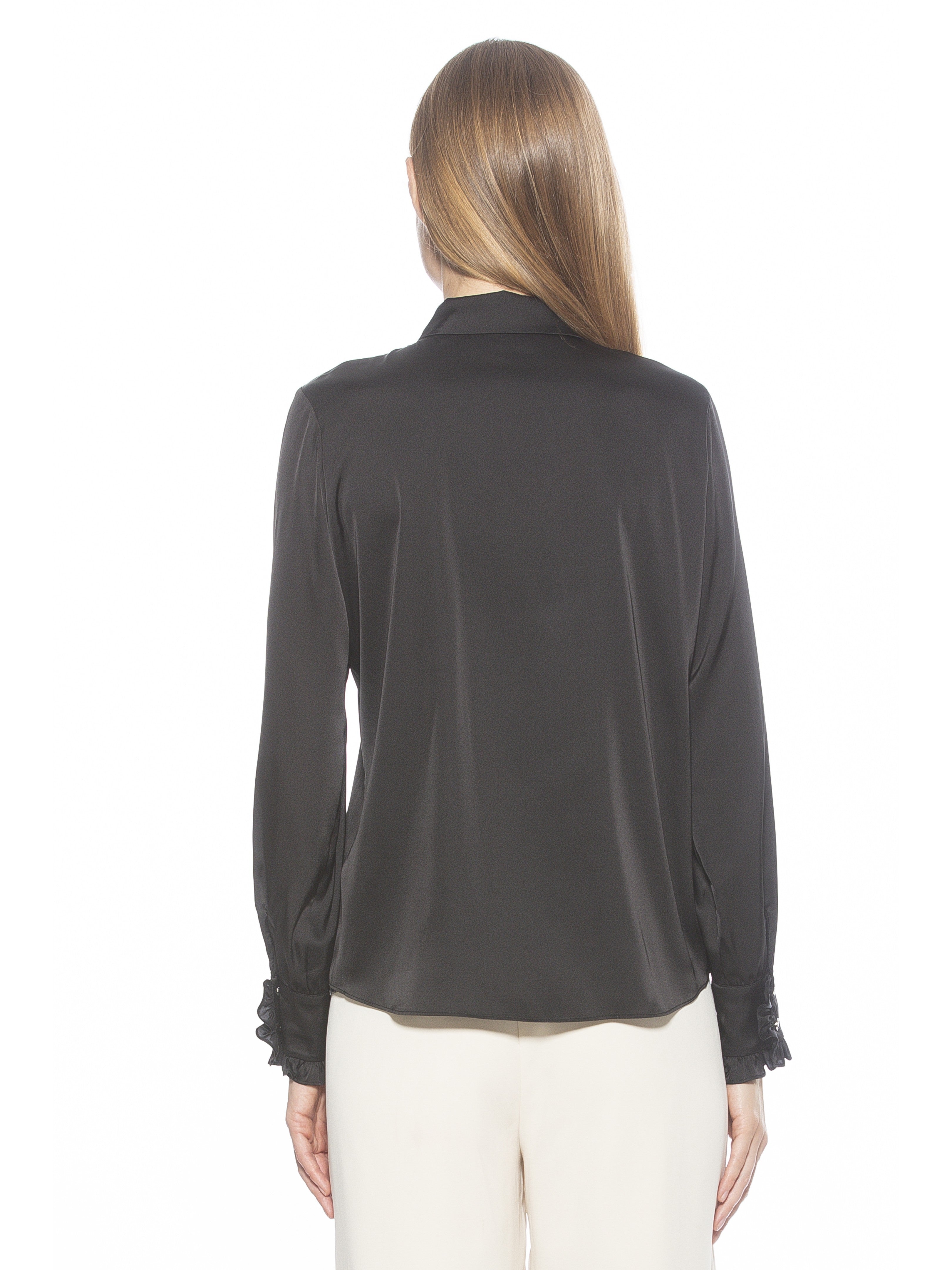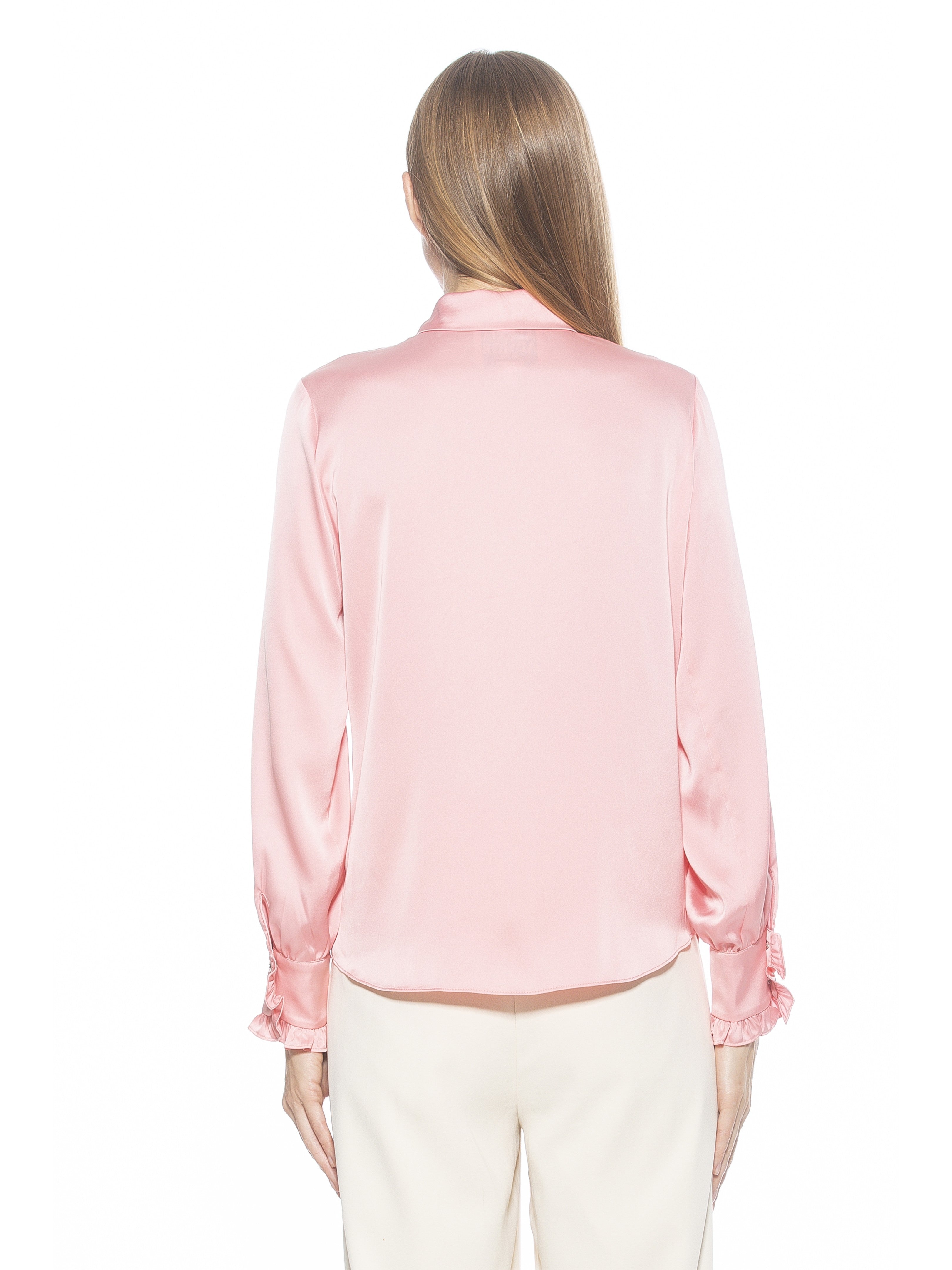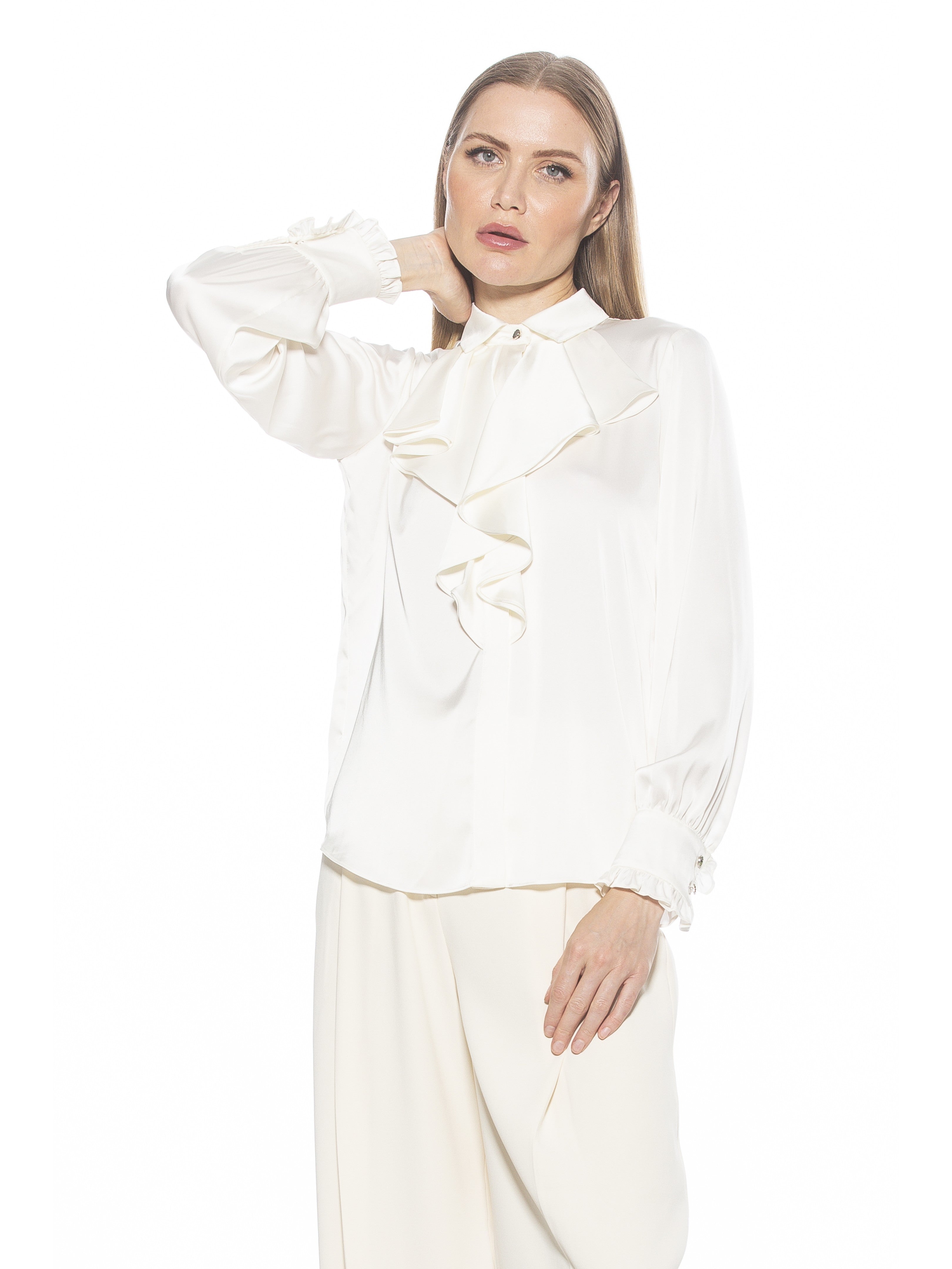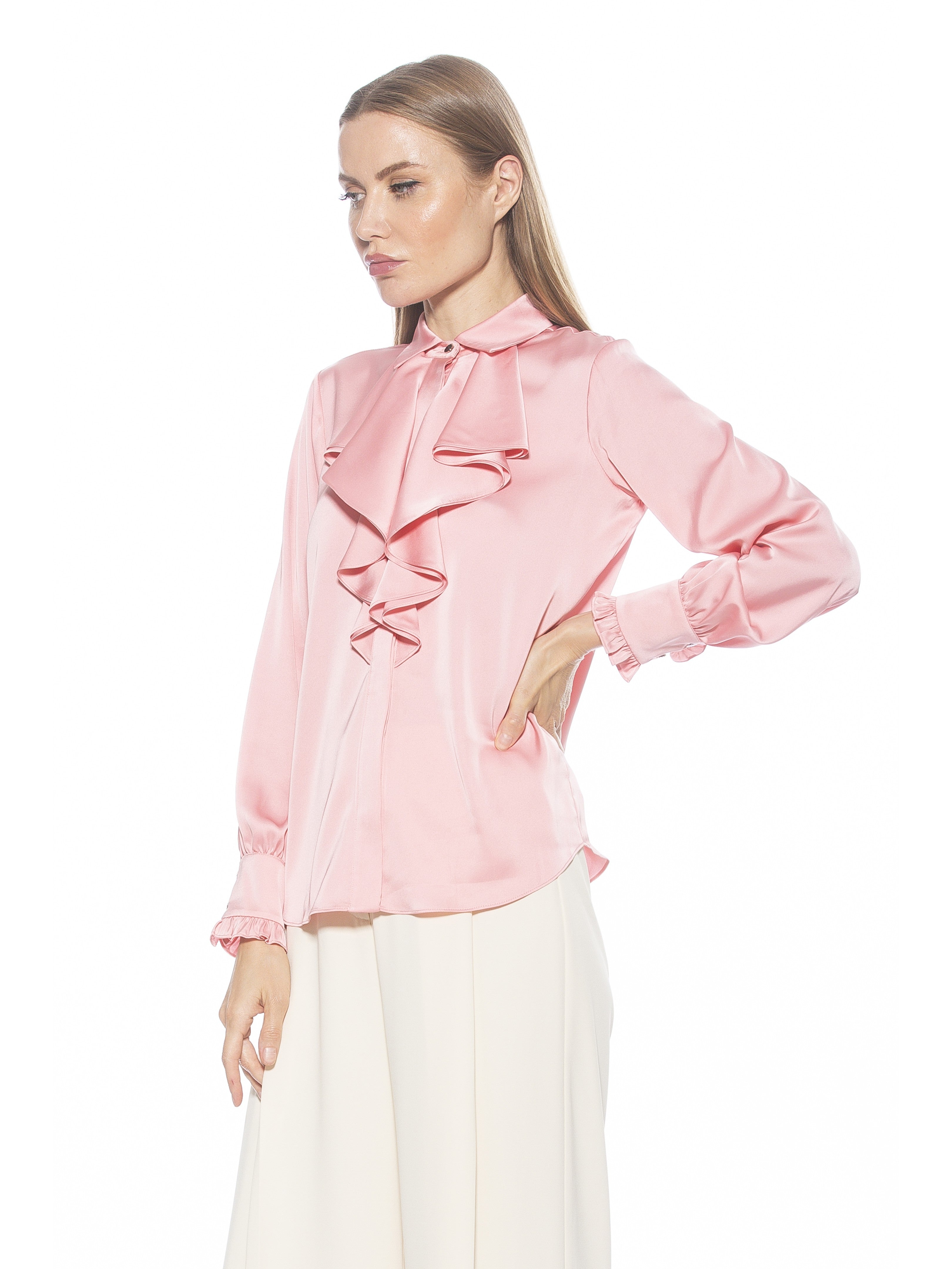 The Brooks Blouse is a chic and timeless wardrobe staple. Crafted from a luxurious, silky fabric, this blouse pairs a classic long-sleeve silhouette with subtle ruffled detailing for an elegant look. Perfect for special occasions or everyday wear, this piece will elevate any wardrobe.