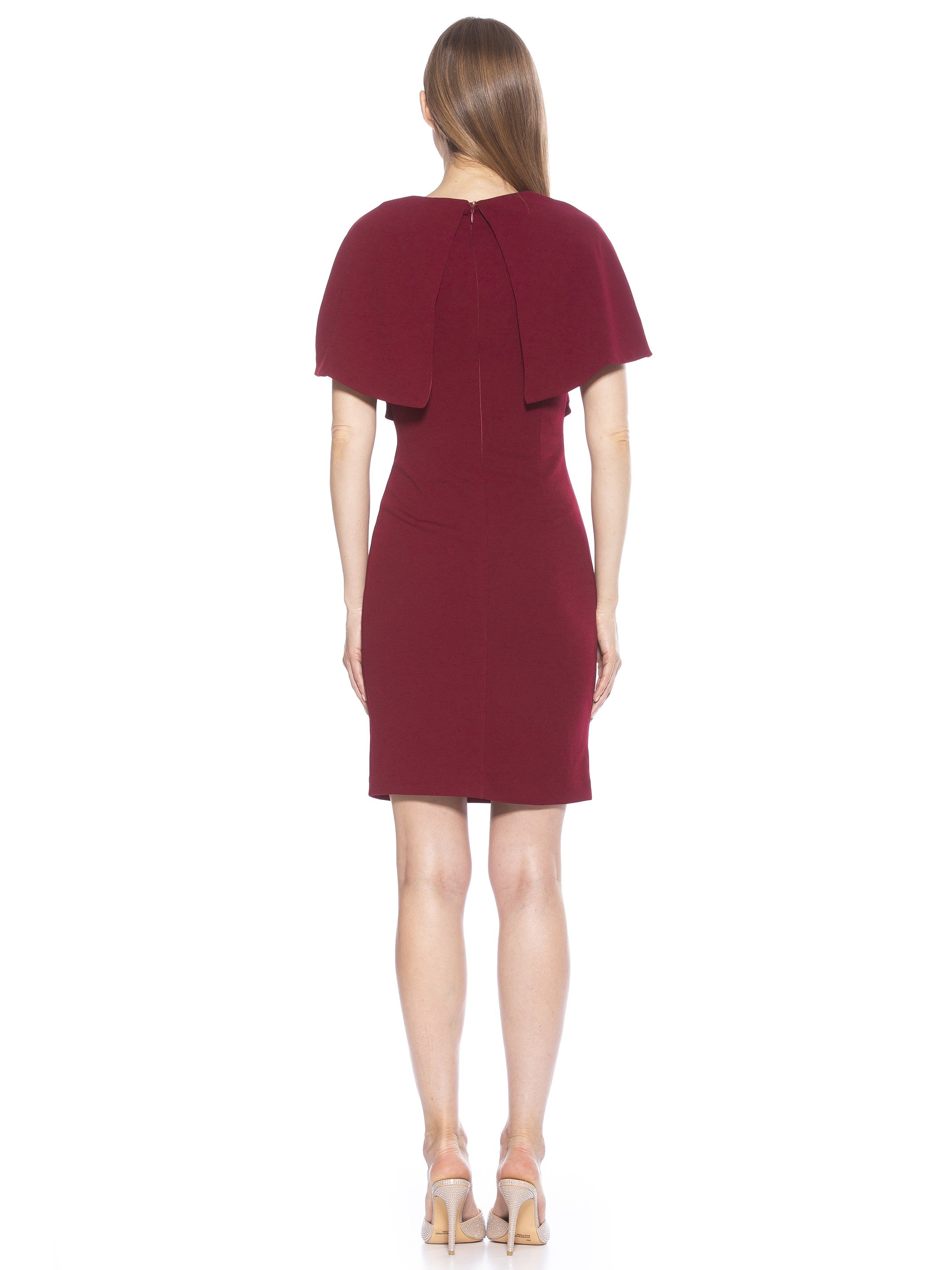 The Devi Dress, a timelessly elegant mini dress finely crafted with a V-neck, wrap bodice, and capelet detail. This dress wraps you in tasteful luxury, whether you're headed to a gala, a rooftop cocktail party, or a date, this sophisticated garment will be sure to make a statement.