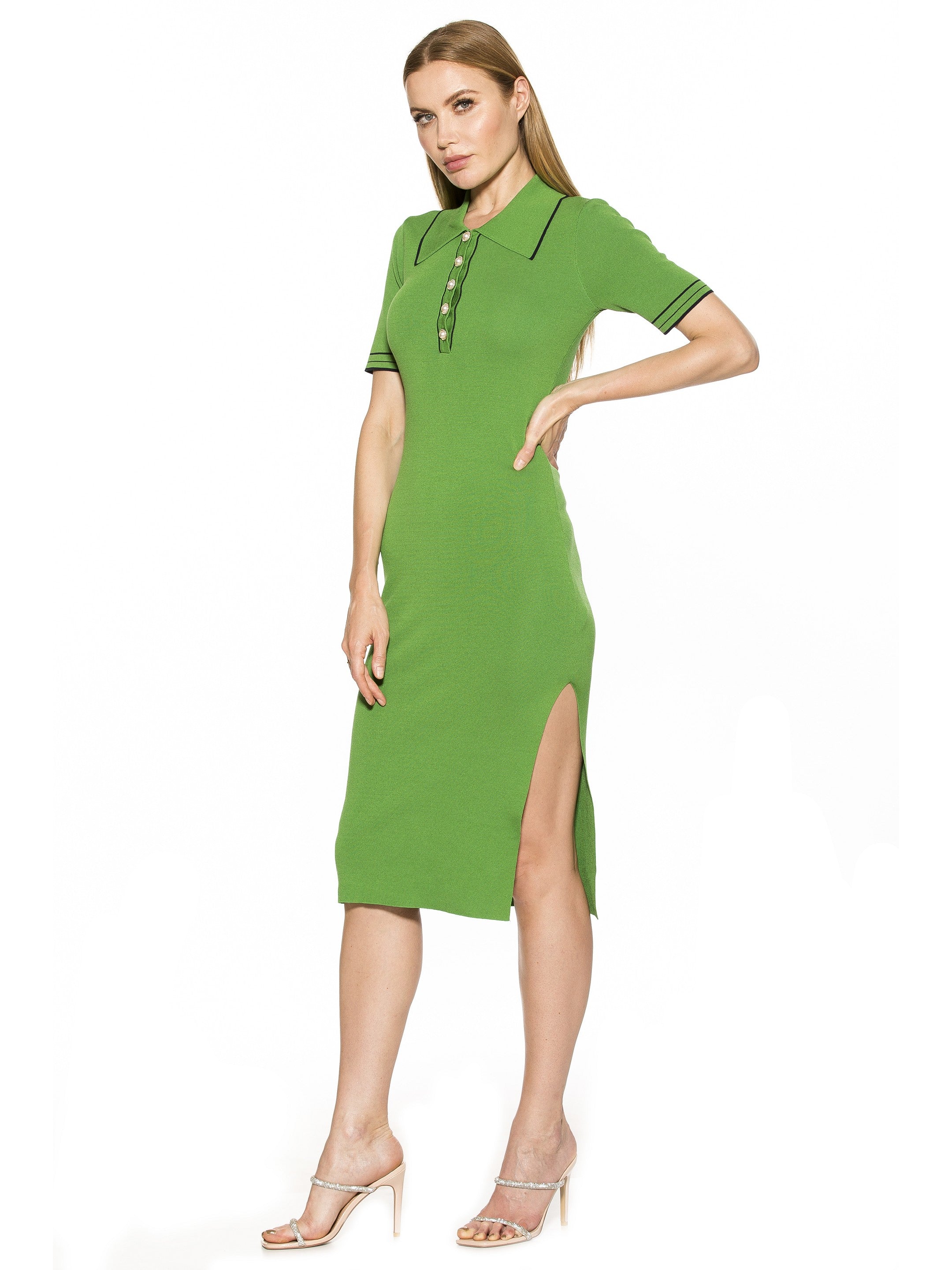 The Dinah short sleeve button down knitted midi dress is a must have piece for your wardrobe. This dress features short sleeves, collar detail, luxe button detail and knit material. This dress fits true to size.