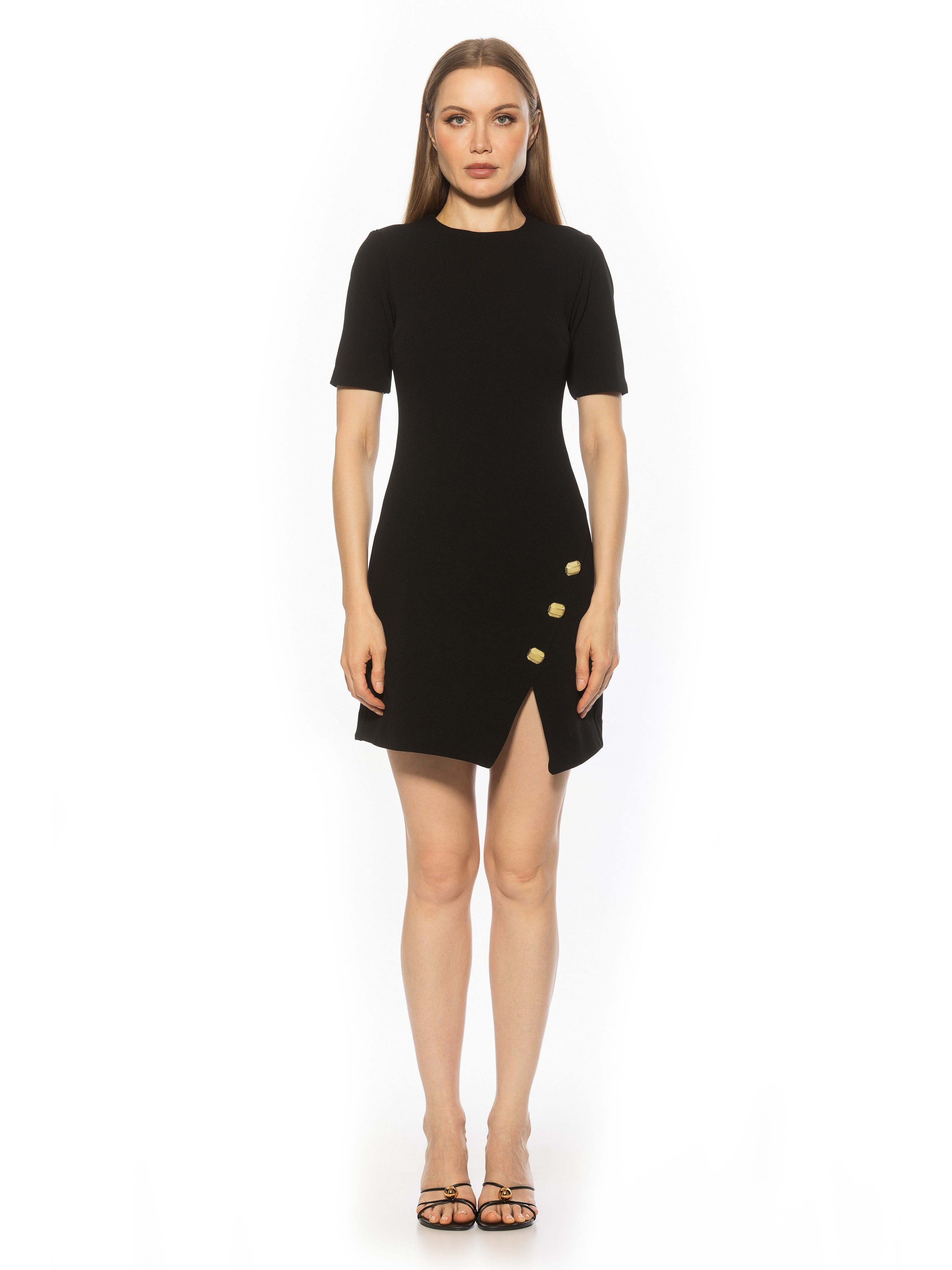 The Dream Crewneck Short Sleeve Fit And Flare Dress Is A Must Have For Your Closet. This Dress Features Short Sleeves, Fit And Flare Body, And Novelty Buttons. This Dress Fits True To Size.