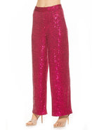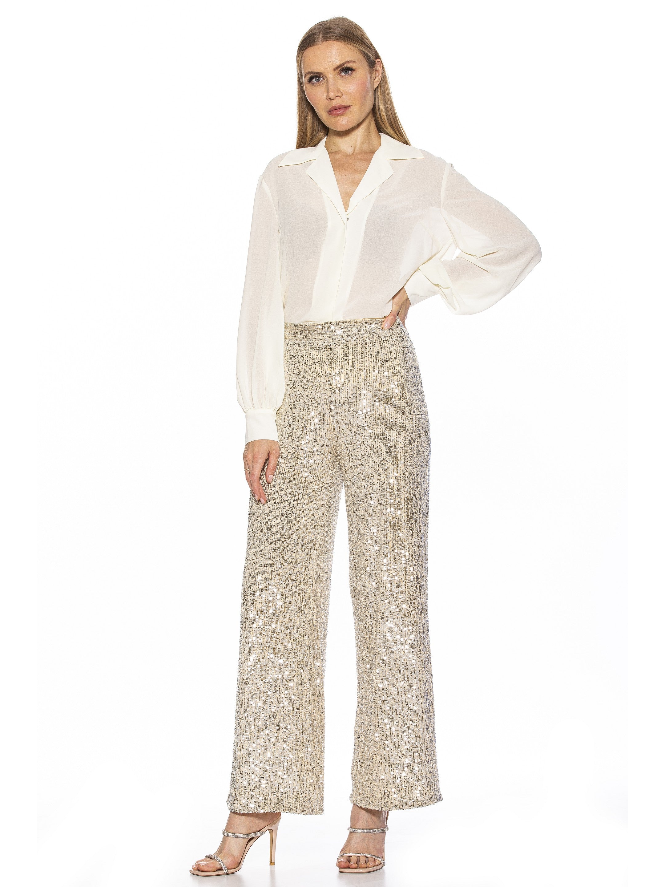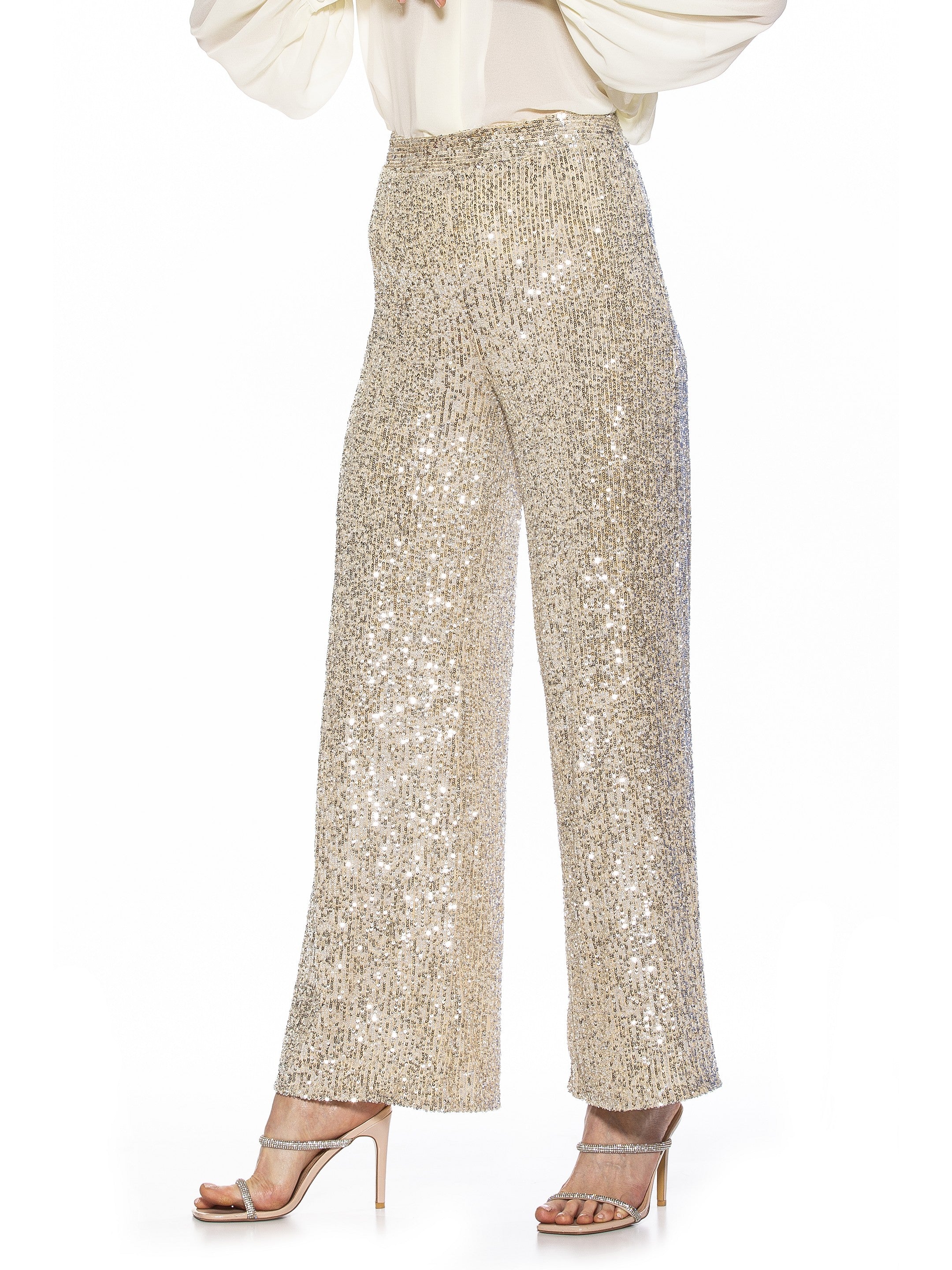 Enhance your fashion statement with the luxurious Illy Sequin Pants. These high waisted pants feature a glamorous wide leg design and full sequin embellishments for a tasteful and exclusive look. Stand out in style and sophistication with Illy.
