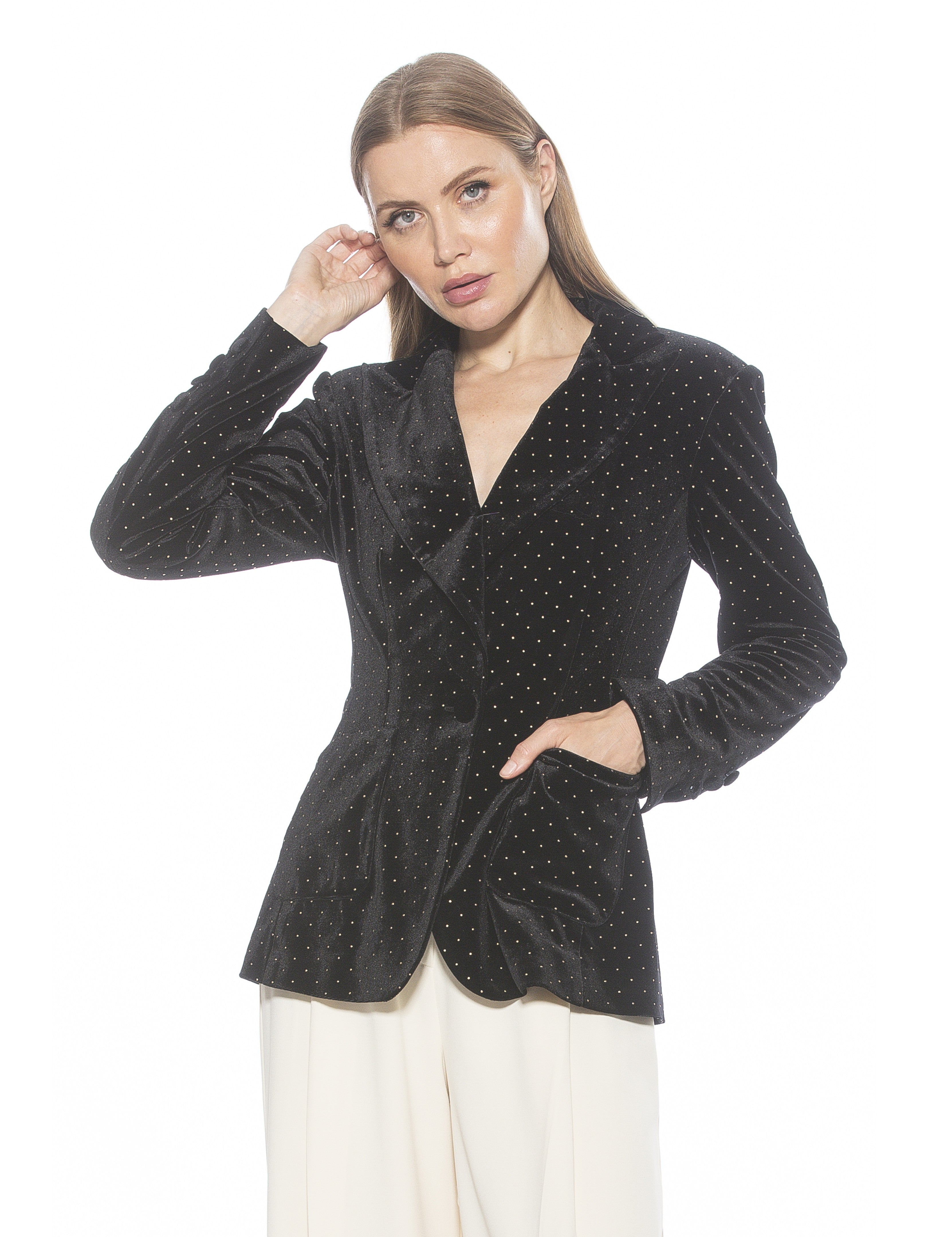Tailored to perfection, the Kai Blazer offers a unique and timeless look. Exquisitely crafted with a luxurious soft velvet, this sophisticated blazer will elevate any outfit. Look your best and make a statement with the versatile, fitted style of the Kai Blazer.