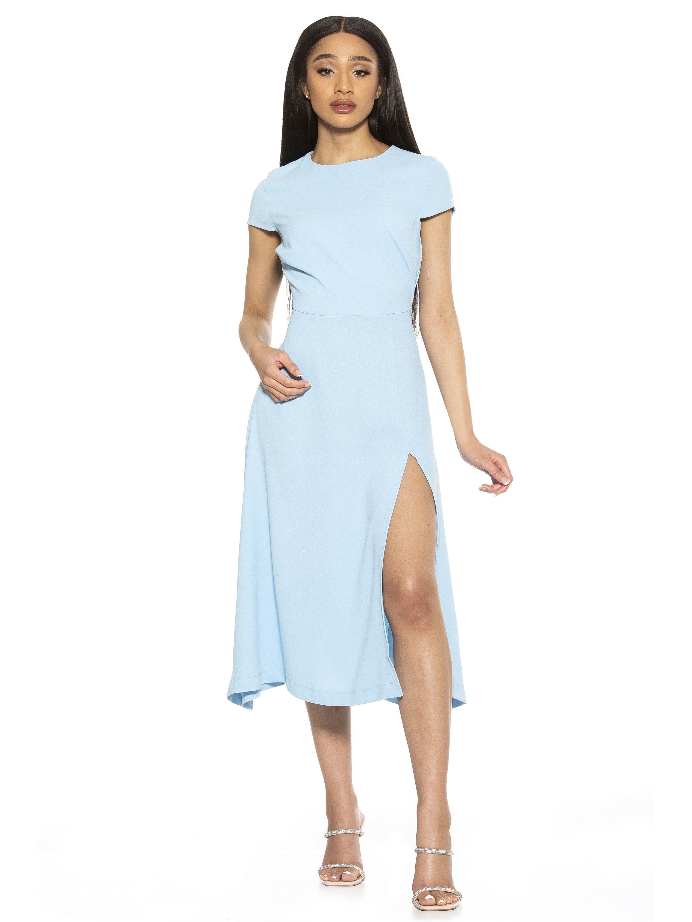 Look your best in the Lily Midi Dress. With a high leg slit, midi length, and a classic crew neck, this timeless piece looks great for any special occasion. The polyester/spandex blend guarantees a comfortable fit, perfect for all day wear.