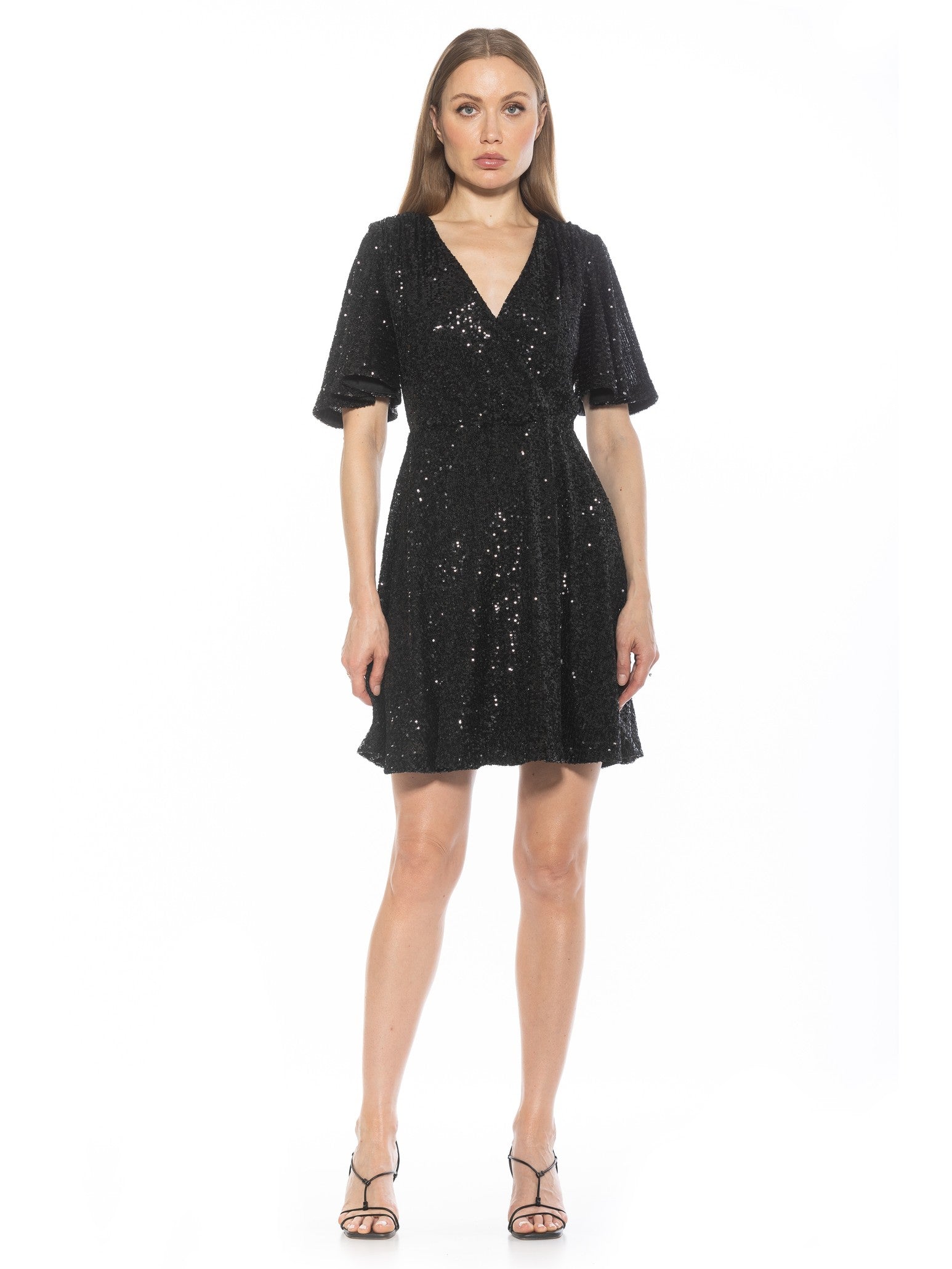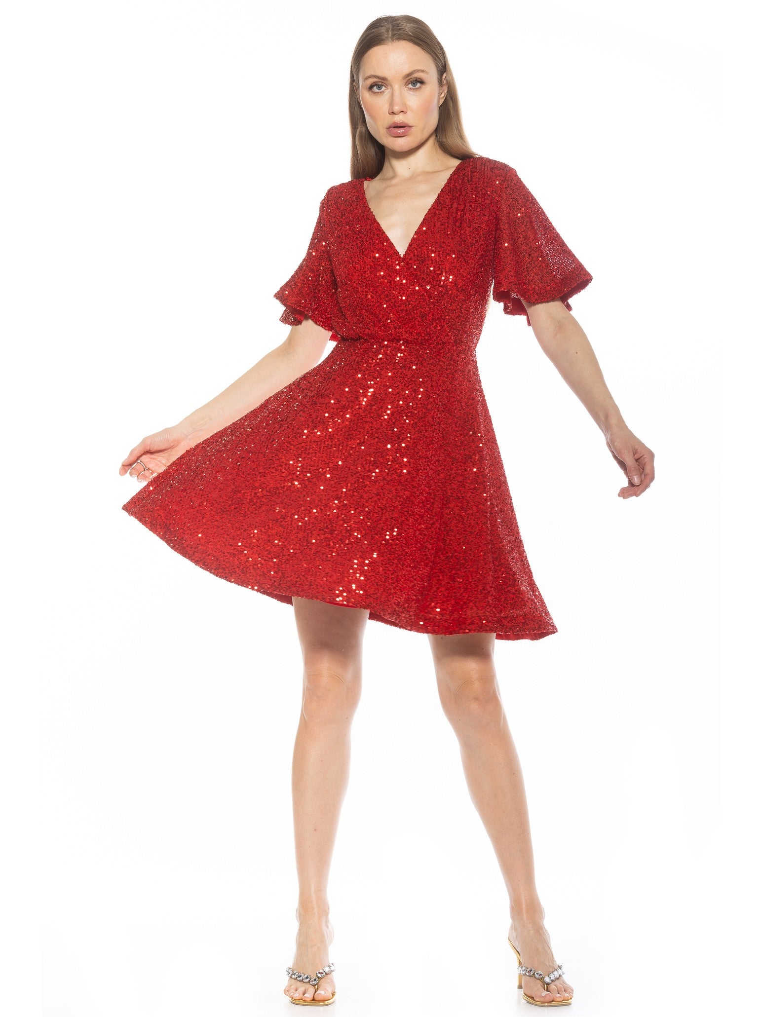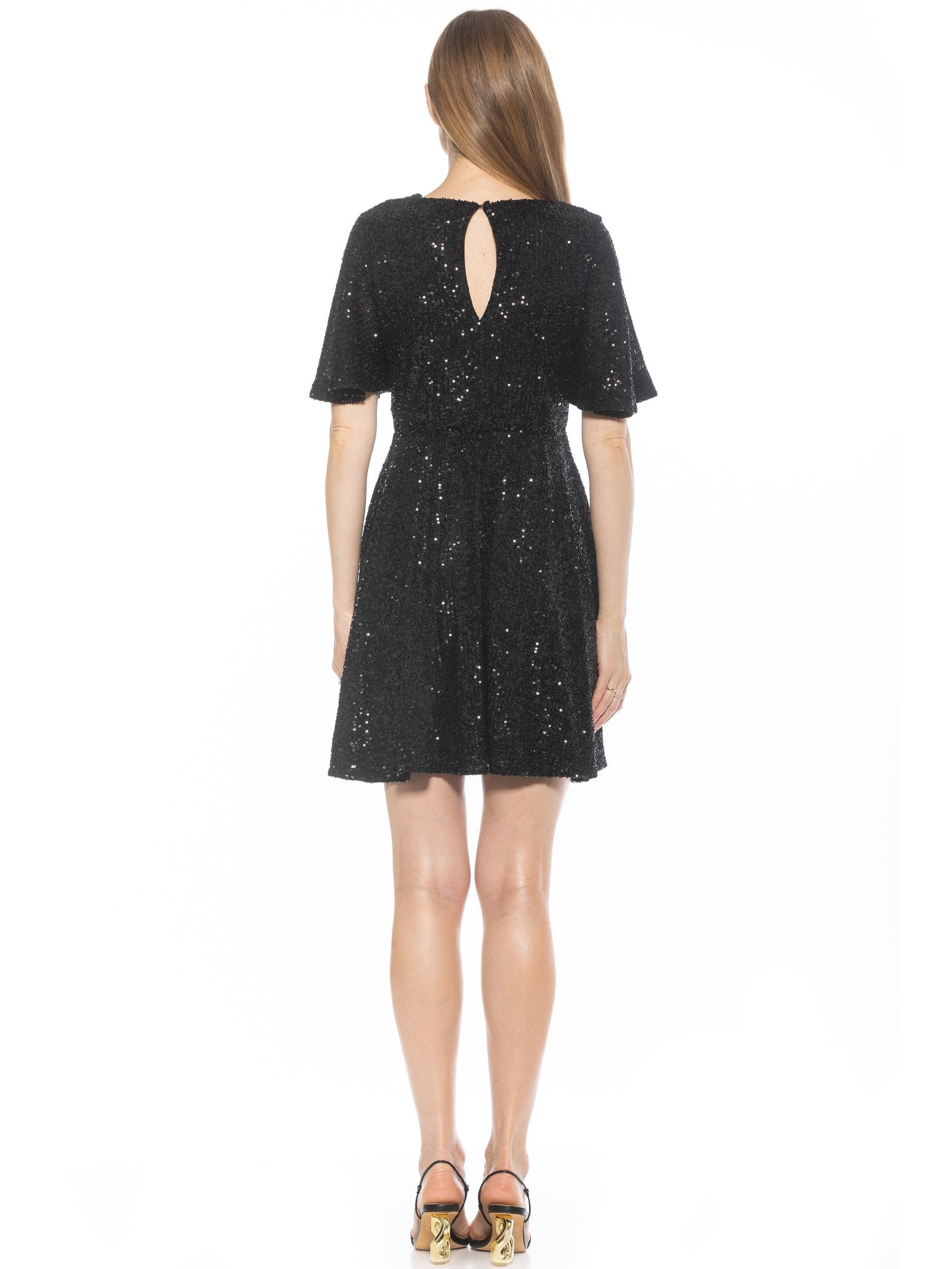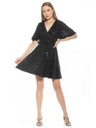 Effortlessly chic and always in style, our Oak Dress is the perfect addition to your wardrobe. Featuring a flattering V-neckline, flutter sleeves, and a stunning sequin design, this fit and flare mini dress will make you stand out in any crowd. Elevate your look with our luxurious Oak Dress.