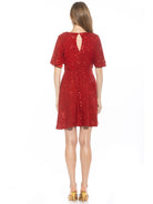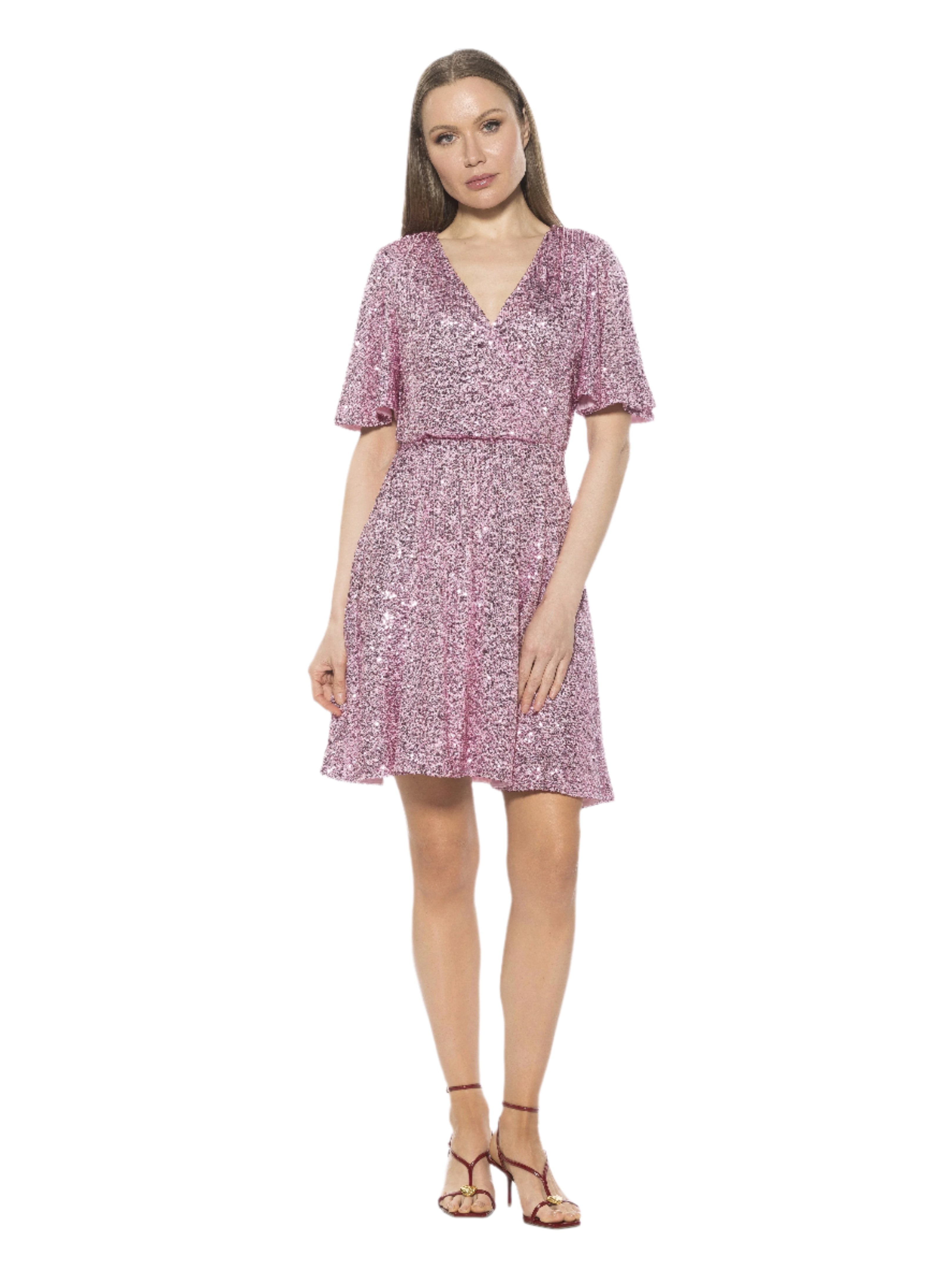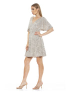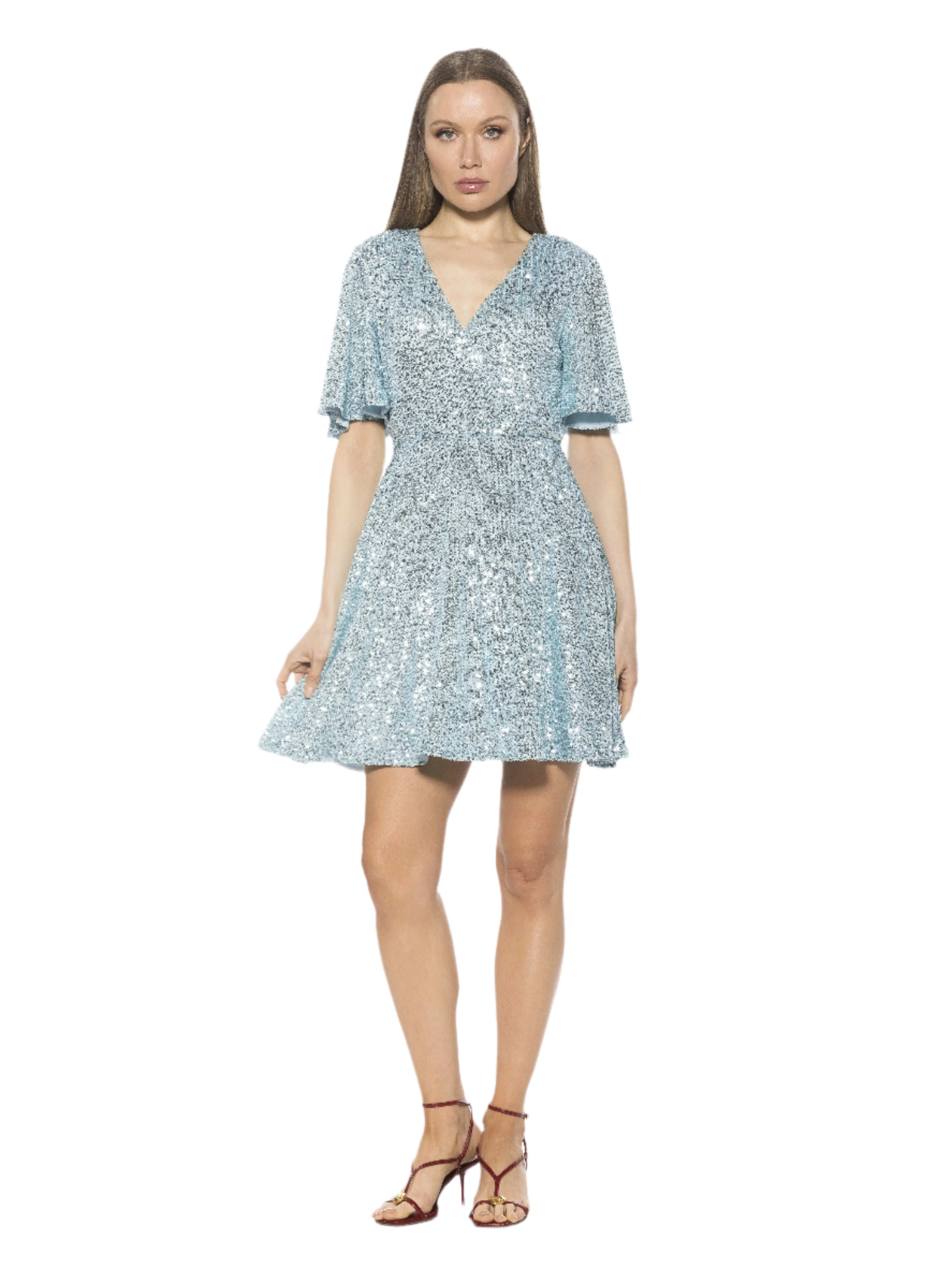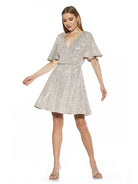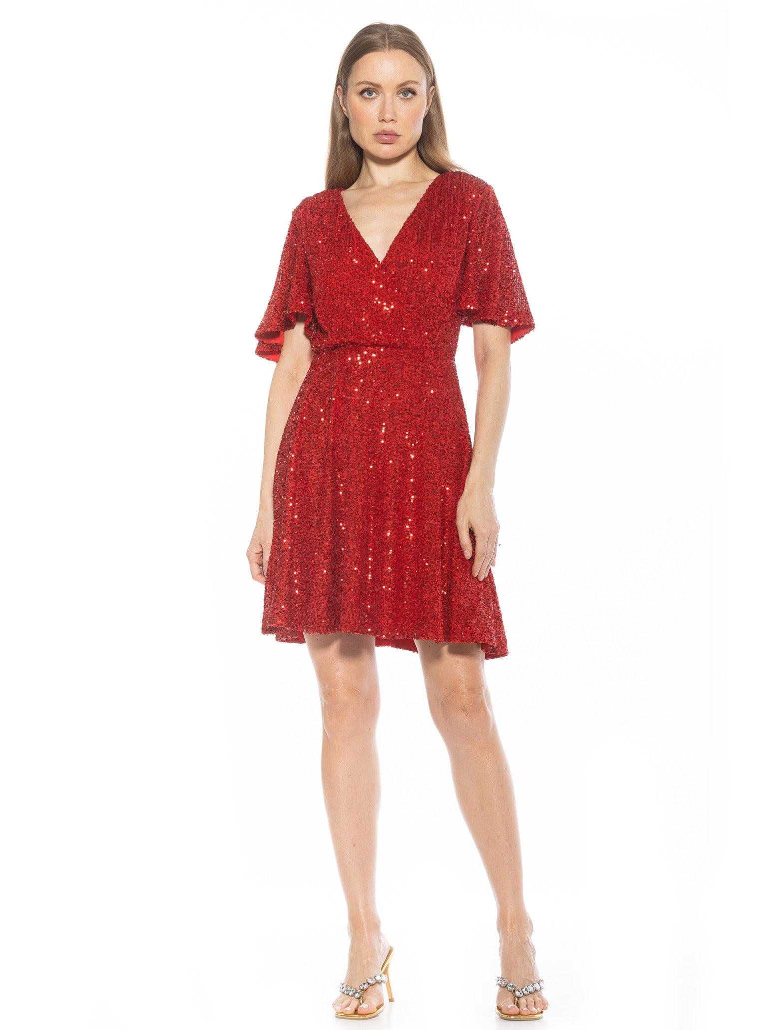 Effortlessly chic and always in style, our Oak Dress is the perfect addition to your wardrobe. Featuring a flattering V-neckline, flutter sleeves, and a stunning sequin design, this fit and flare mini dress will make you stand out in any crowd. Elevate your look with our luxurious Oak Dress.