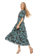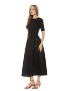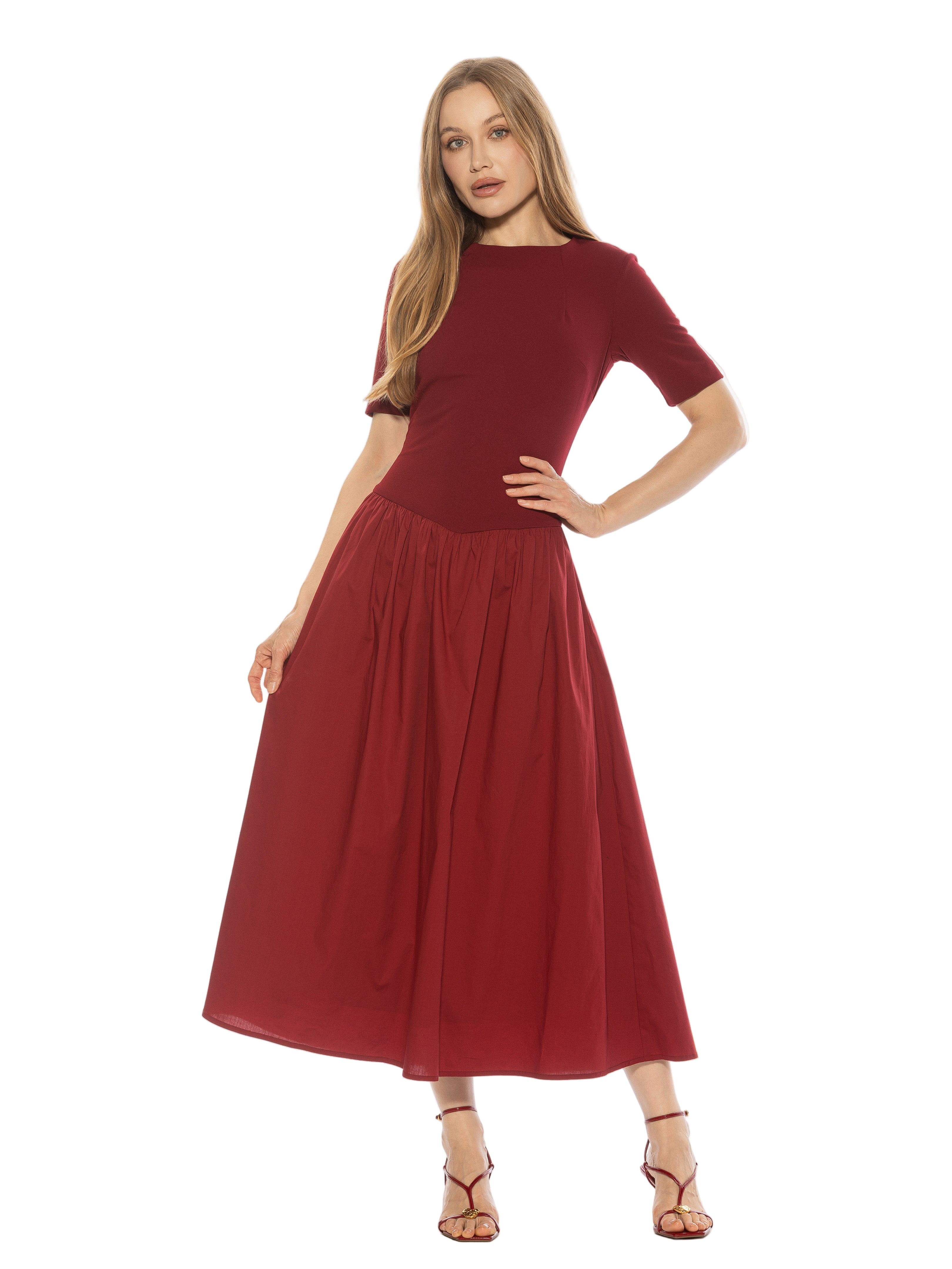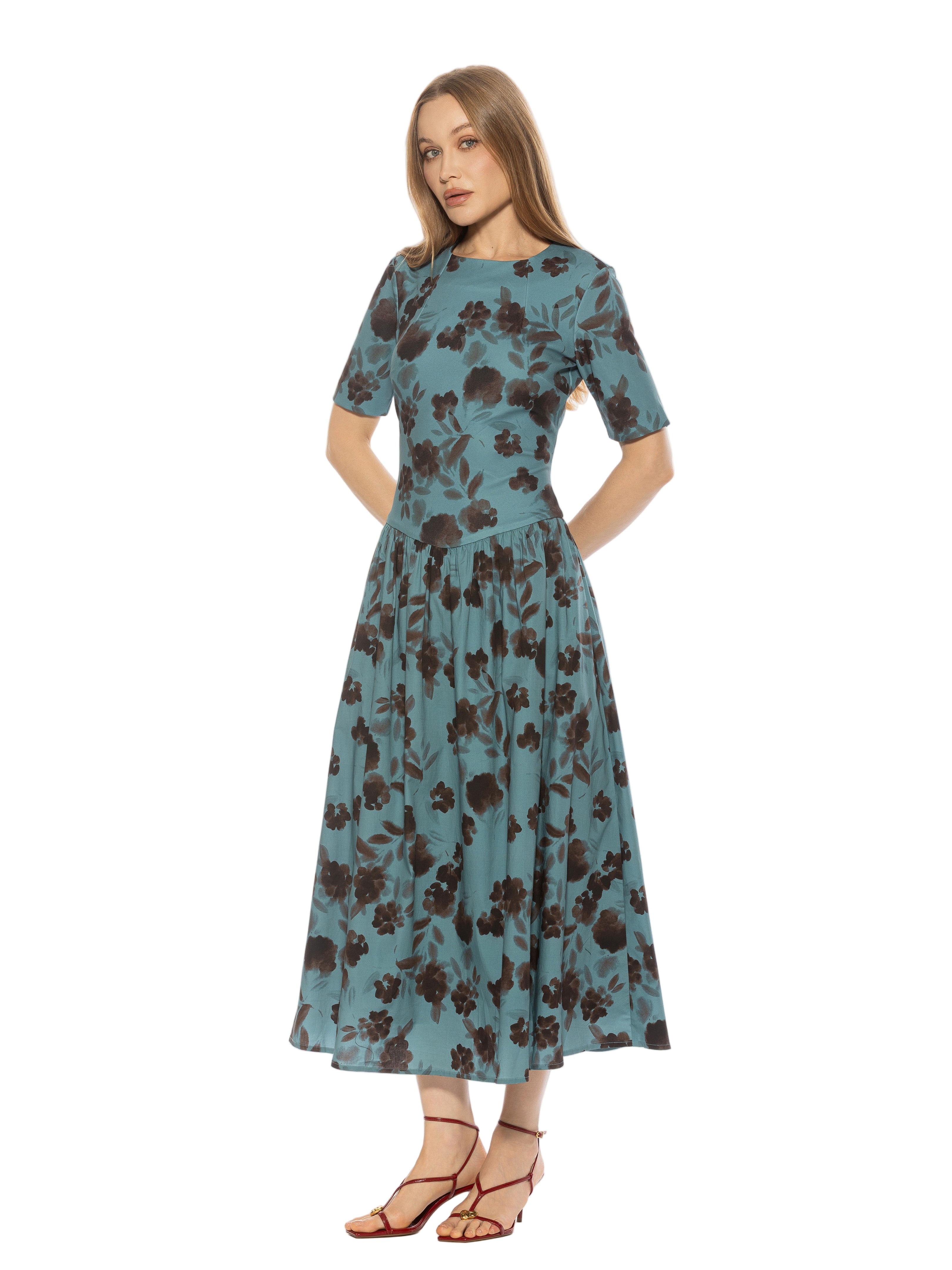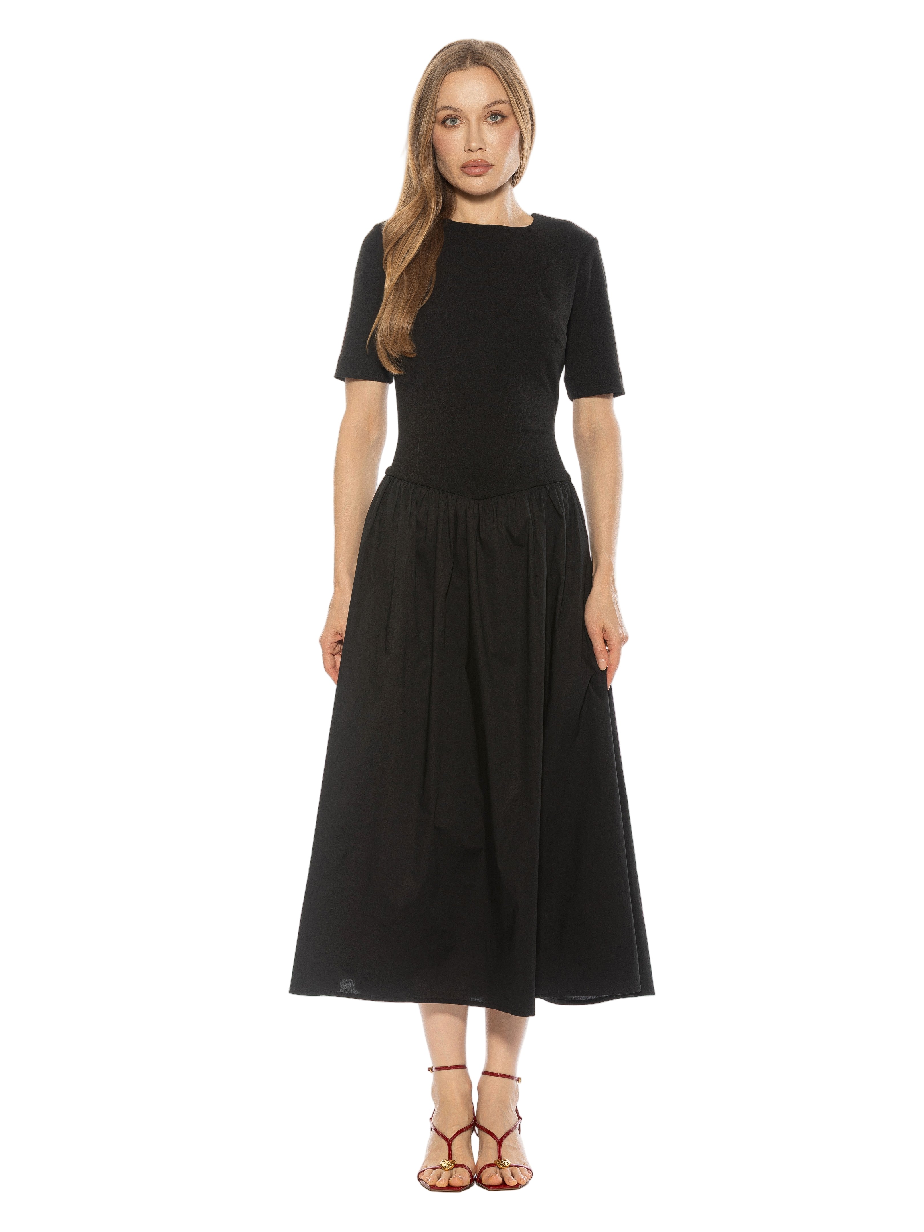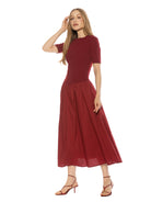 The Rowan Crewneck Short Sleeve Dropped Waist Midi Dress Is A Must Have For Your Wardrobe. This Dress Features Short Sleeves, Dropped Waist, And Midi Length.  This Dress Fits True To Size.