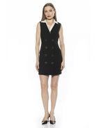 The Rune Sleeveless Double Breasted Collar Vest Dress Is A Must Have For Your Wardrobe. This Dress Features Double Breasted Design, Contrast Collar, And Sleeveless Body. This Dress Runs Small.