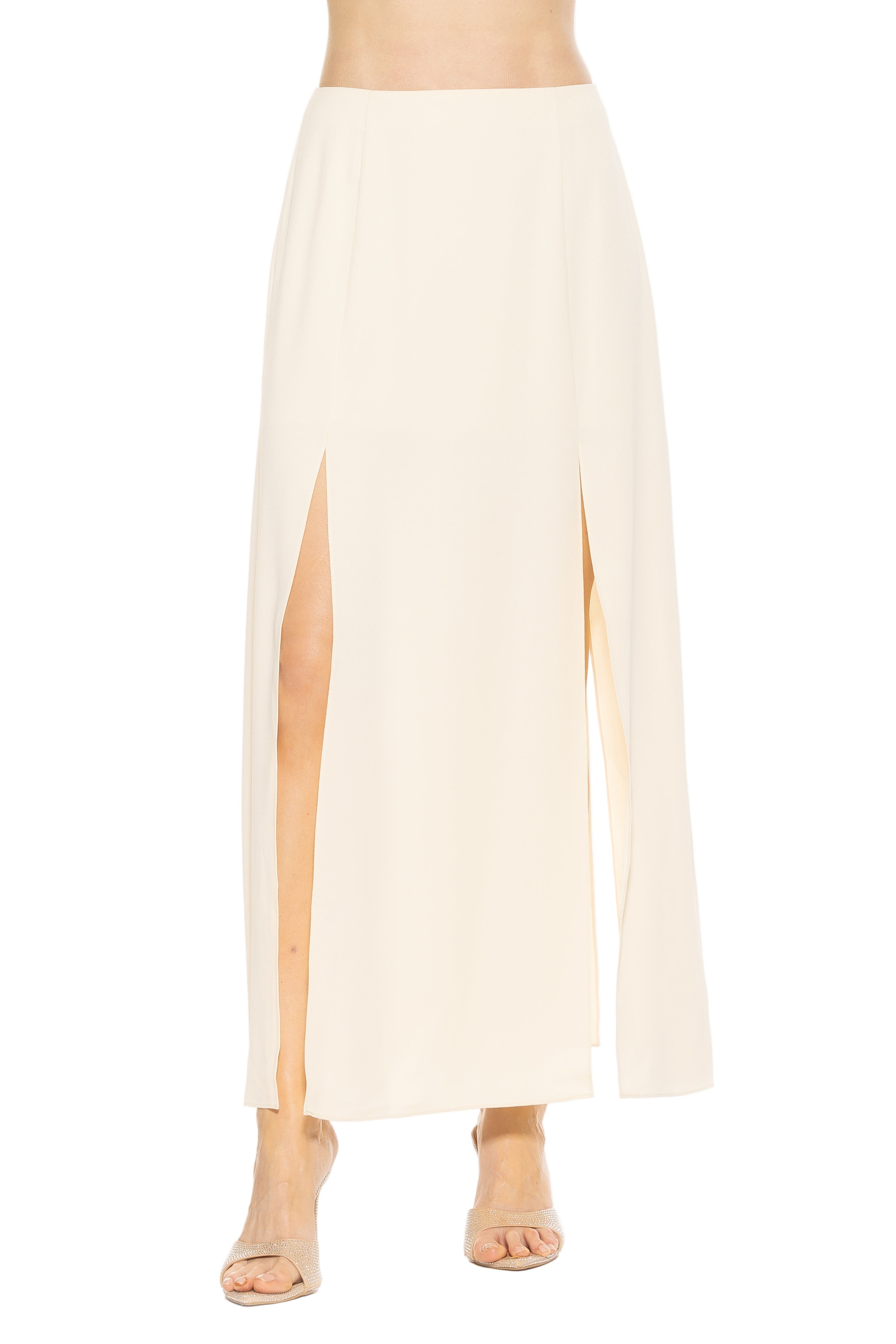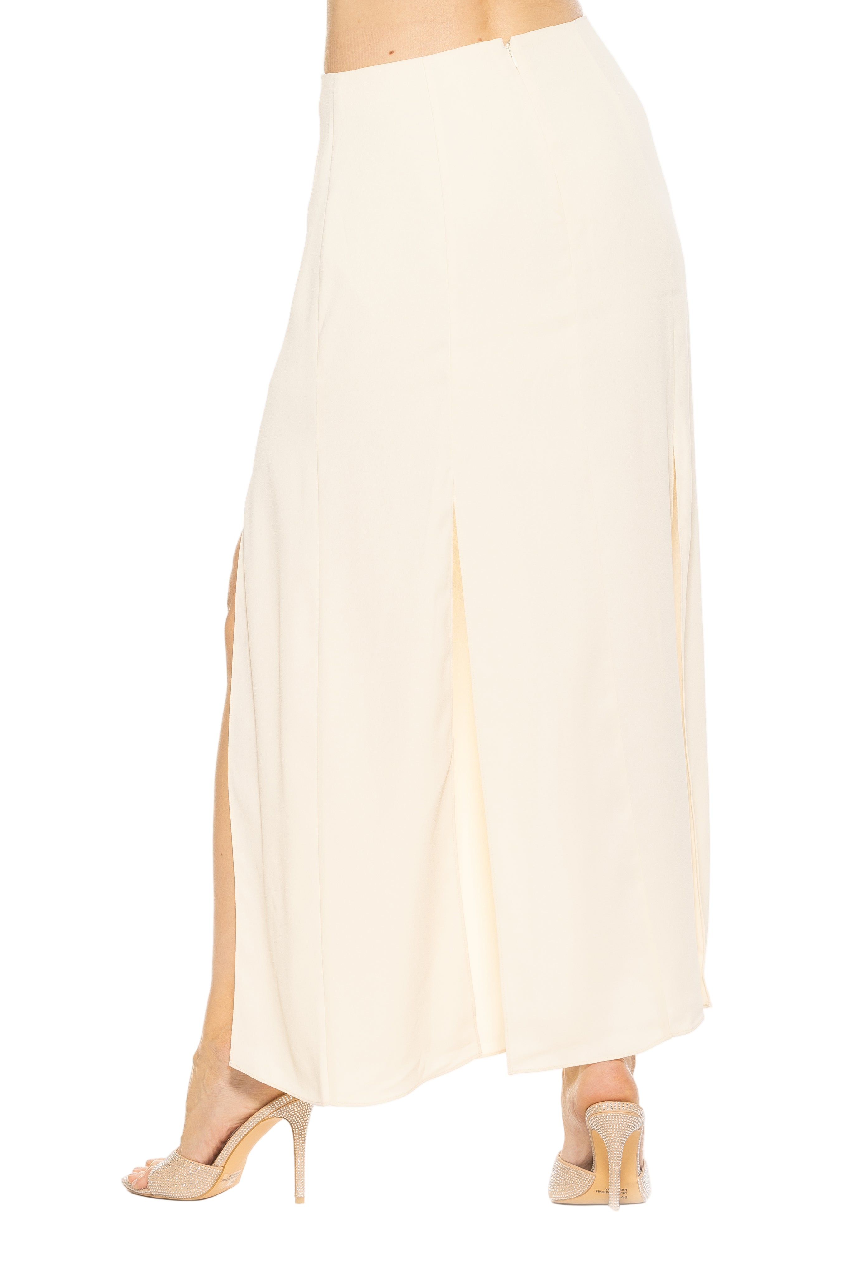 Flow and structure in one statement silhouette. The Sansa maxi skirt is crafted with strategic front and back slits to catch movement, a high waist for elongation, and luxe fabric that drapes with ease. Designed to sit true to size and elevate your effortless rotation.
