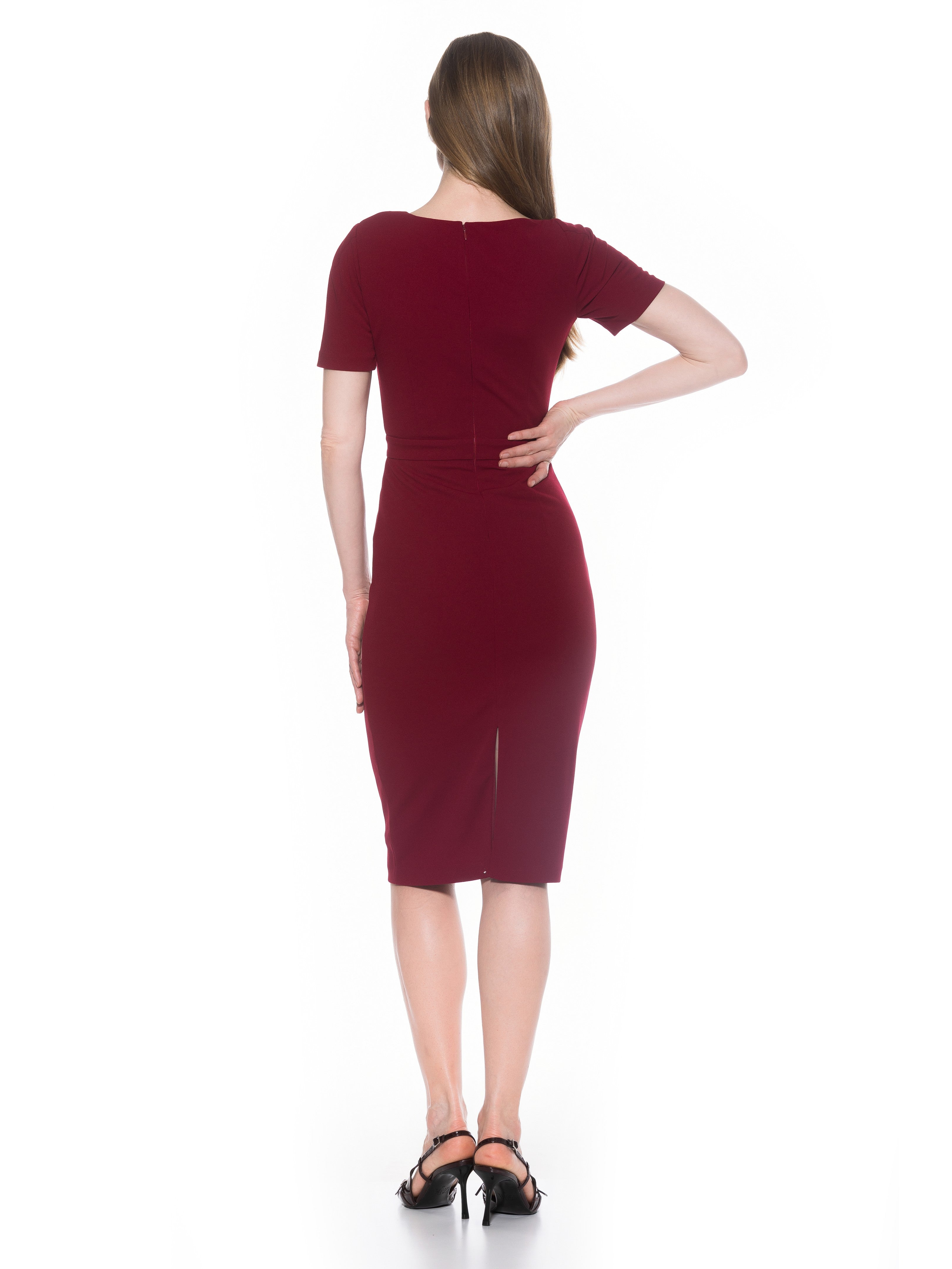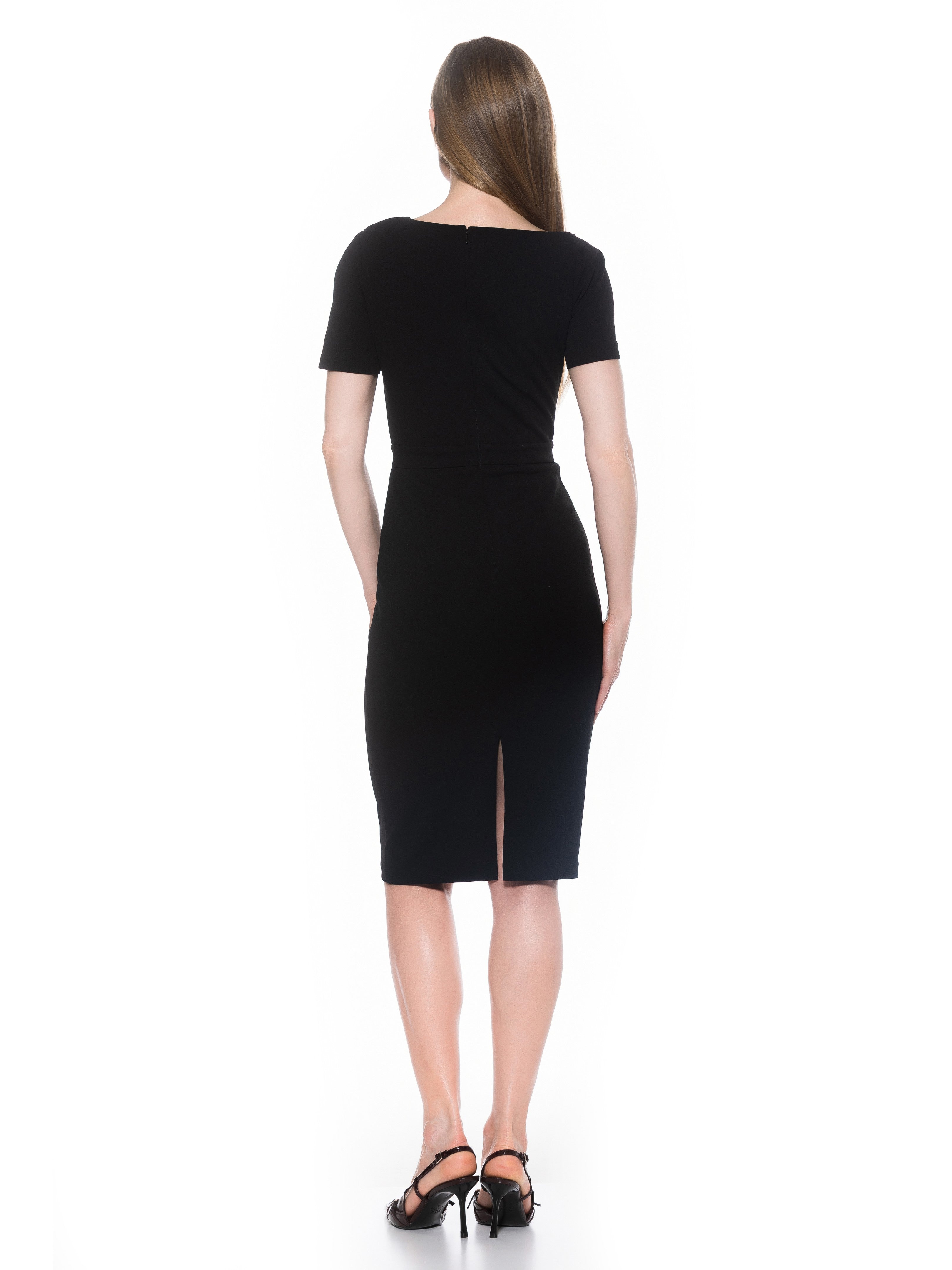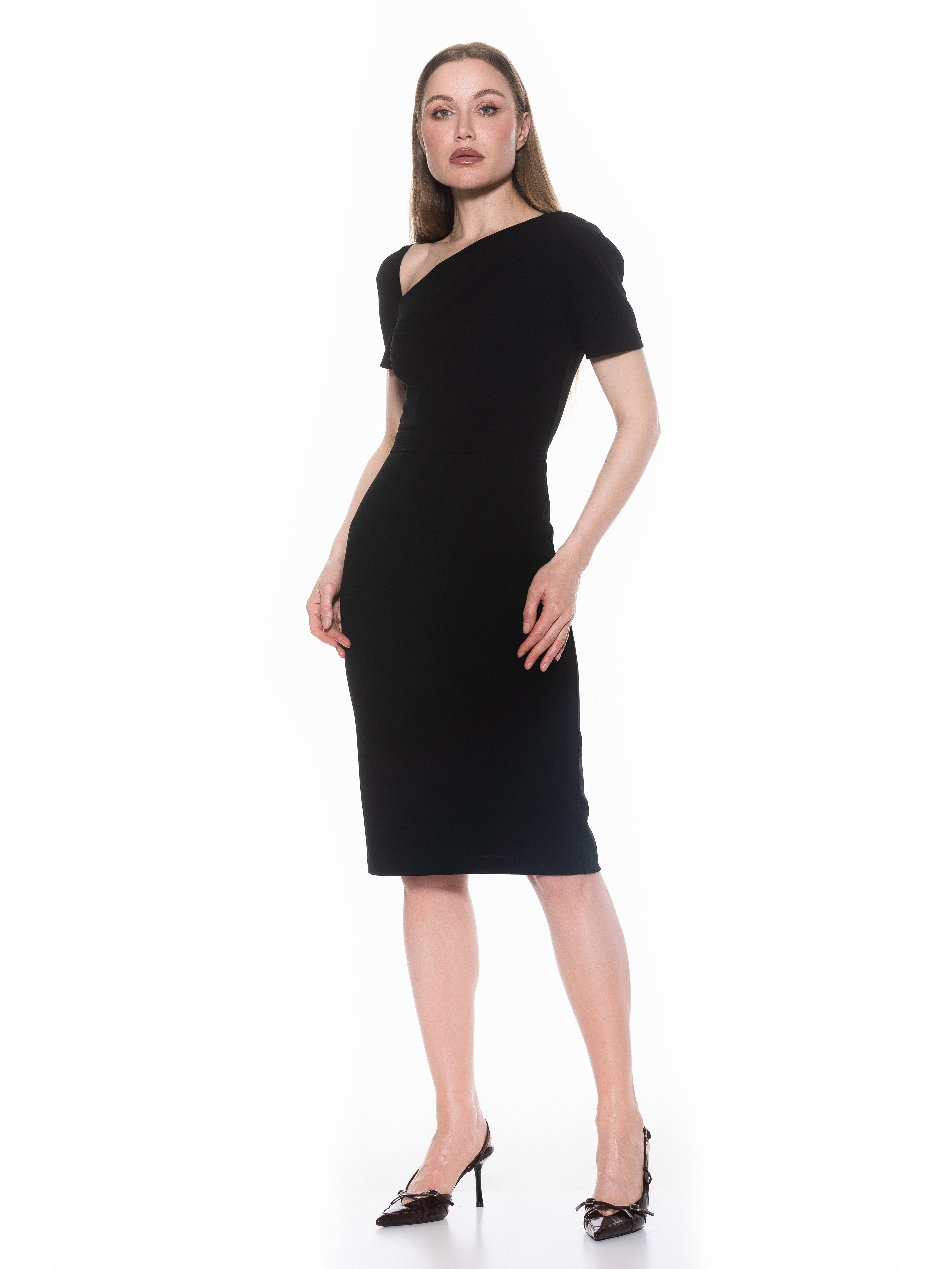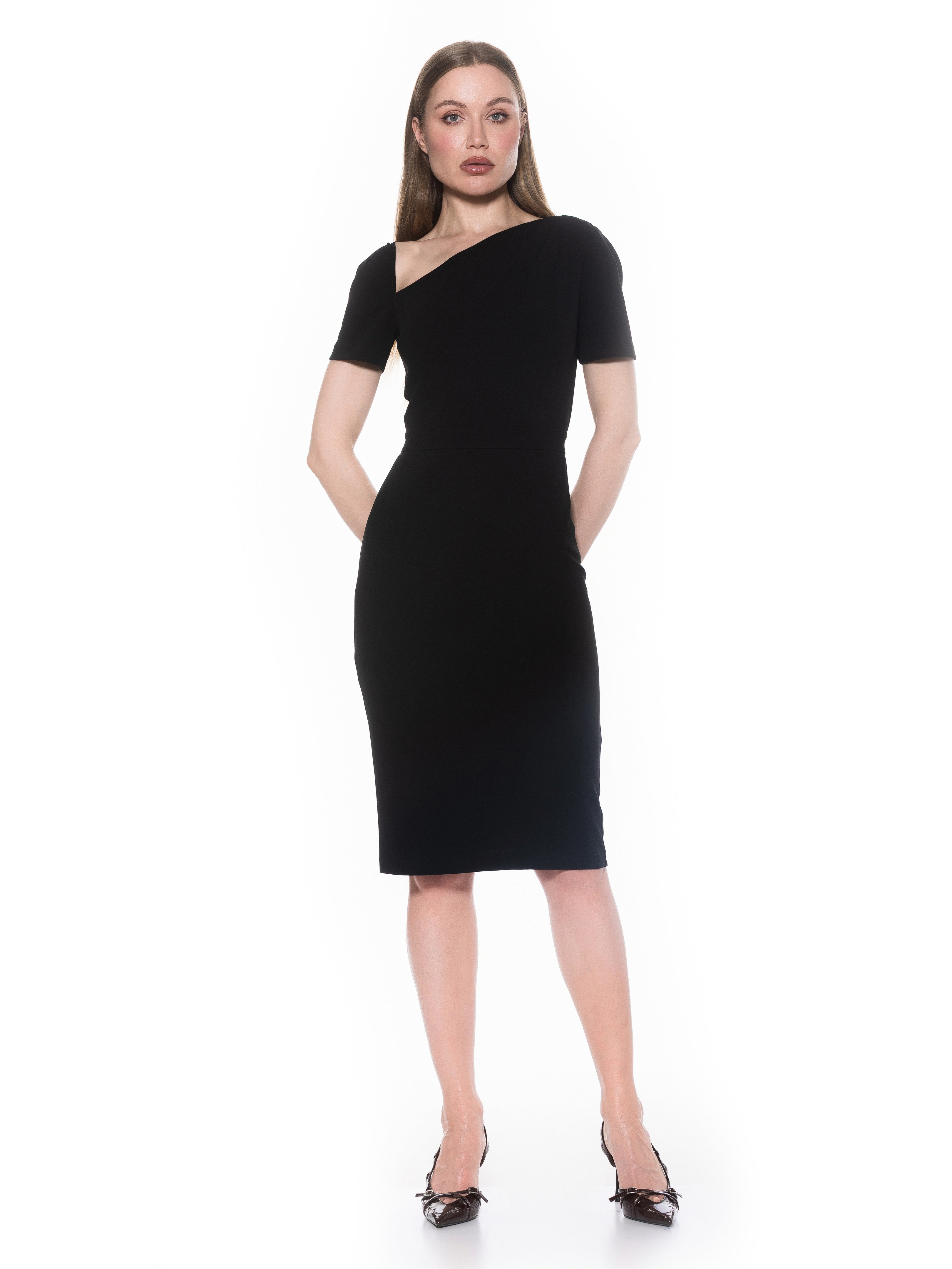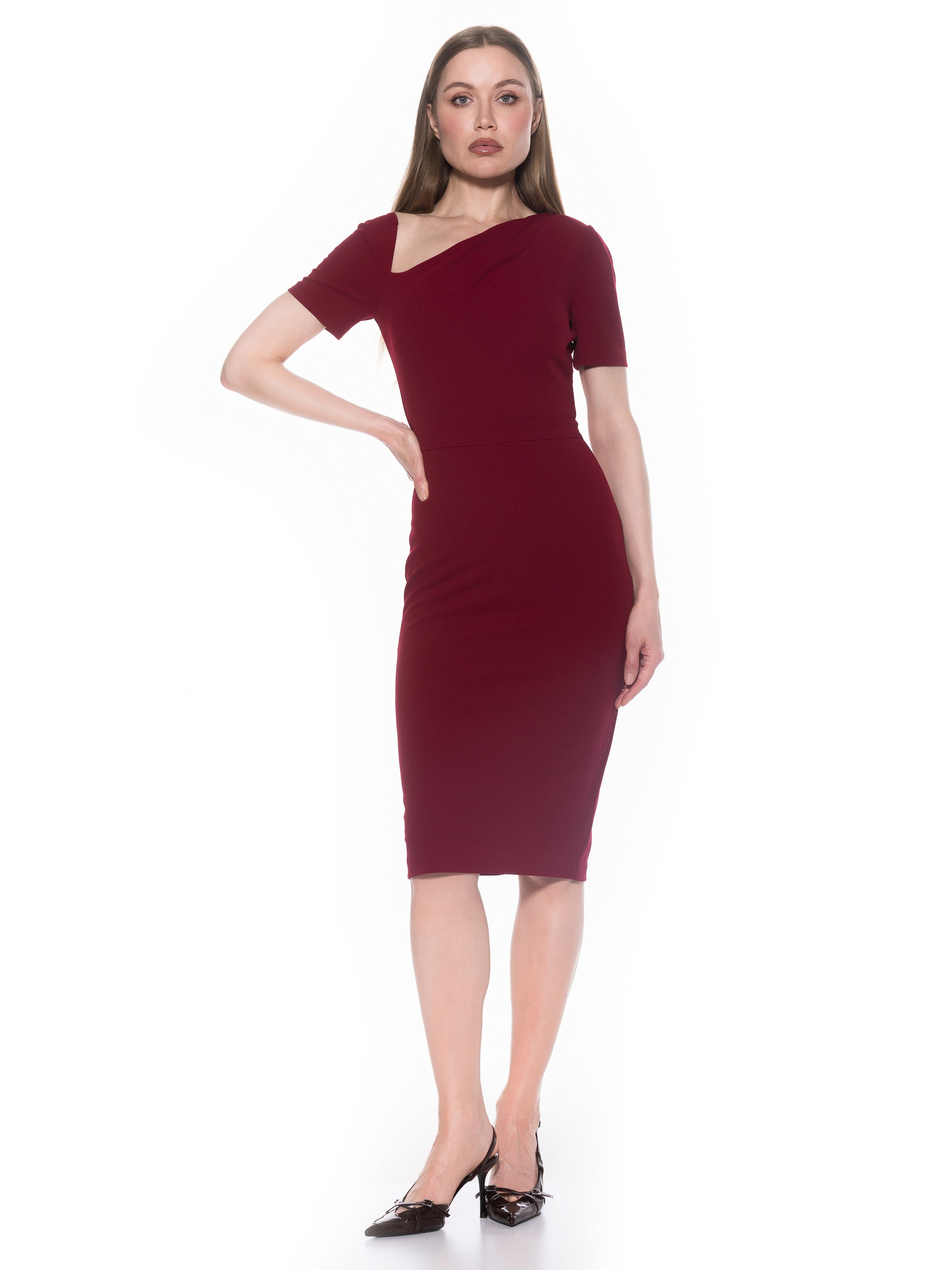 The Skylar Asymmetric Ruched Short Sleeve Midi Dress With Waistband Is A Must Have For Your Closet. This Chic Dress Features Short Sleeves, Asymmetric Neckline, And Fitted Sheath Body. This Dress Fits True To Size.