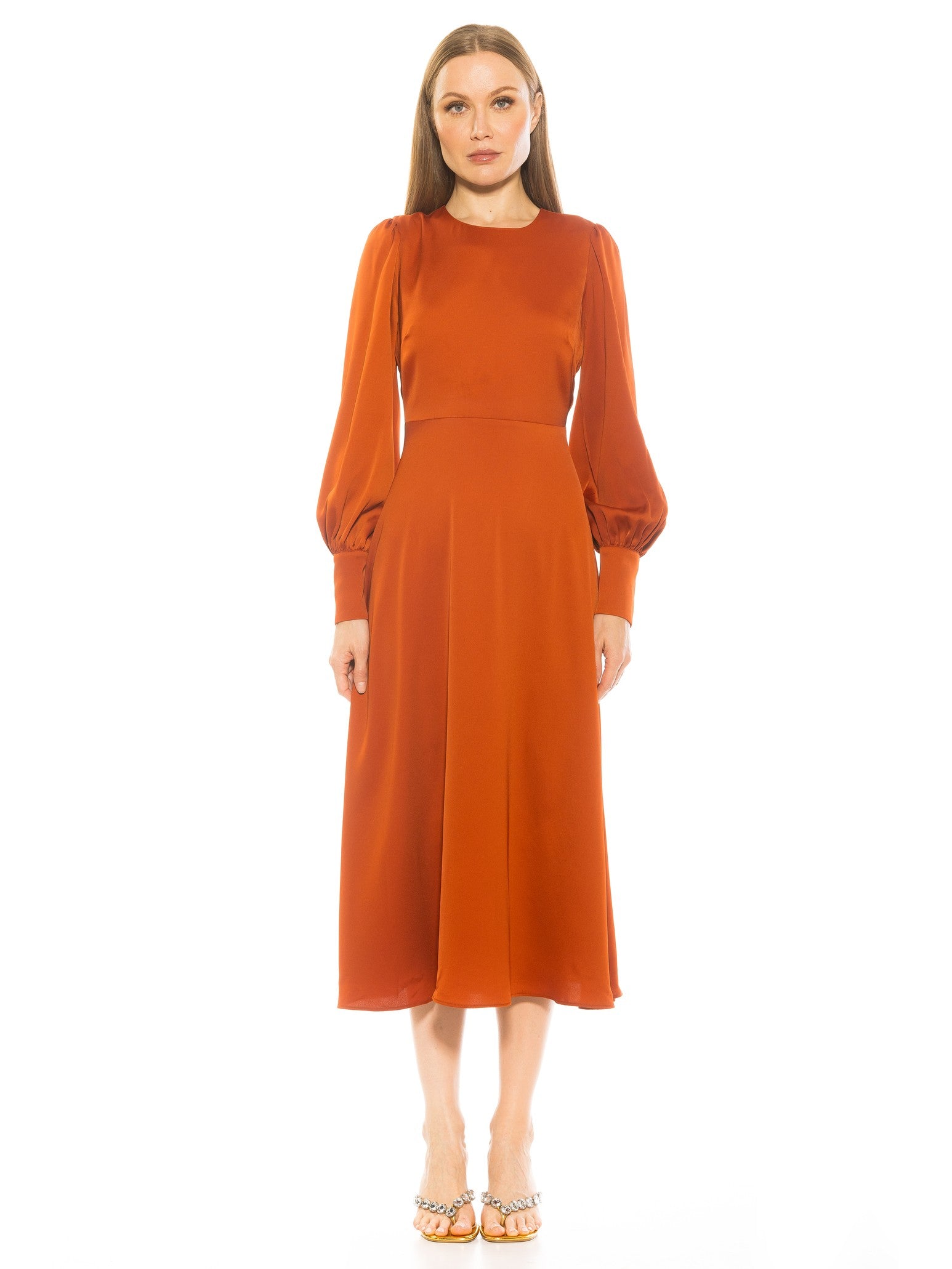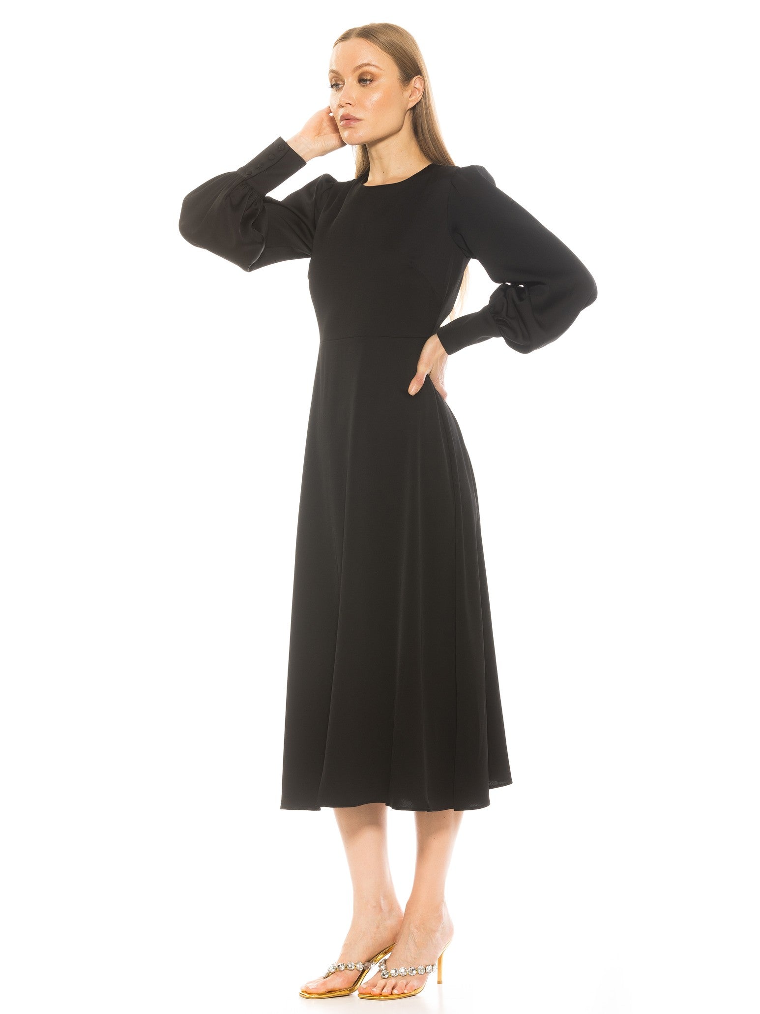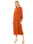 The Sophie Crewneck Fit And Flare Dress with Blouson Sleeve Is A Must Have Piece For Your Closet. This Dress Features Long Blouson Sleeves, Crew Cut Neckline, Long Flared Skirt And Fitted Bodice. This Item Runs Small.