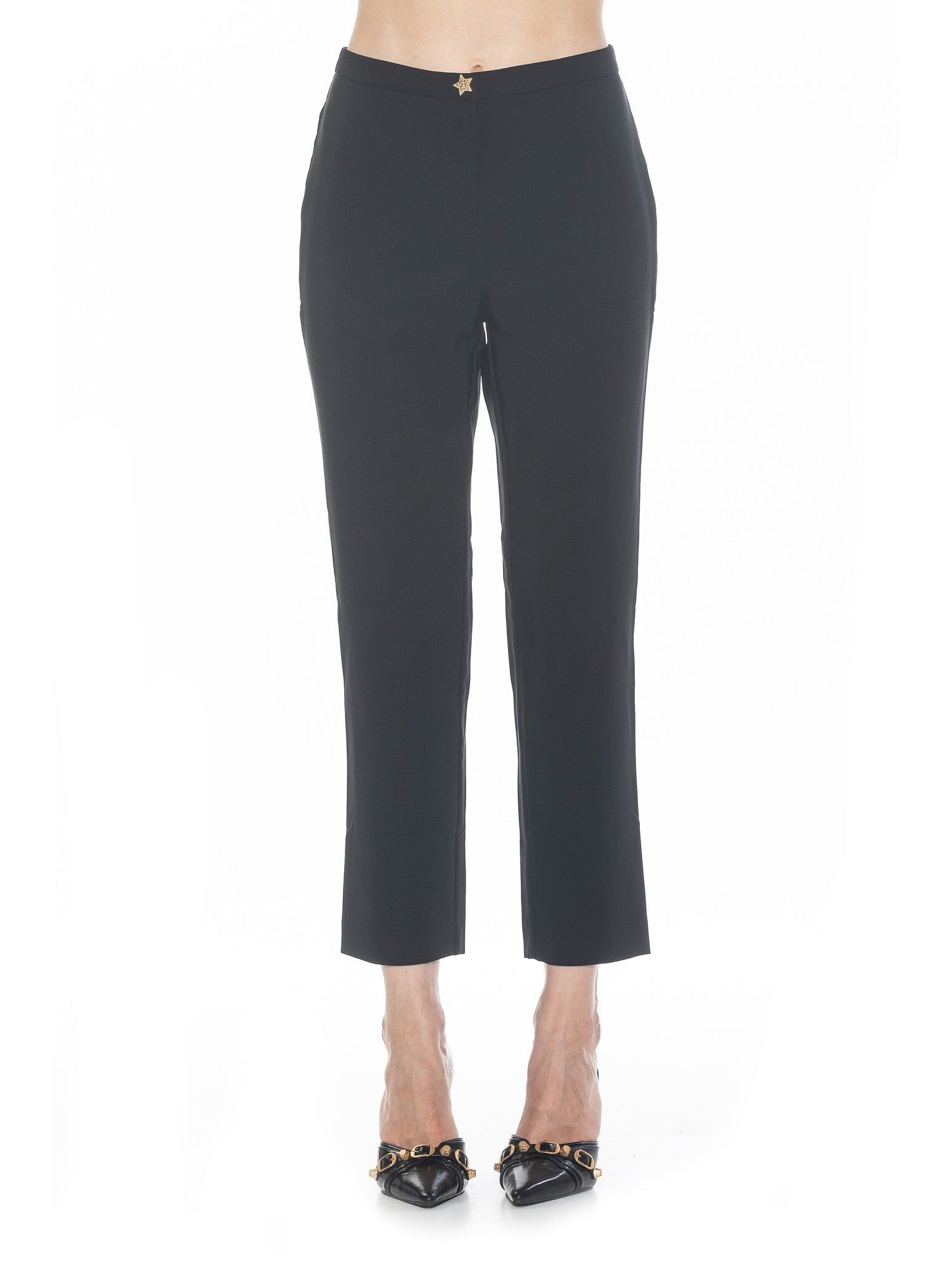Elevate your wardrobe with our Stefan Pants. Designed with a high waist and a slim fit, these cropped pants are both elegant and versatile. The star button detail adds a touch of sophistication, making them perfect for any occasion. Dress them up or keep it casual, these pants are a must-have for any fashion-forward individual.