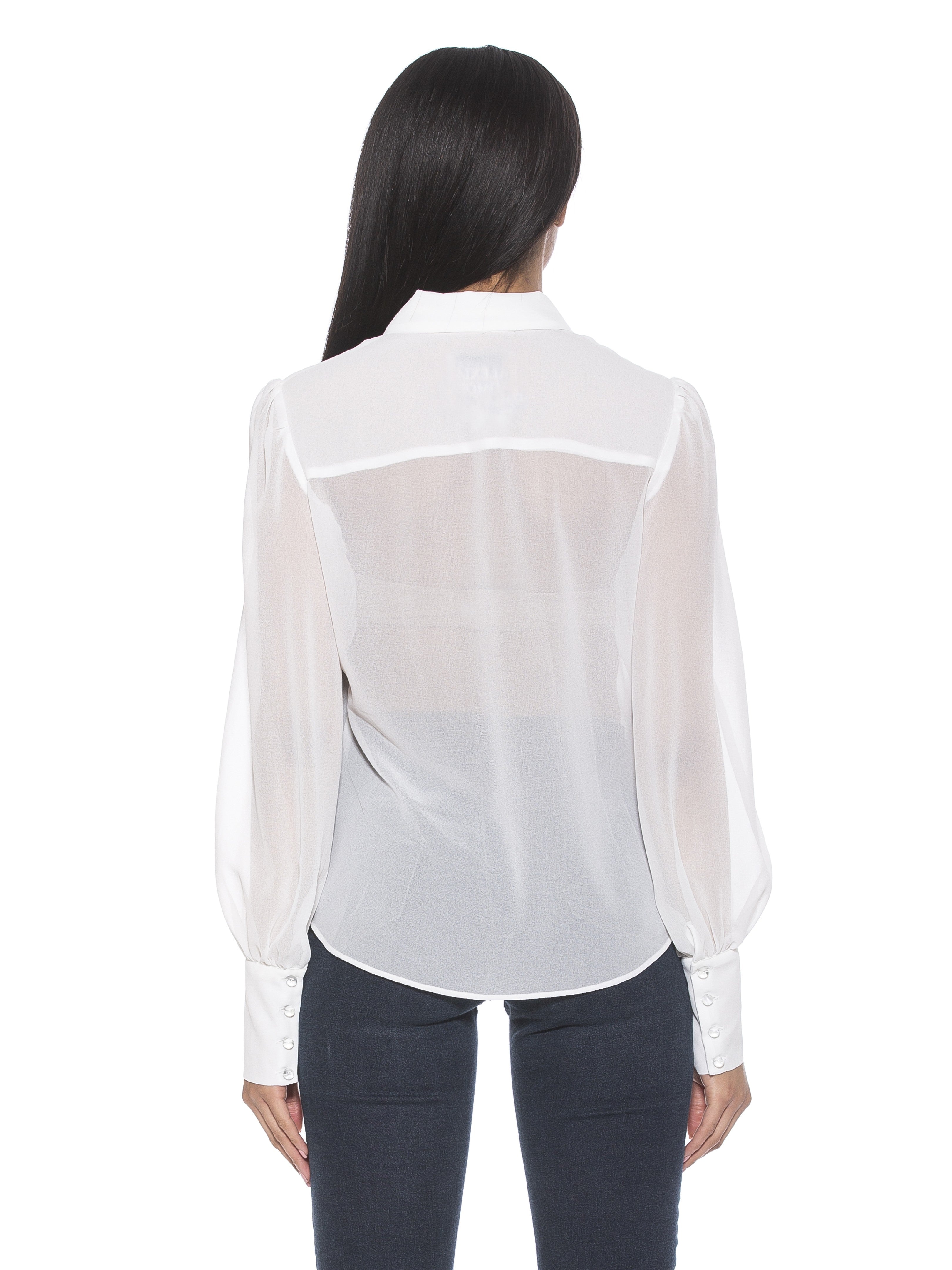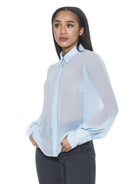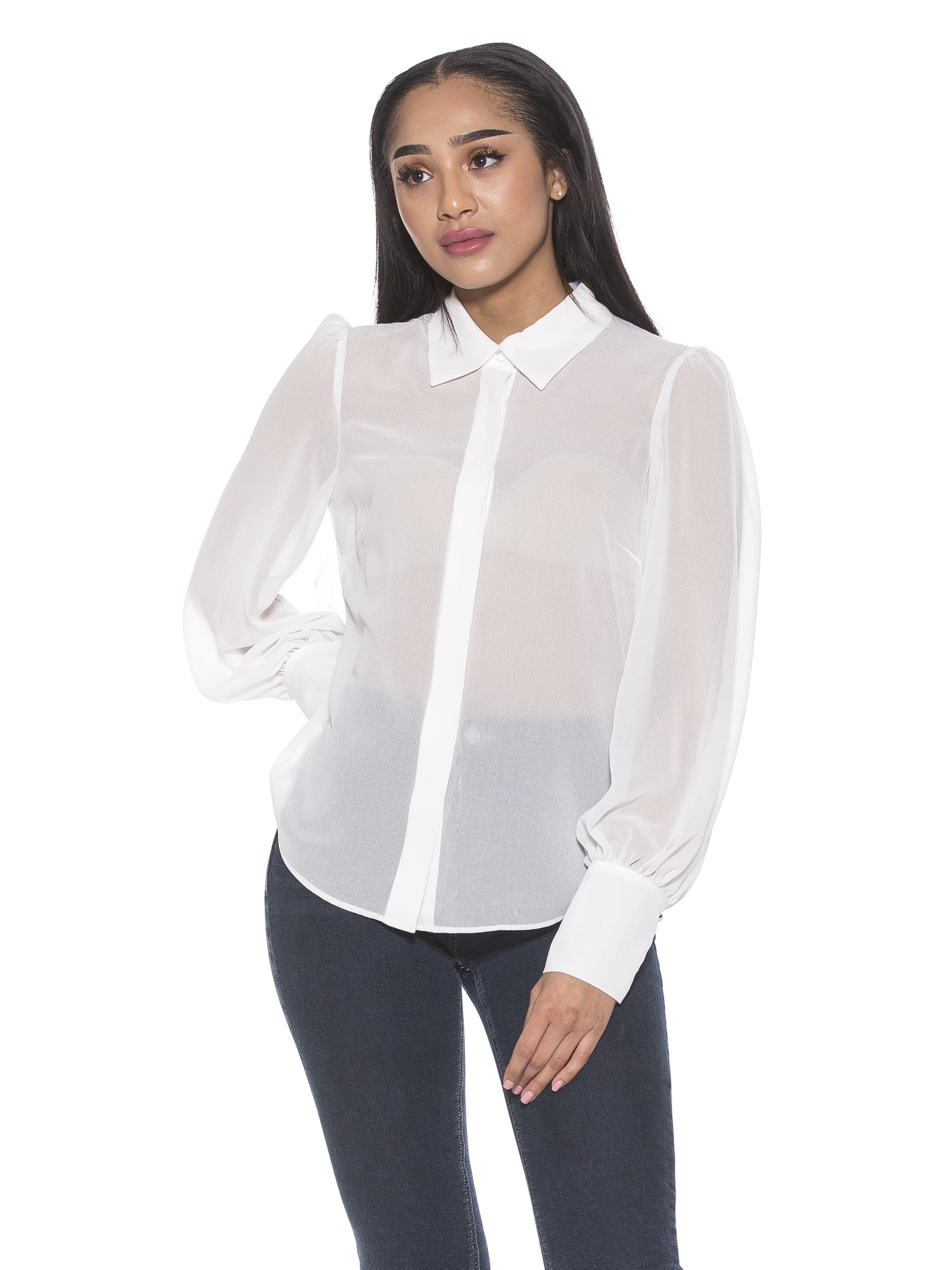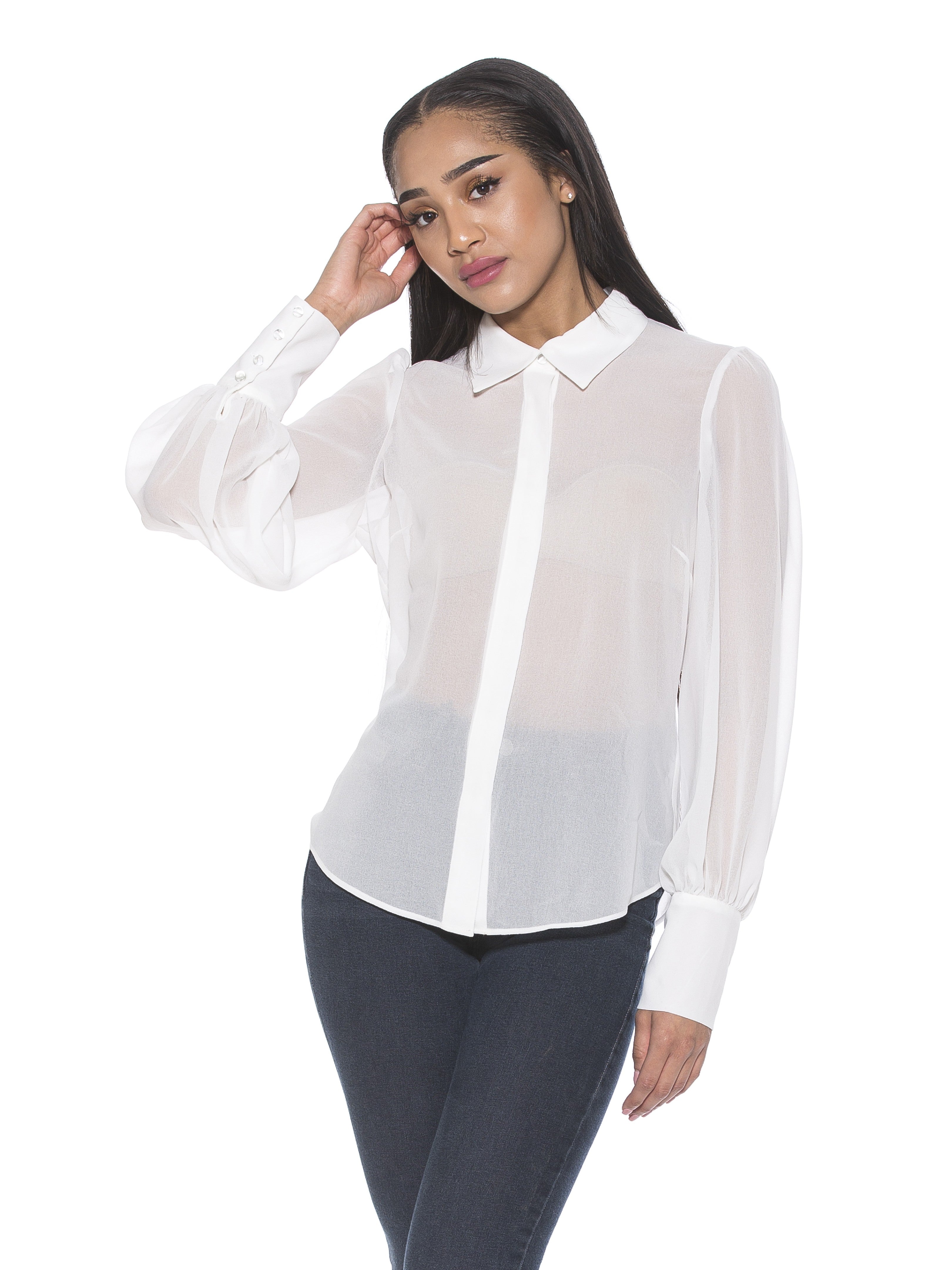 Look and feel your best in the Zayn Blouse. Crafted from a sheer fabric, it features a classic button down design with a sharp collar to complete the look. Enjoy a sophisticated, exclusive look perfect for a night out or formal occasion.