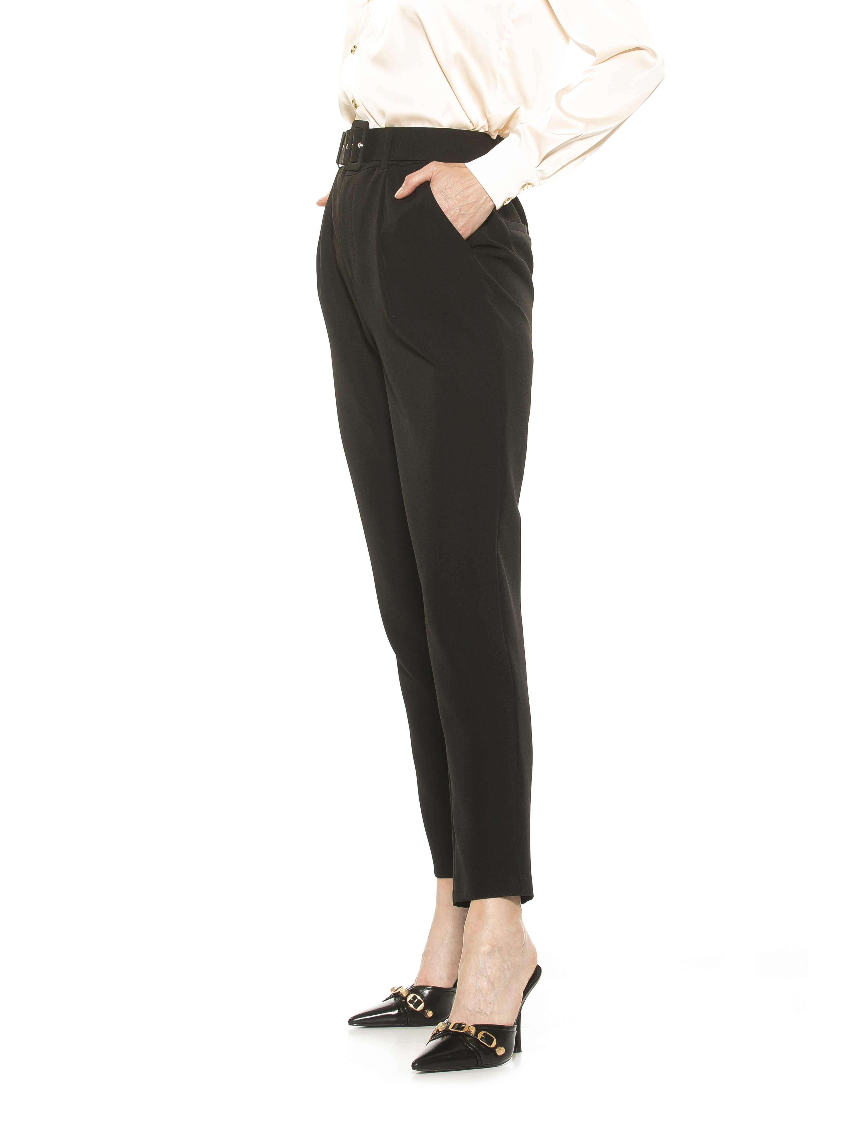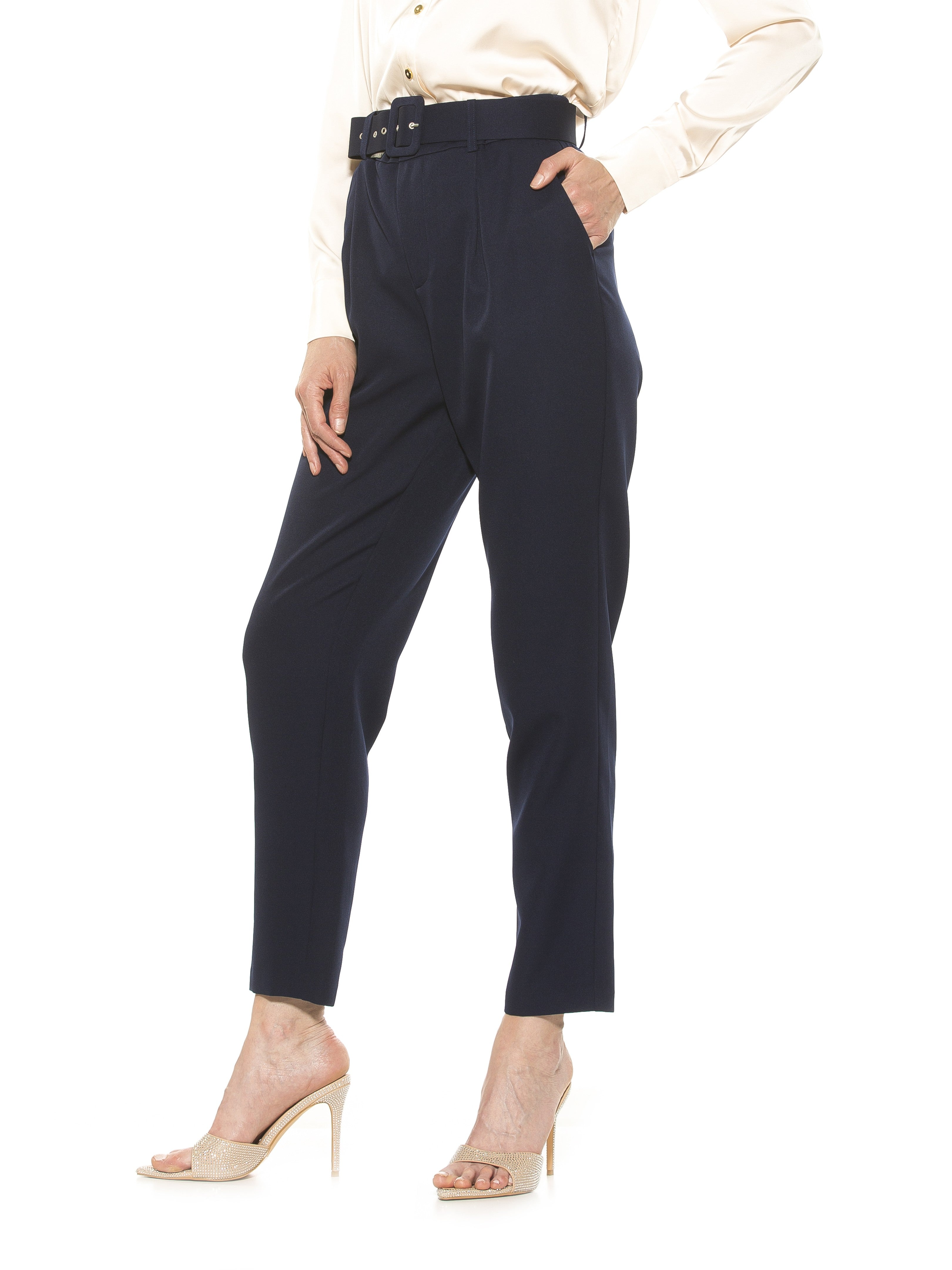 The Zayna Pants are perfect pants. Crafted with a high waist and relaxed fit through the thigh, they feature a tapered leg and charming belt detail. The Zayna Pants offer a classic silhouette perfect for any occasion.