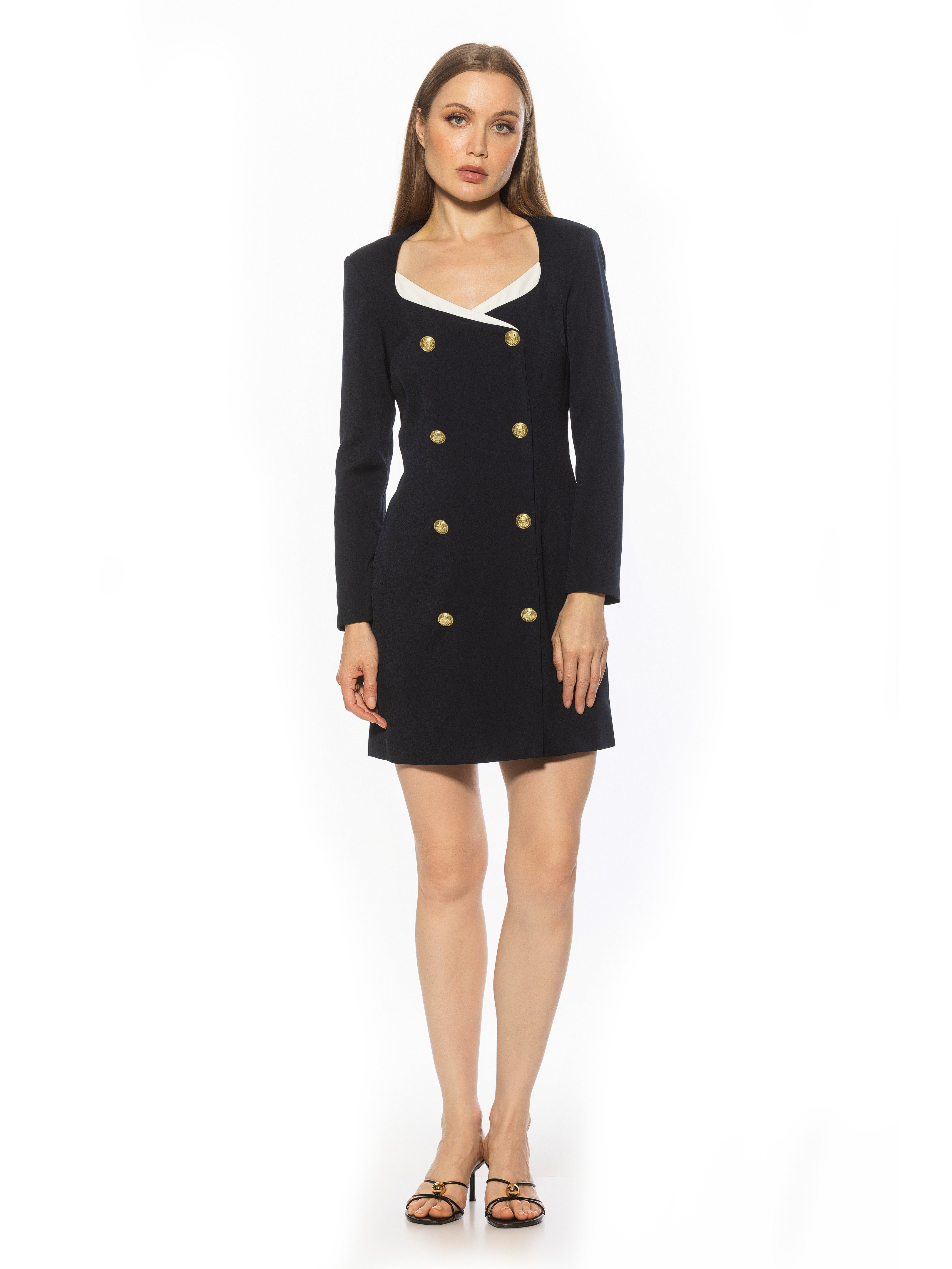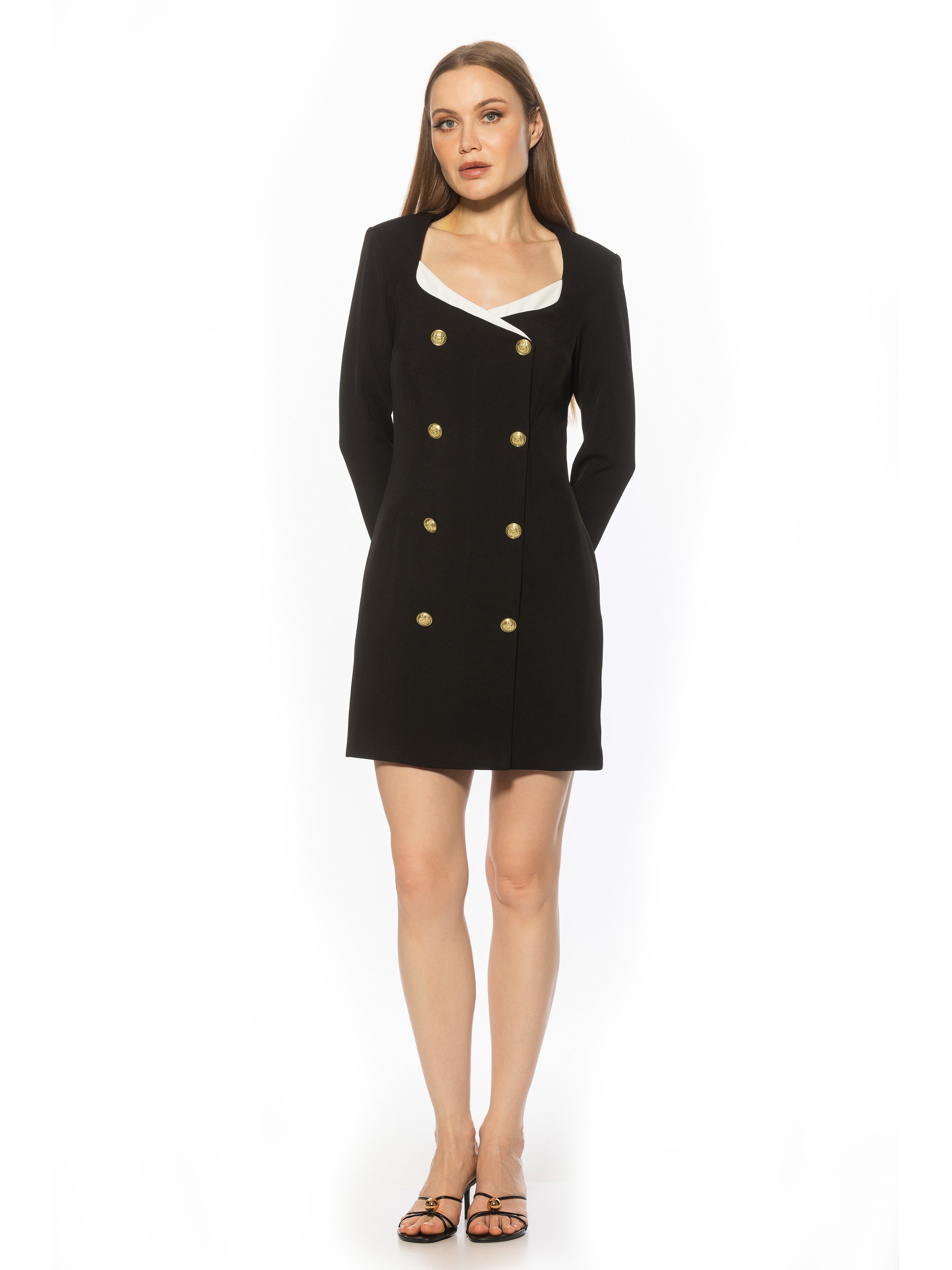 The Zuri Long Sleeve Blazer Dress With Contrast Trim Is A Must Have For Your Closet. This Stunning Dress Features Long Sleeves, Contrast Trim At Neckline, And Novelty Buttons. This Item Runs Small.