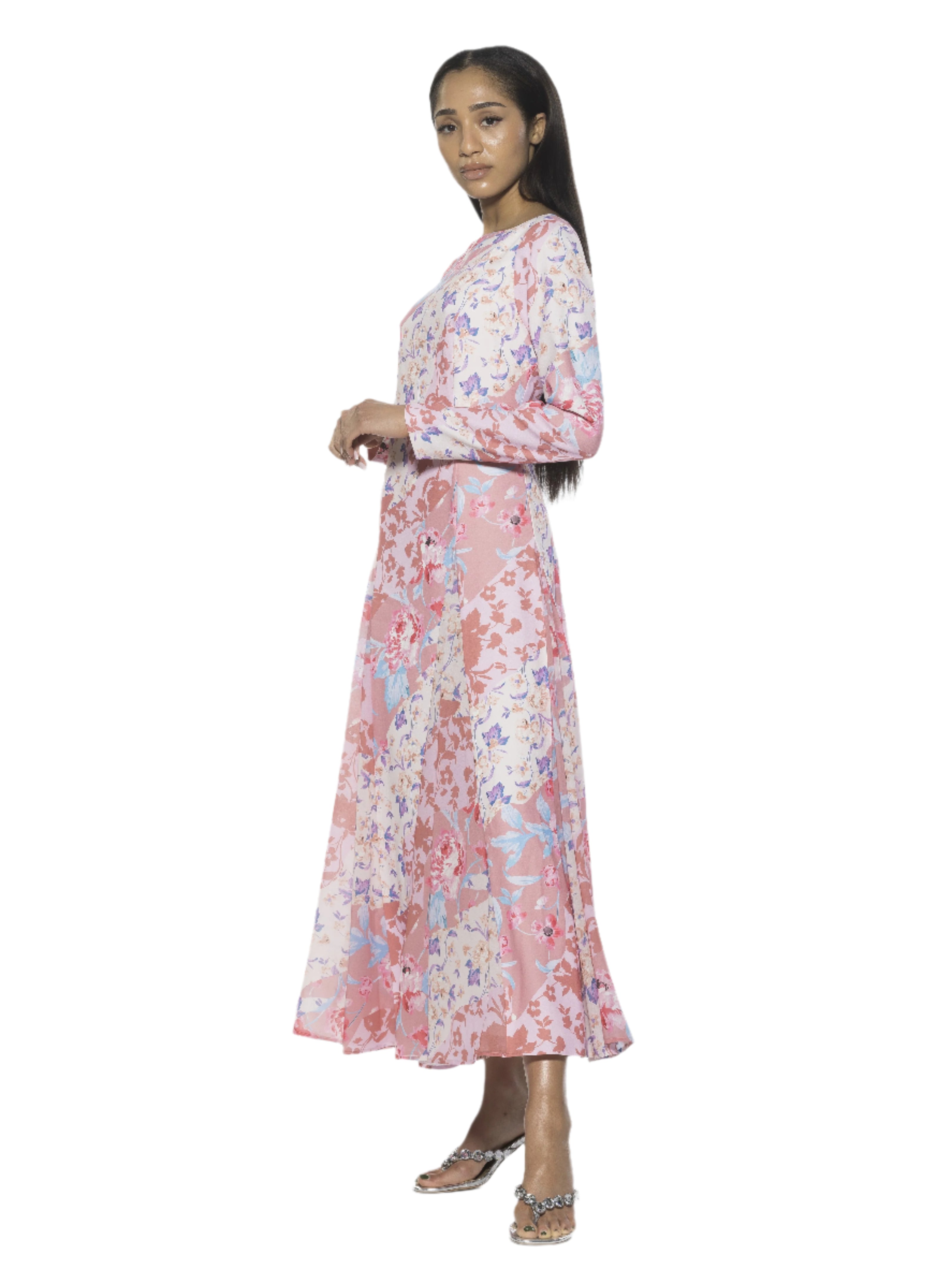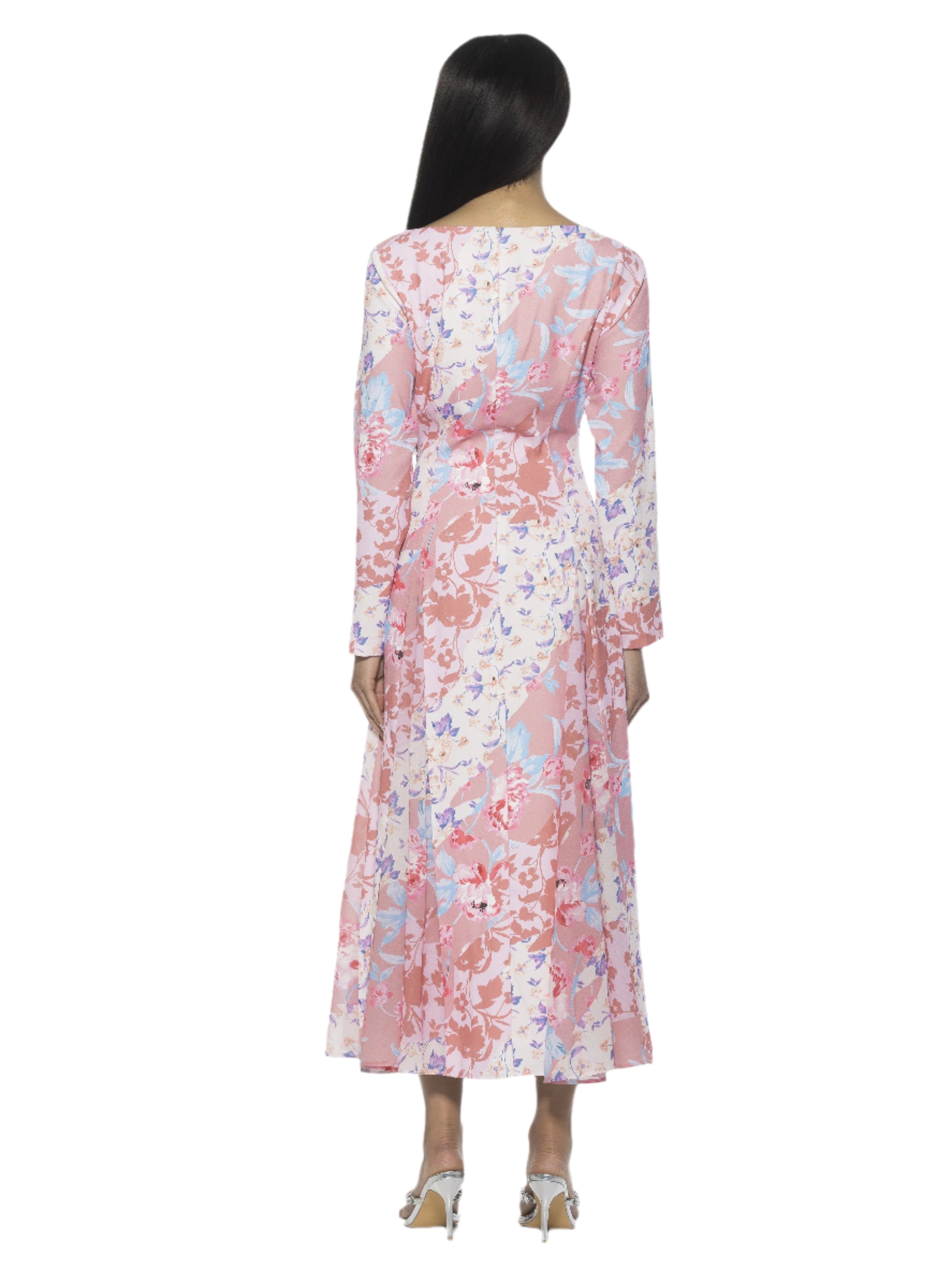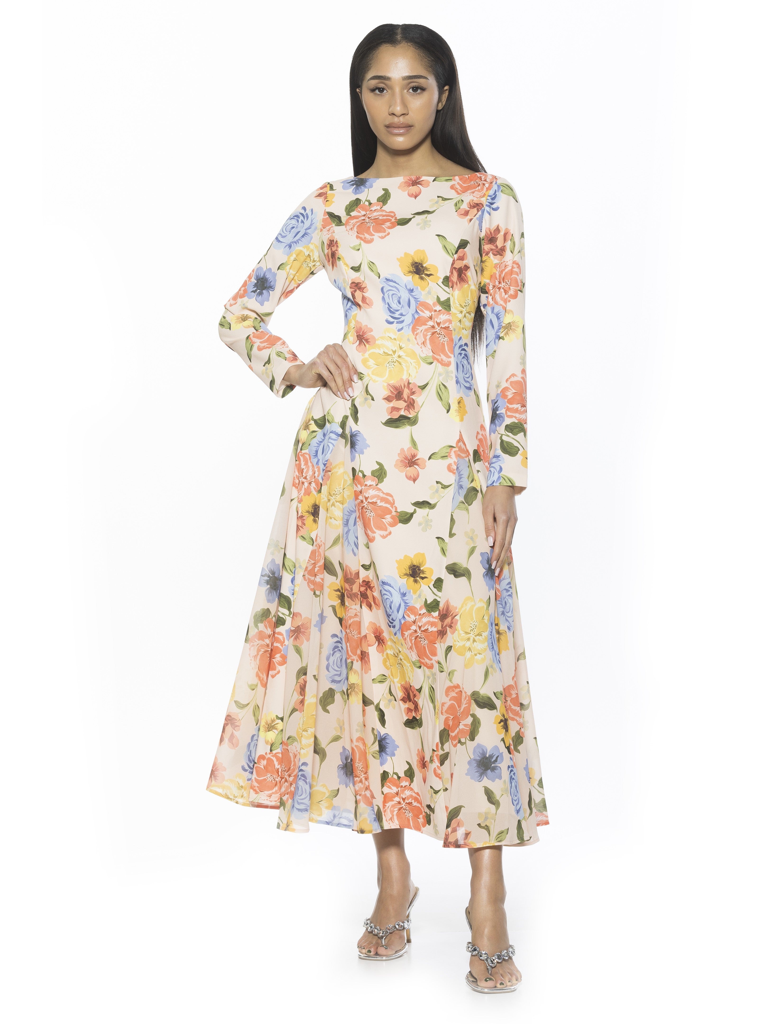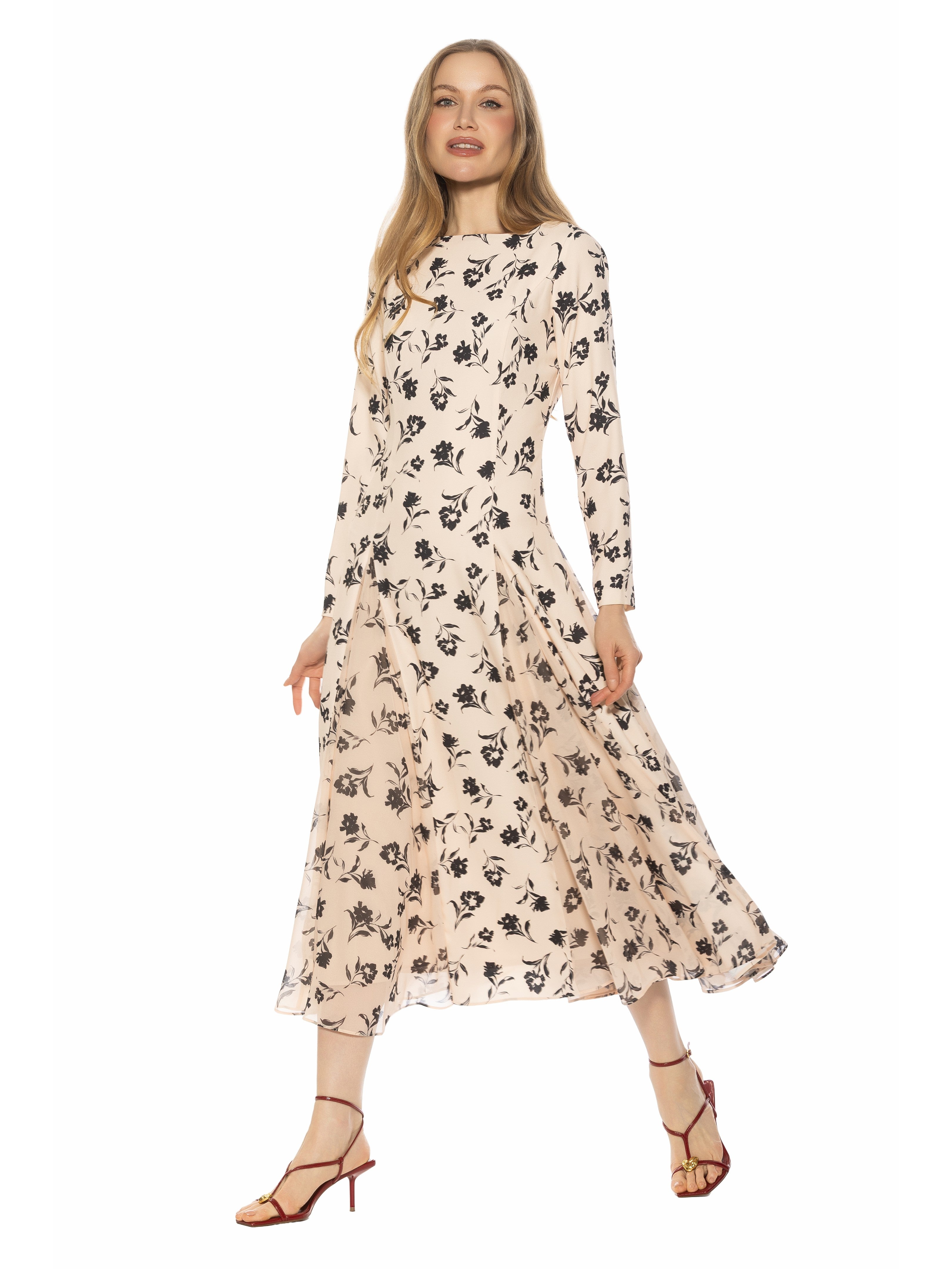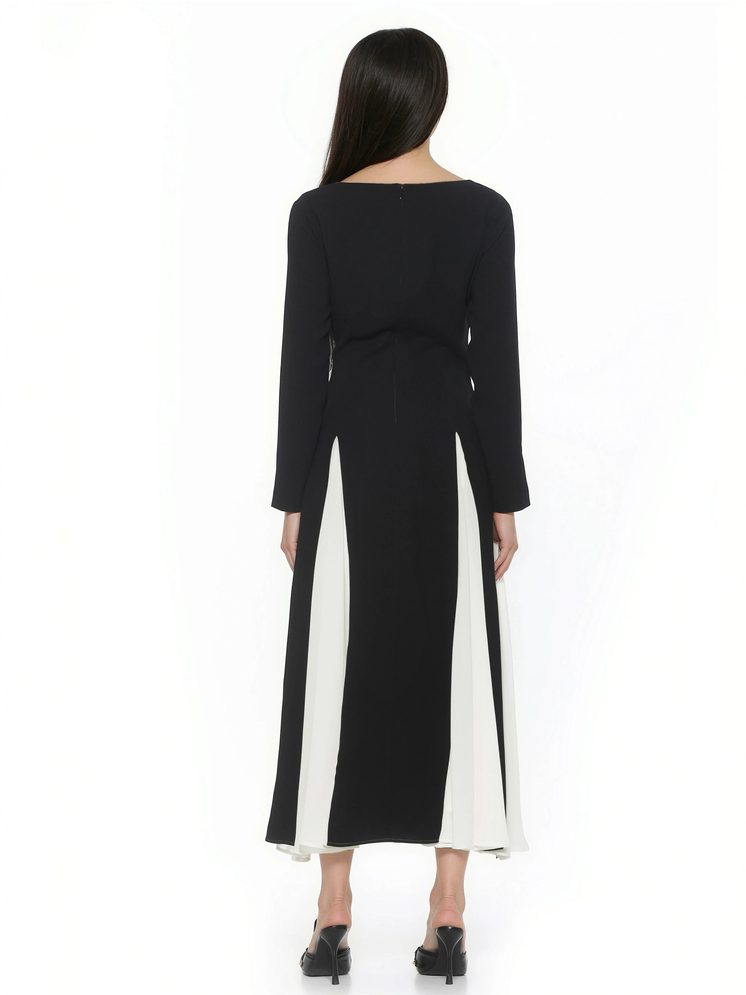 A poetic blend of timeless femininity and modern structure, this midi silhouette is elevated by artfully placed godets that create a sweeping, full skirt. With a refined crewneck and gracefully elongated sleeves, it drapes with a quiet confidence that moves from daytime appointments to candlelit evenings with ease. Crafted in luxe woven crepe that holds shape while flowing with every step, this dress epitomizes cultivated style and lasting allure. This Dress Runs Small.