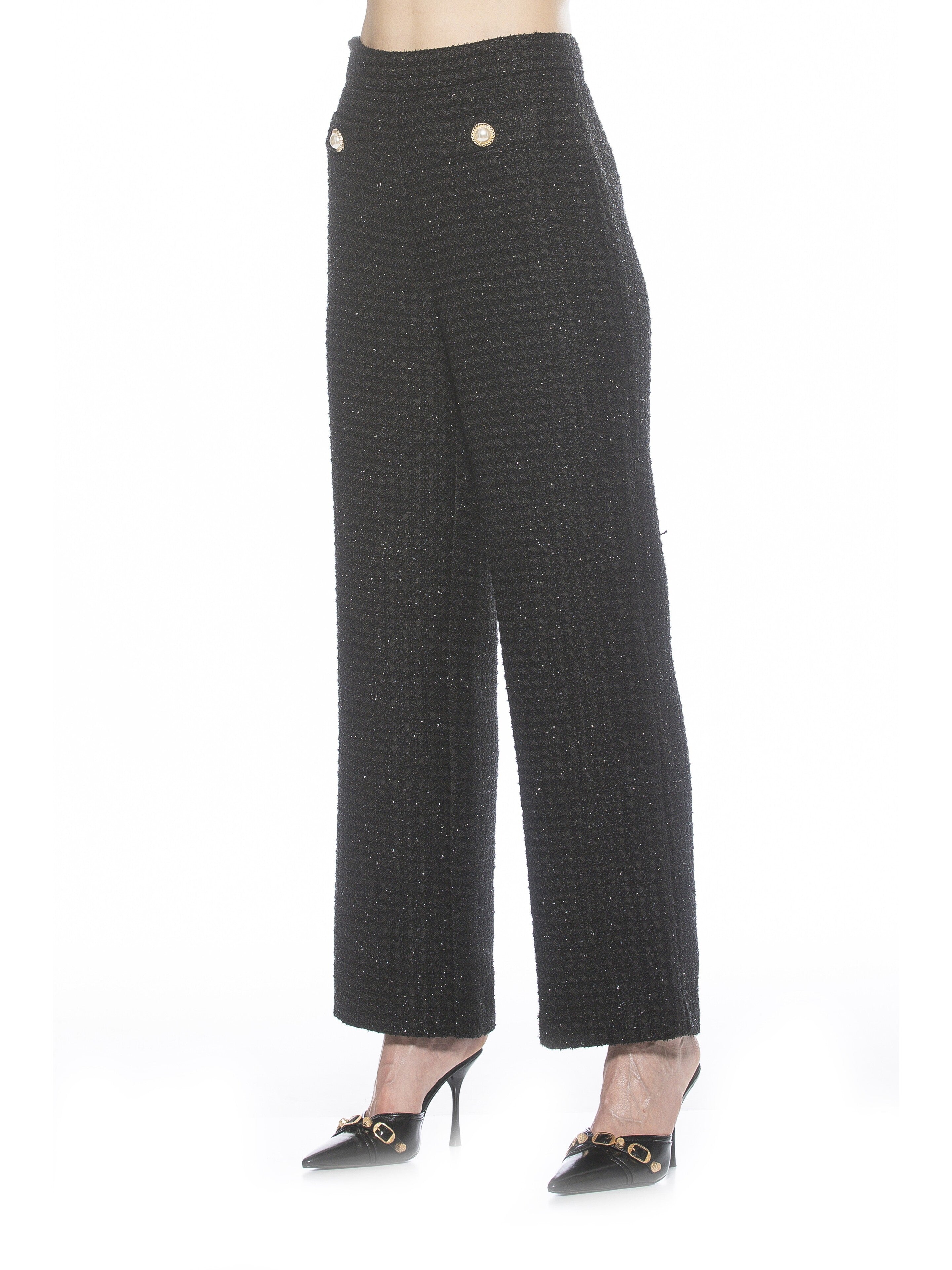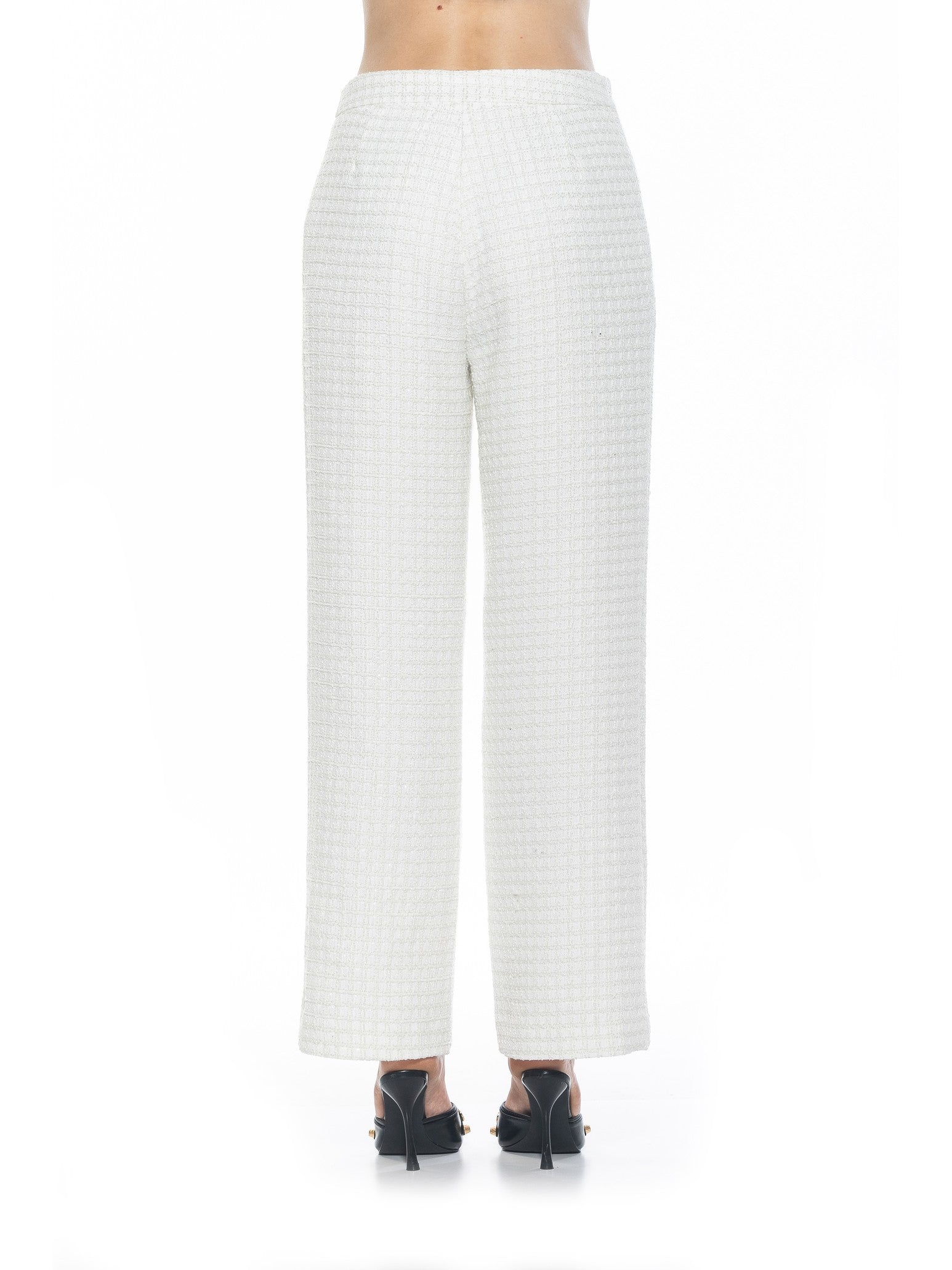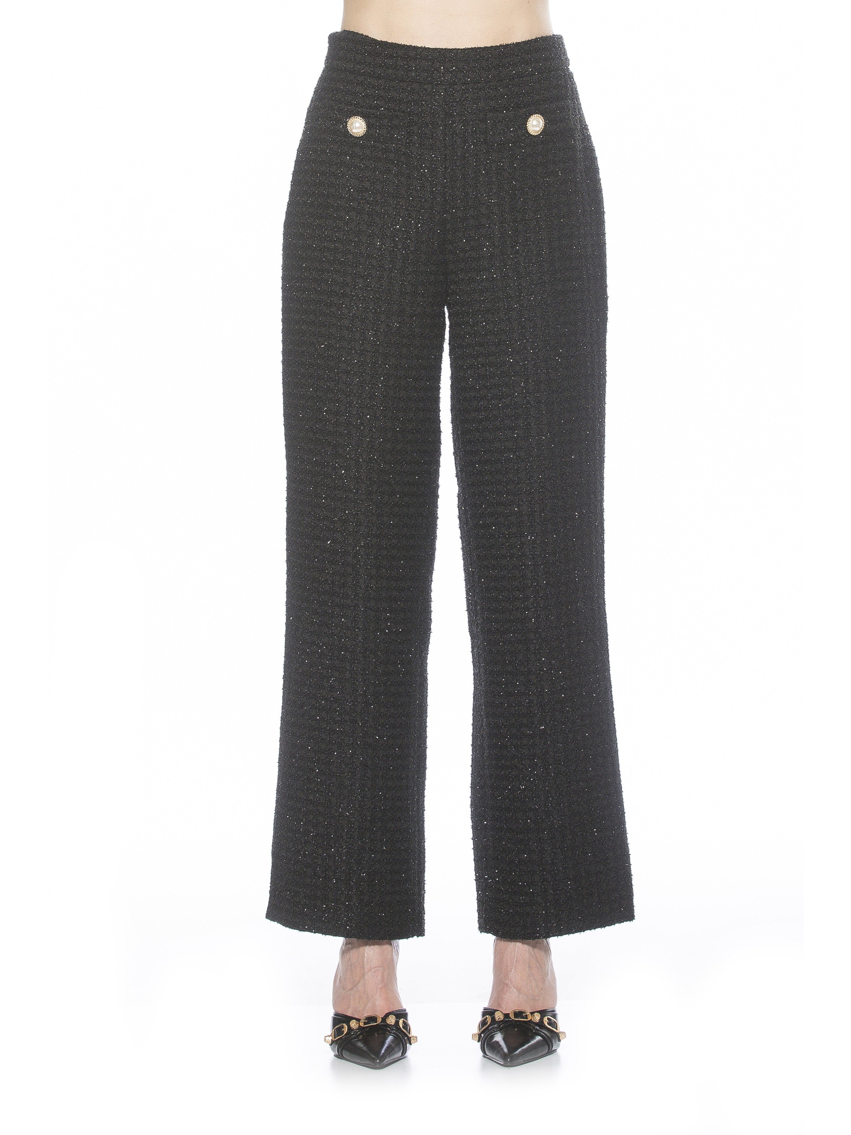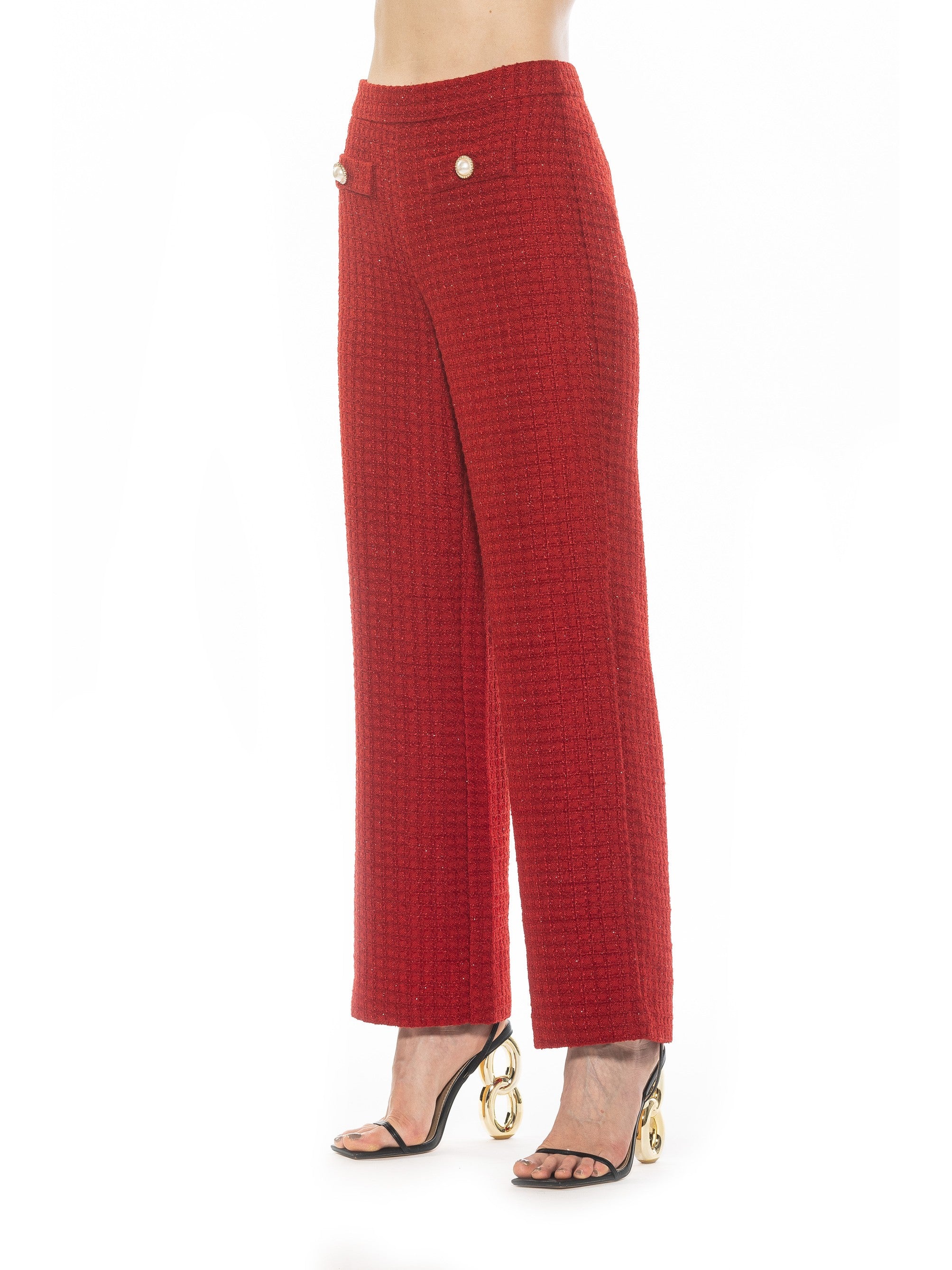 Make a statement with the timeless design of the Jaden Pants. Made with tweed and pearl buttons, they feature a high-waisted silhouette with two front pockets. Take your look to the next level with classic sophistication!