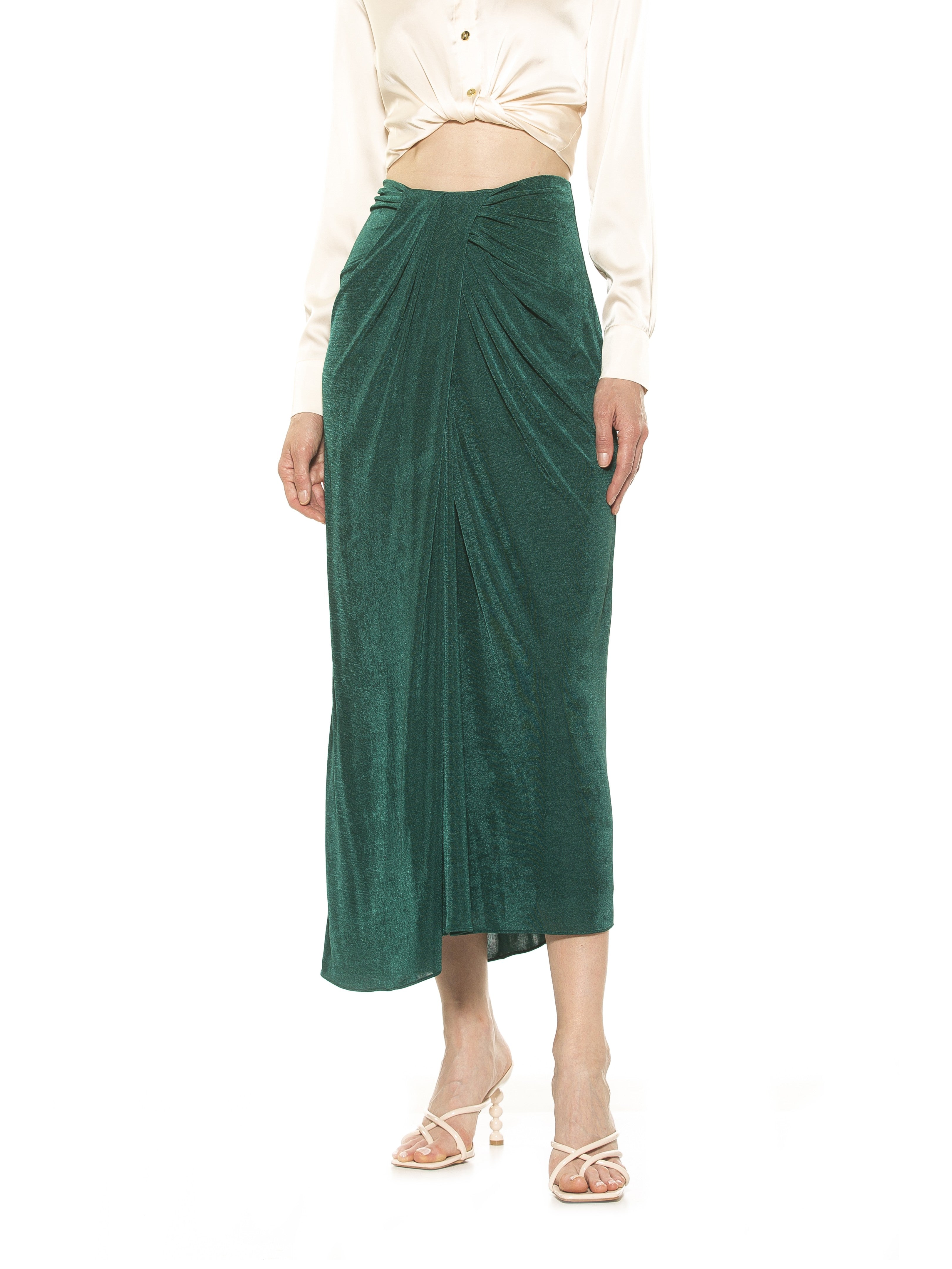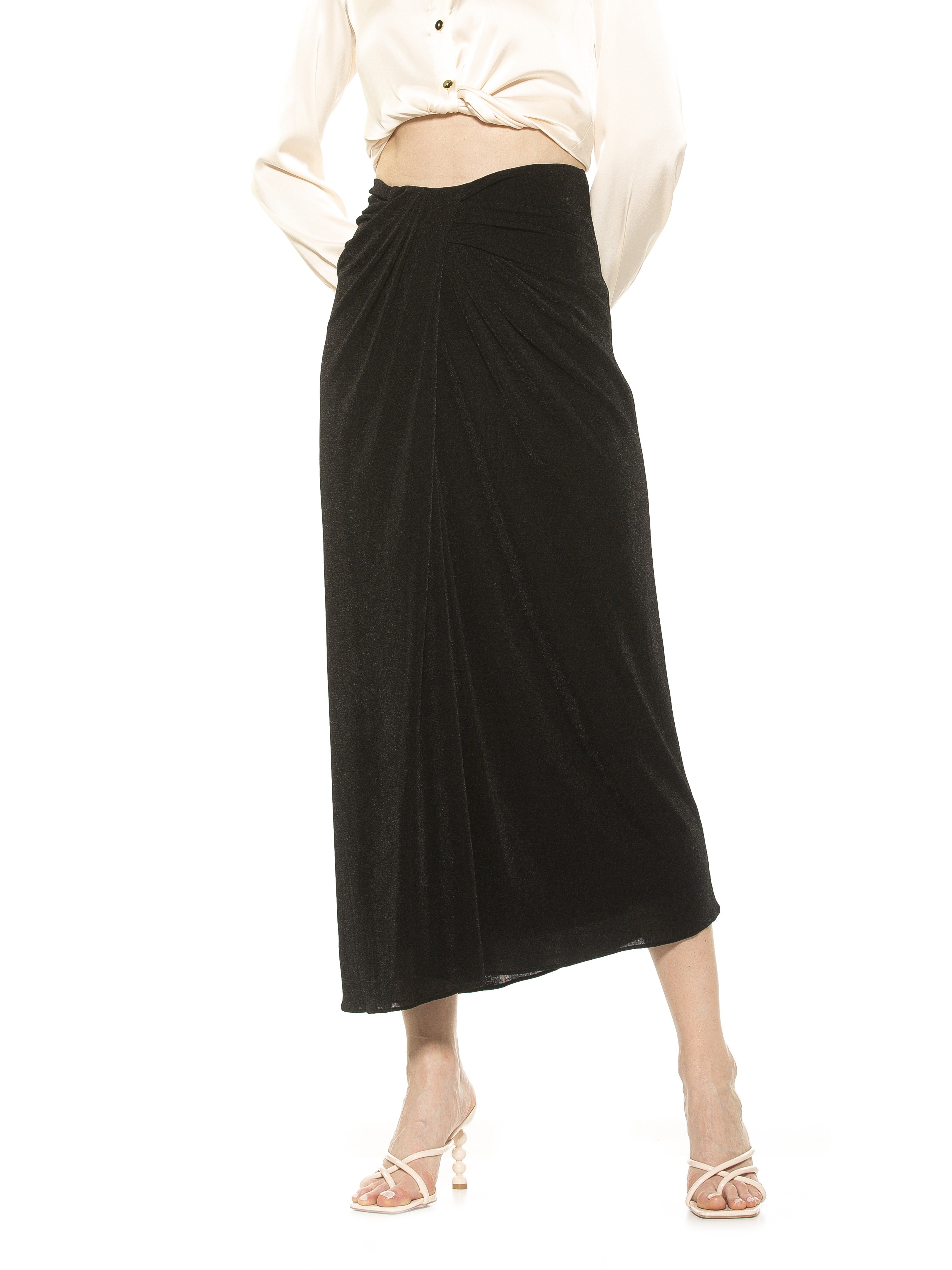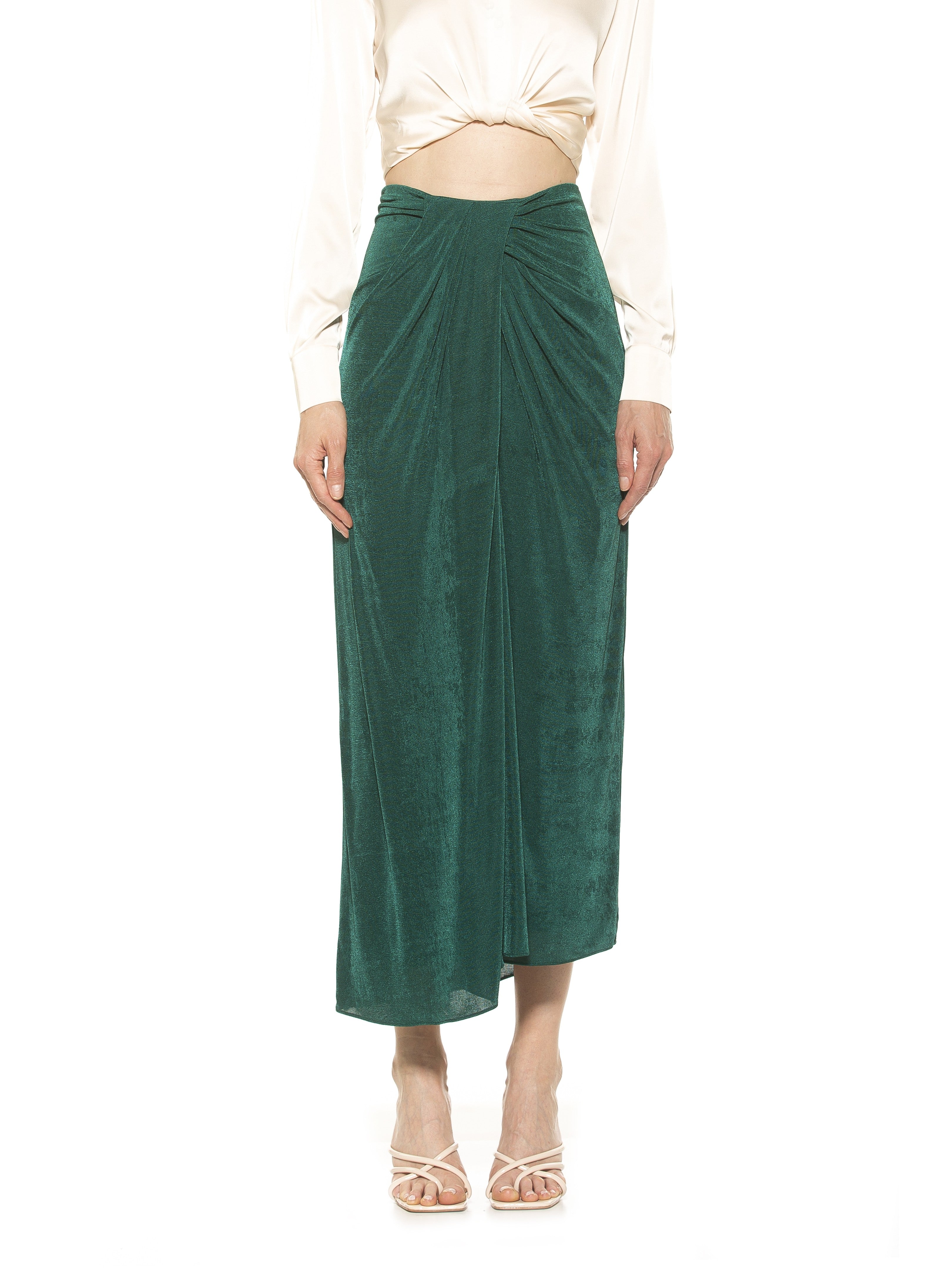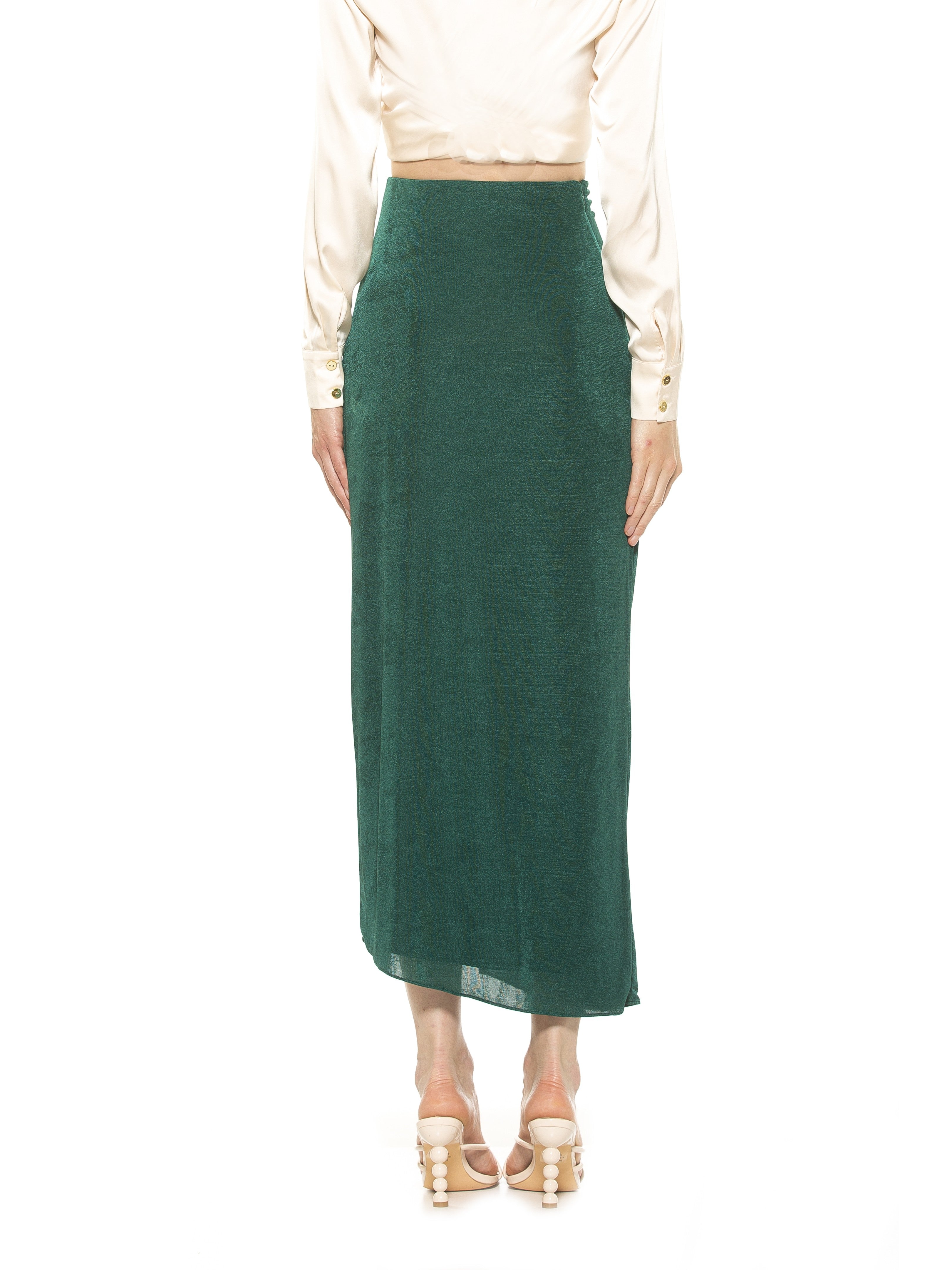 Be ready for any occasion when you slip on the Jeanette Skirt! This midi skirt is designed with a unique front fold, a must for your summer wardrobe