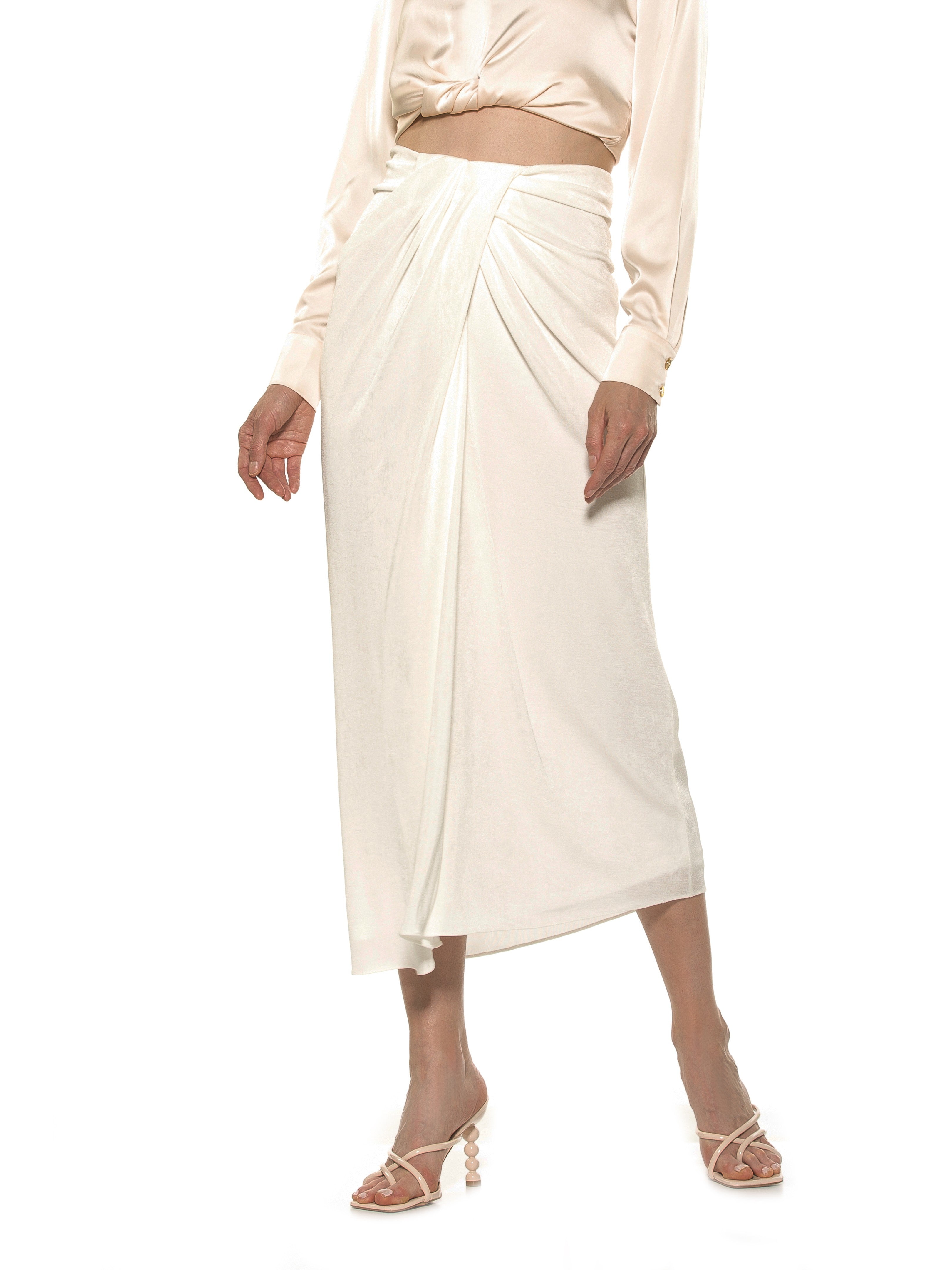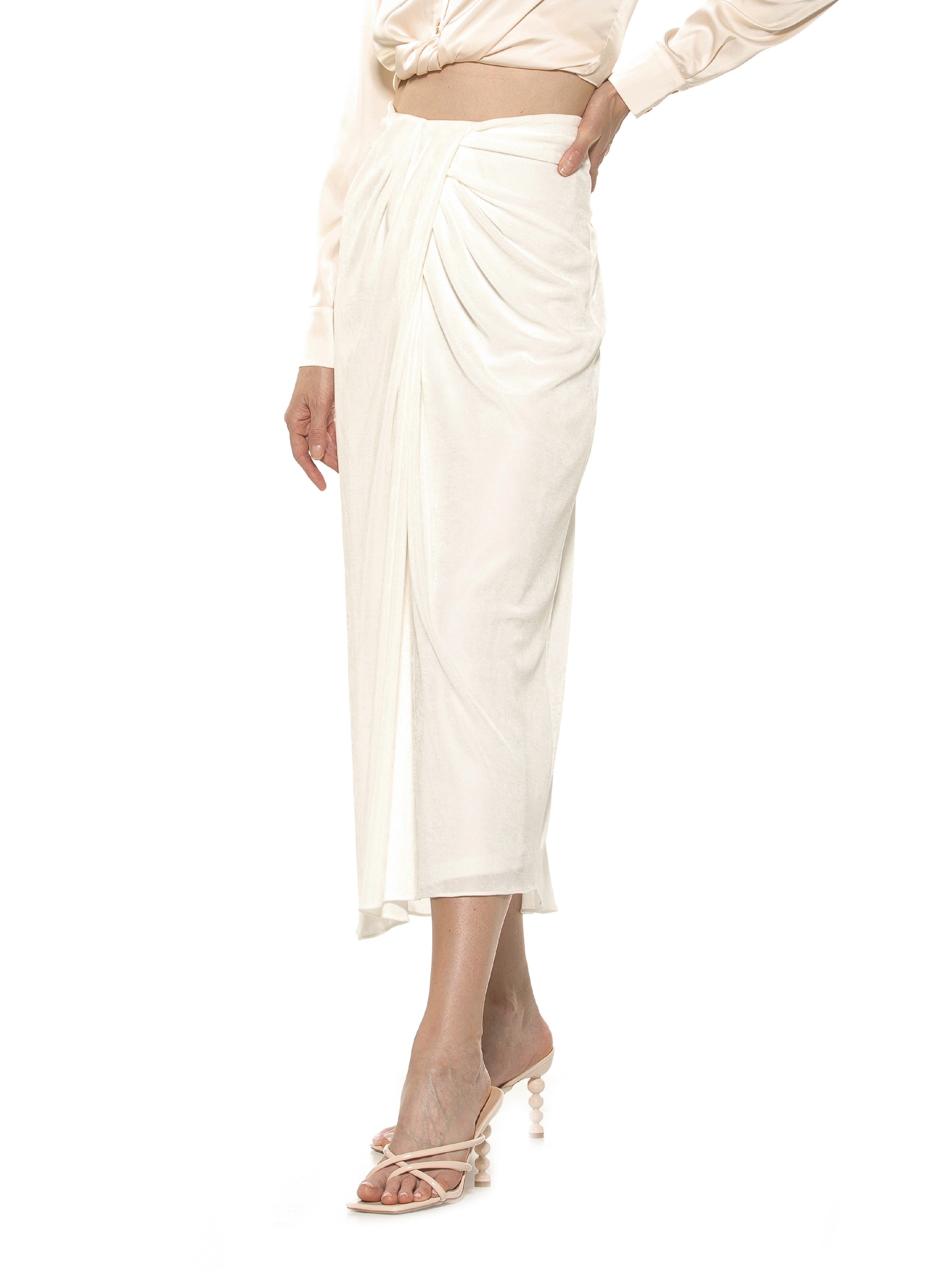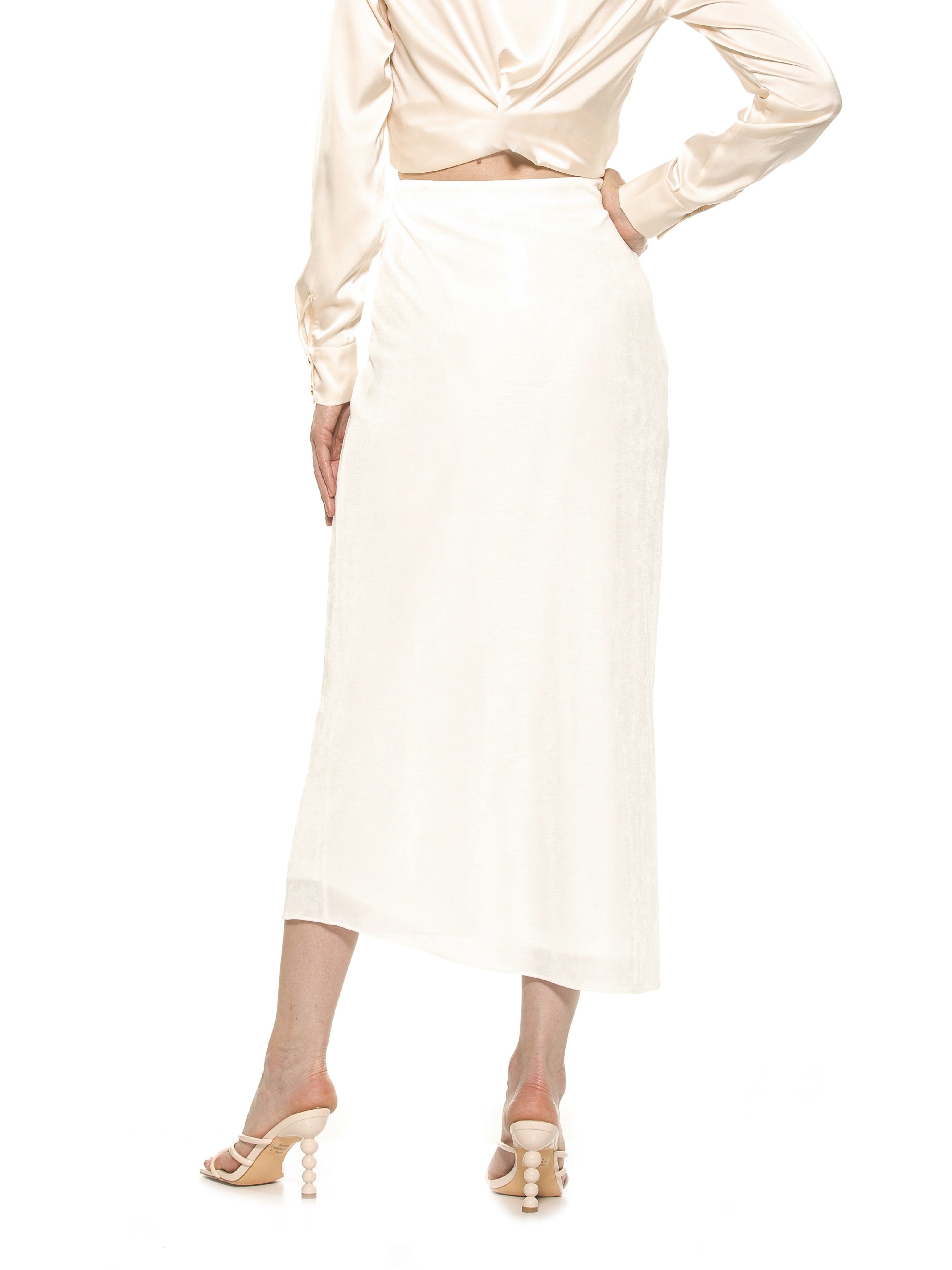 Be ready for any occasion when you slip on the Jeanette Skirt! This midi skirt is designed with a unique front fold, a must for your summer wardrobe