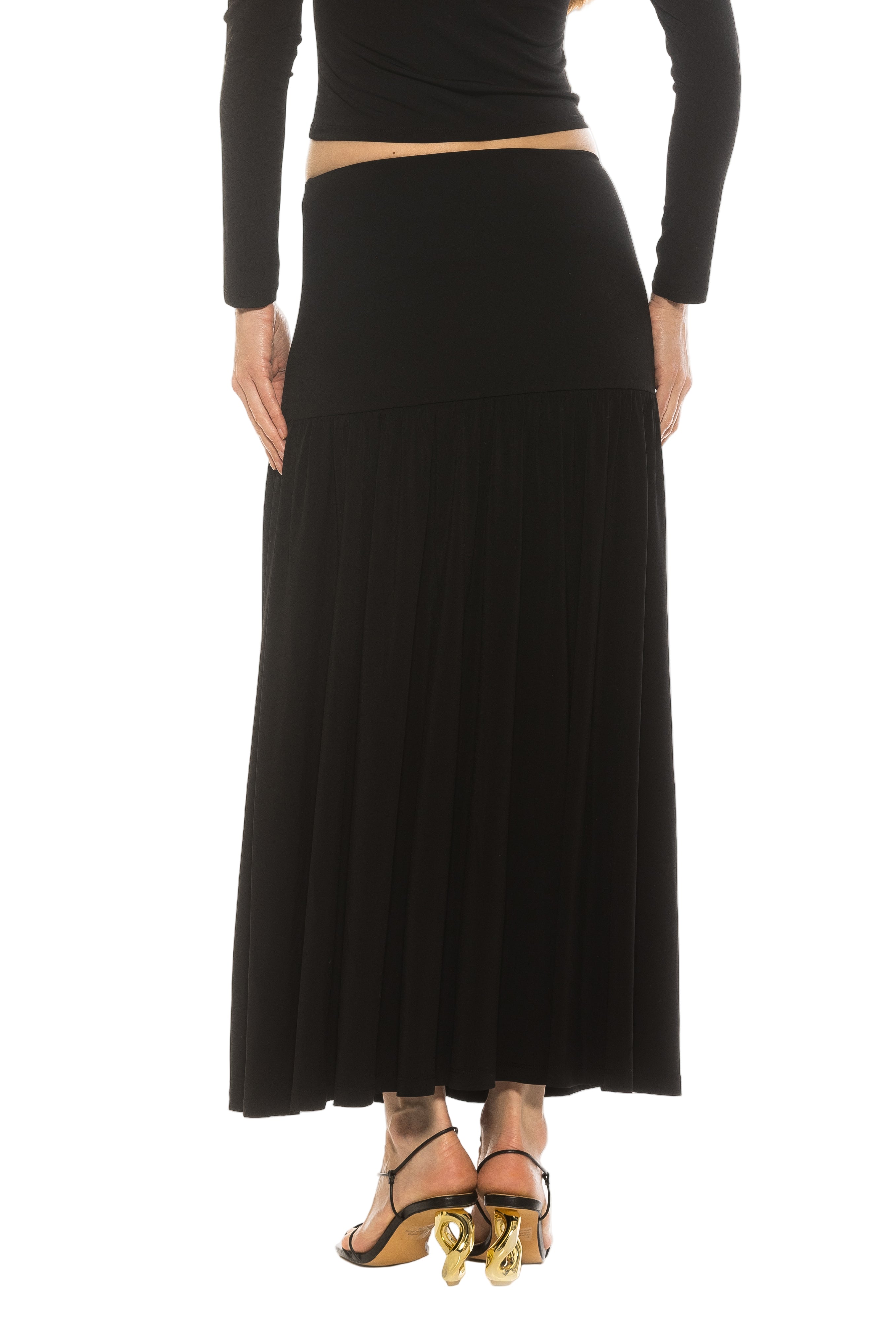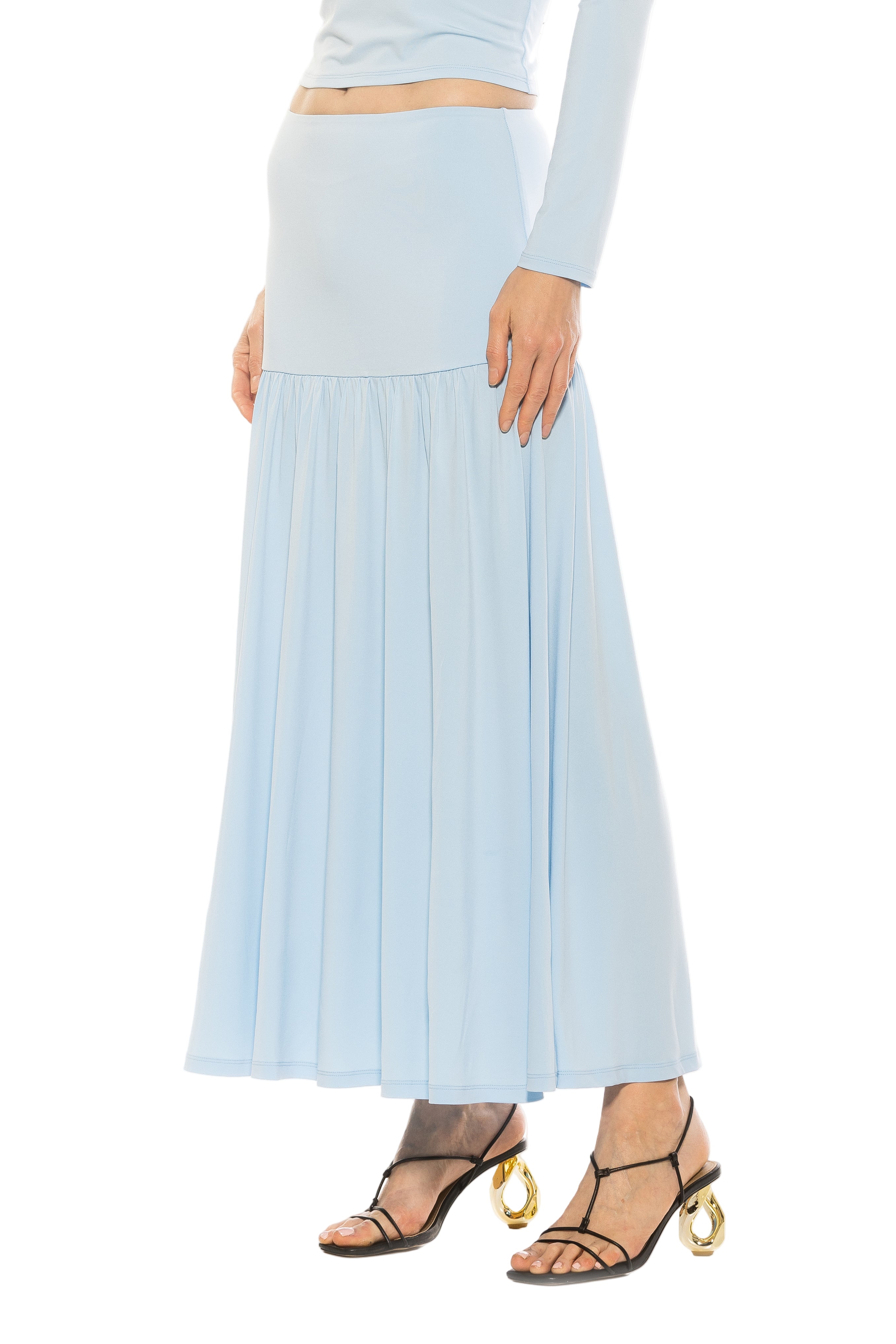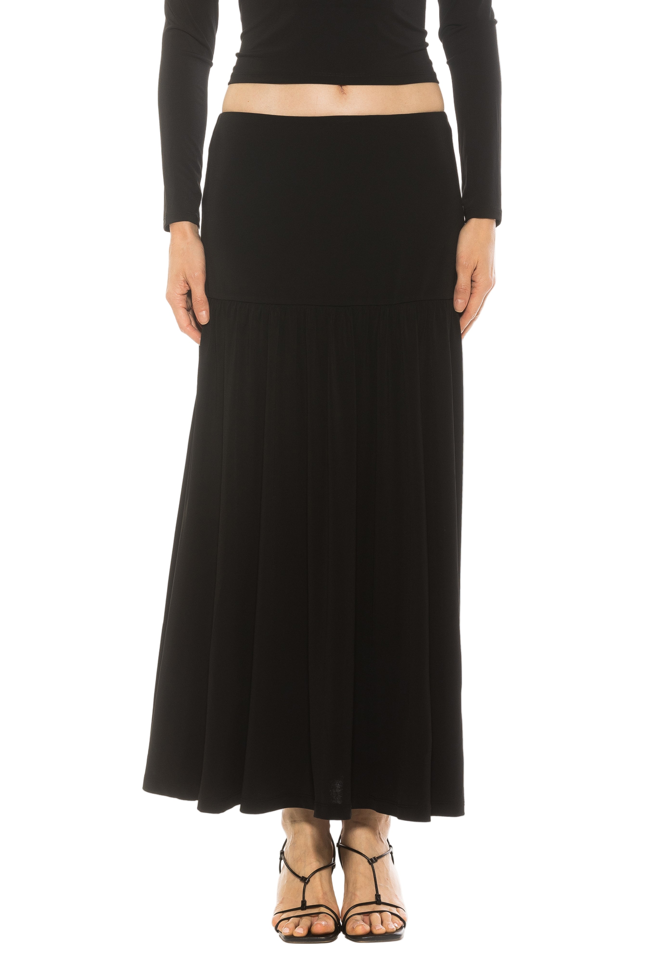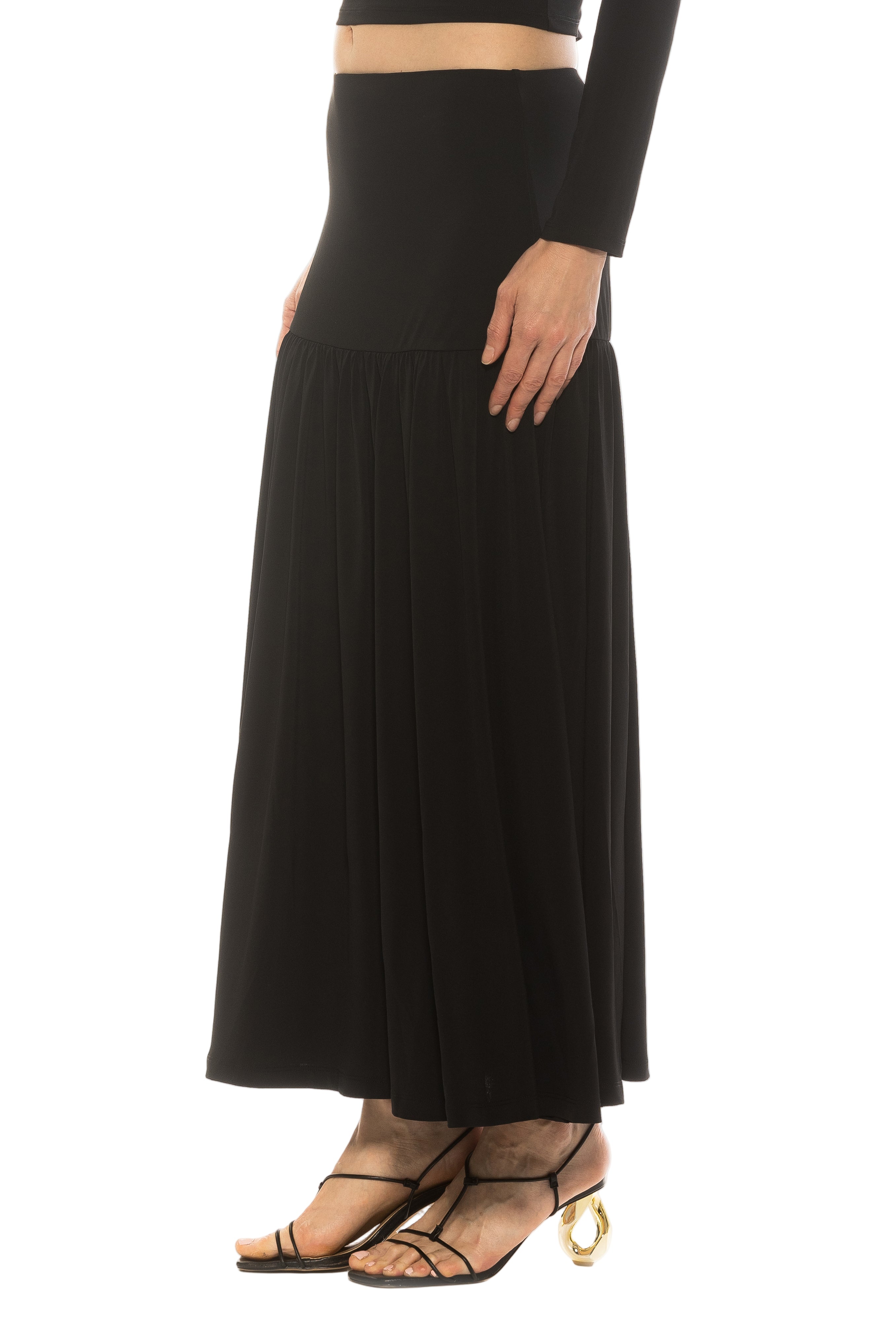 Effortless movement, refined texture. The Lia skirt features a luxe stretch fabric and a shirred full-skirt construction that flows beautifully with every step. Designed with a fitted waistband and maxi length, it brings elevated polish to both day and evening wardrobes.