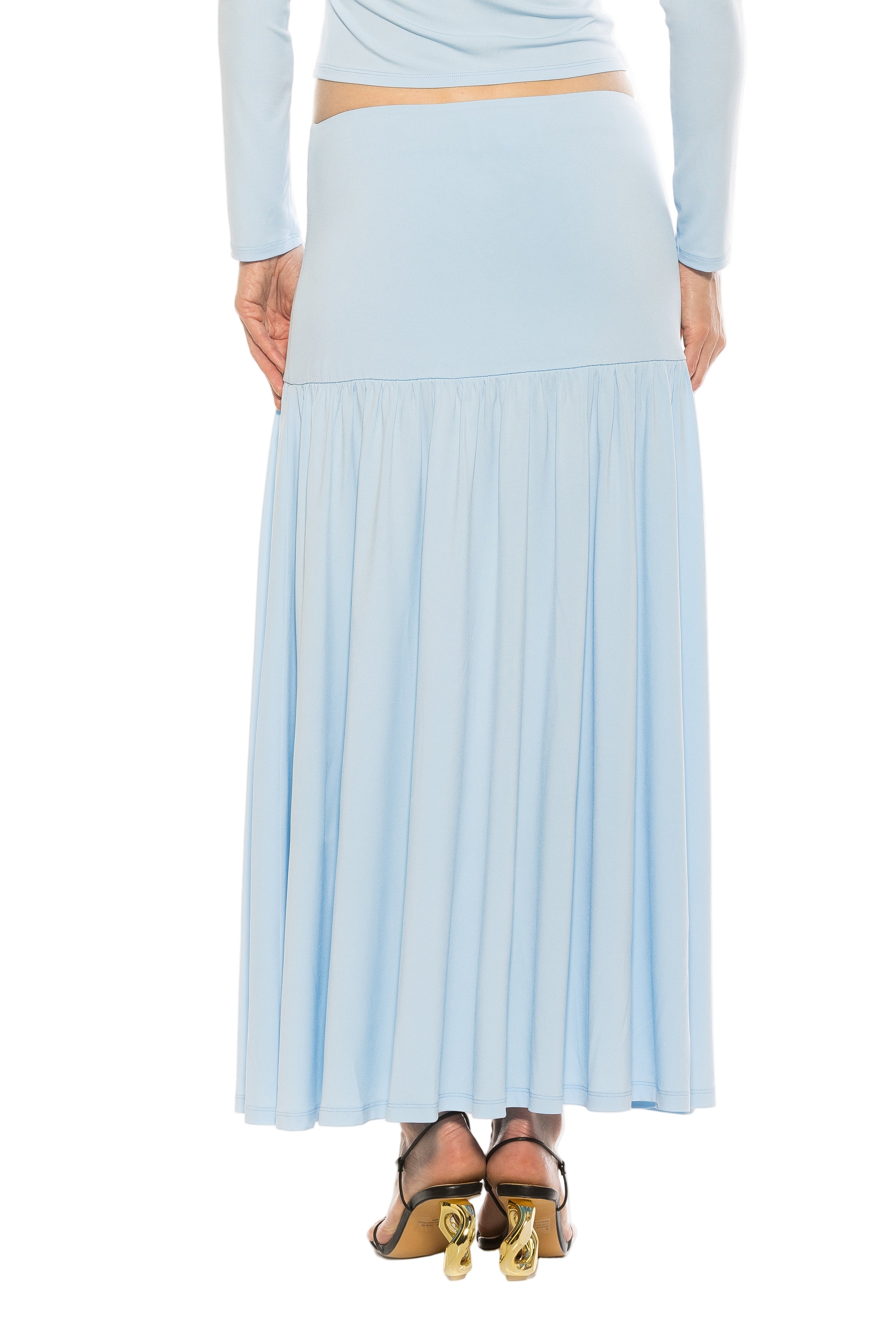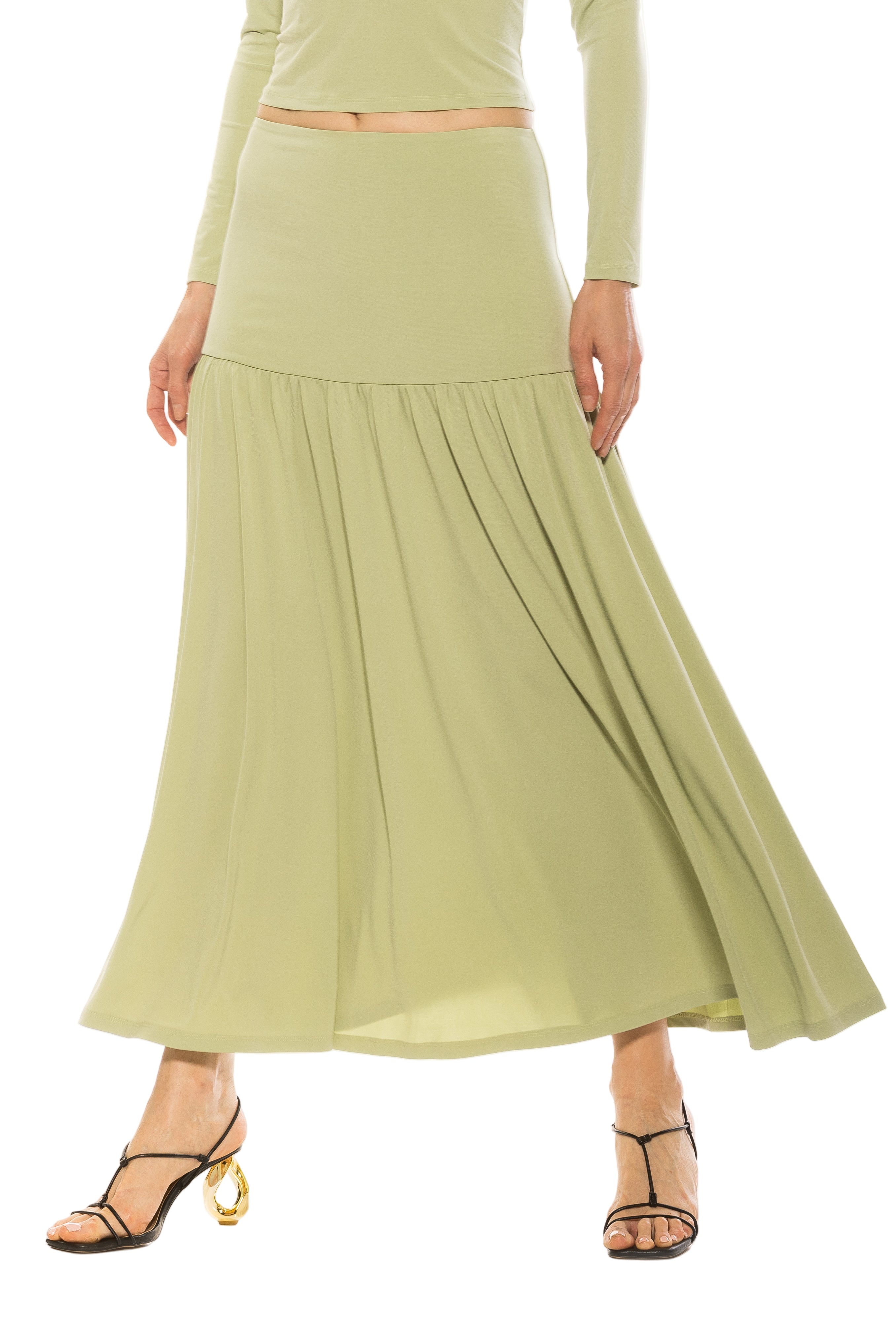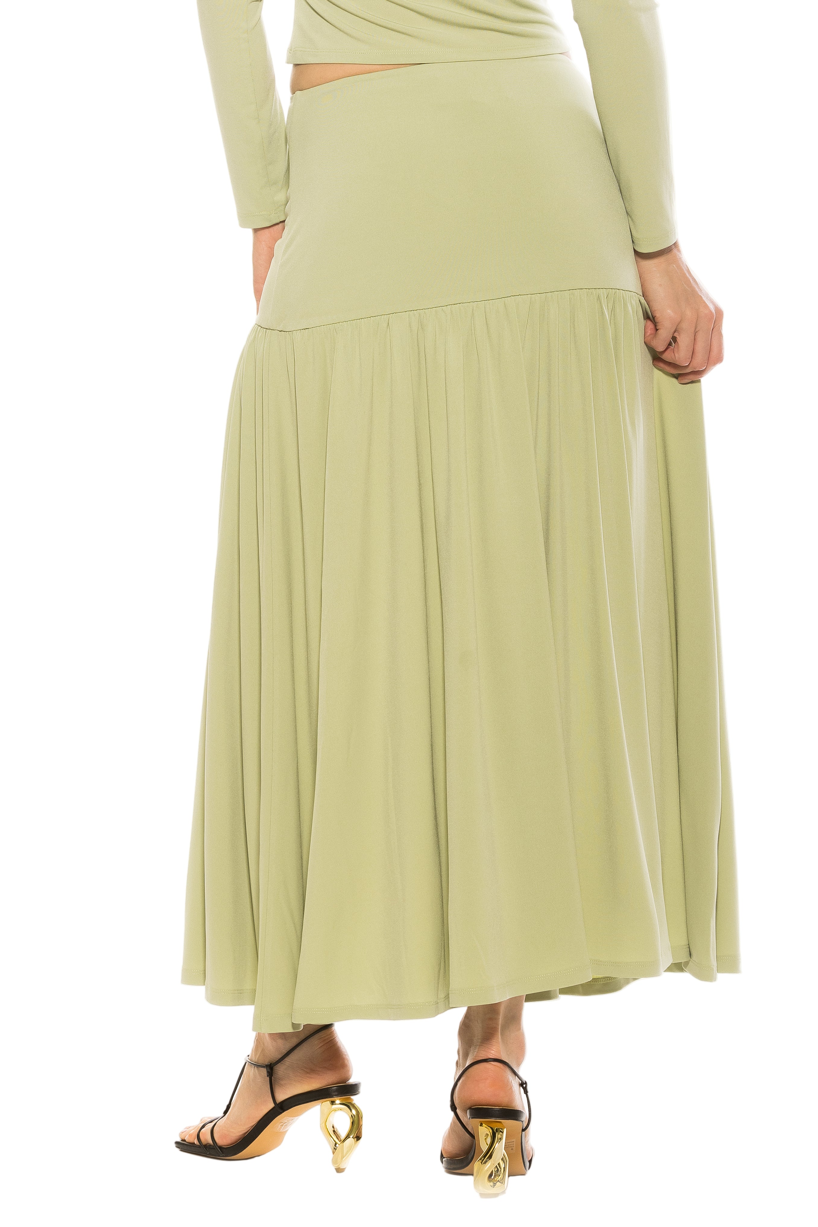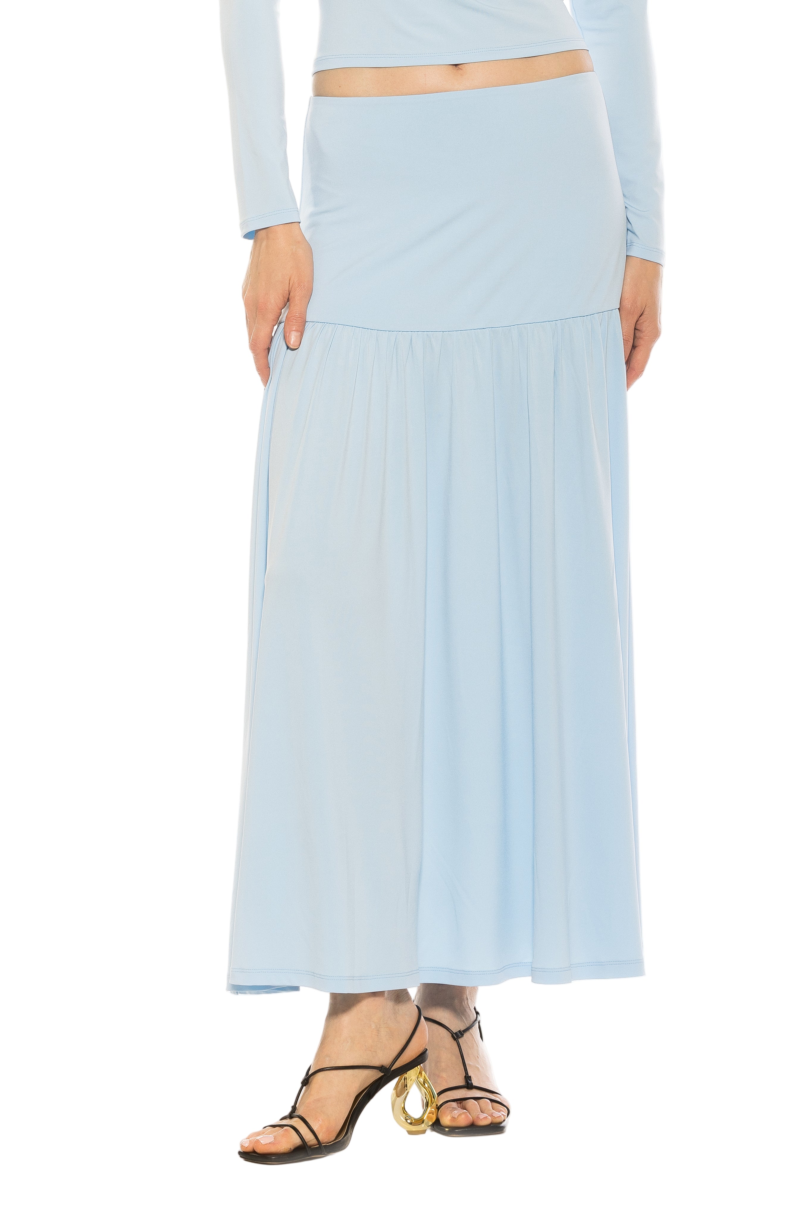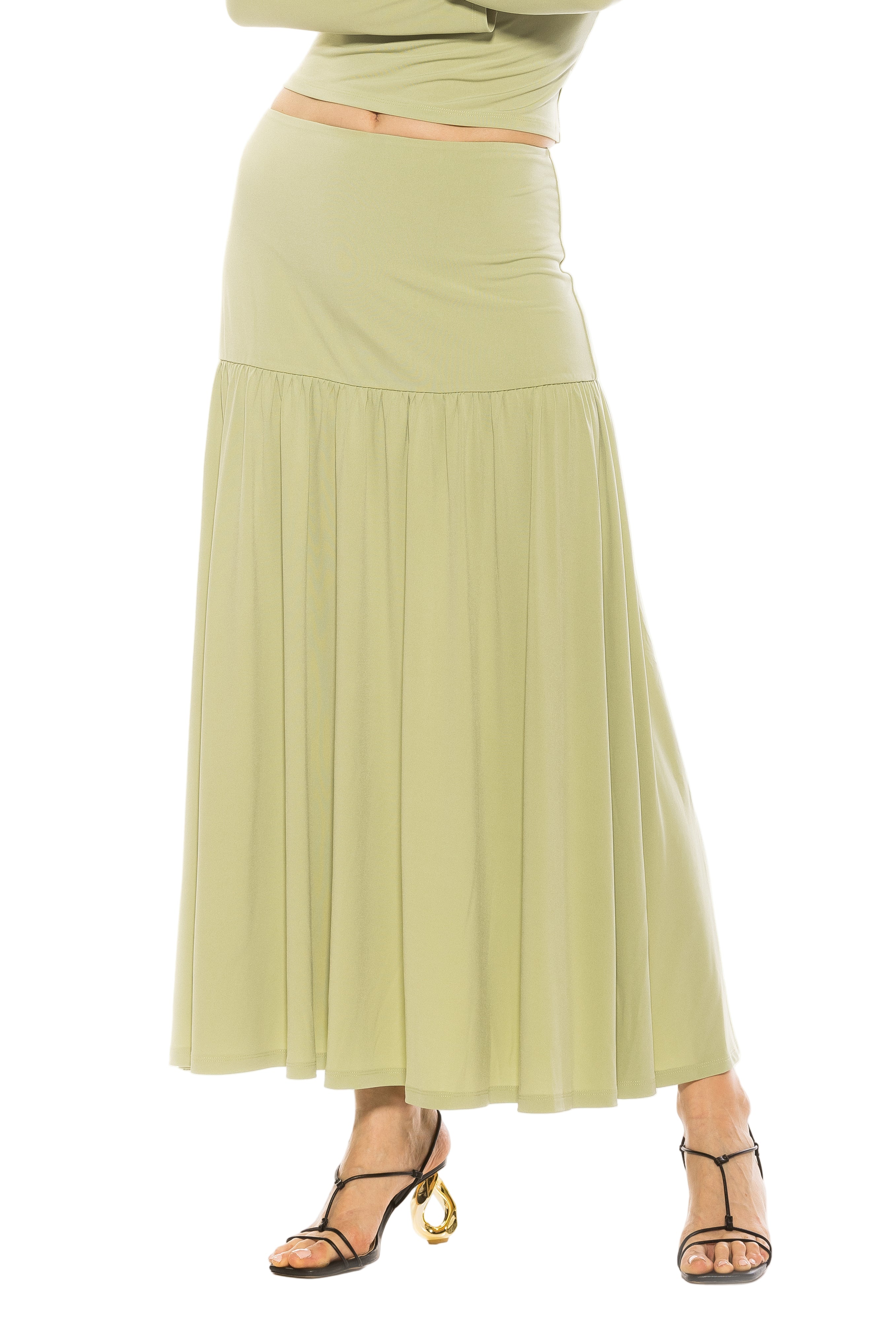 Effortless movement, refined texture. The Lia skirt features a luxe stretch fabric and a shirred full-skirt construction that flows beautifully with every step. Designed with a fitted waistband and maxi length, it brings elevated polish to both day and evening wardrobes.