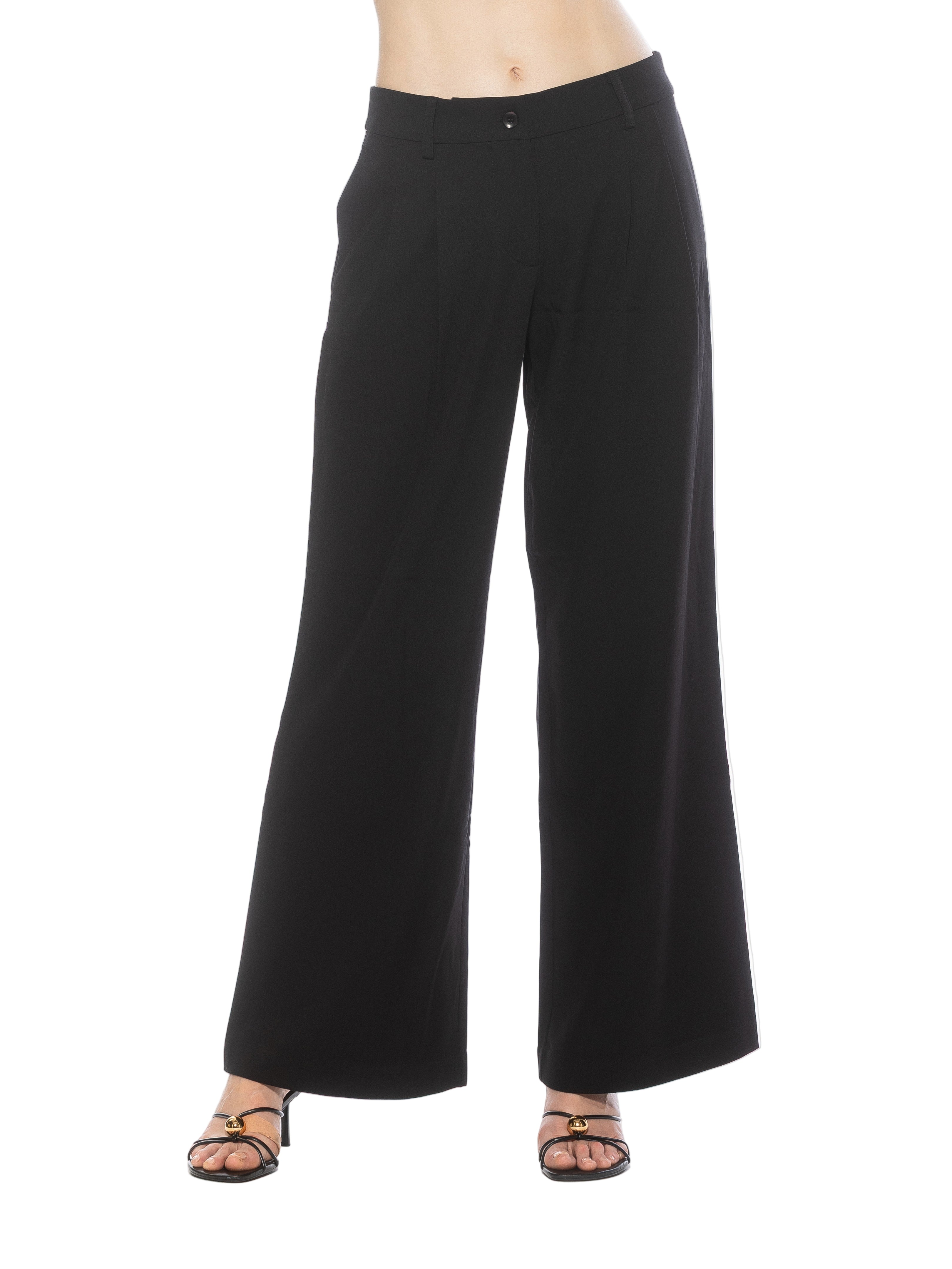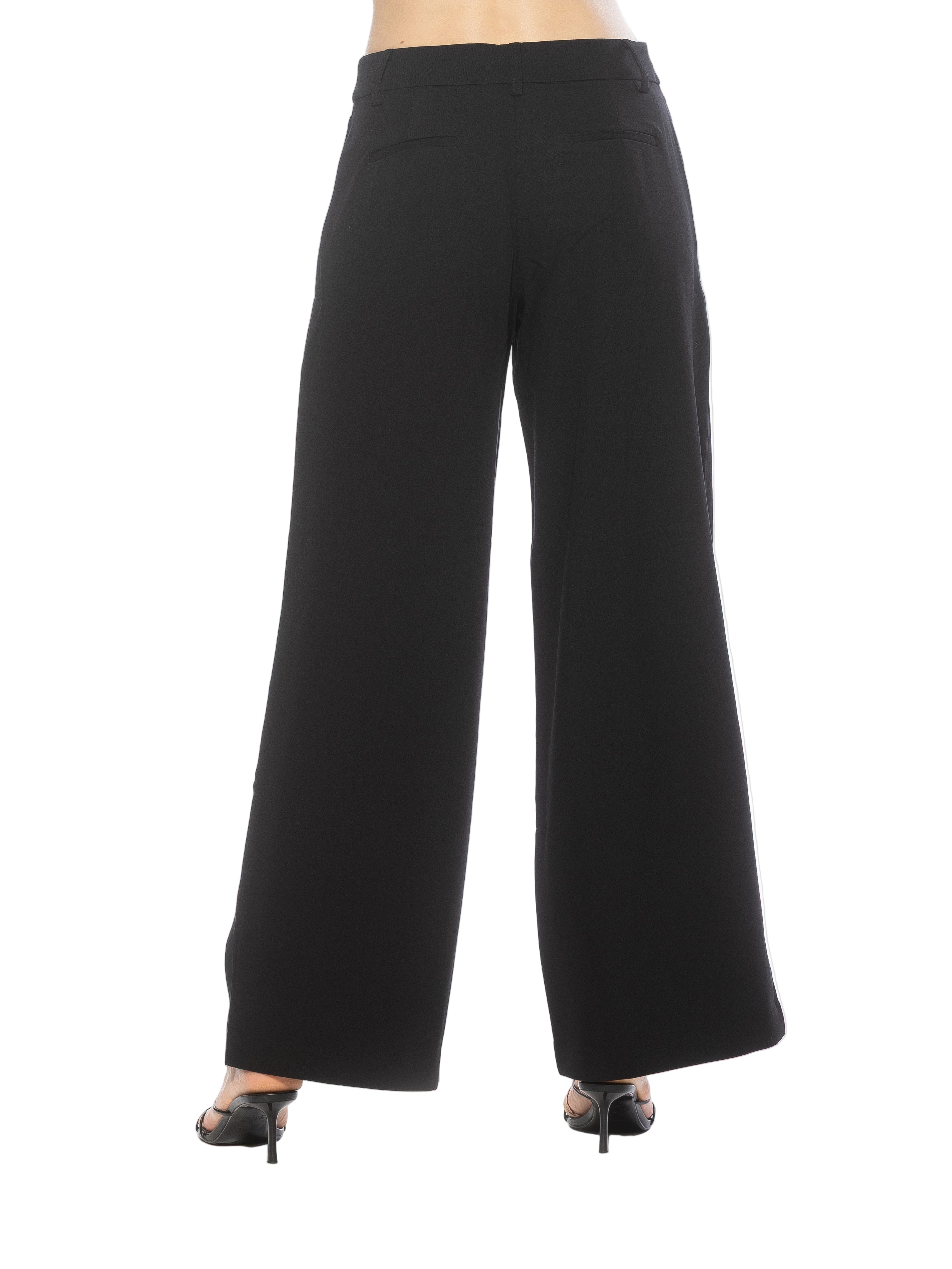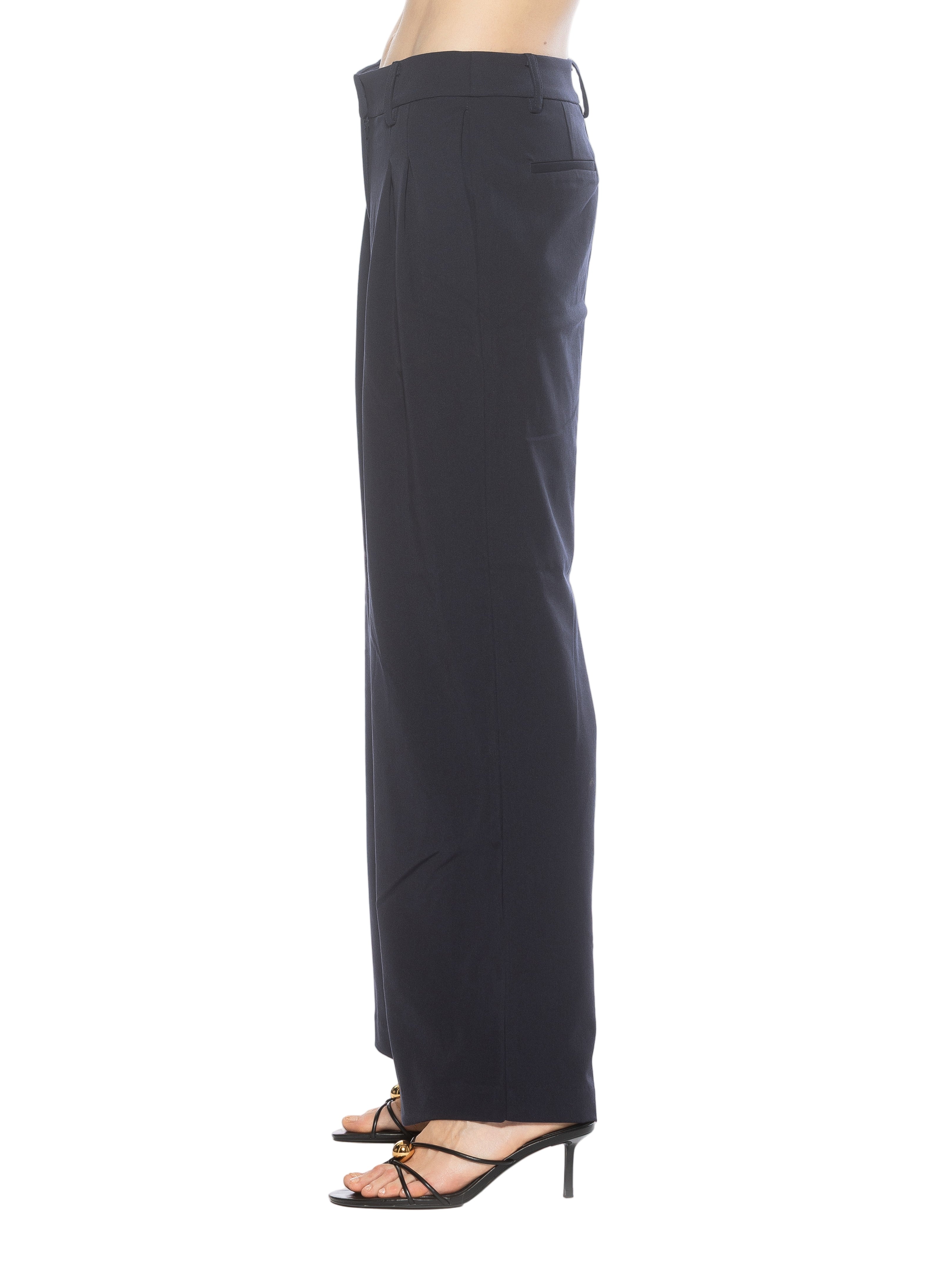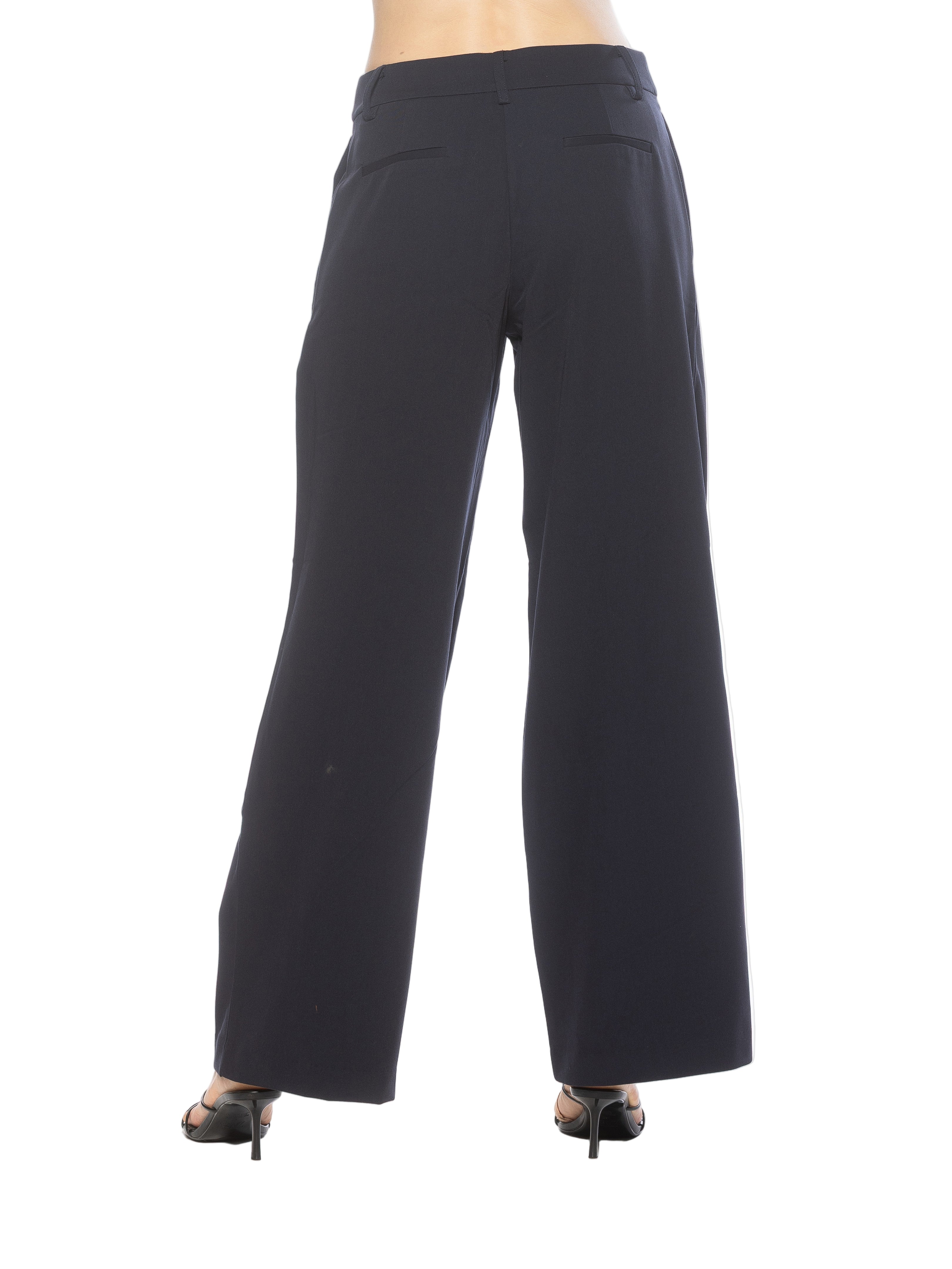 Elevated ease, tailored for impact. These pants bring modern tailoring into relaxed elegance with soft pleats and a wide-leg silhouette that flows with every step. Crafted from a luxe stretch blend, they drape effortlessly from office to evening.