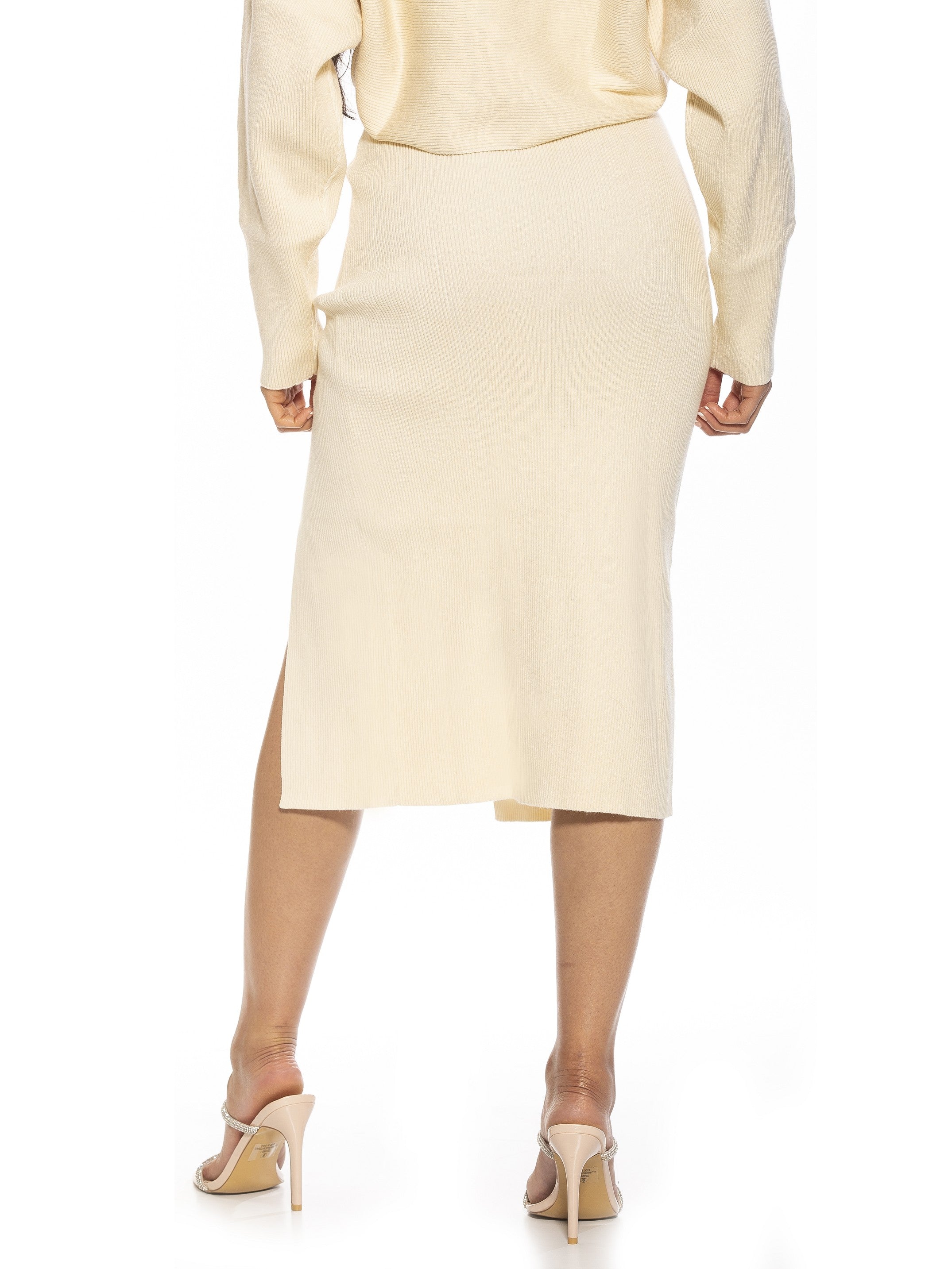 Flaunt your legs with this flattering midi skirt! Crafted from ribbed knit fabric, it is designed with a high slit and no pockets for a sleek, fashionable look. Perfect for any occasion, this skirt will have heads turning!