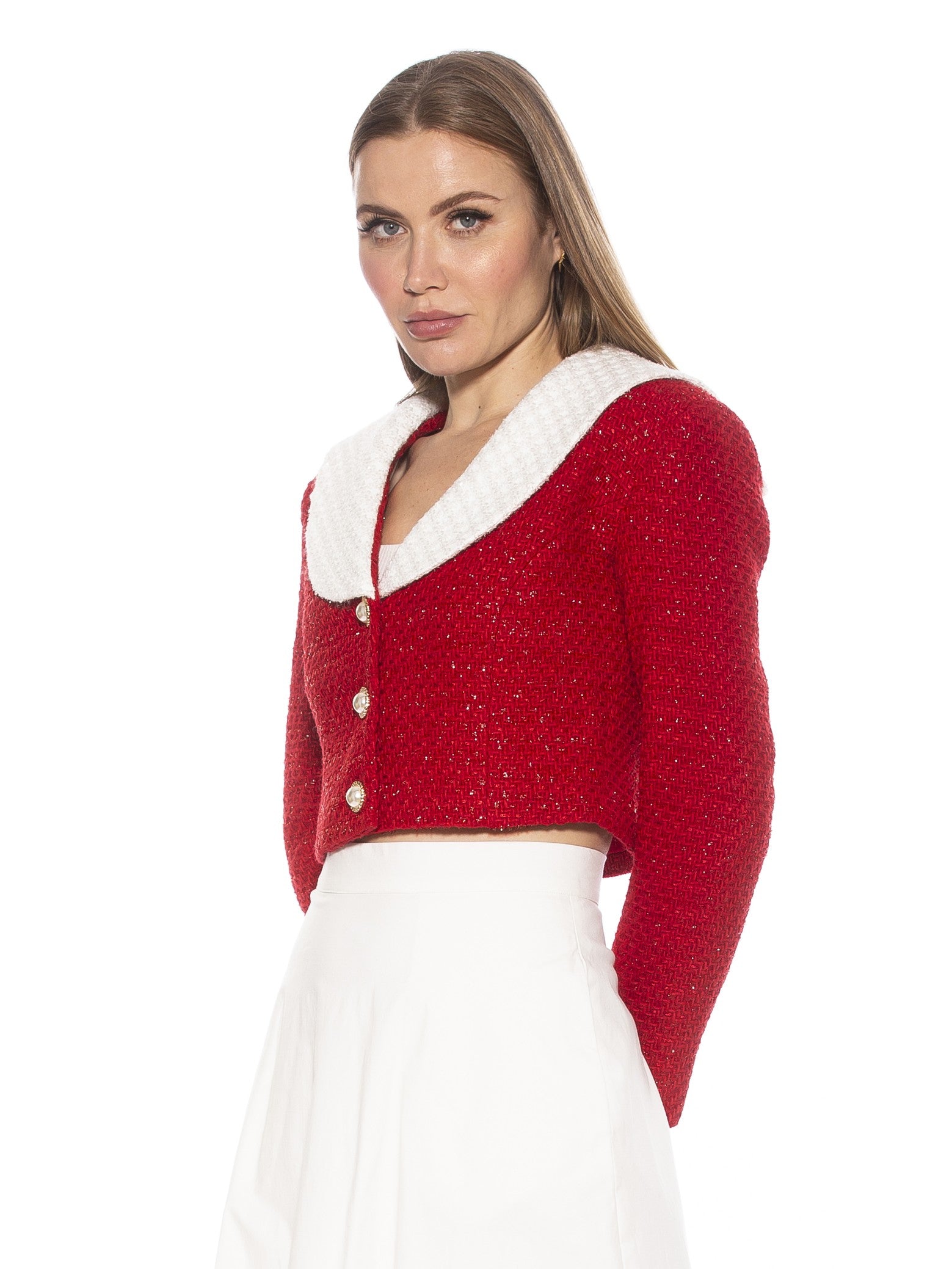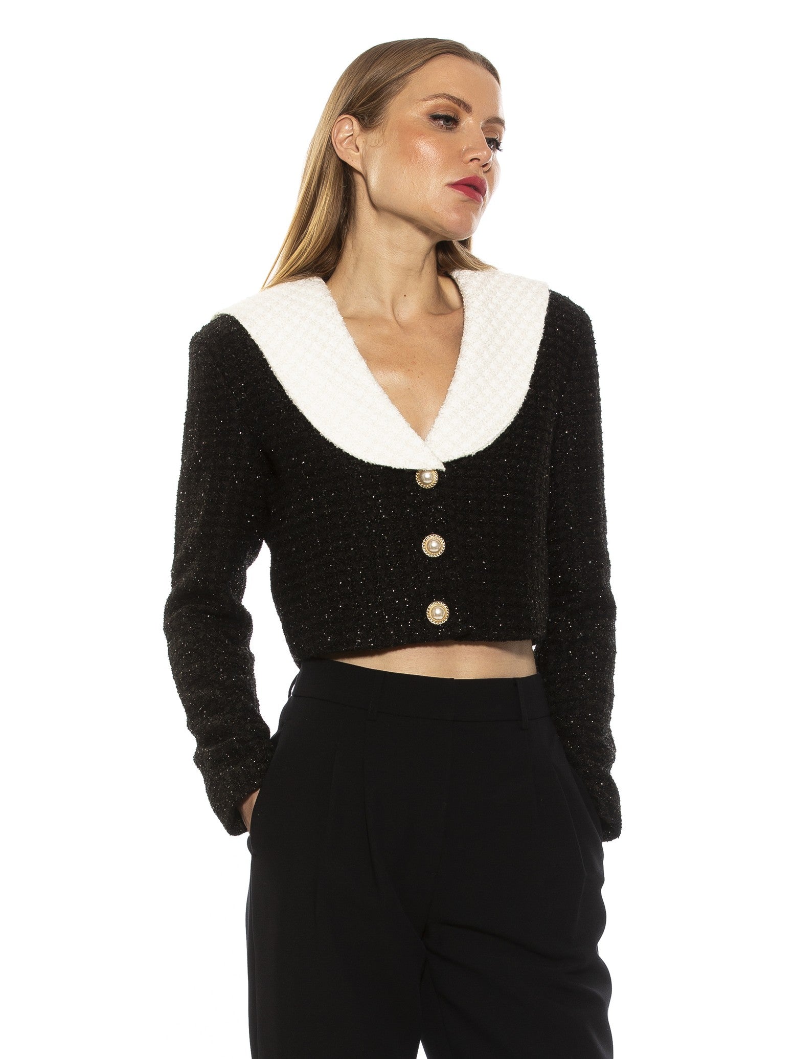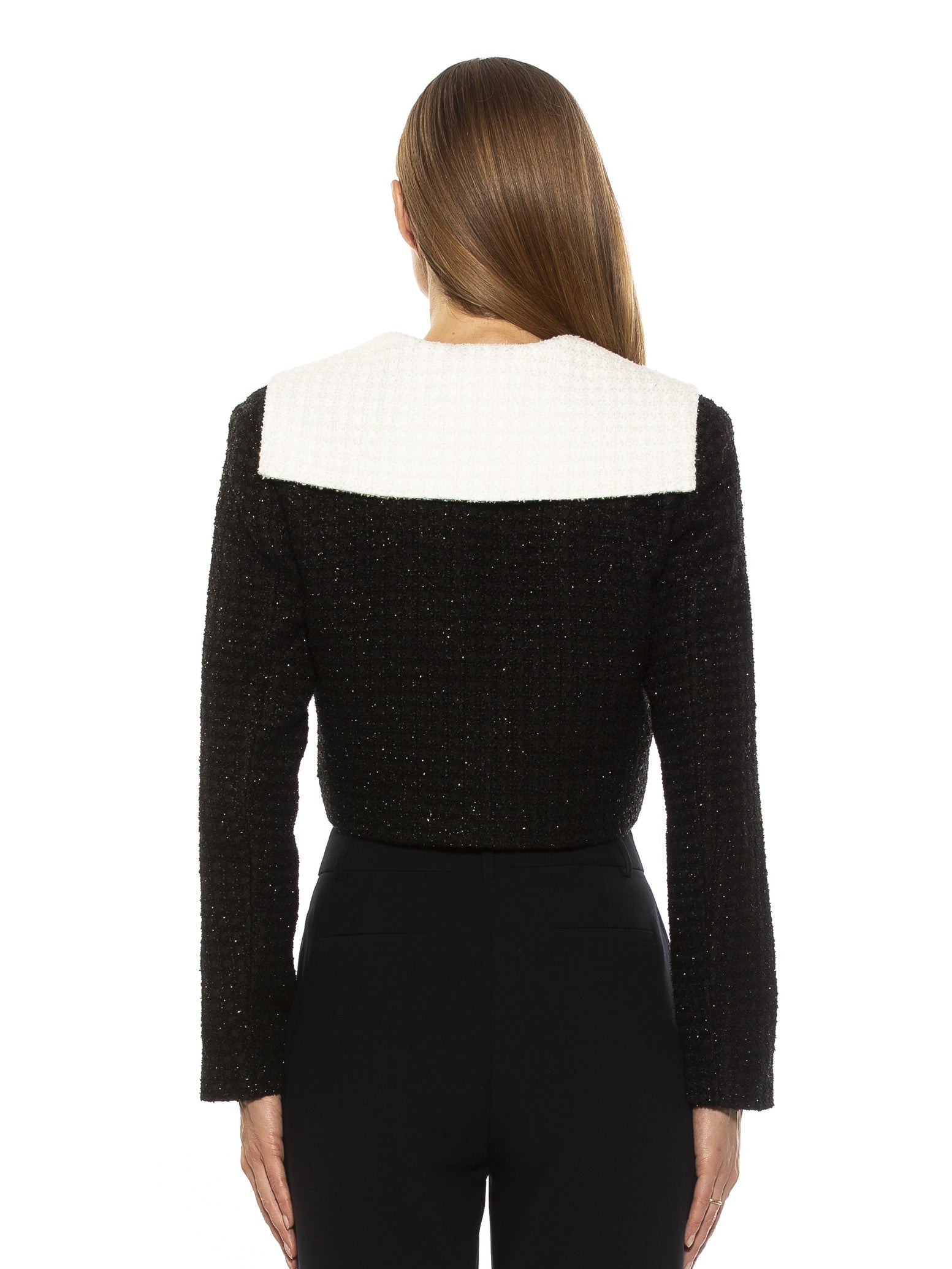Introducing the Clementine Jacket, a timeless classic crafted with pearl buttons, a cropped silhouette, and a contrasting collar, and detailed with a retro-inspired collar. Wrap yourself in luxurious tweed and elevate your style with this elegant, sophisticated, and exclusive long-sleeved jacket.