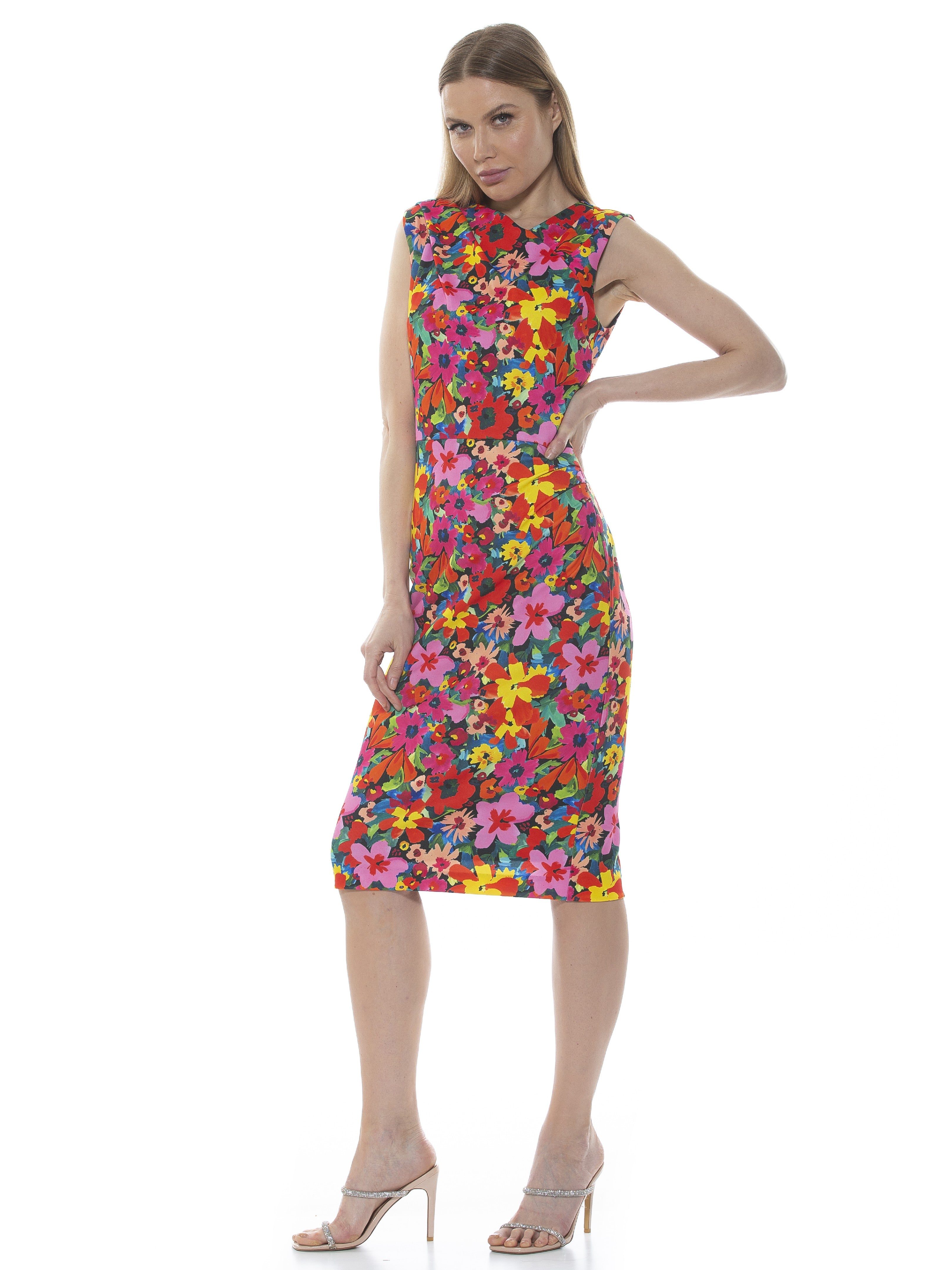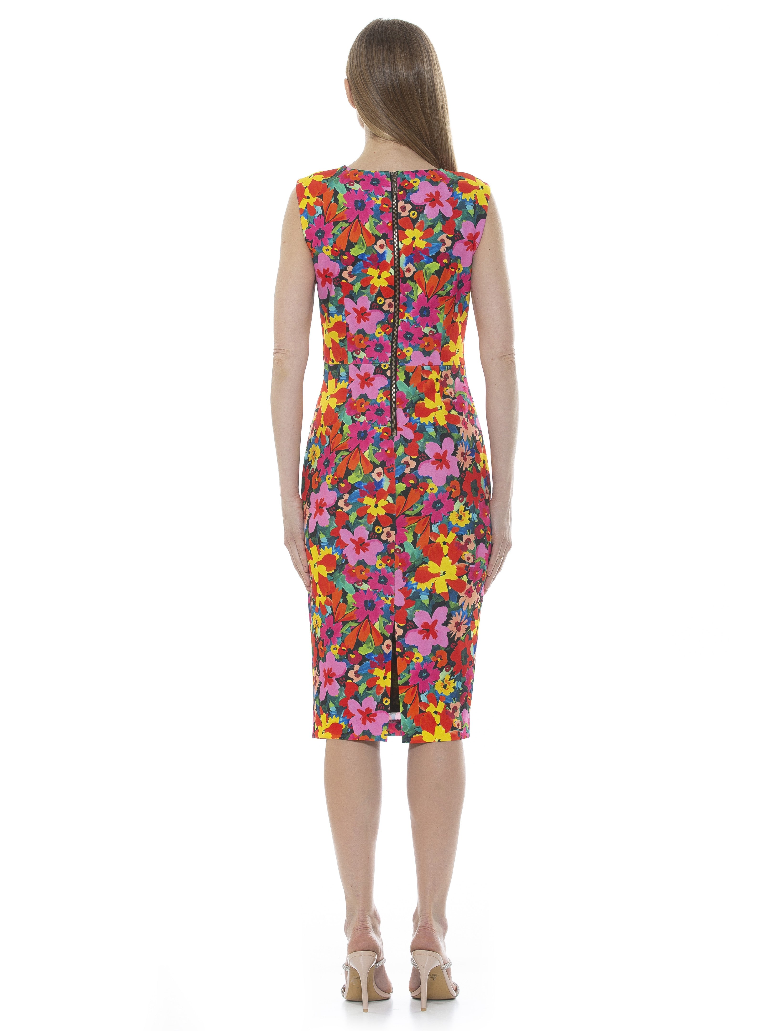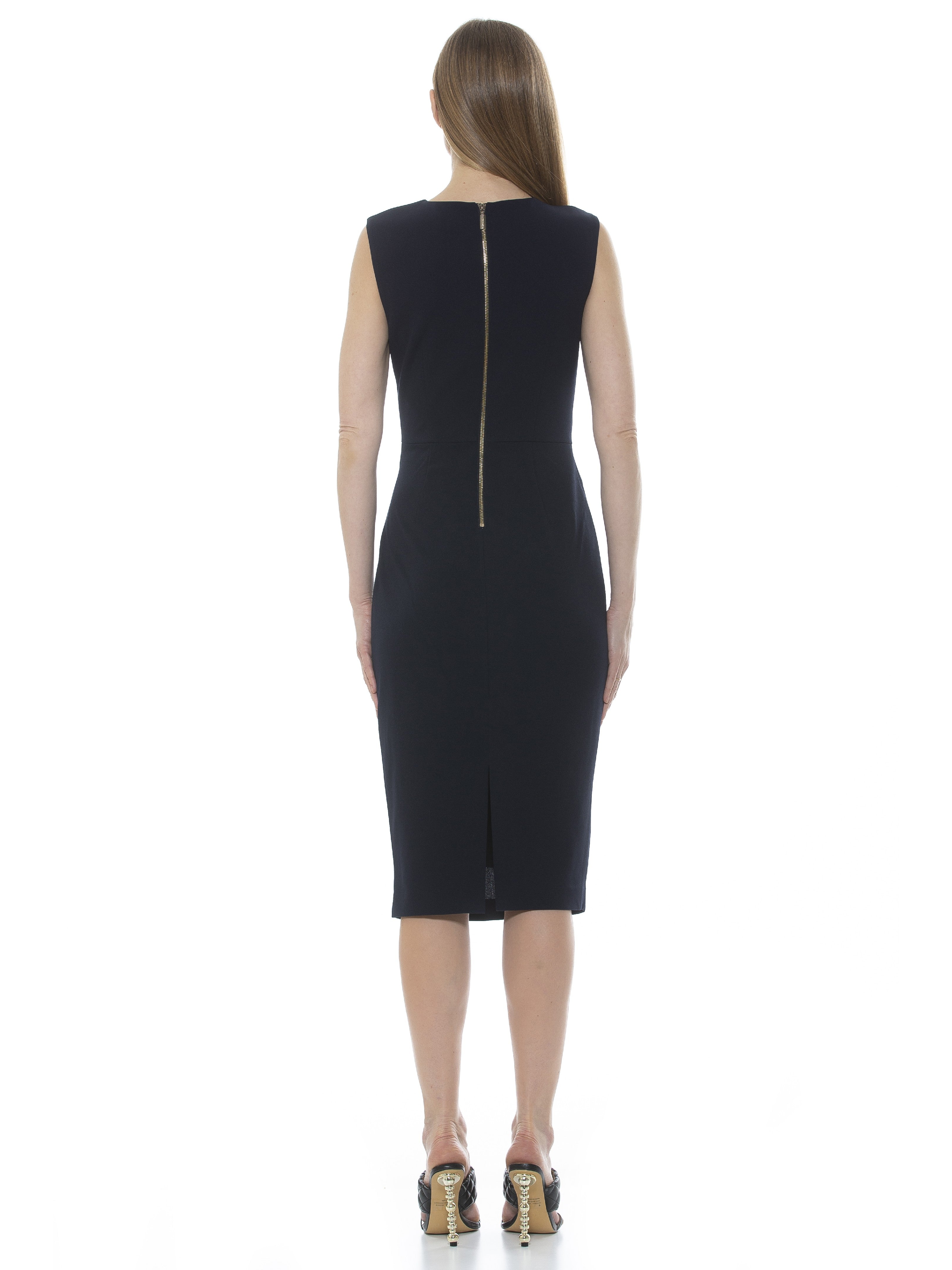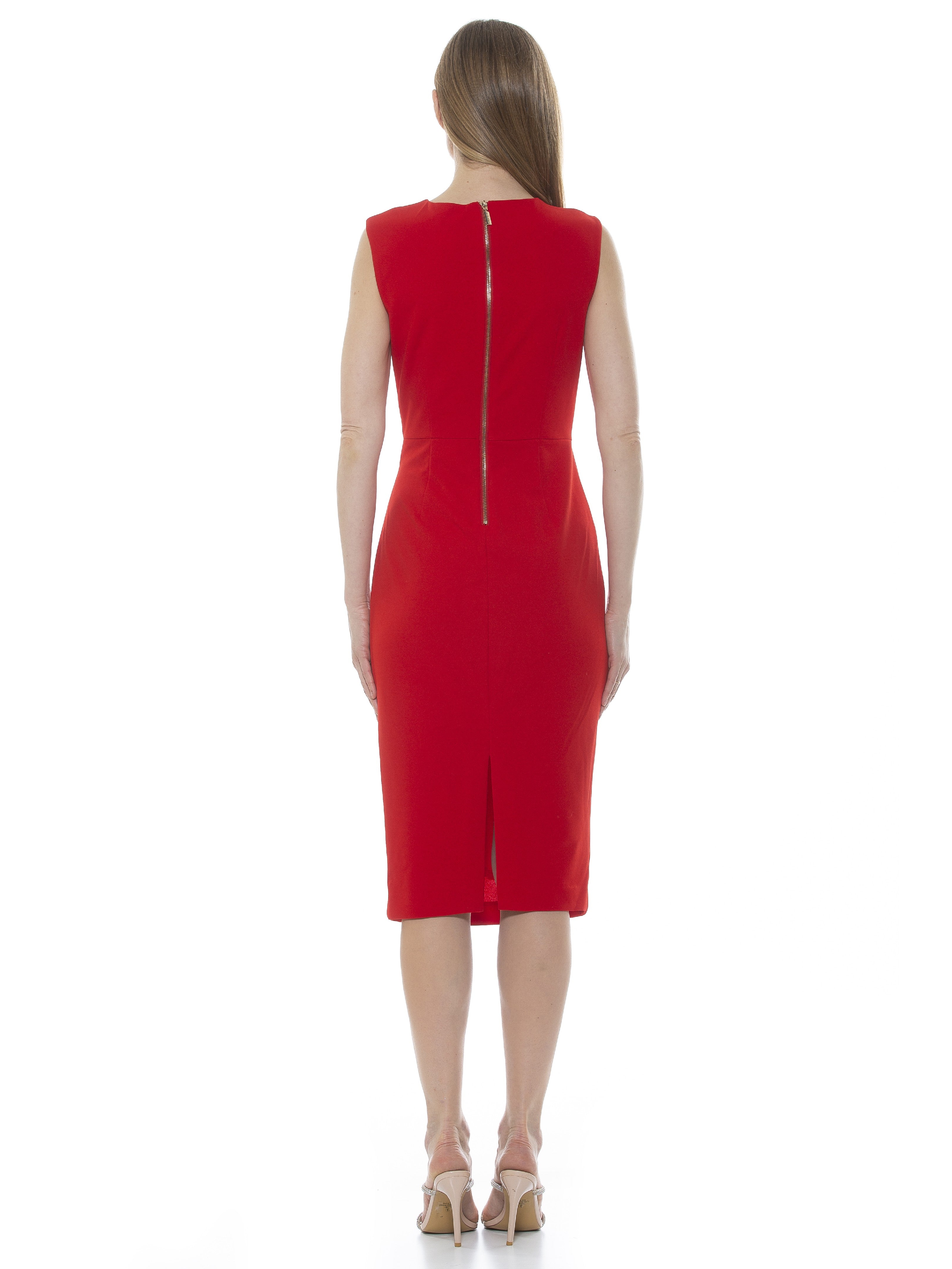 The Diane is a figure hugging cocktail dress, with an asymmetrical neckline and a zipper backing.