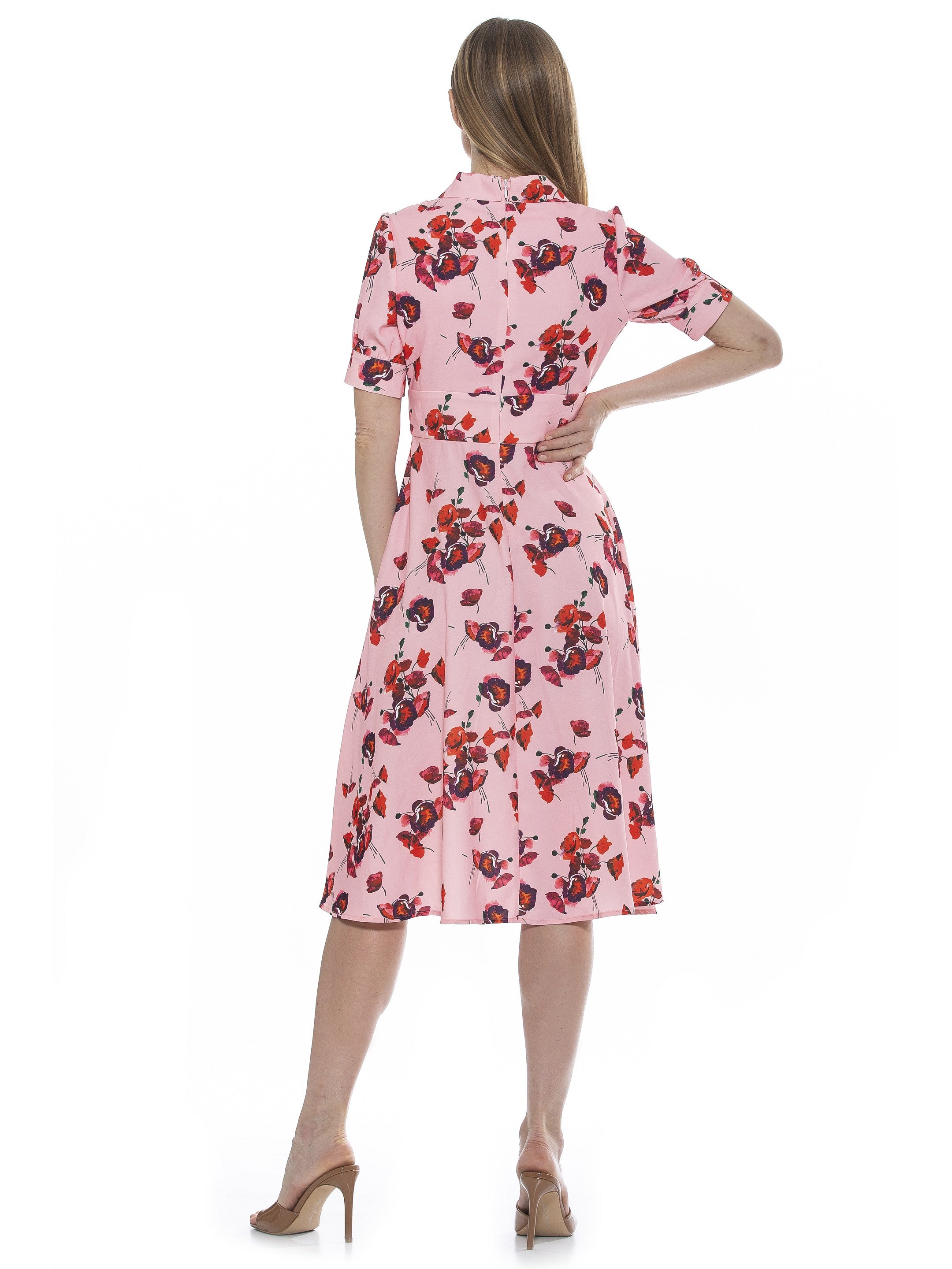 Capture the spotlight in the Emery Dress! Featuring a collar neckline, short sleeves, and an all-over print, this dress is perfect for all occasions. Flattering on all body types, its fit & flare silhouette and below the knee length is sure to turn heads. Feel fabulous and confident in the Emery Dress!