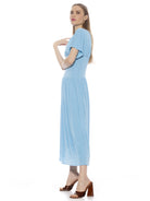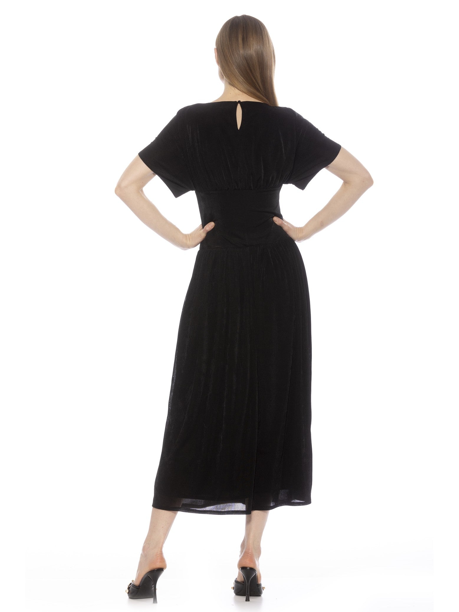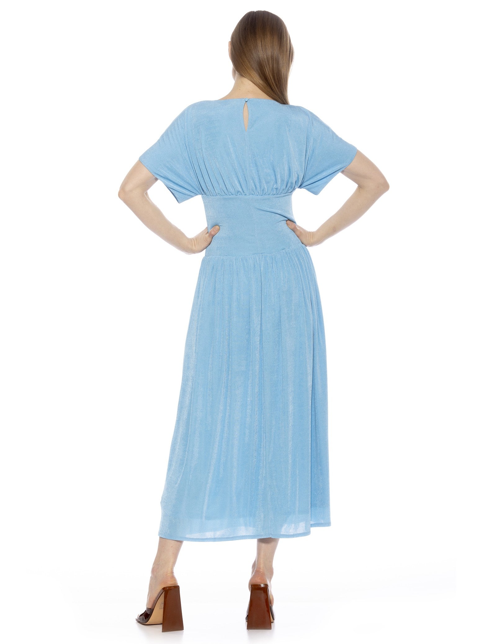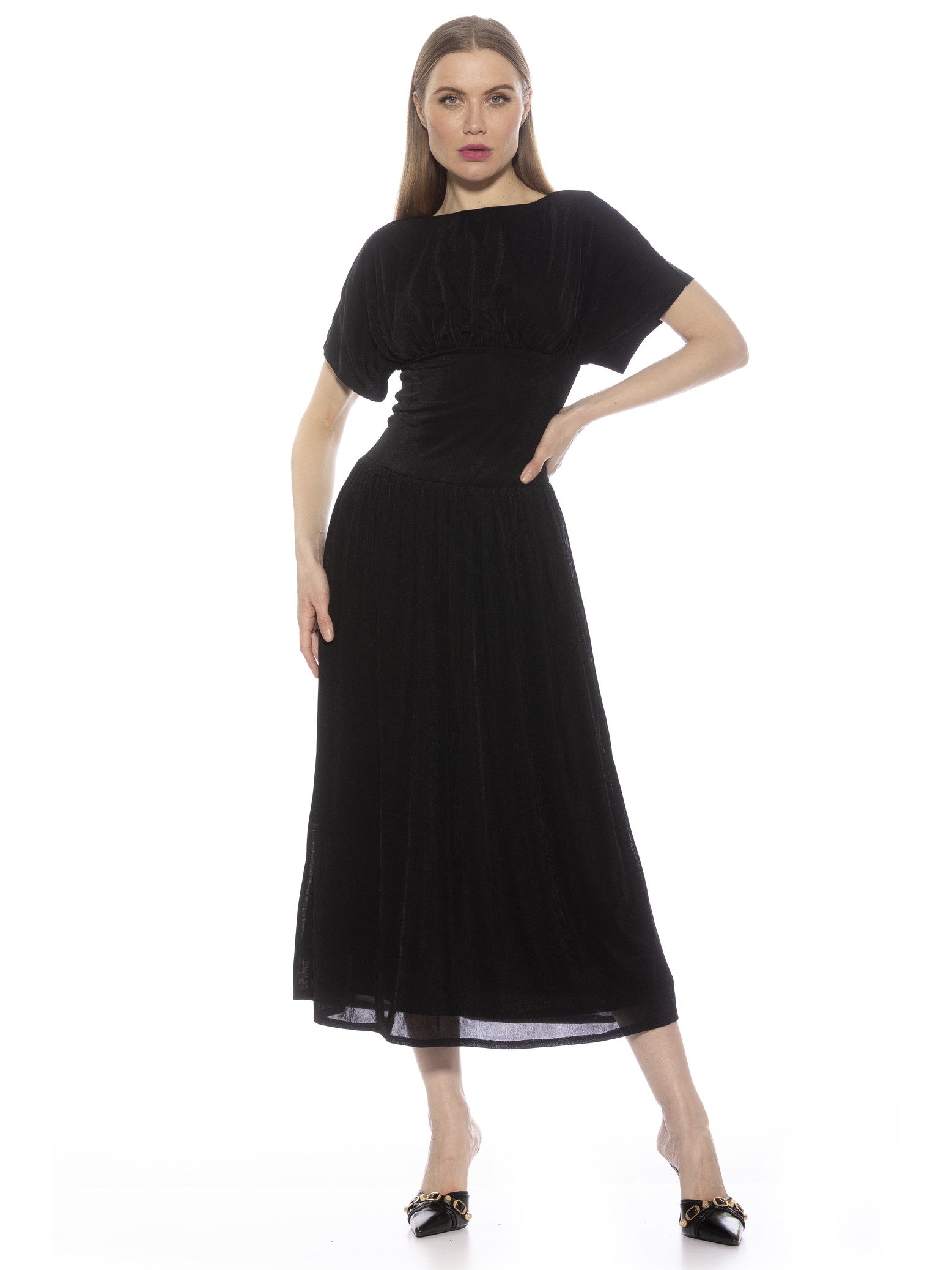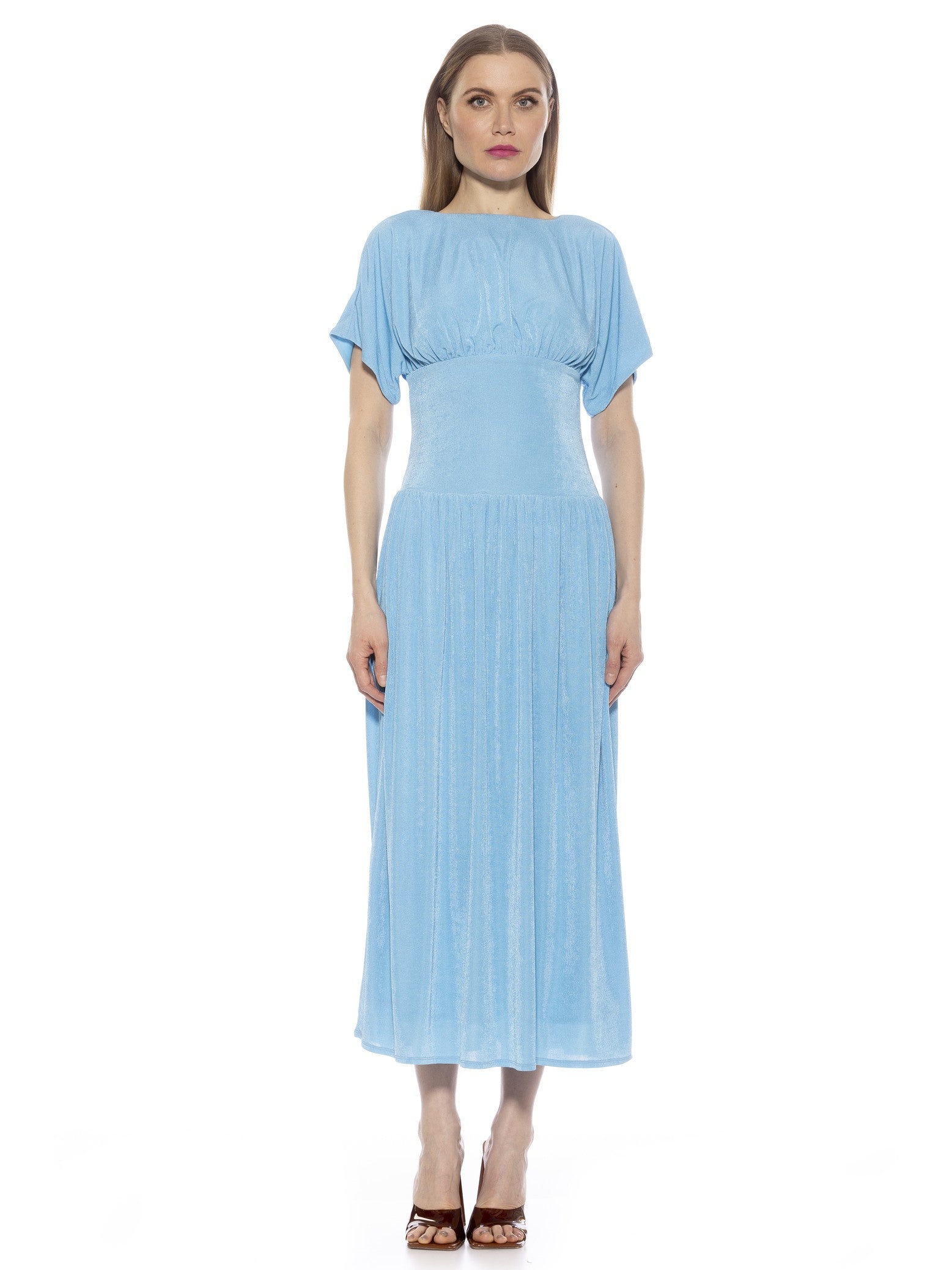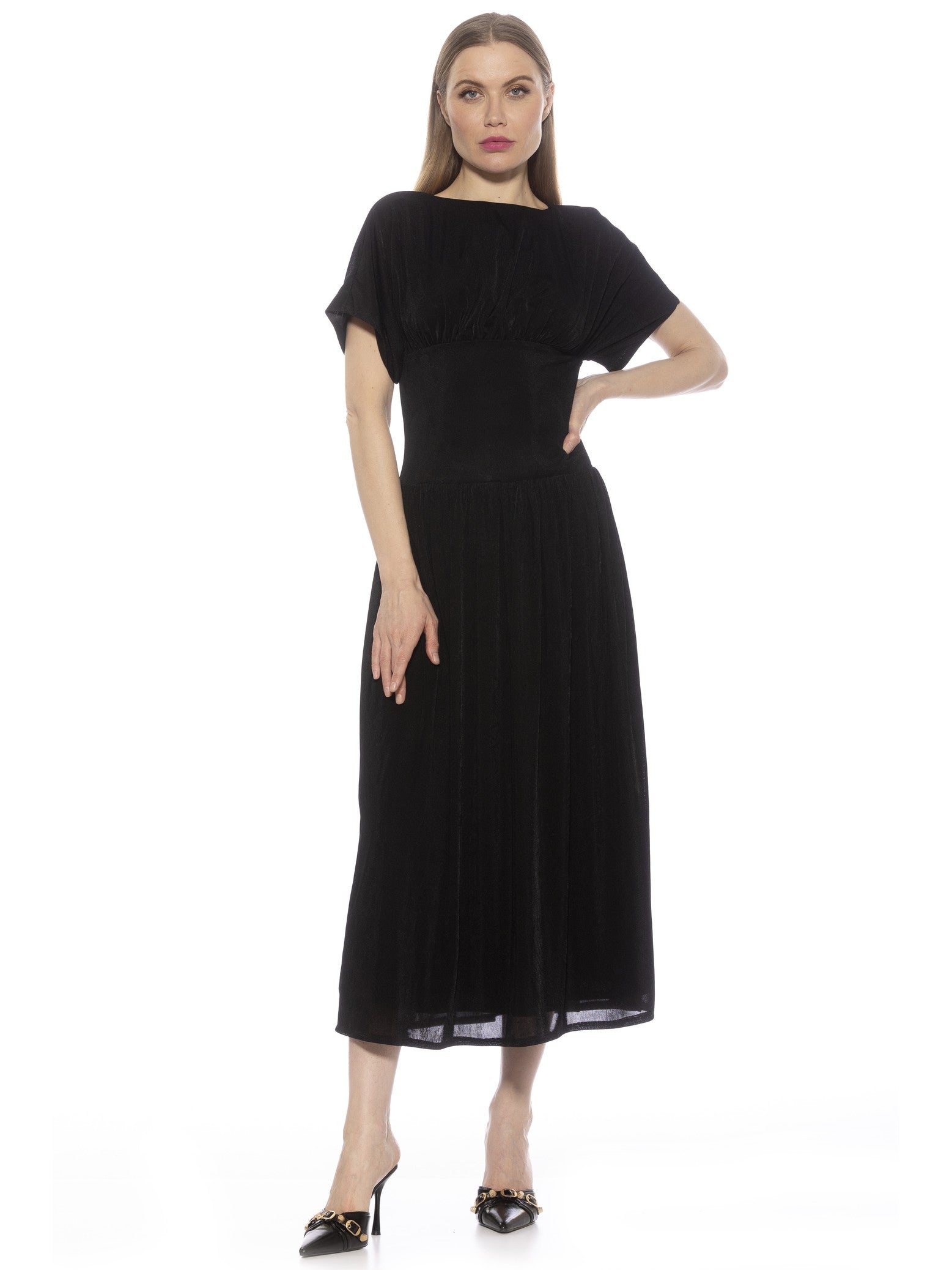 Feel like a modern day goddess in our Luna Dress. This luxurious midi dress boasts a drop waist silhouette, short sleeves, and a classy crew neck. Embrace comfort, style, and sophistication all in one stunning piece. Perfect for any occasion, this dress is a must-have in your wardrobe.