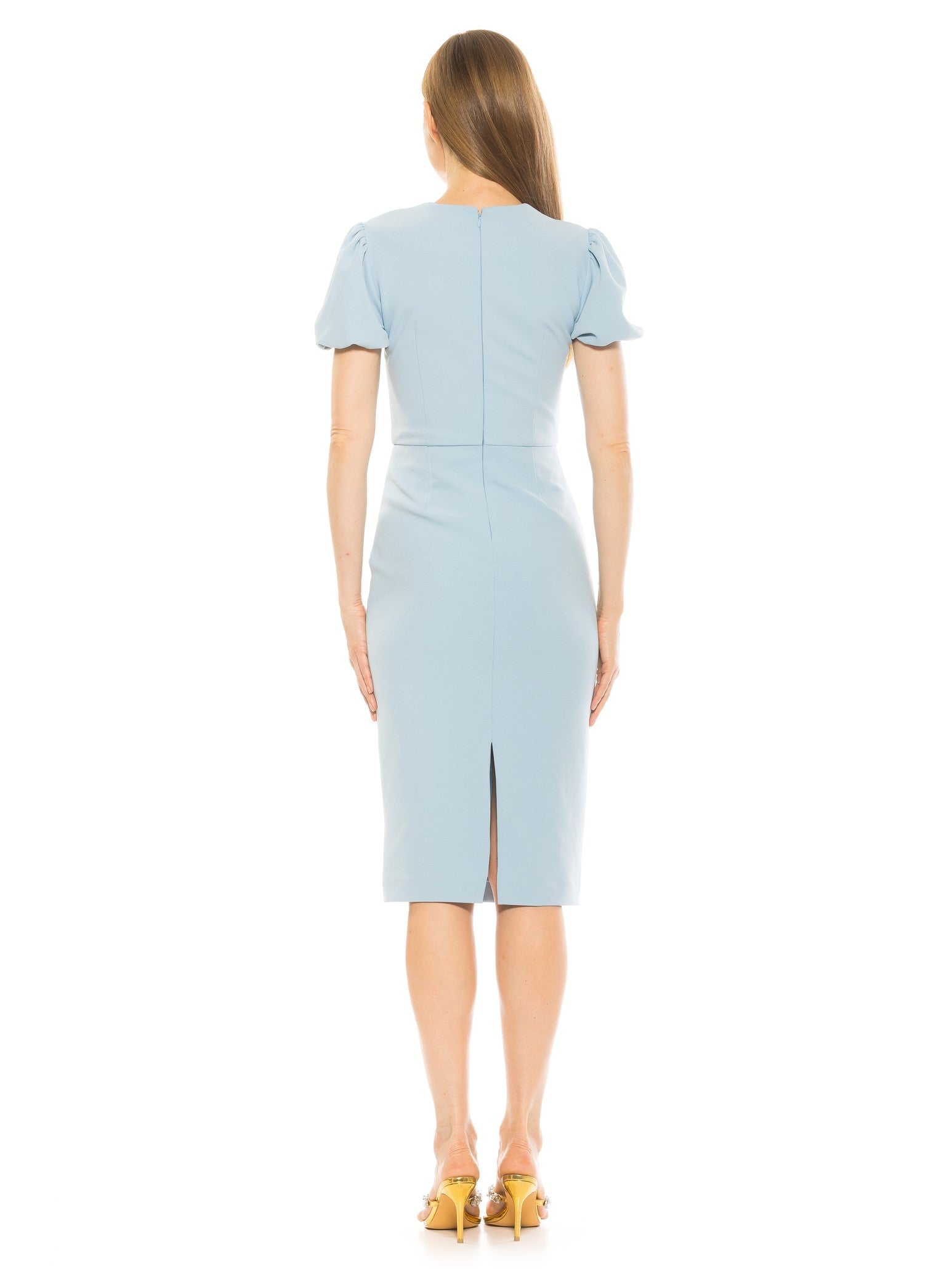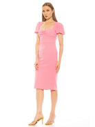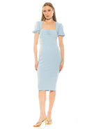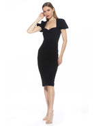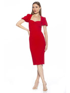 The Micaela Puff Sleeve Sweetheart Sheath Dress Is A Must Have Piece For Your Wardrobe. This Dress Features Short Puff Sleeves, Sweetheart Neckline, Fitted Bodice, And Fitted Midi Sheath. This Dress Fits True To Size.