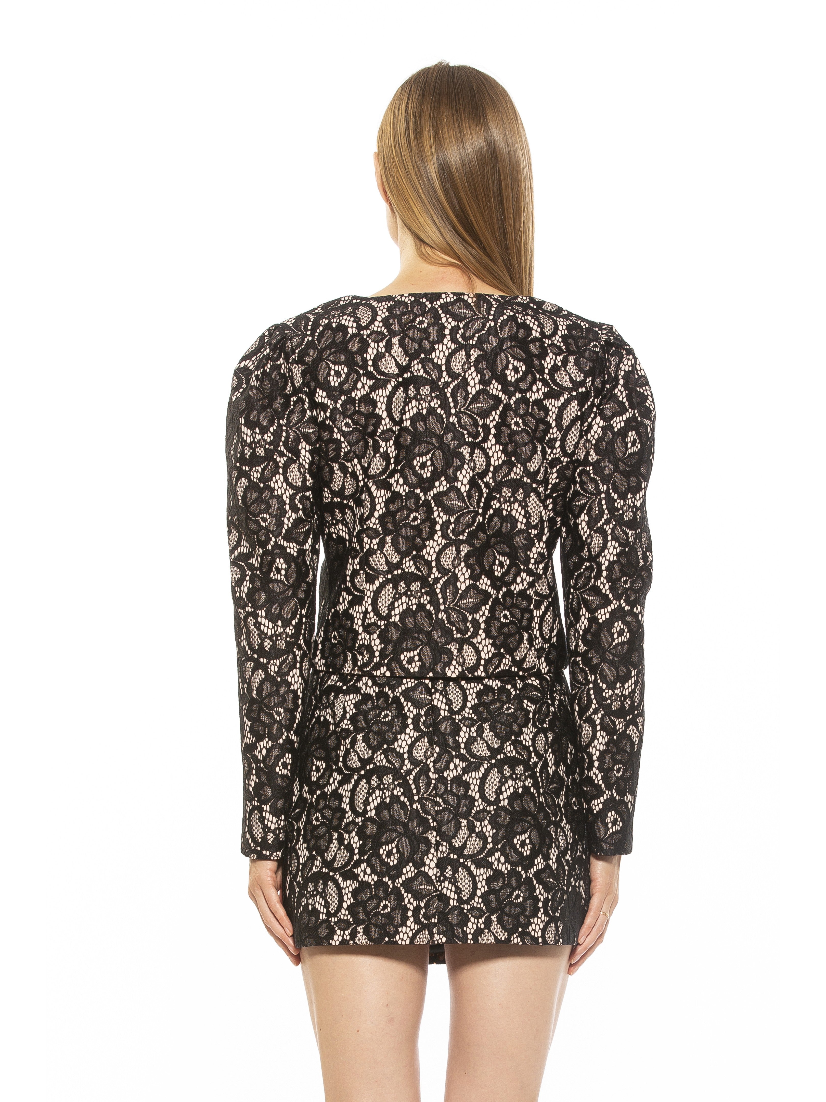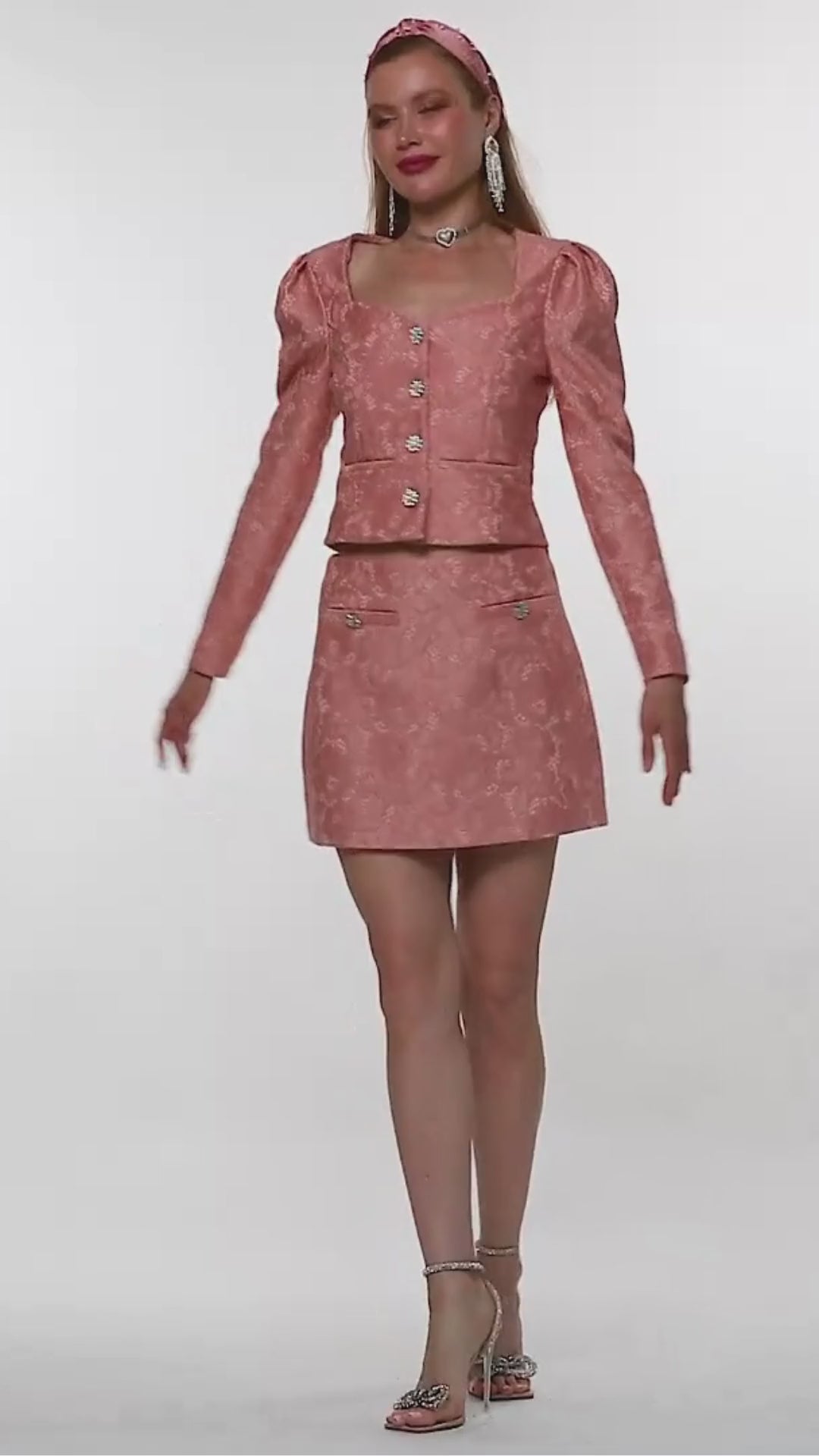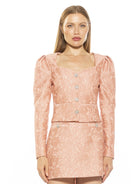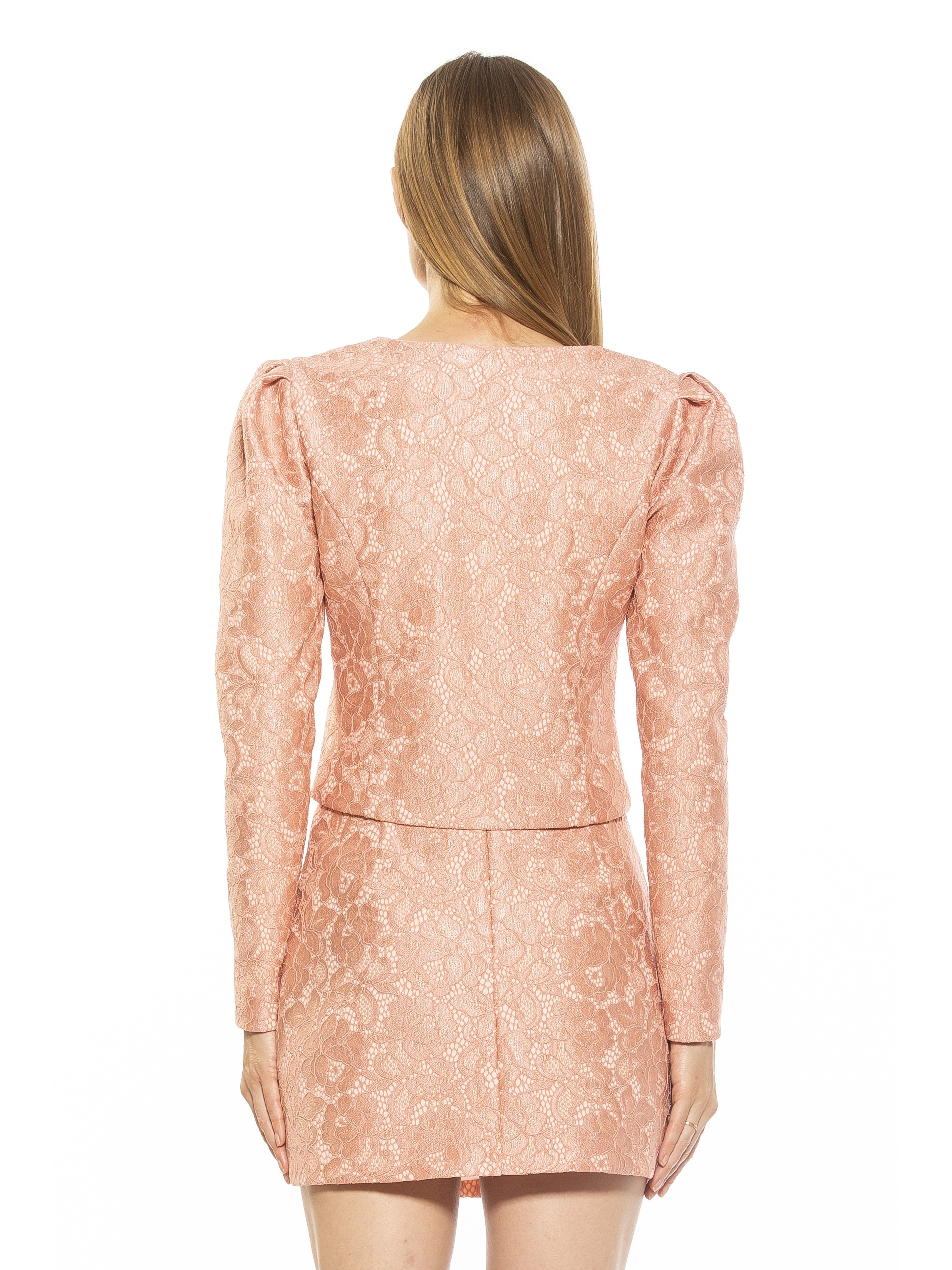 The Rowan Jacket is a luxurious addition to any wardrobe. Embellished with crystal buttons, this elegant cropped blazer features a sweetheart neckline and exquisitely designed puff sleeves. Exuding sophistication, this beautiful lace jacket is the perfect way to exalt any outfit.