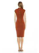 Feel like royalty in the Katrina Midi Dress! With a chic stand-up V-neckline, stylish cap sleeves, exposed back zip closure, and flattering princess seams, you'll look your best without breaking the bank.