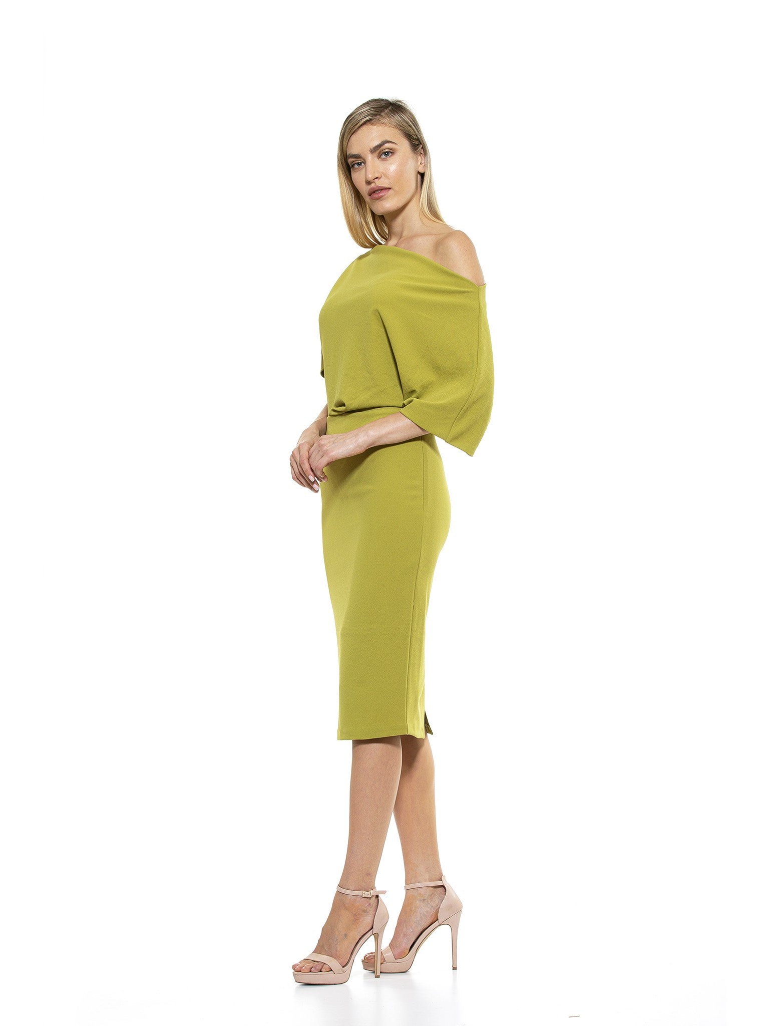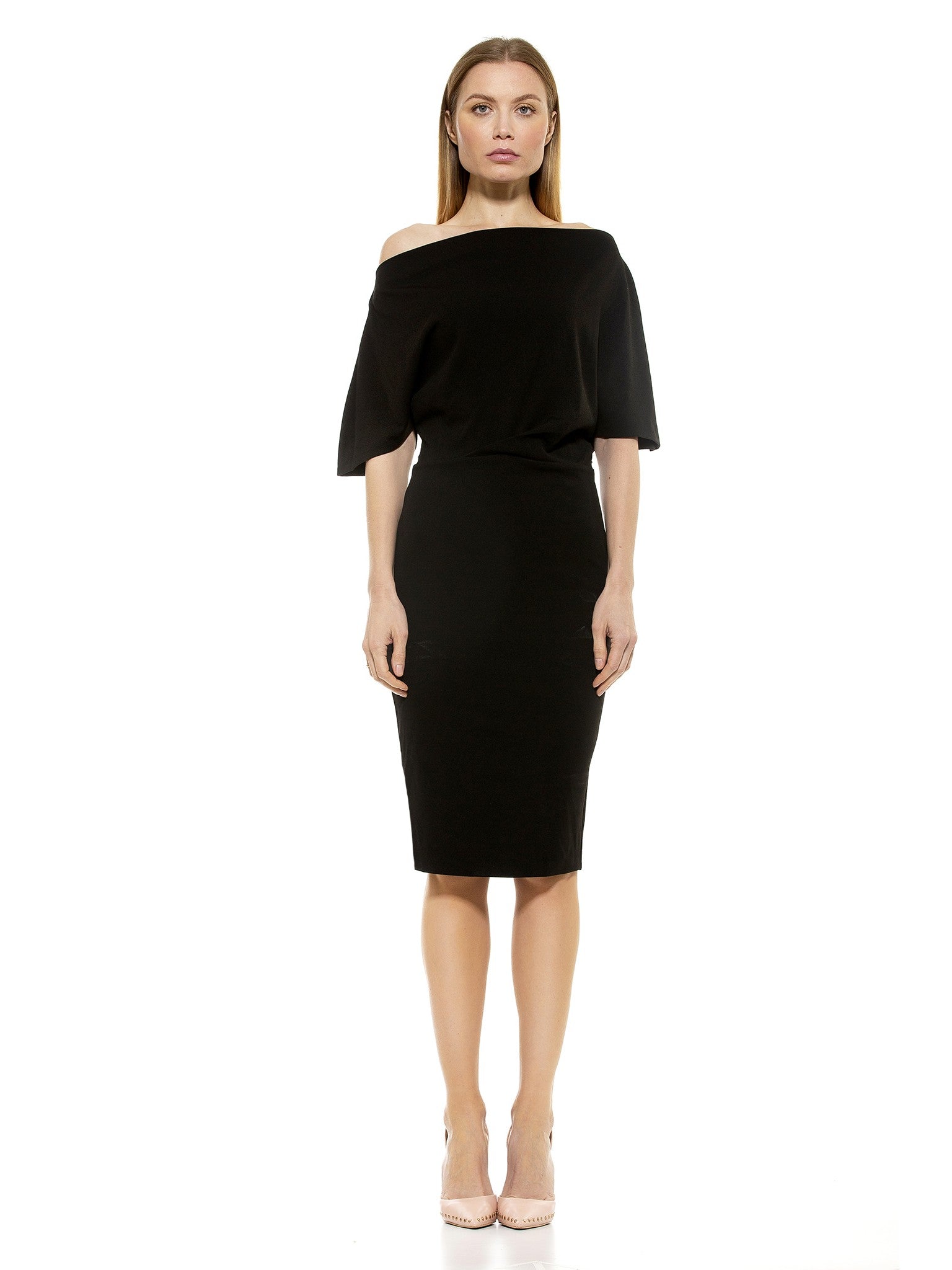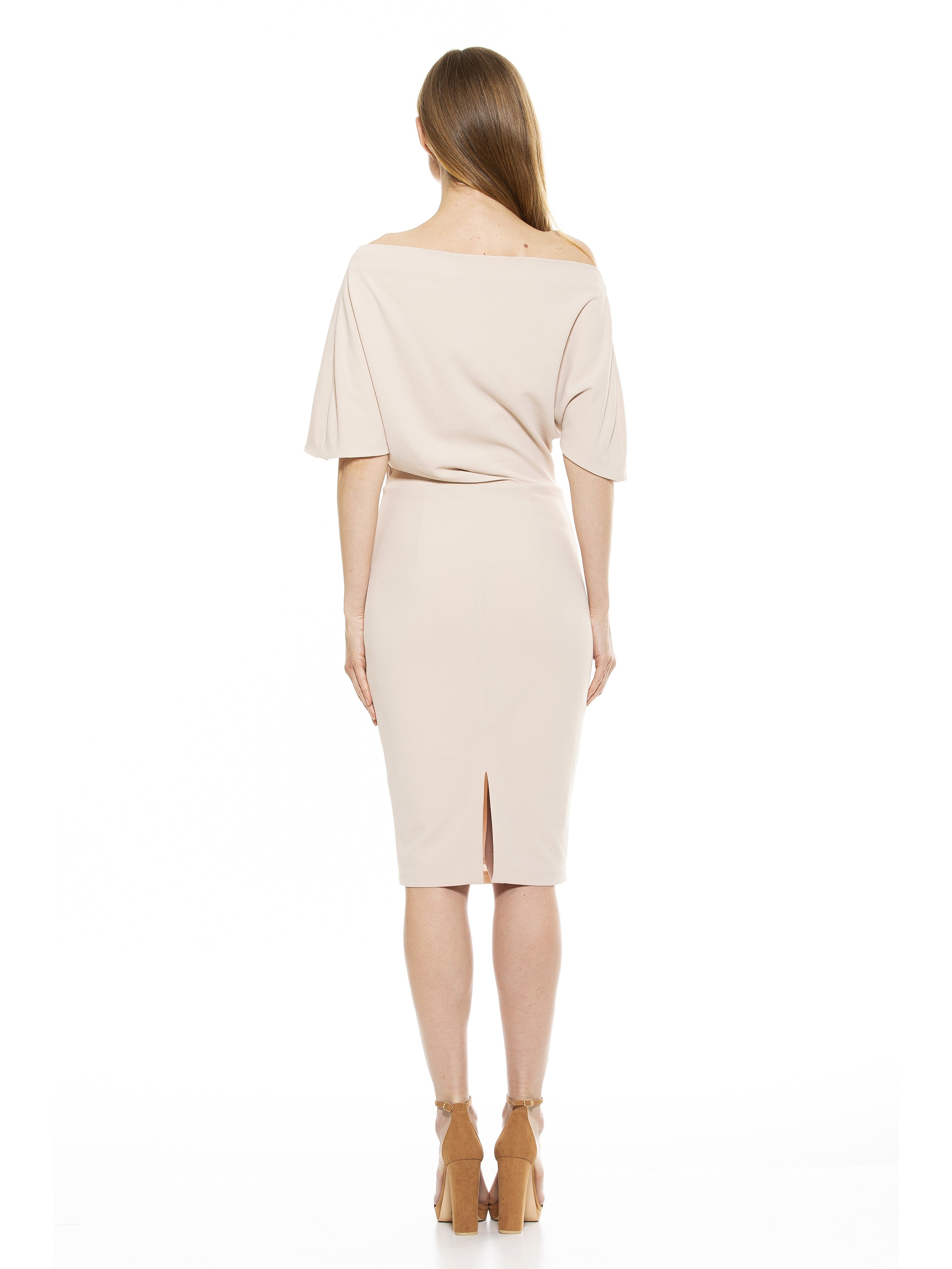 The Olivia Dress, one of our Best Sellers will have you turning heads for all the right reasons. Made from a ultra-soft scuba crepe, this sheath-style dress features an off-the-shoulder silhouette is extremely flattering and easy to throw on.