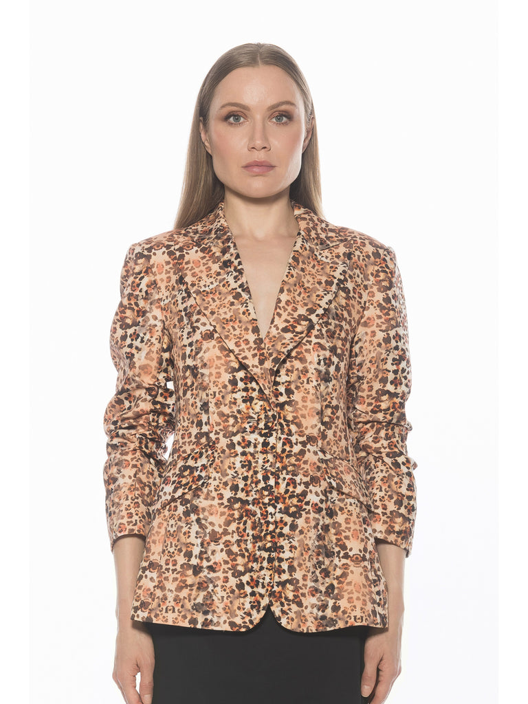 Introducing the Tau Blazer with elegant scrunched sleeve detail. This sophisticated blazer adds a touch of refinement to any outfit. The unique scrunched sleeves exude an air of exclusivity and luxury. Elevate your style with this must-have piece.