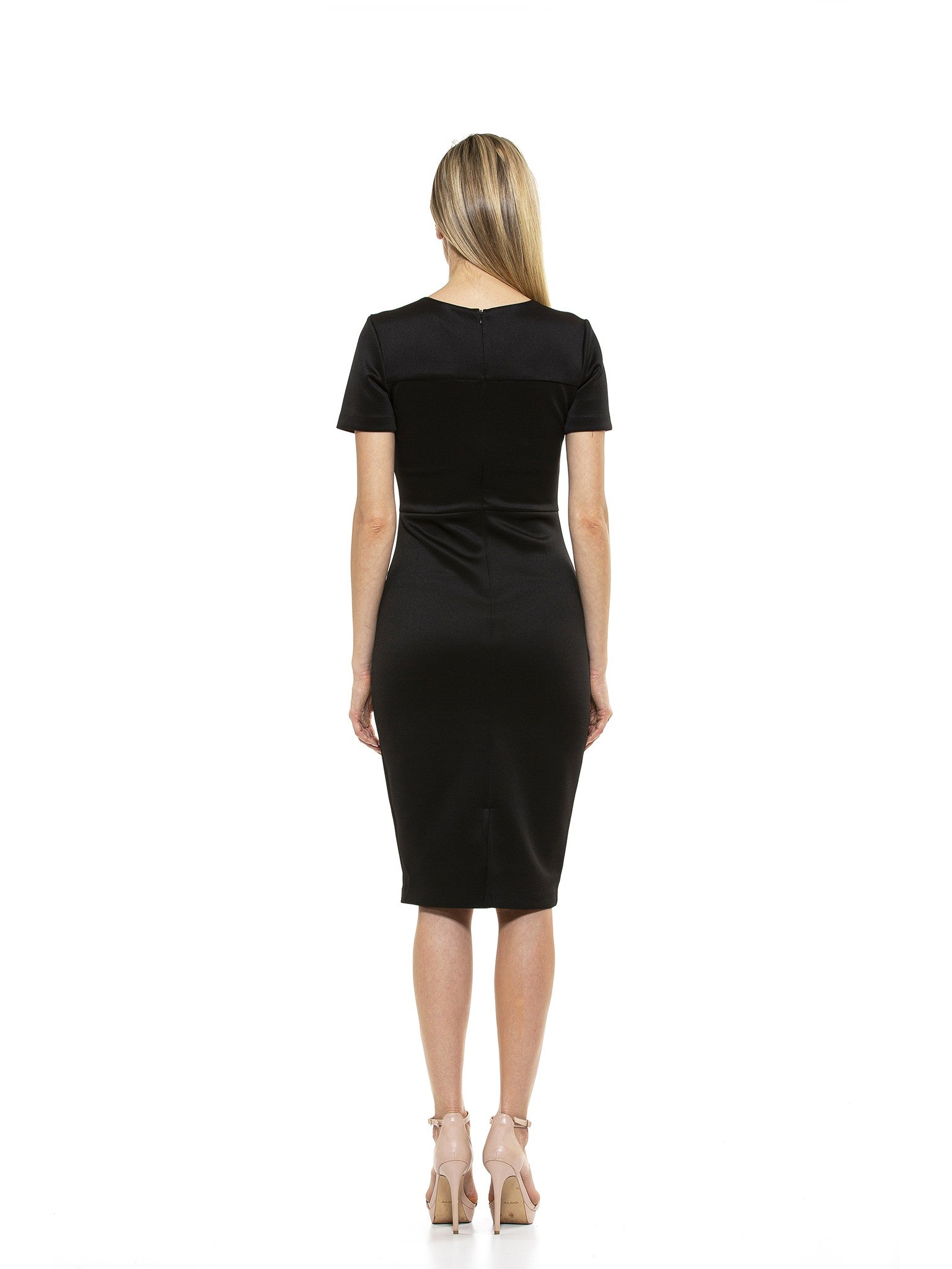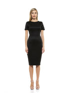 Unleash your inner Mermaid with this Scuba Midi Dress. Perfect for any cocktail occasion, its short sleeves and crewneck make it both chic and comfortable. Dive into style with this must-have dress!