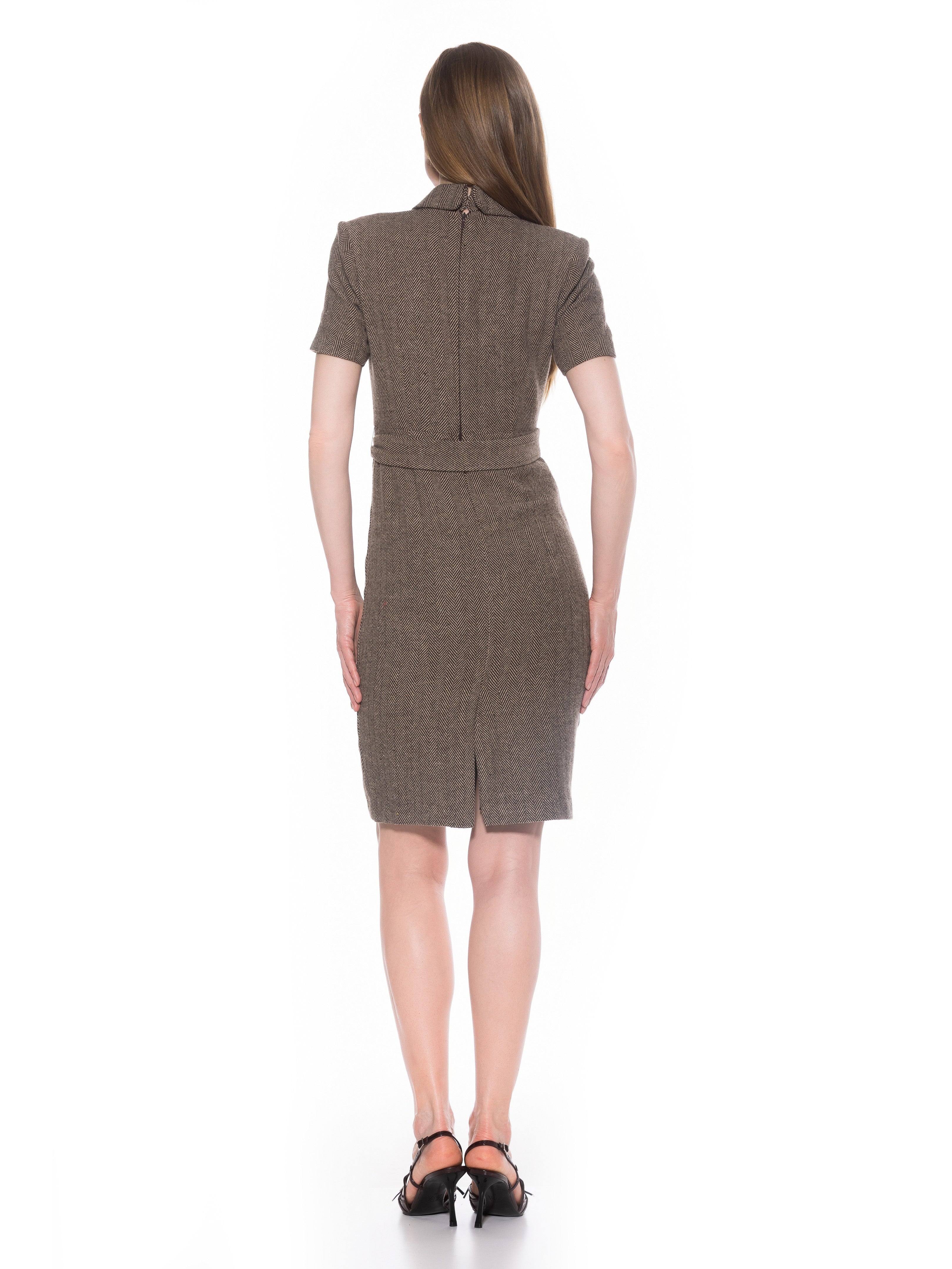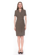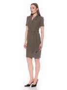 The Lynne Short Sleeve Jacket Midi Sheath With Belt Is A Must Have For Your Closet.  This Dress Features Front Collar Detail, Short Sleeves, Midi Length Pencil Skirt And Belt.  This Item Runs Small.